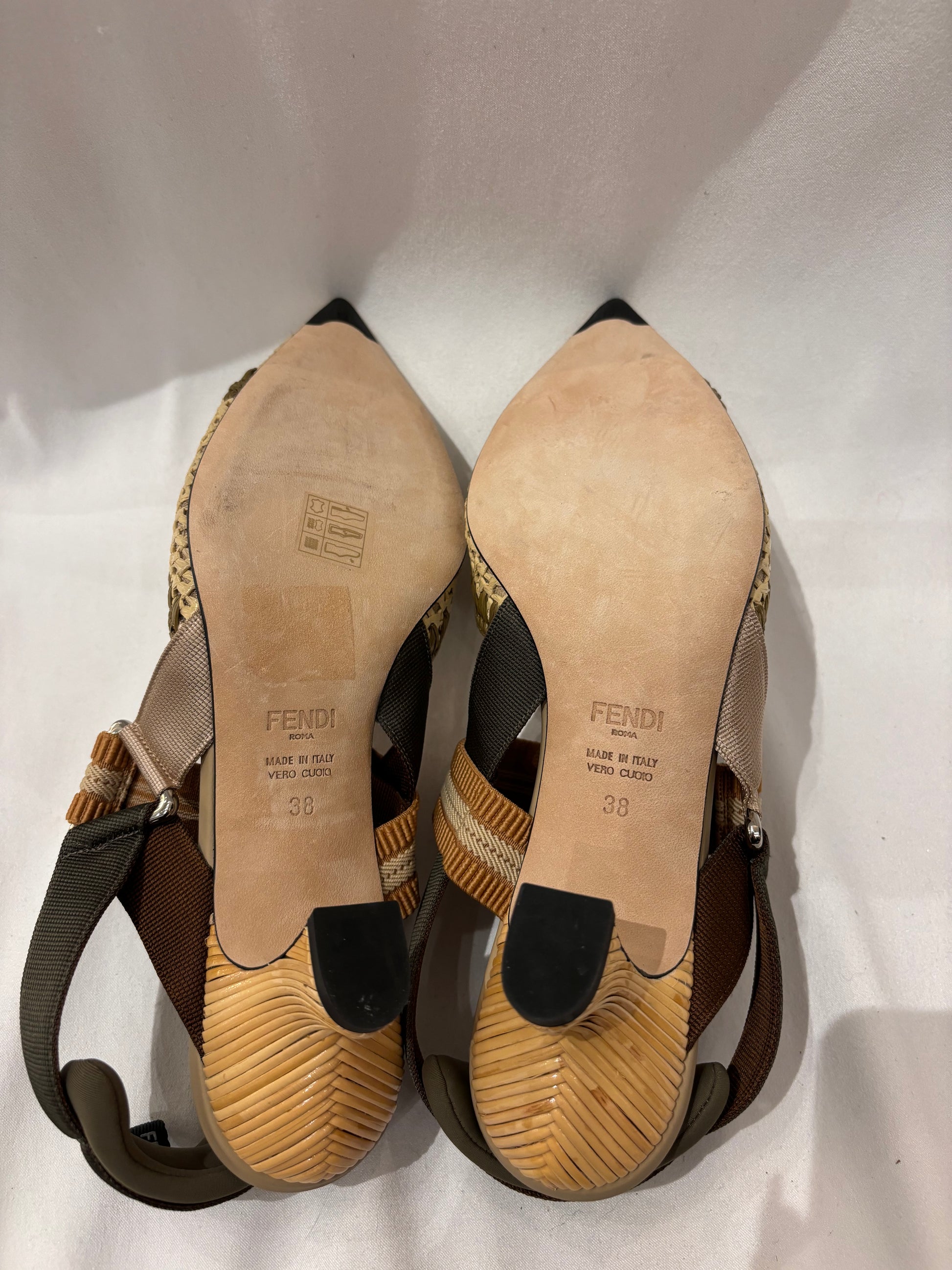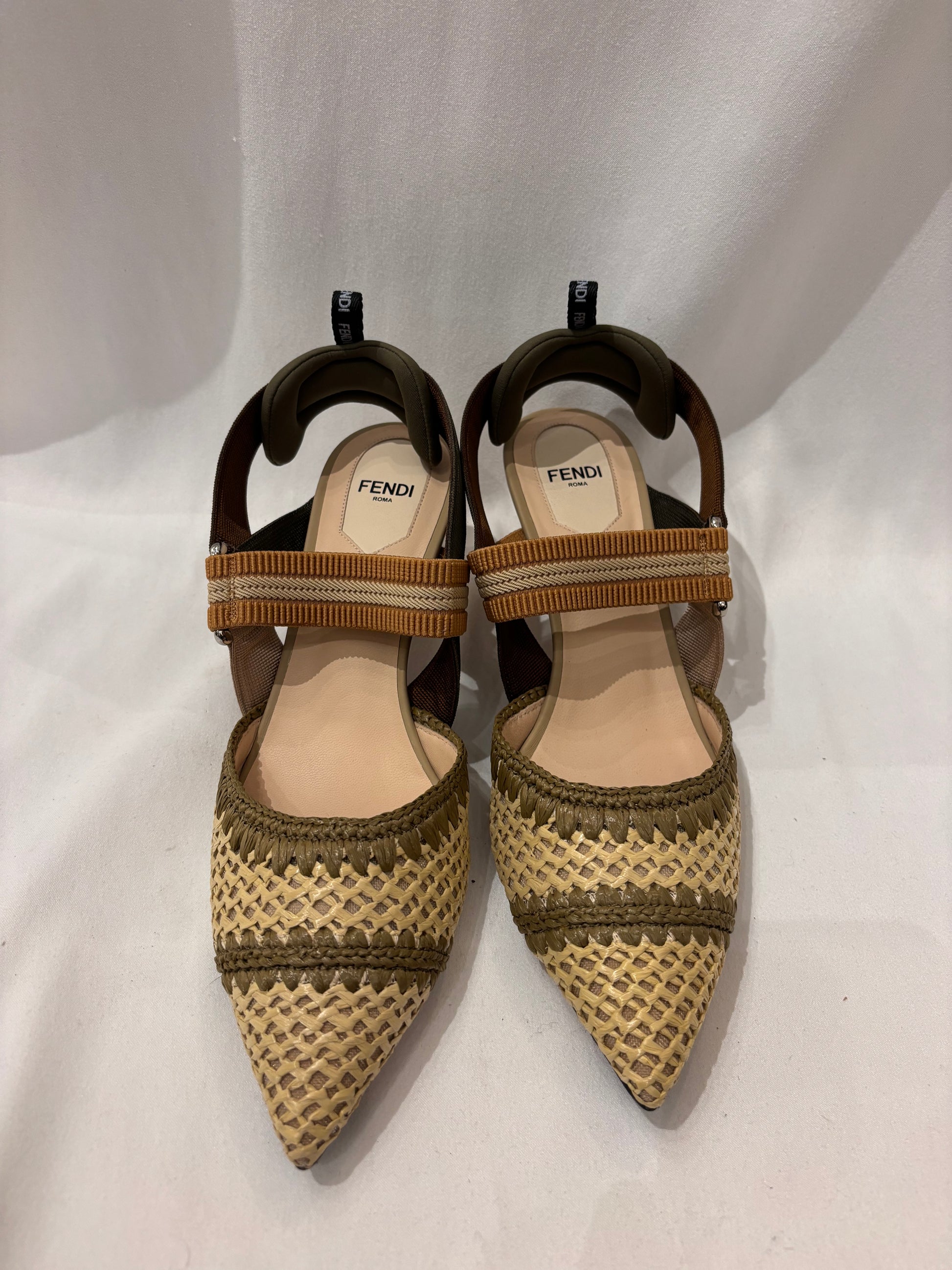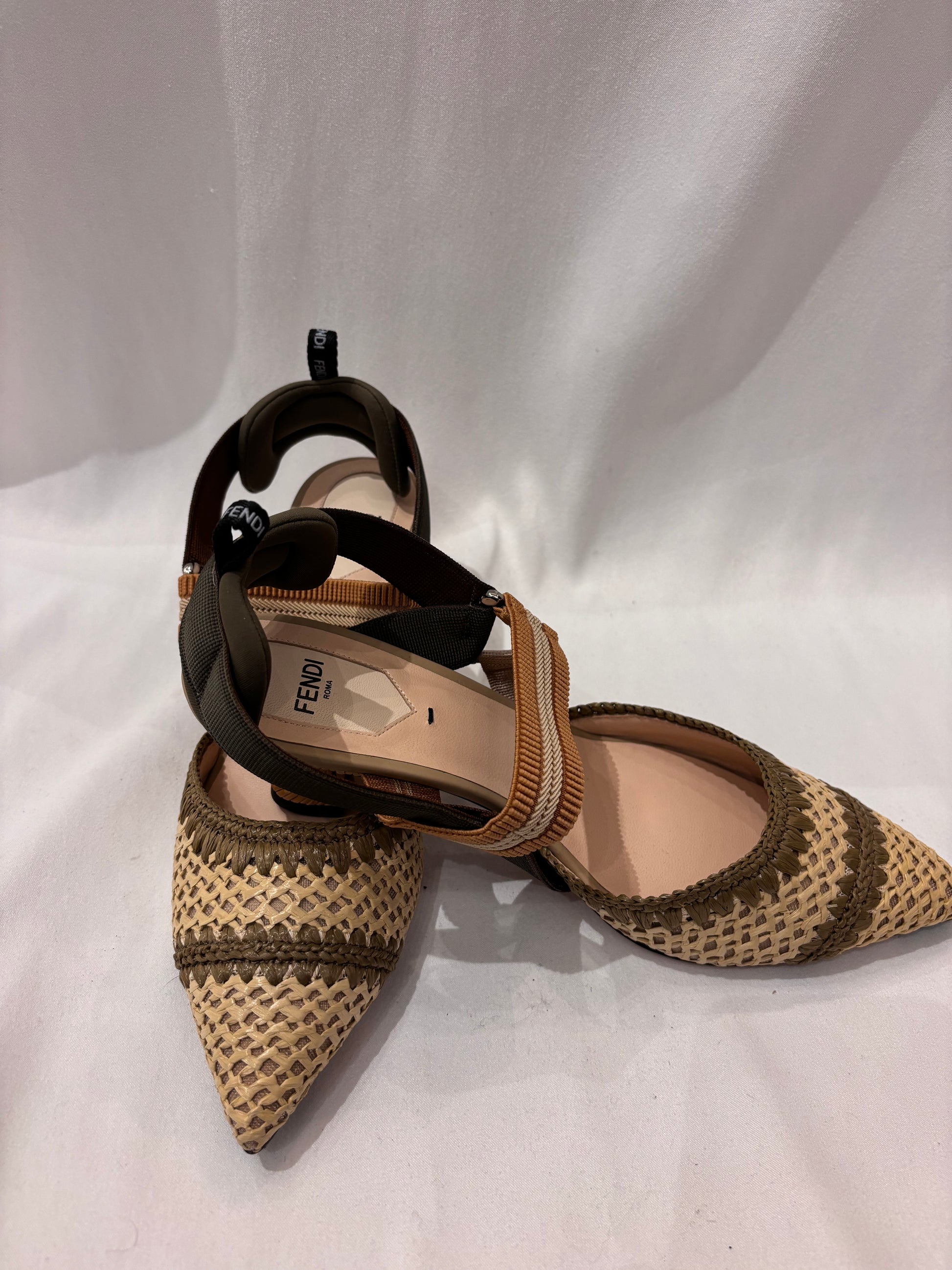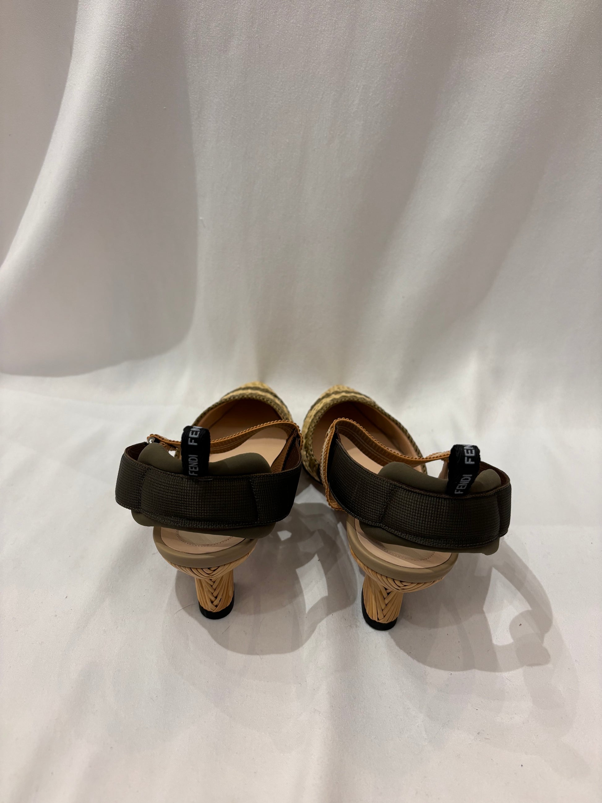 Fendi Natural Raffia Colibri Pump with Olive Trim Size 38
