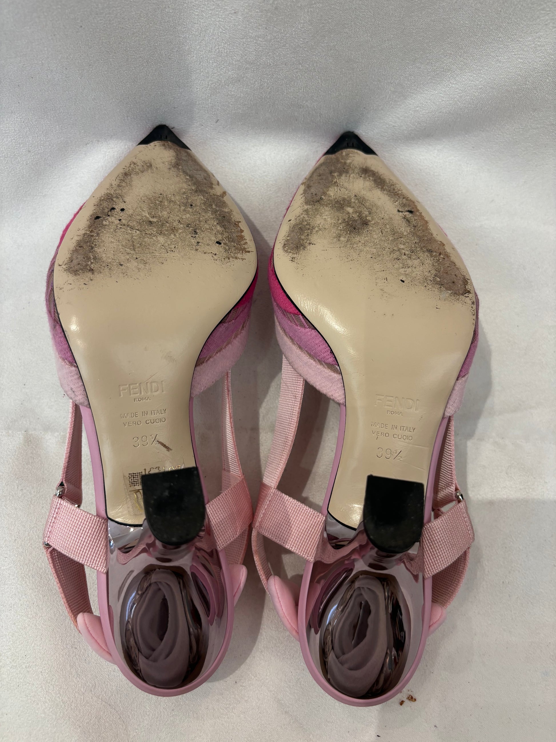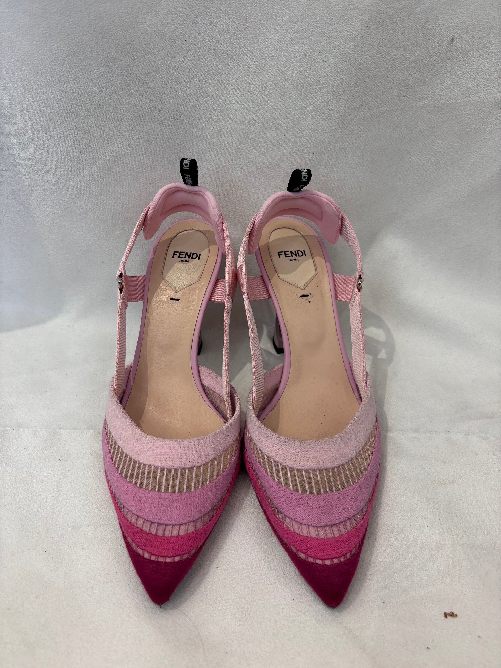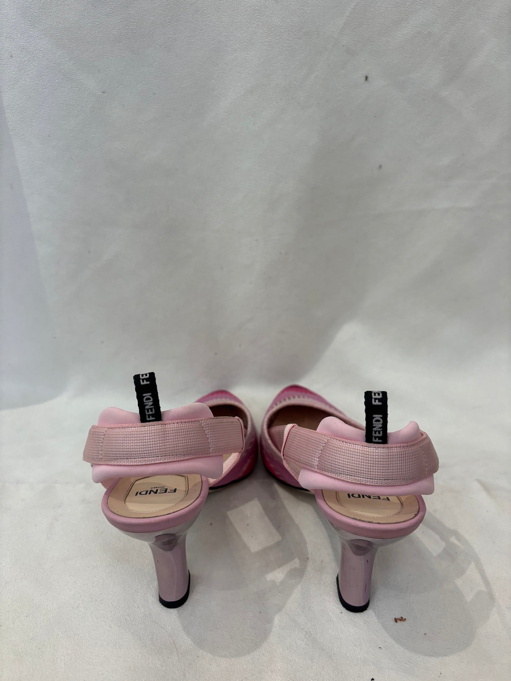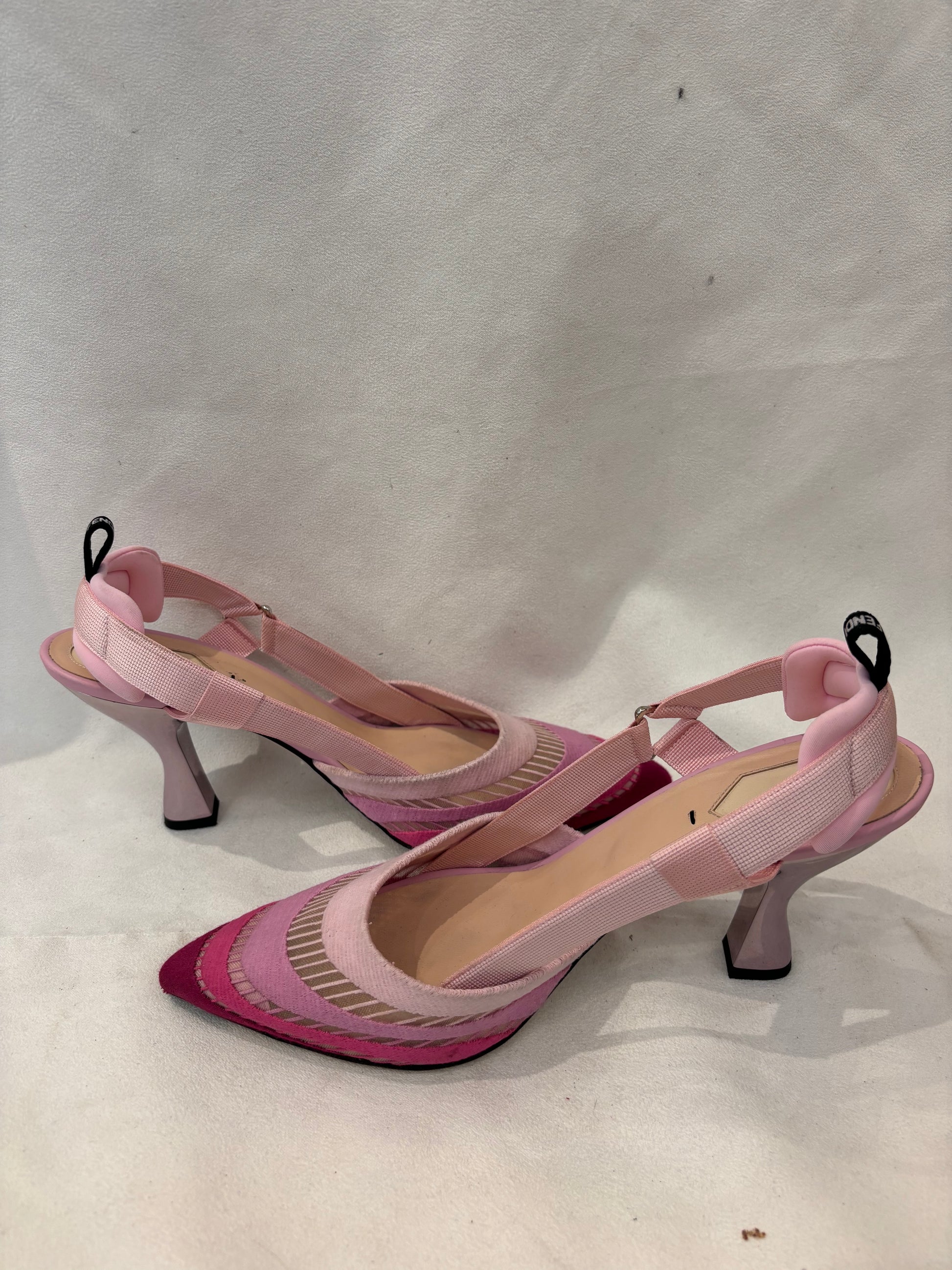 Fendi Pink Embroidered Colibri Sling Back Pumps Size 39.5