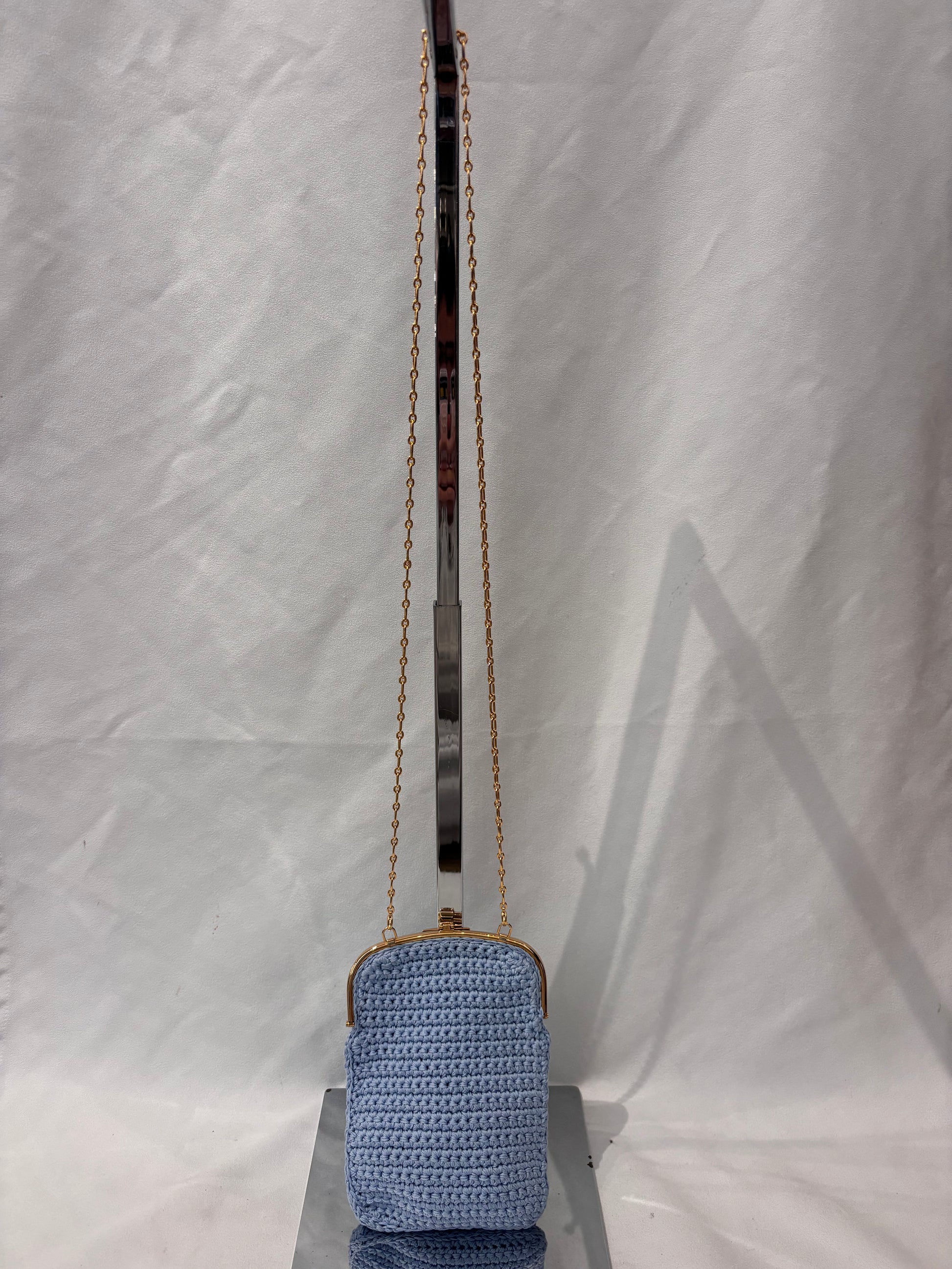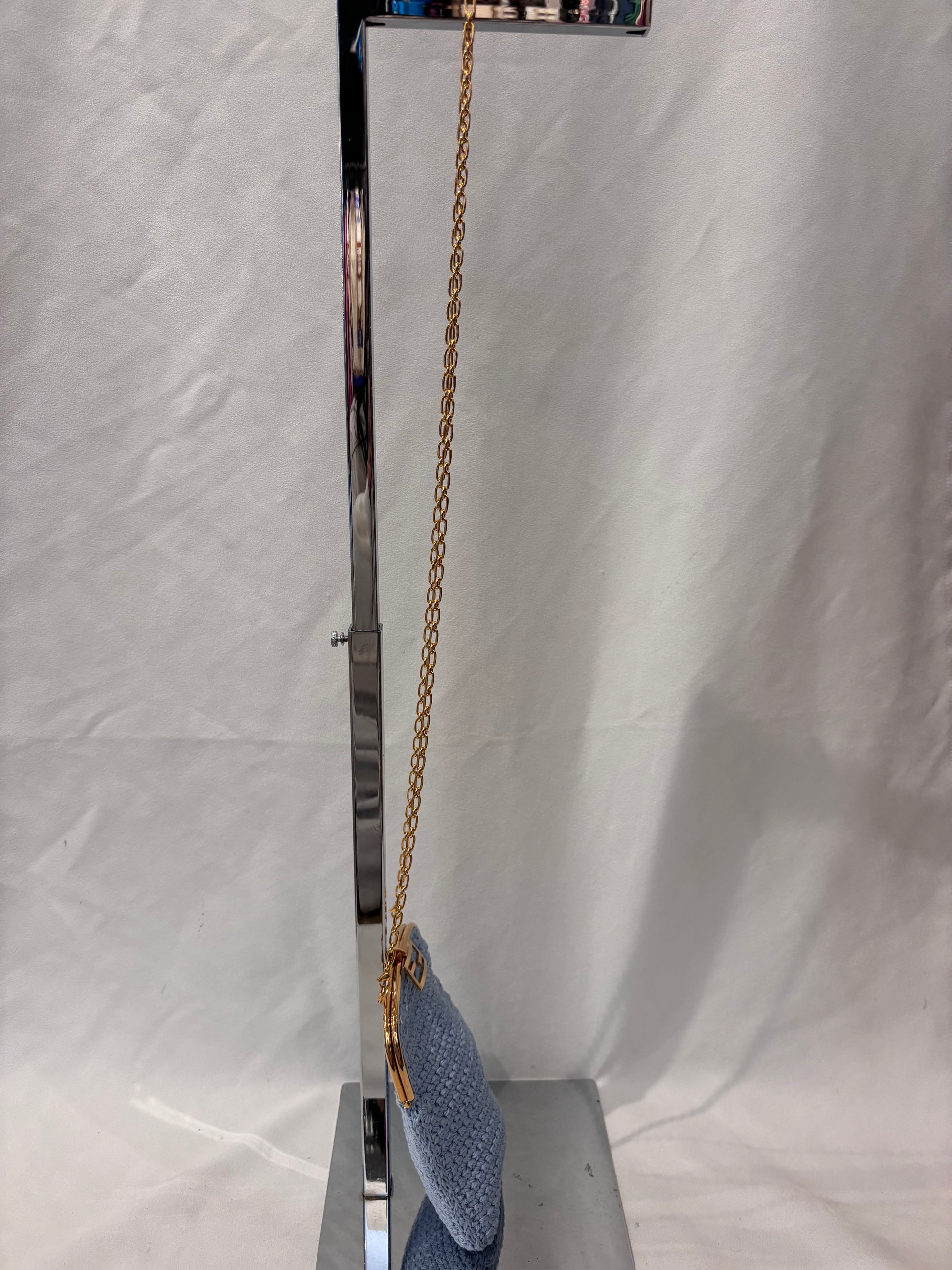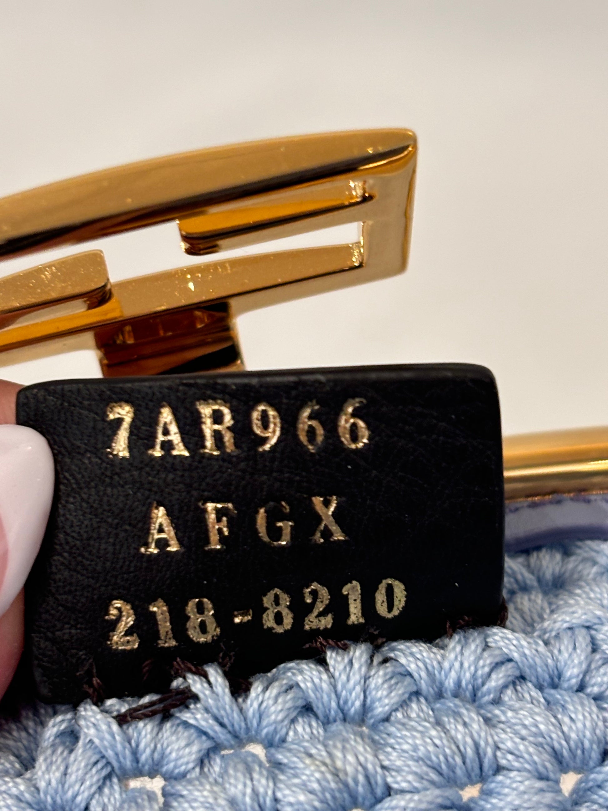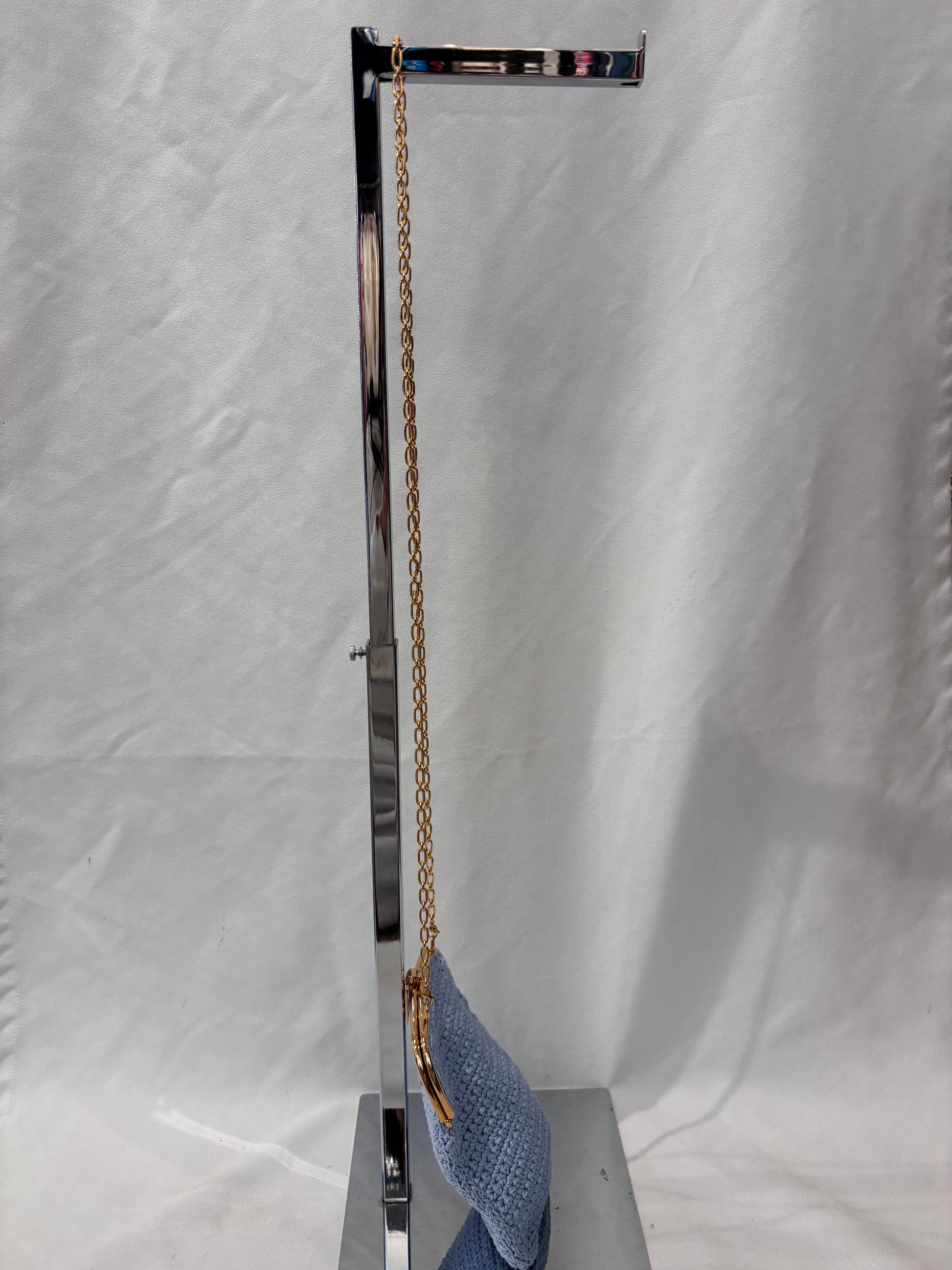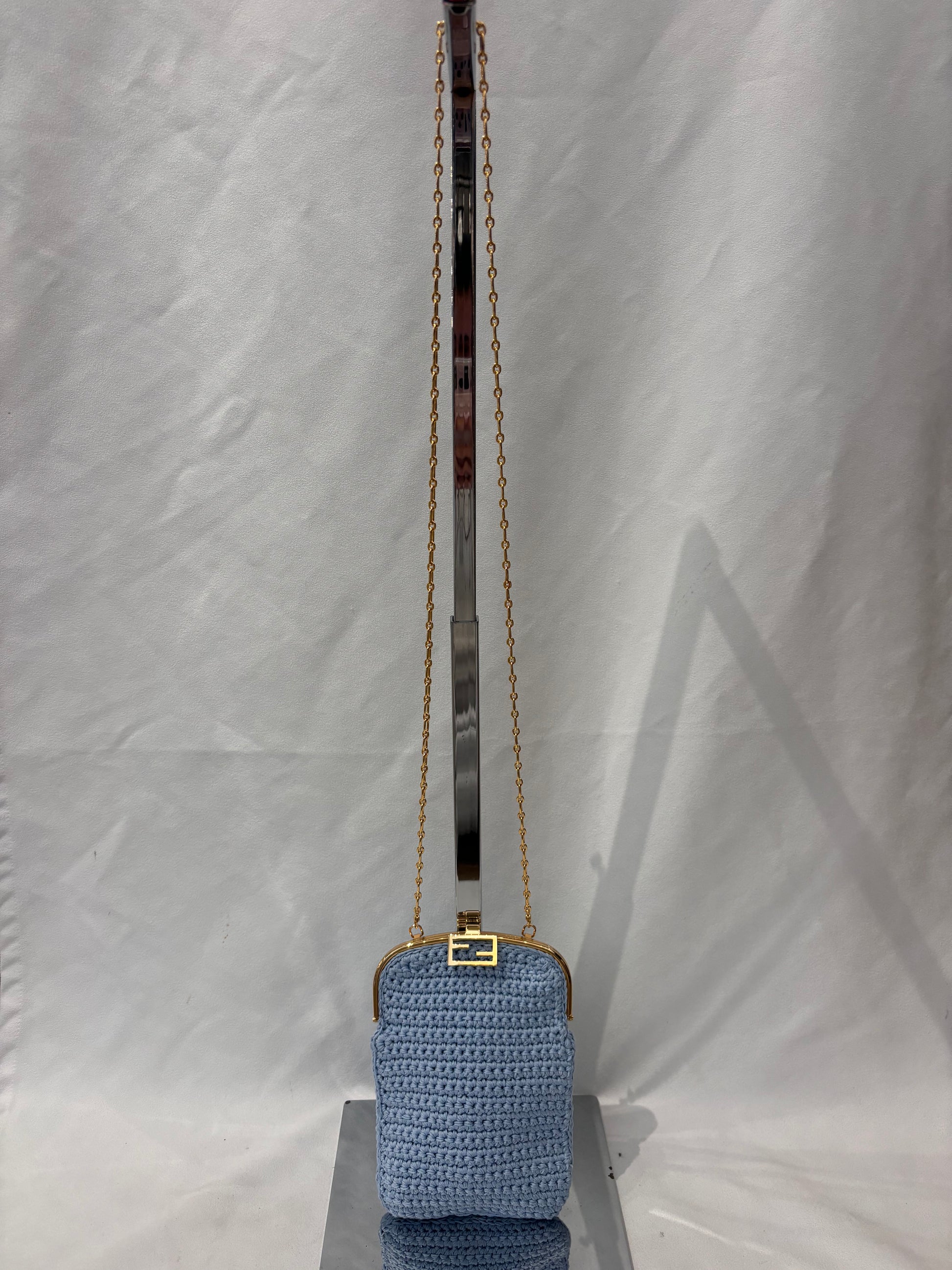 Fendi Baby Blue Crochet Evening Bag with Gold Frame