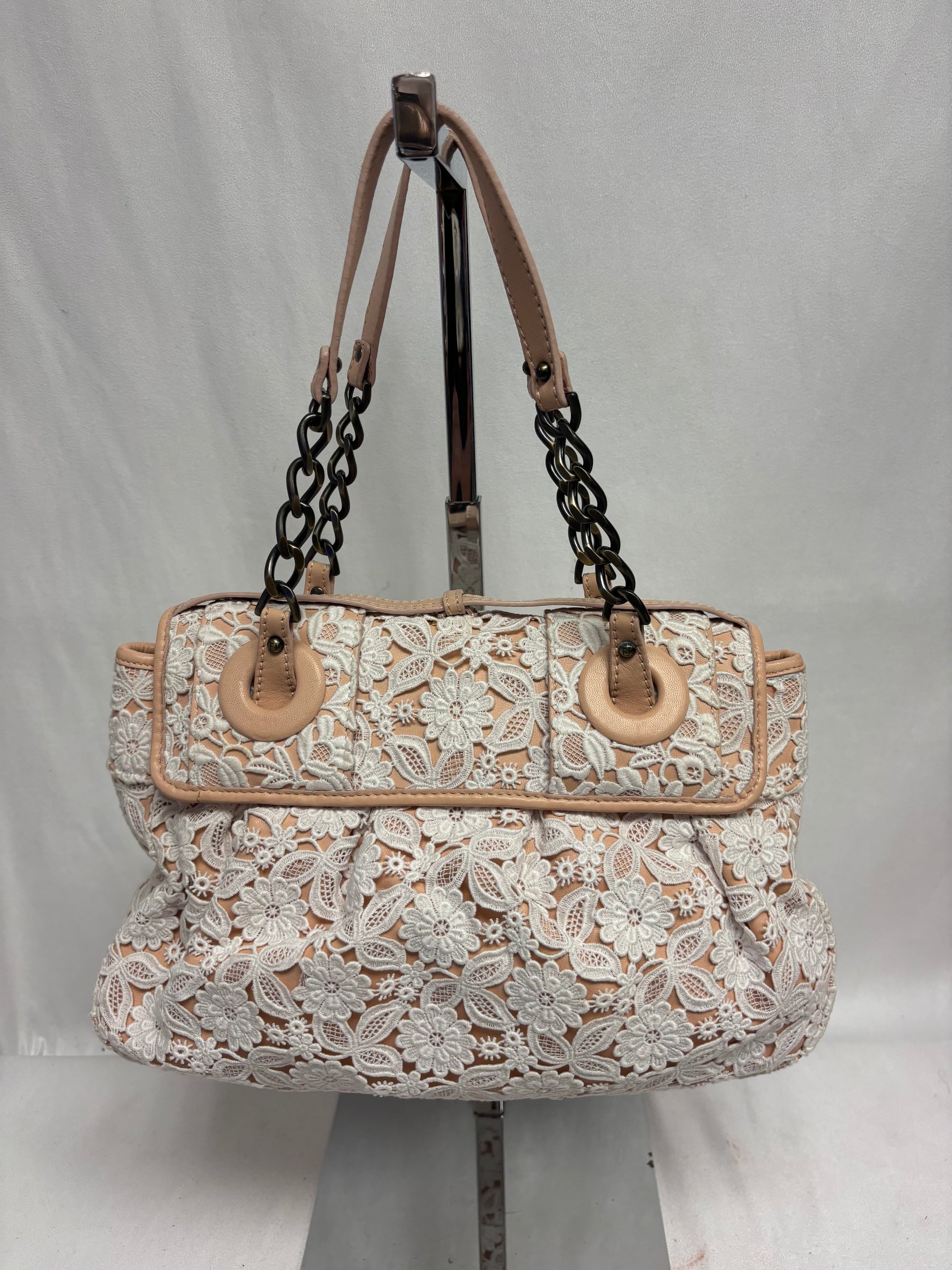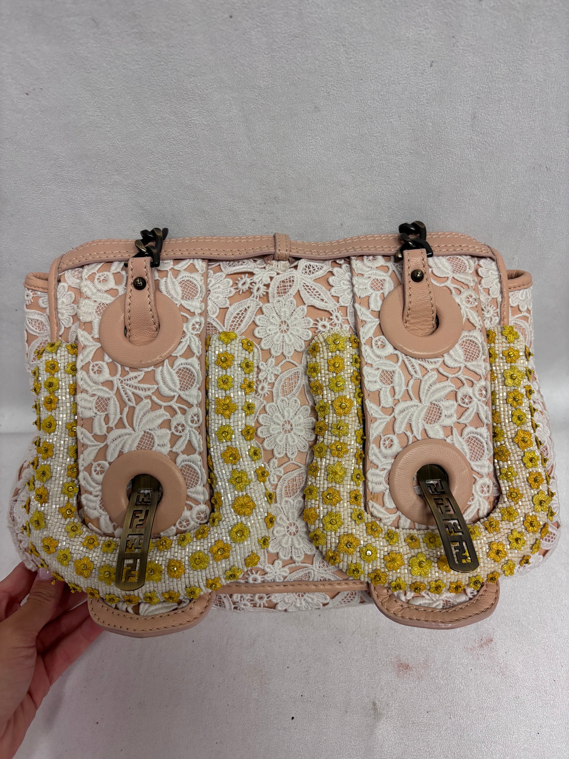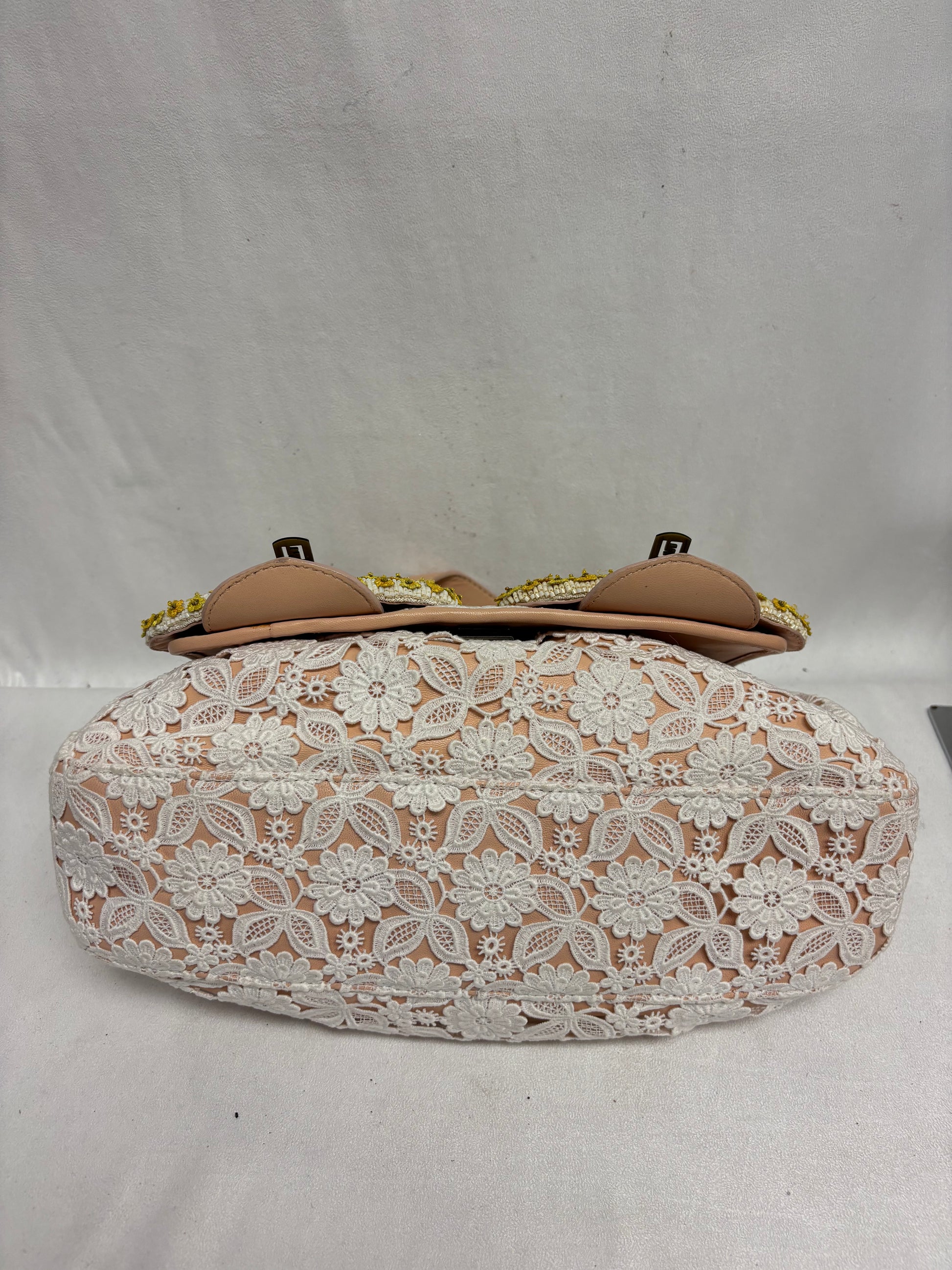 Fendi Beige B Bag with White Lace Overlay/Yellow Floral Border