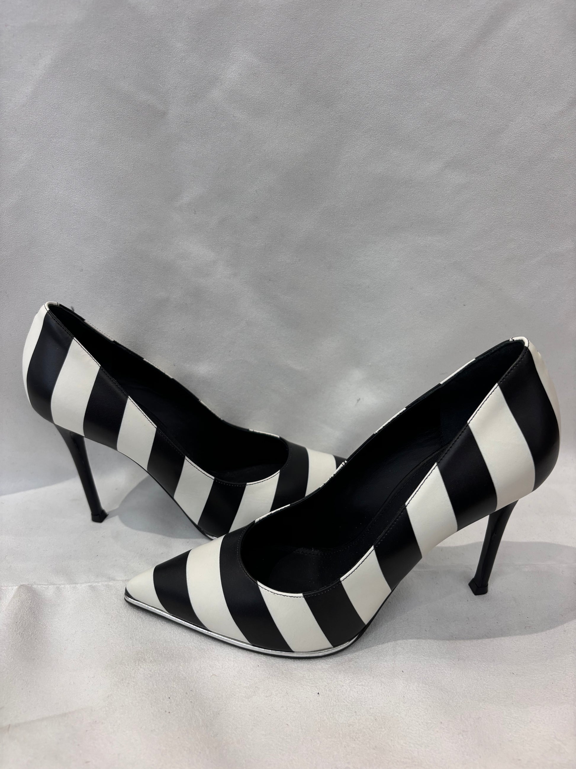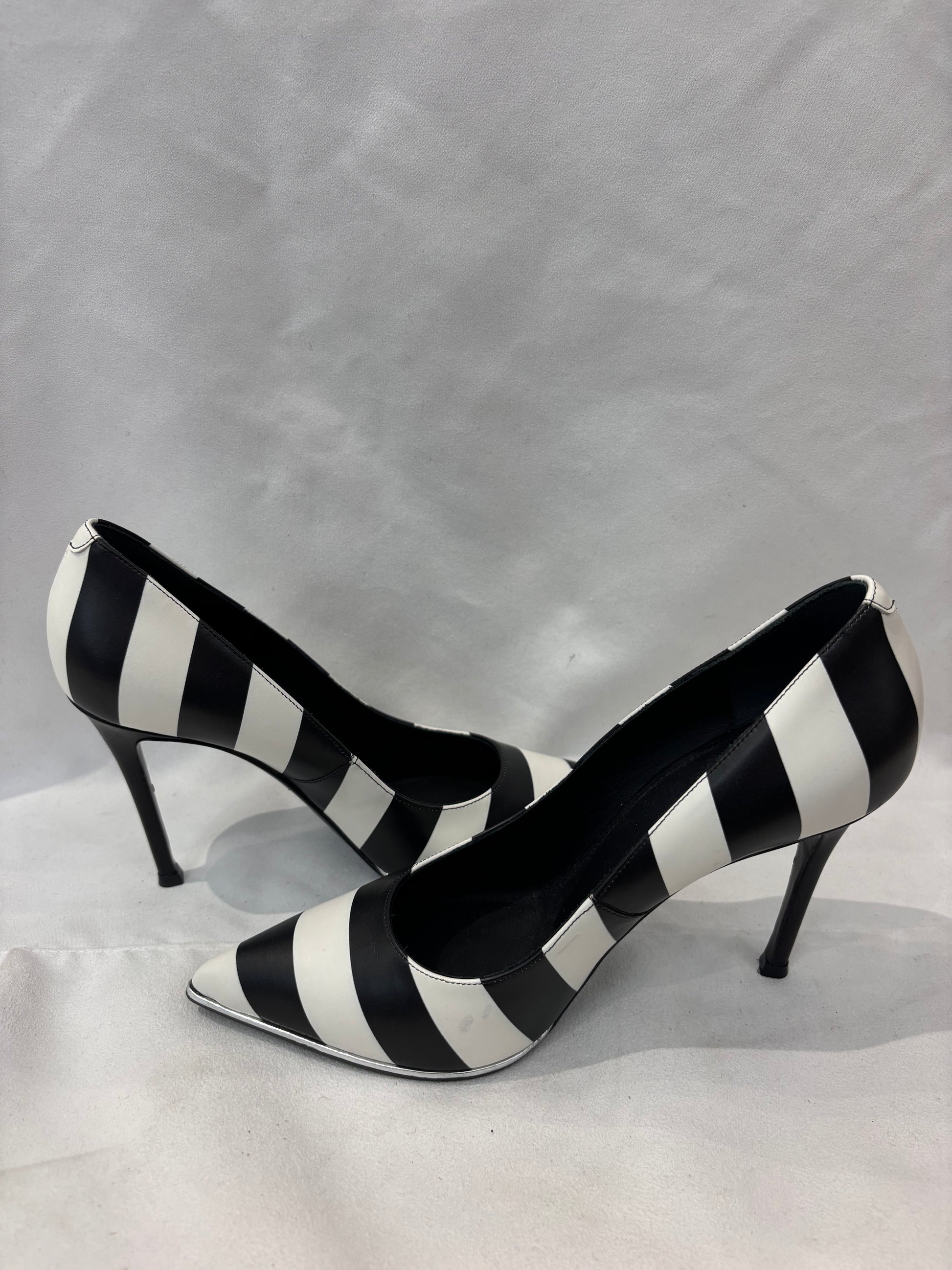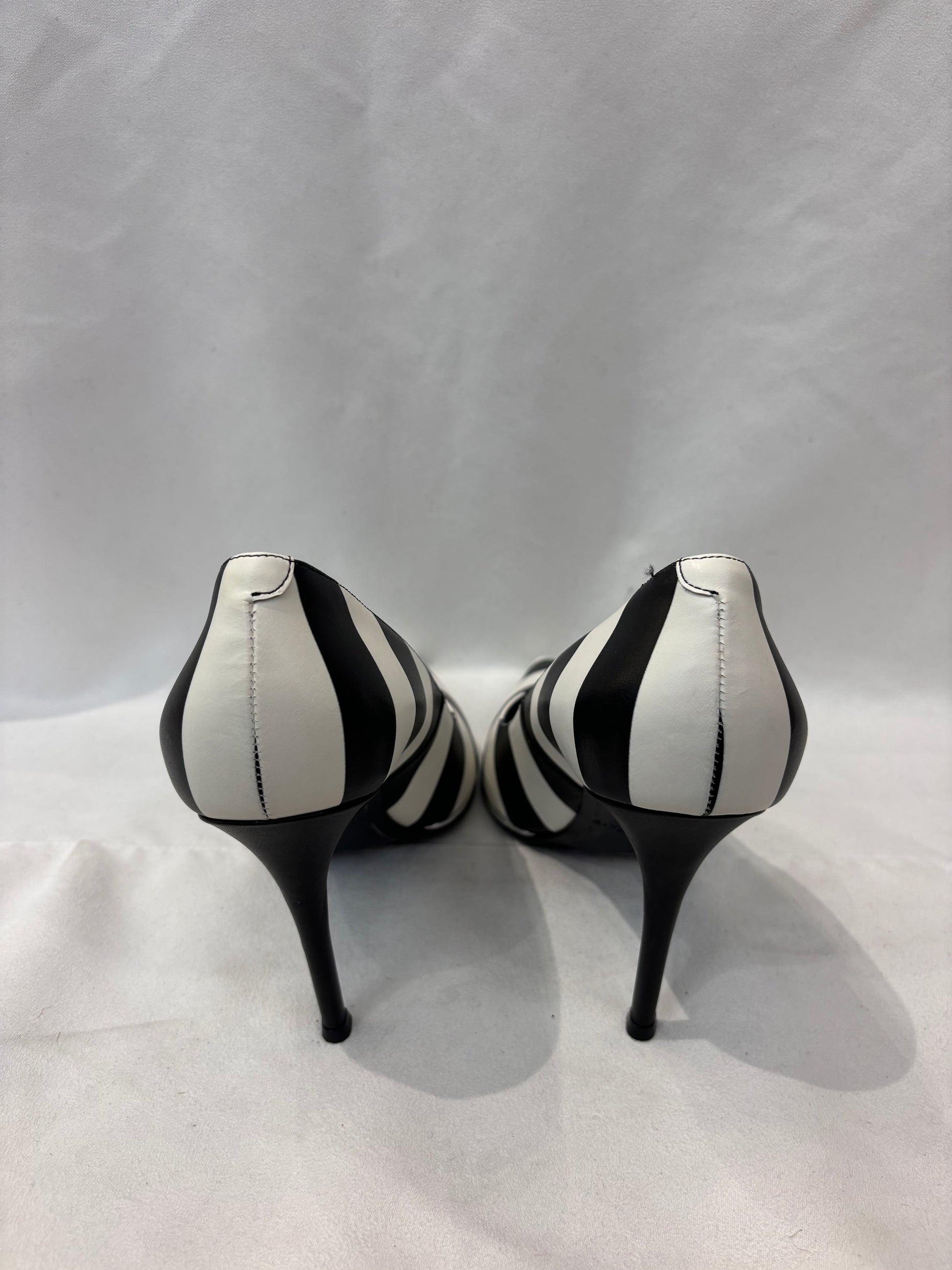 Givenchy Black and White Striped Pointy Pump Size 37.5