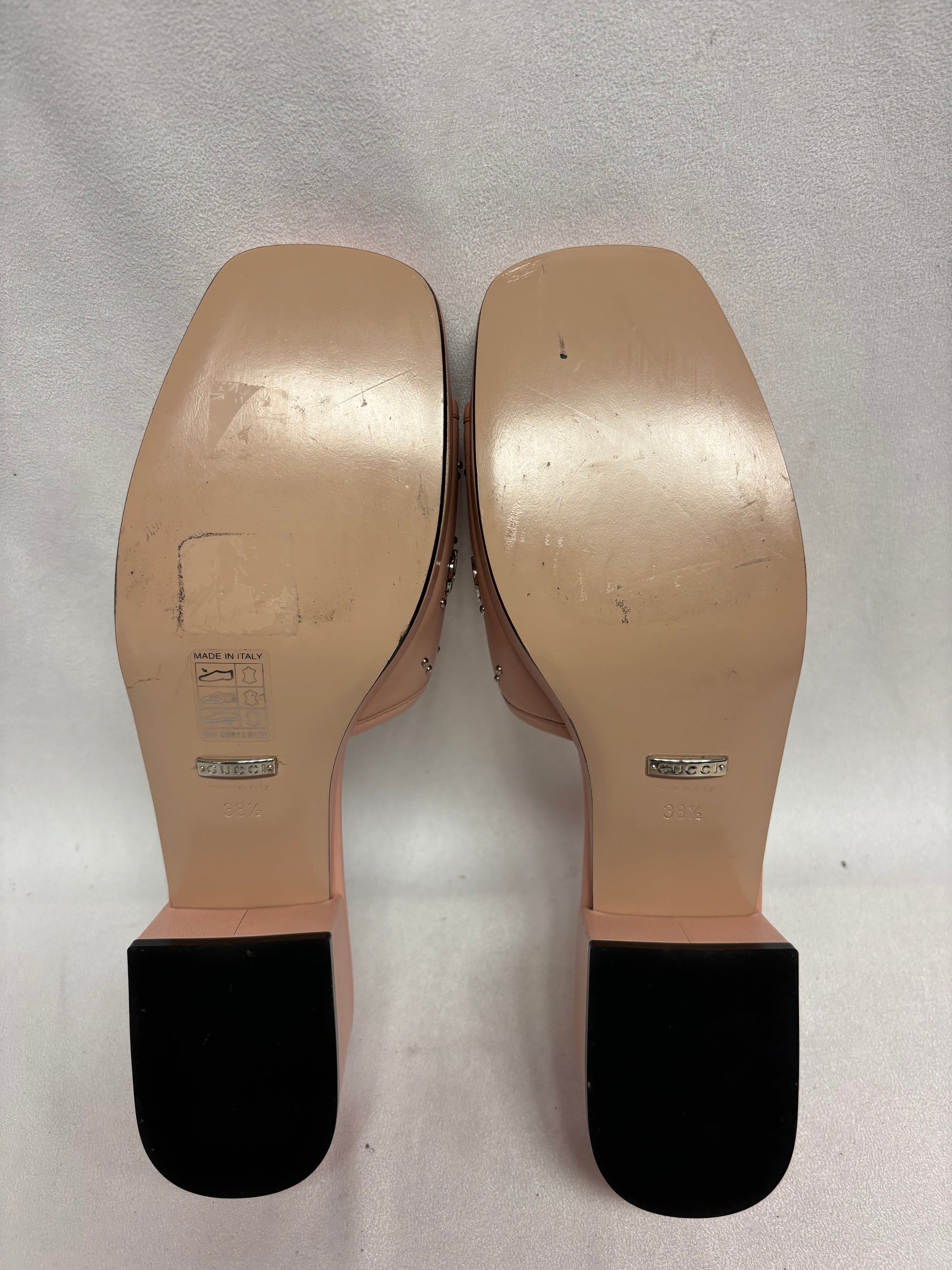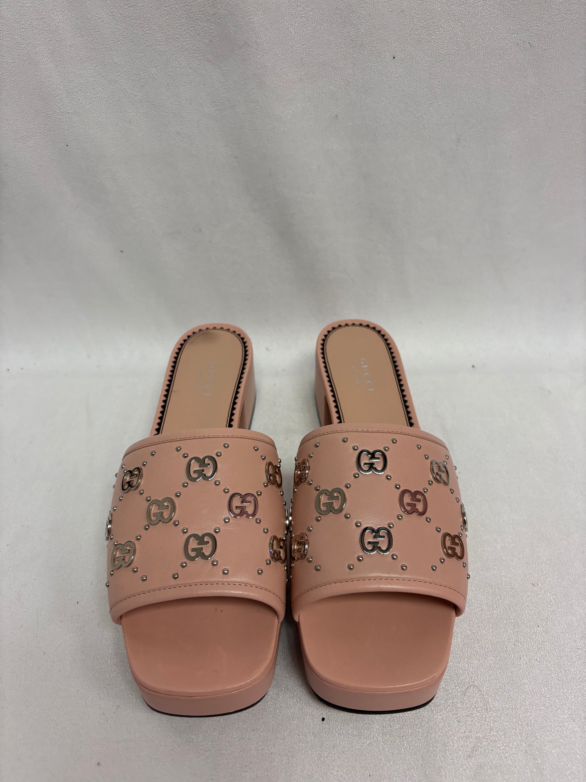 Gucci Nude Leather Sandals with Silver GG Logo Size 38.5