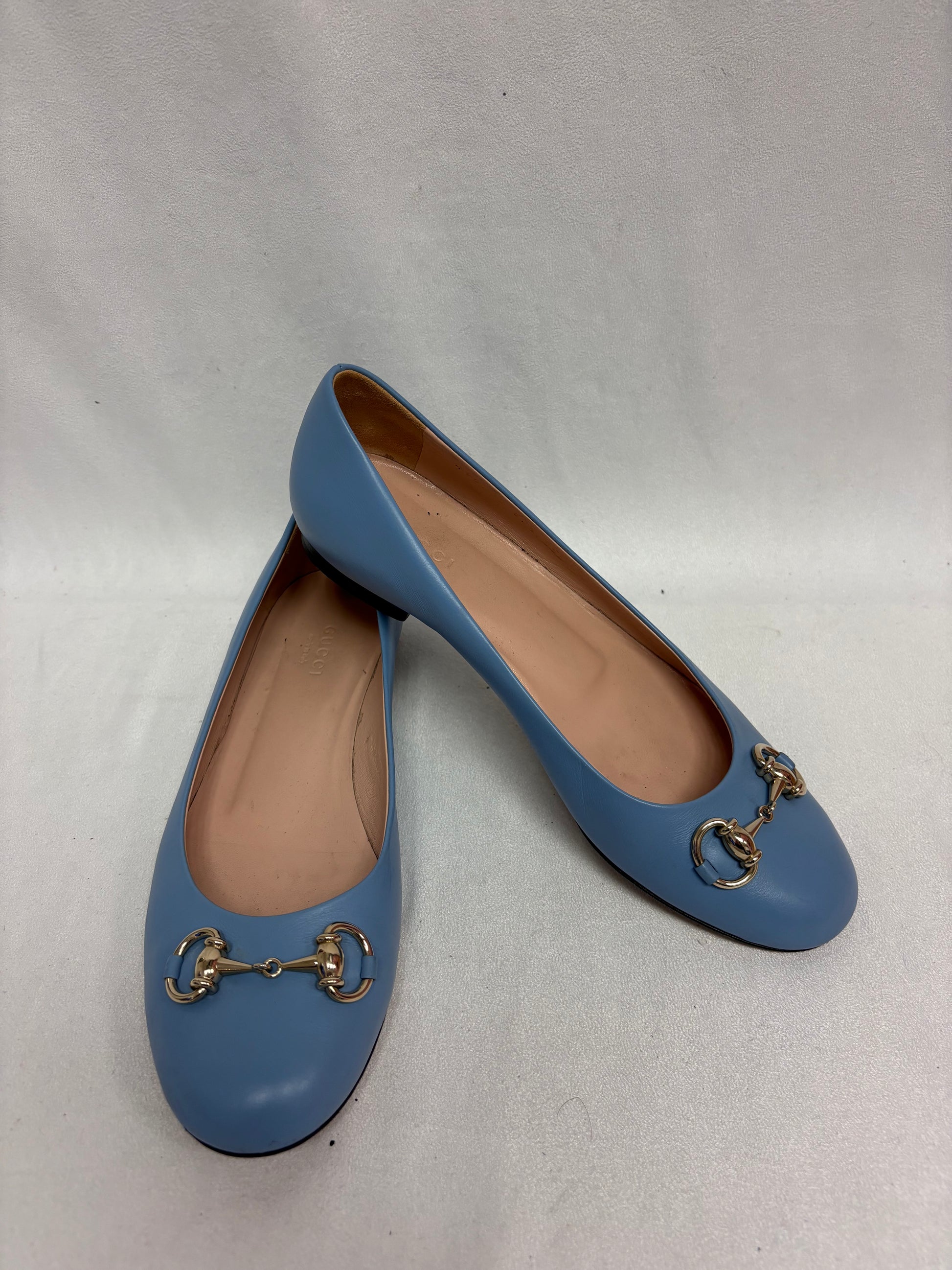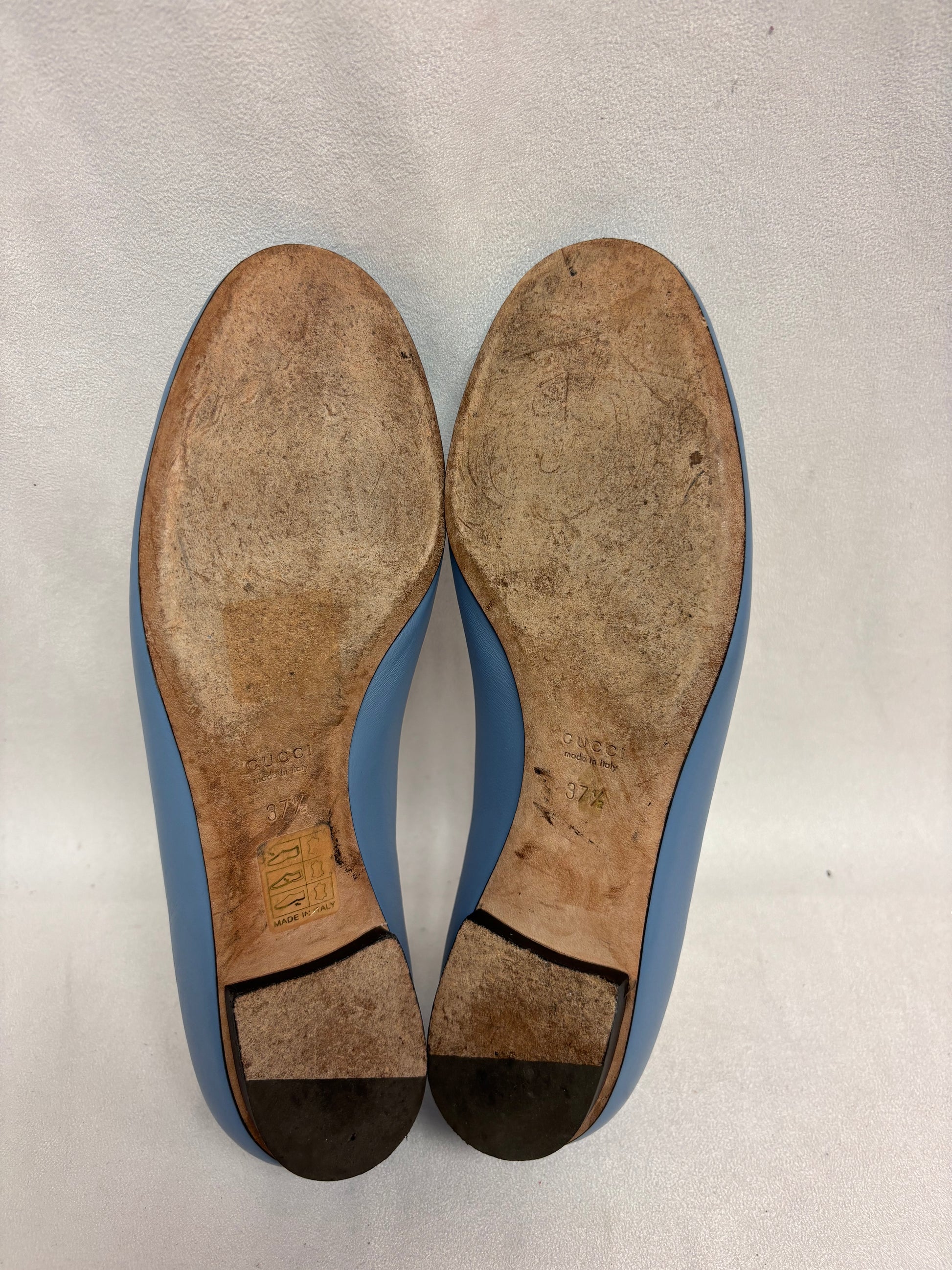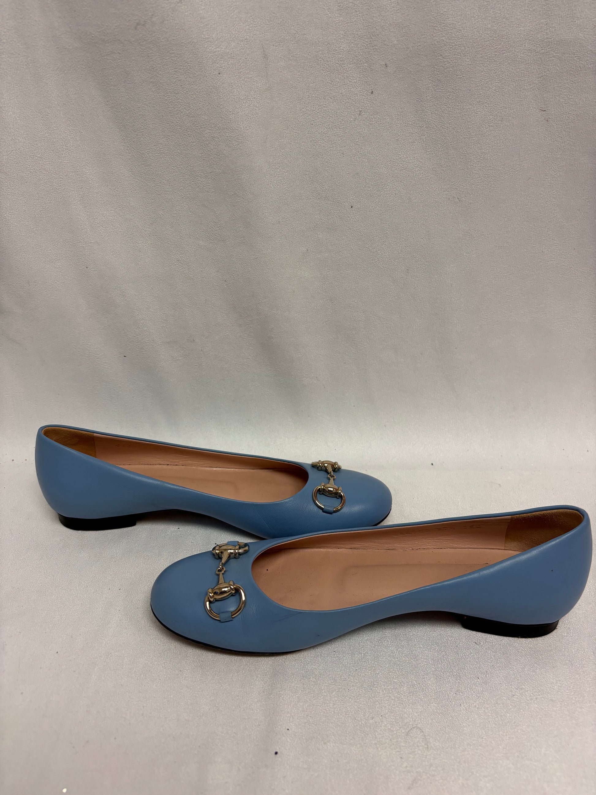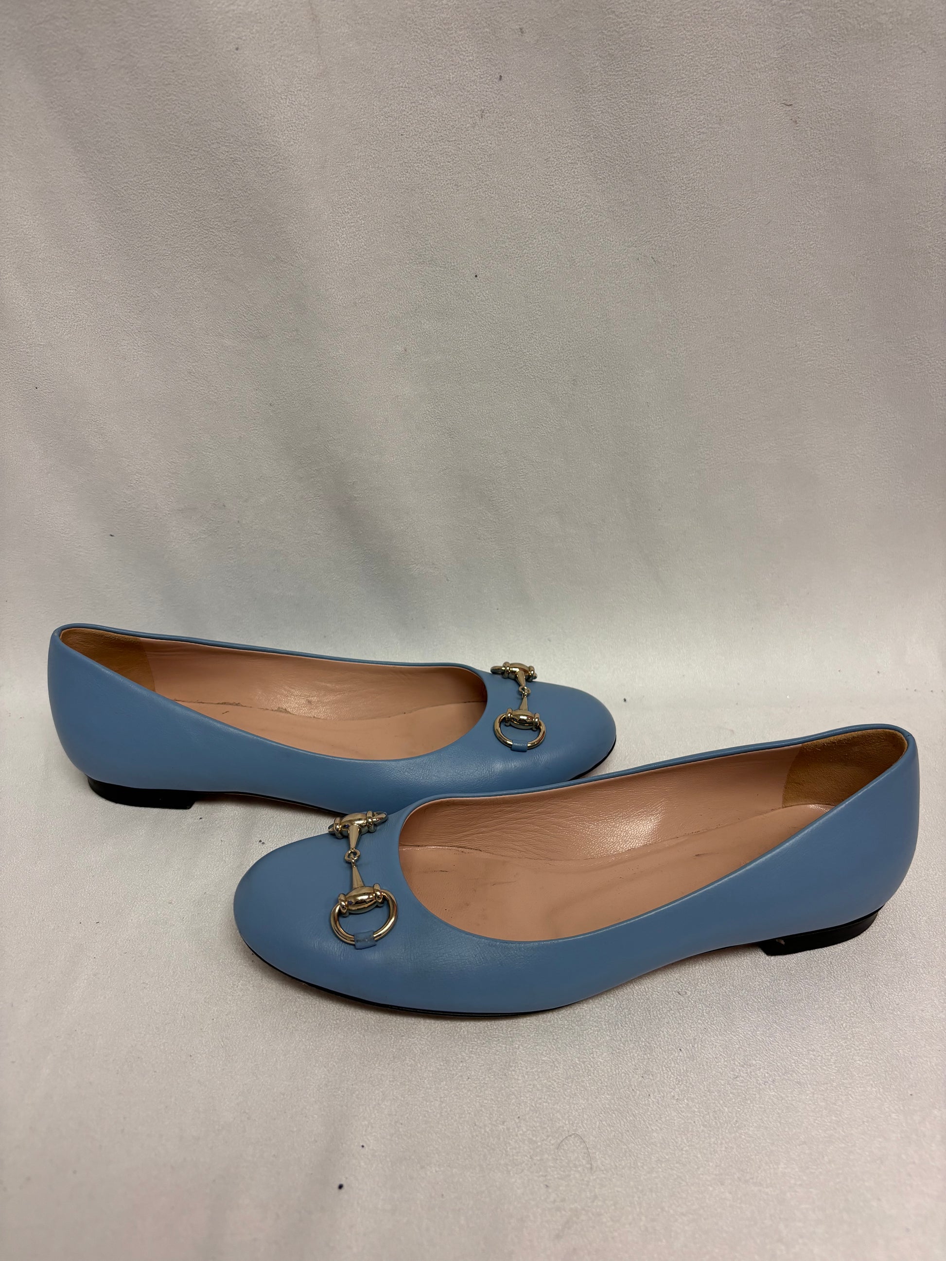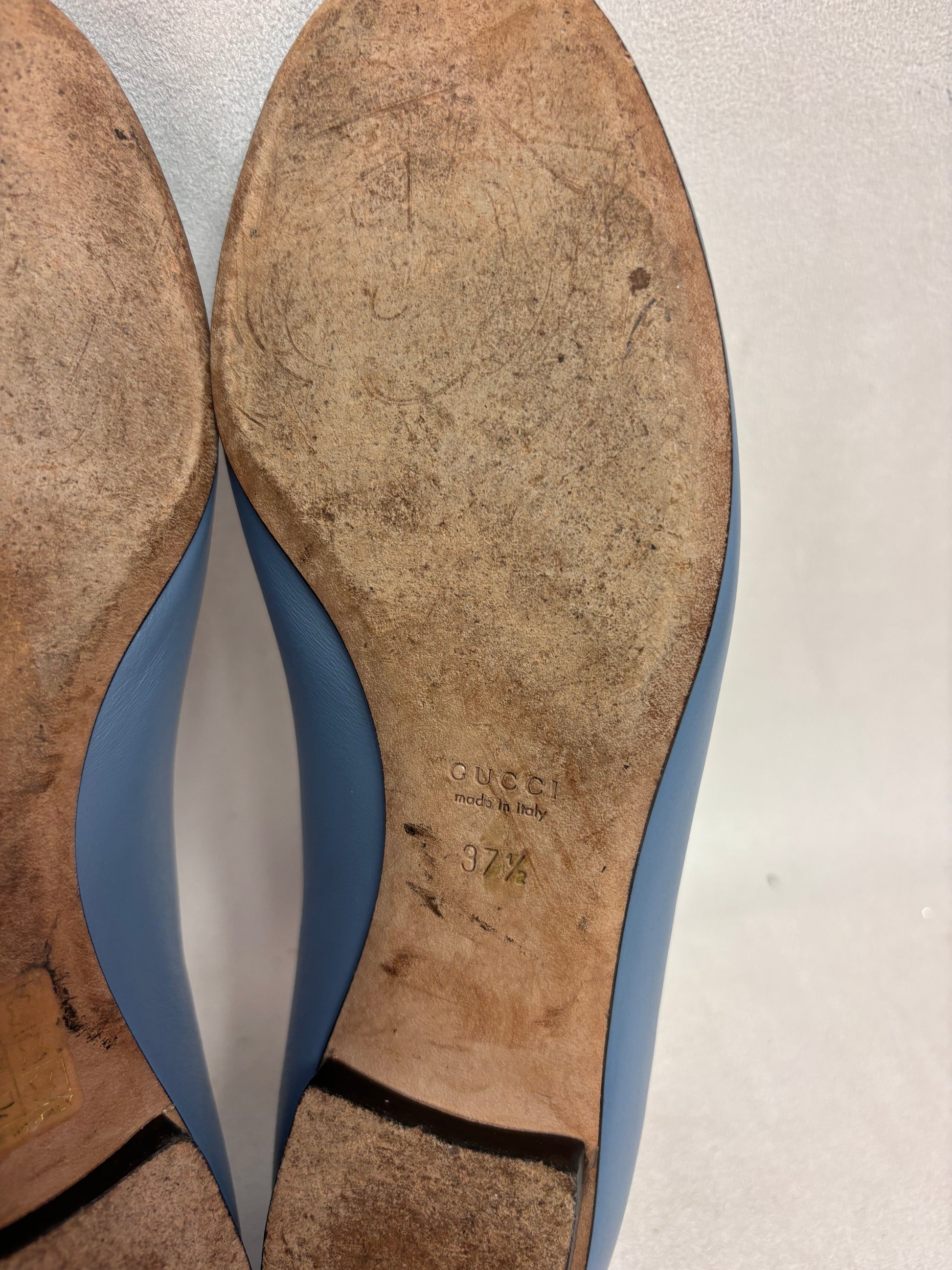 Gucci Baby Blue Round Toe Flats with Gold Horsebit Size 37.5