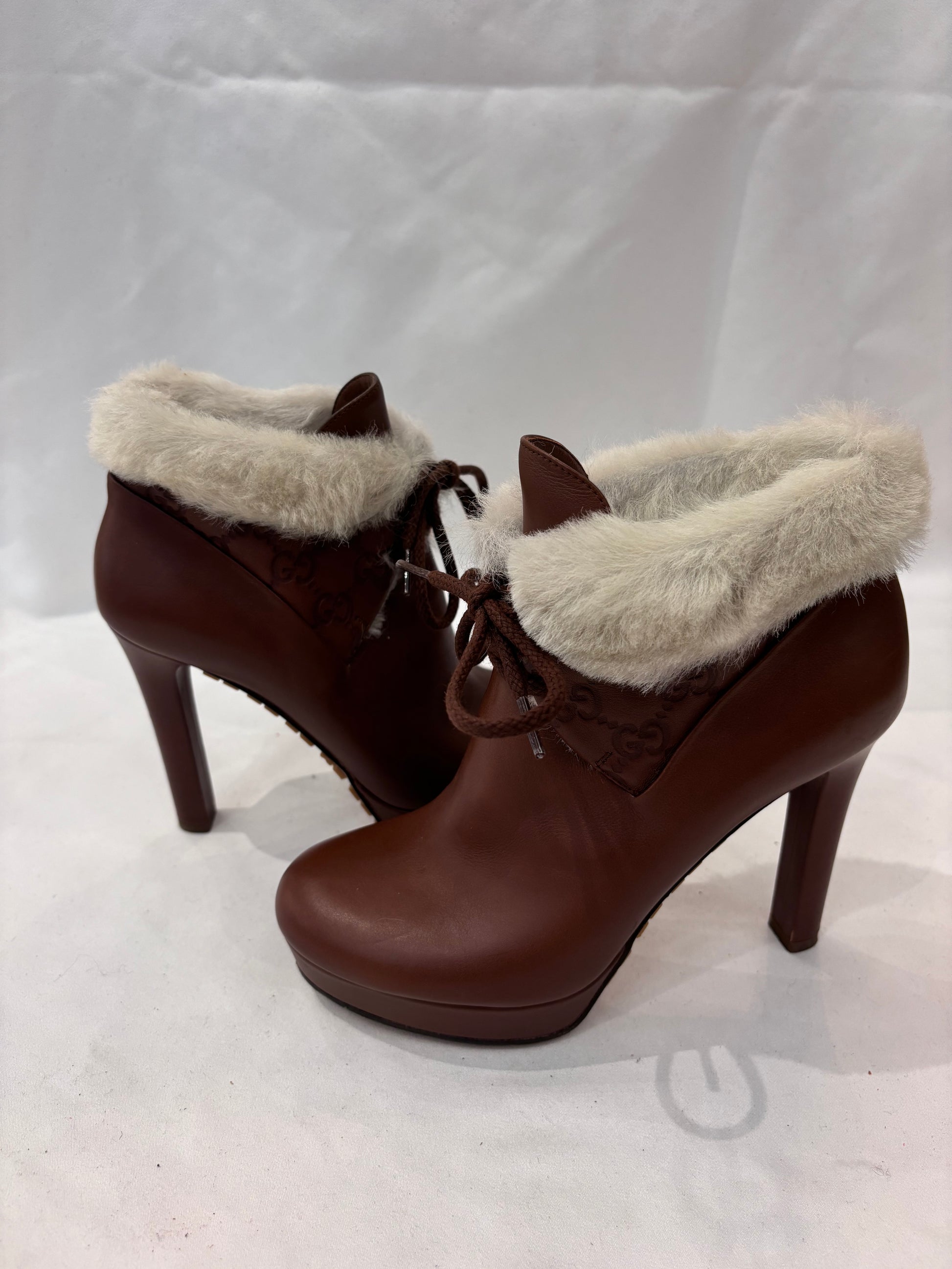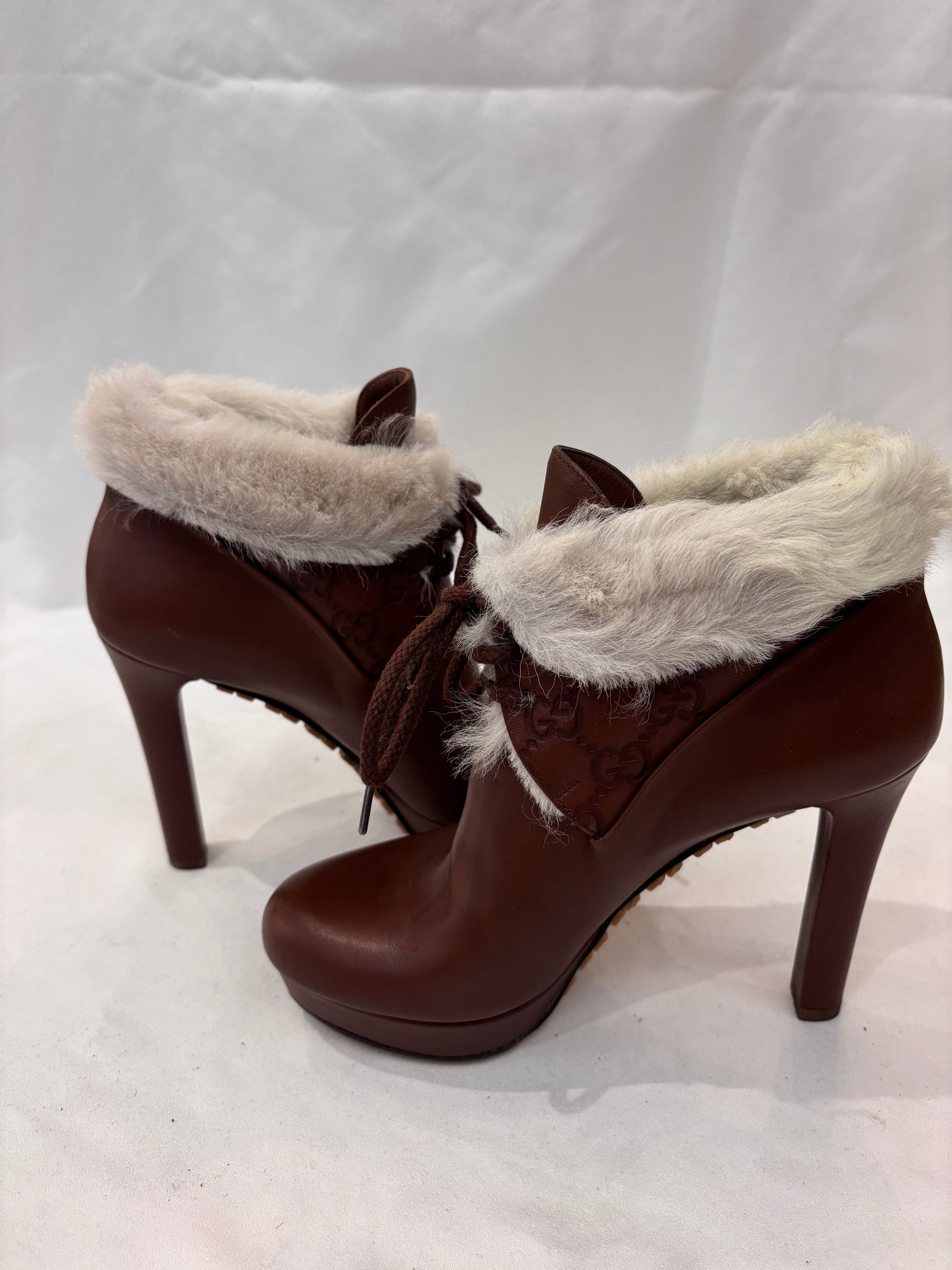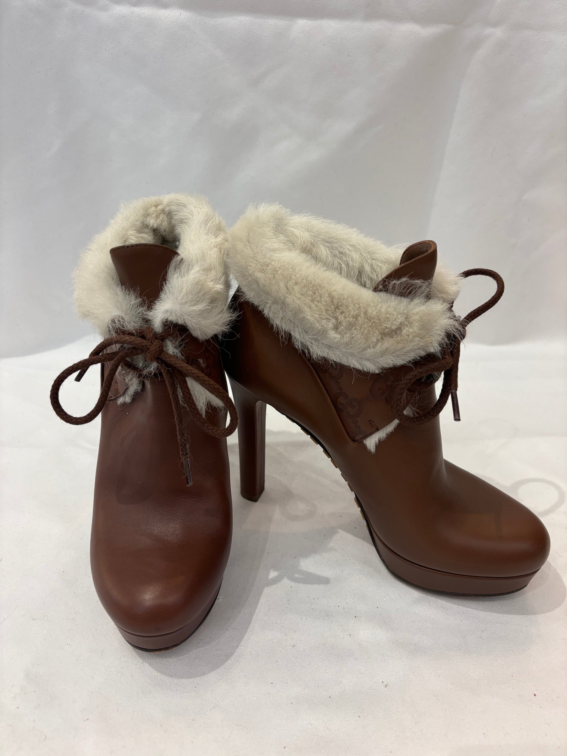 Gucci Brown Shearling Lace Up Booties Size 36.5