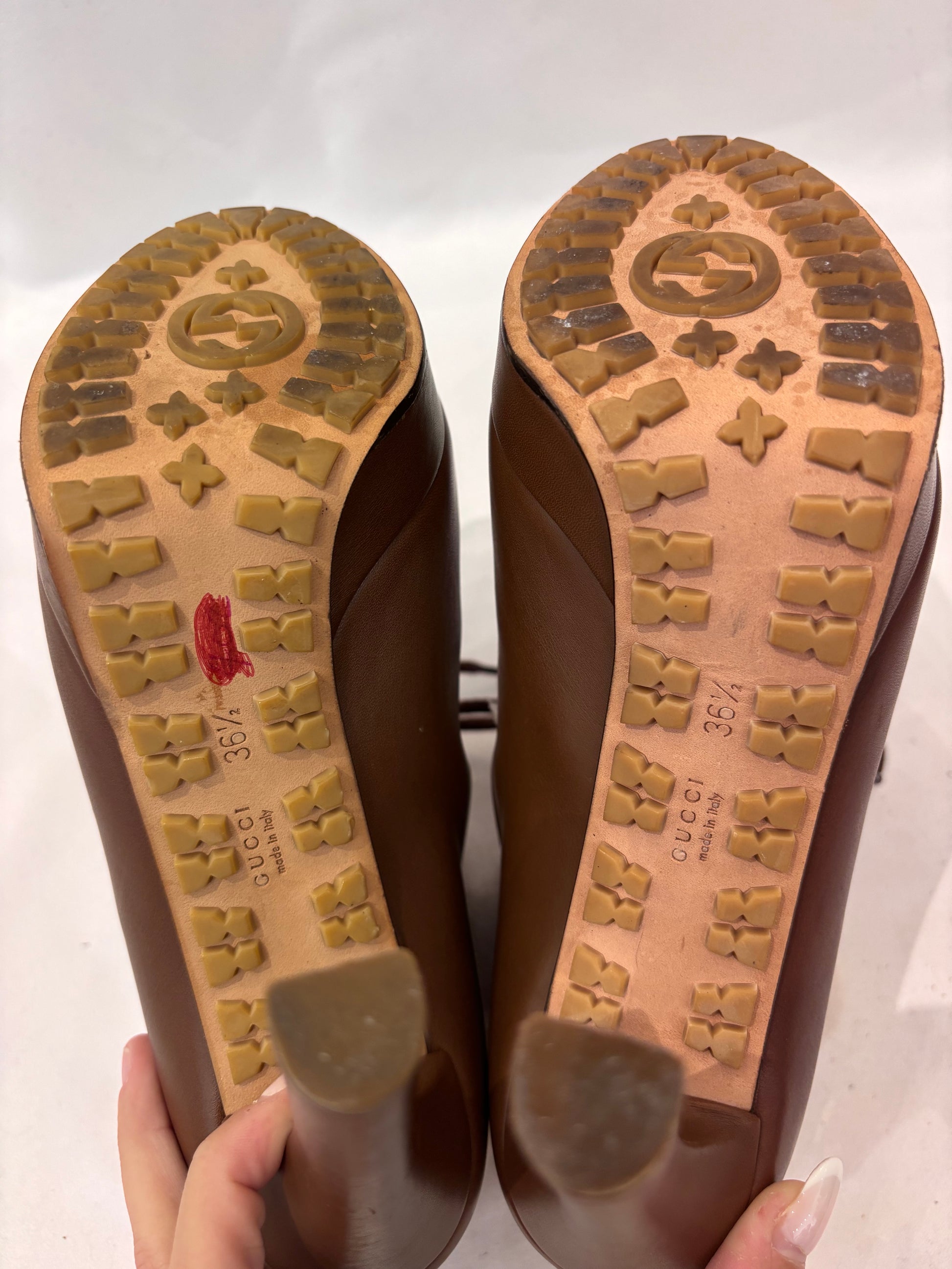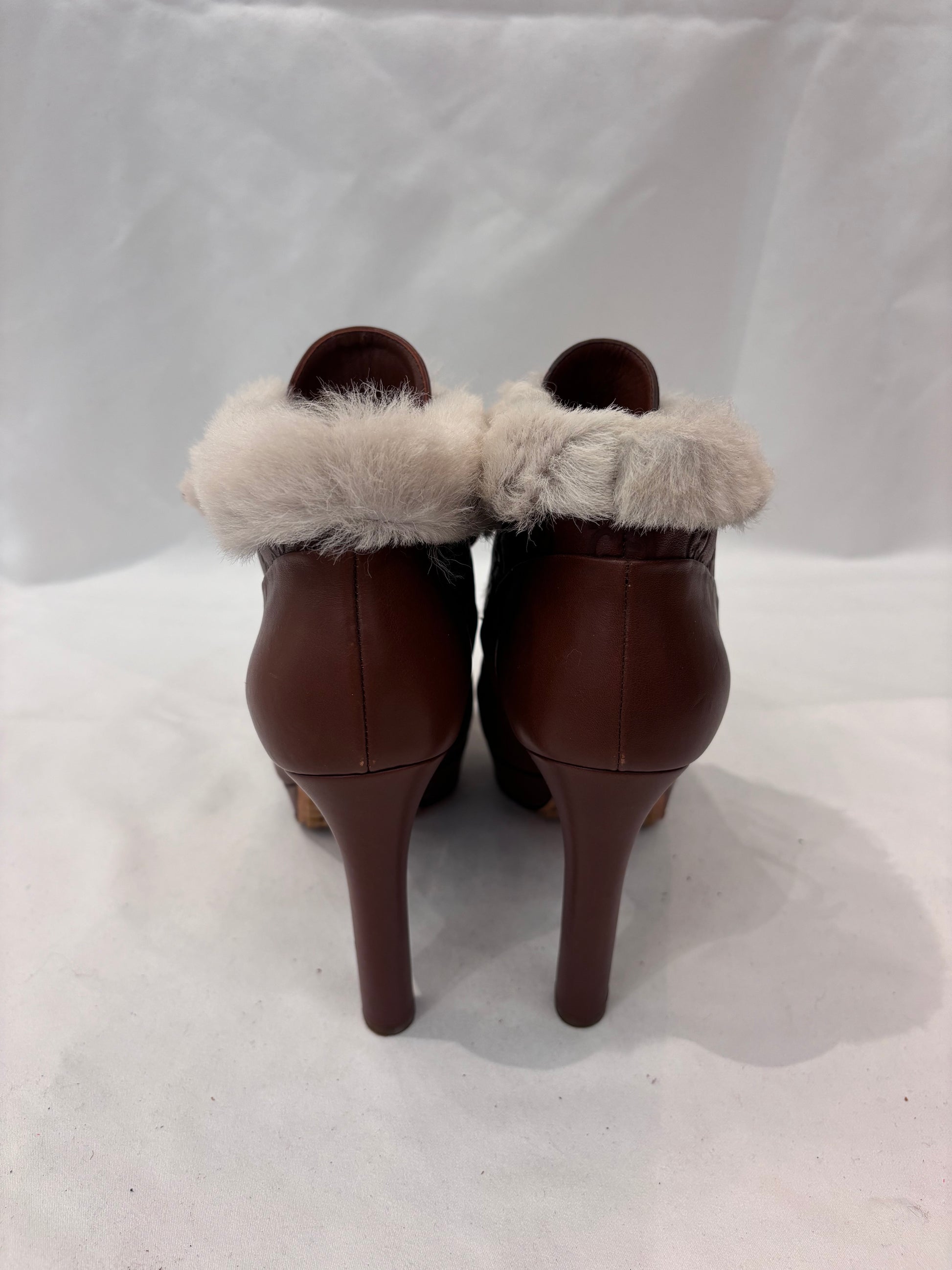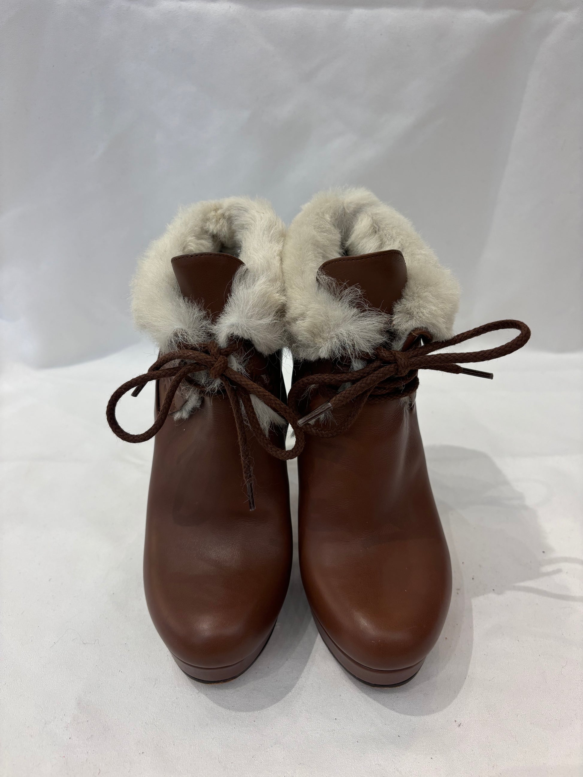 Gucci Brown Shearling Lace Up Booties Size 36.5