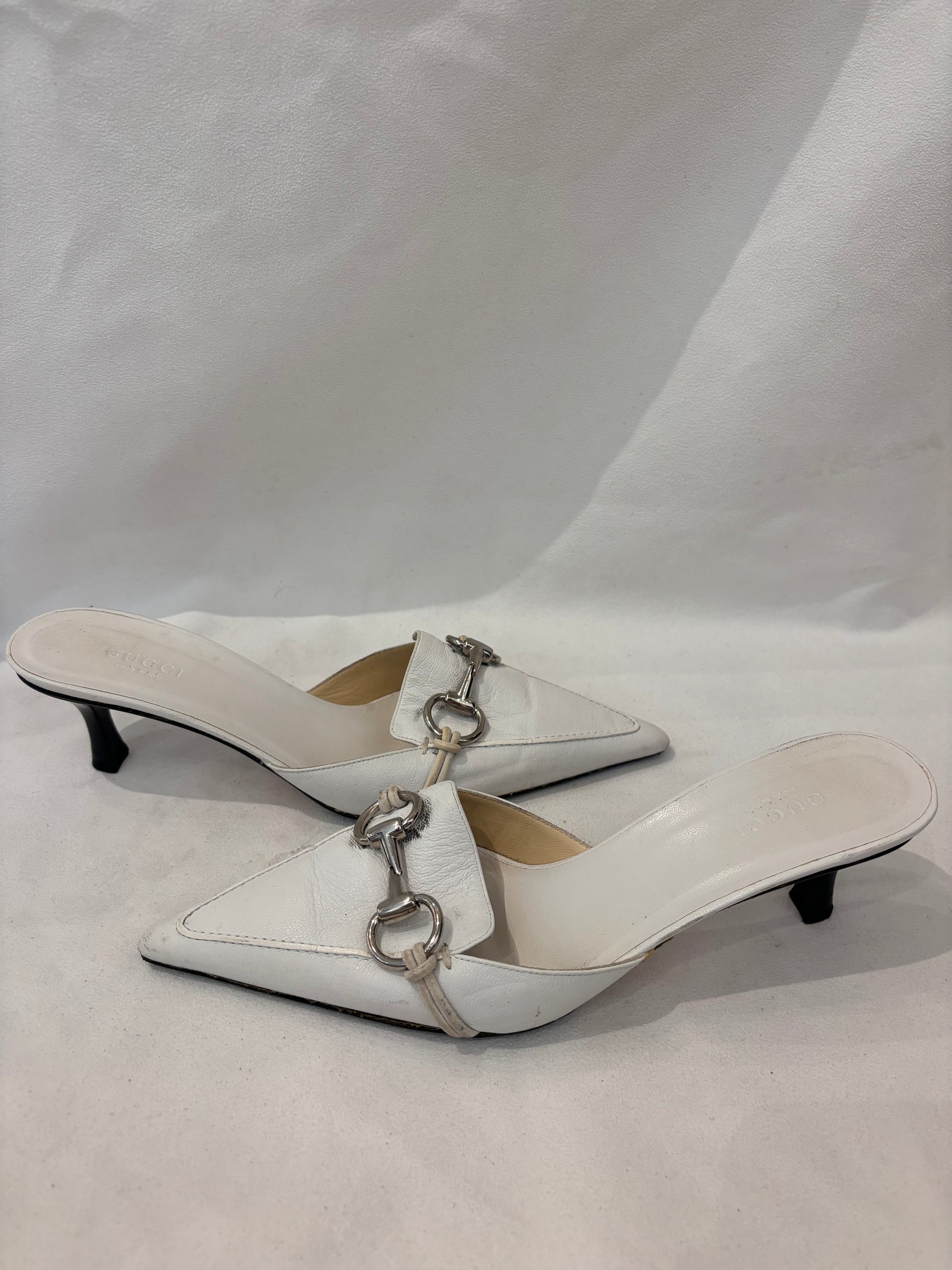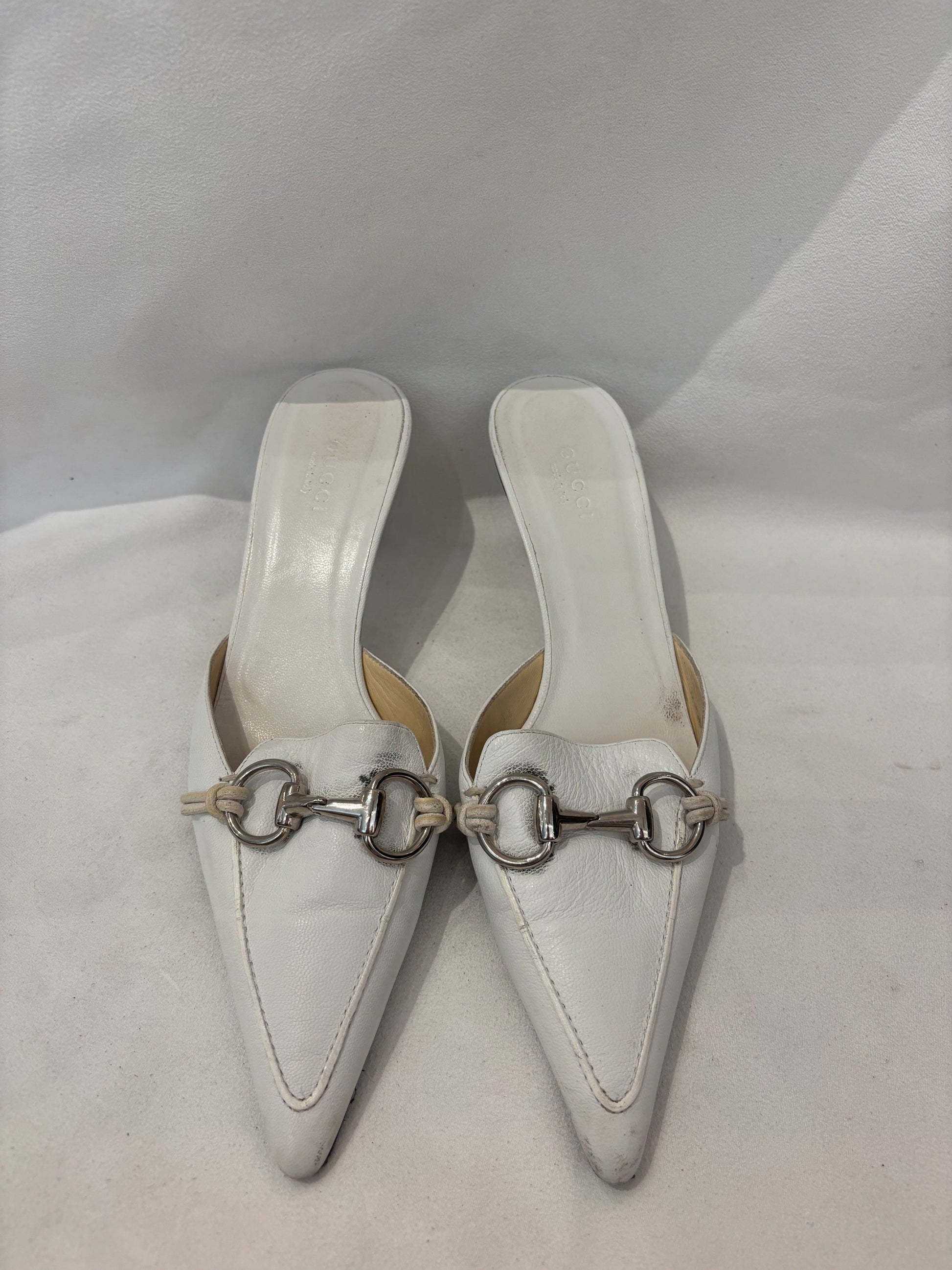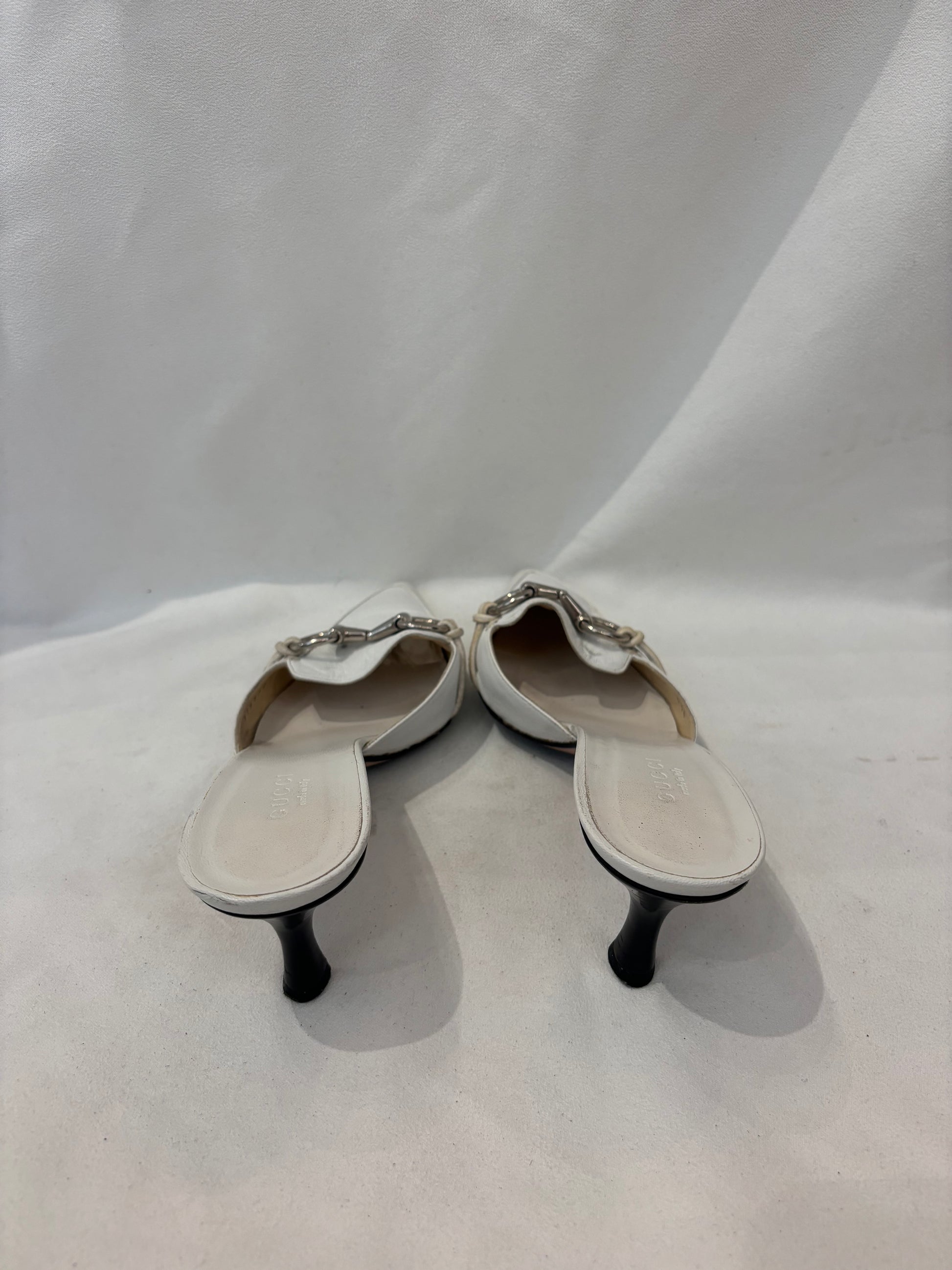 Gucci White Pointy Mules with Silver Horsebit Size 36.5