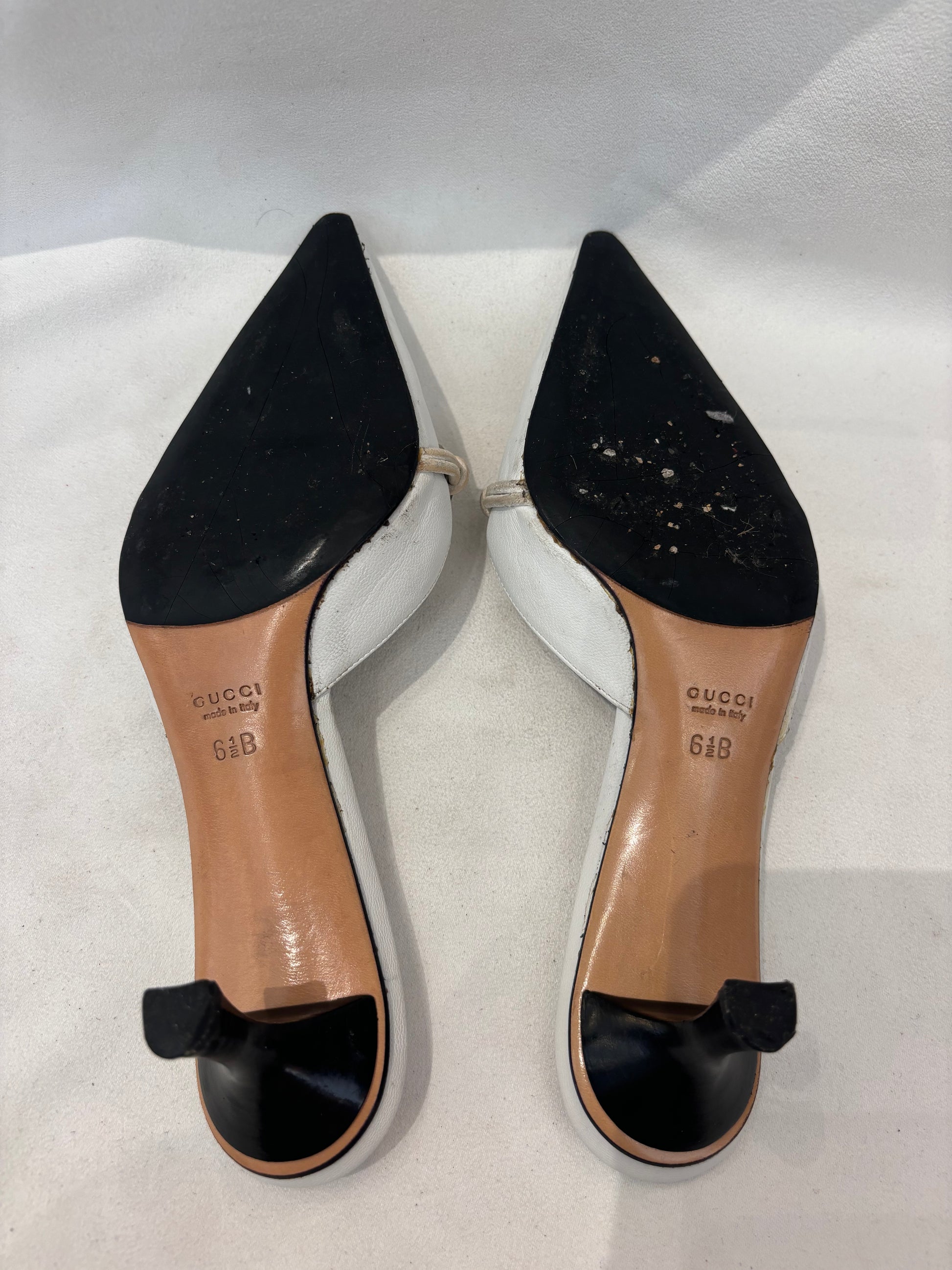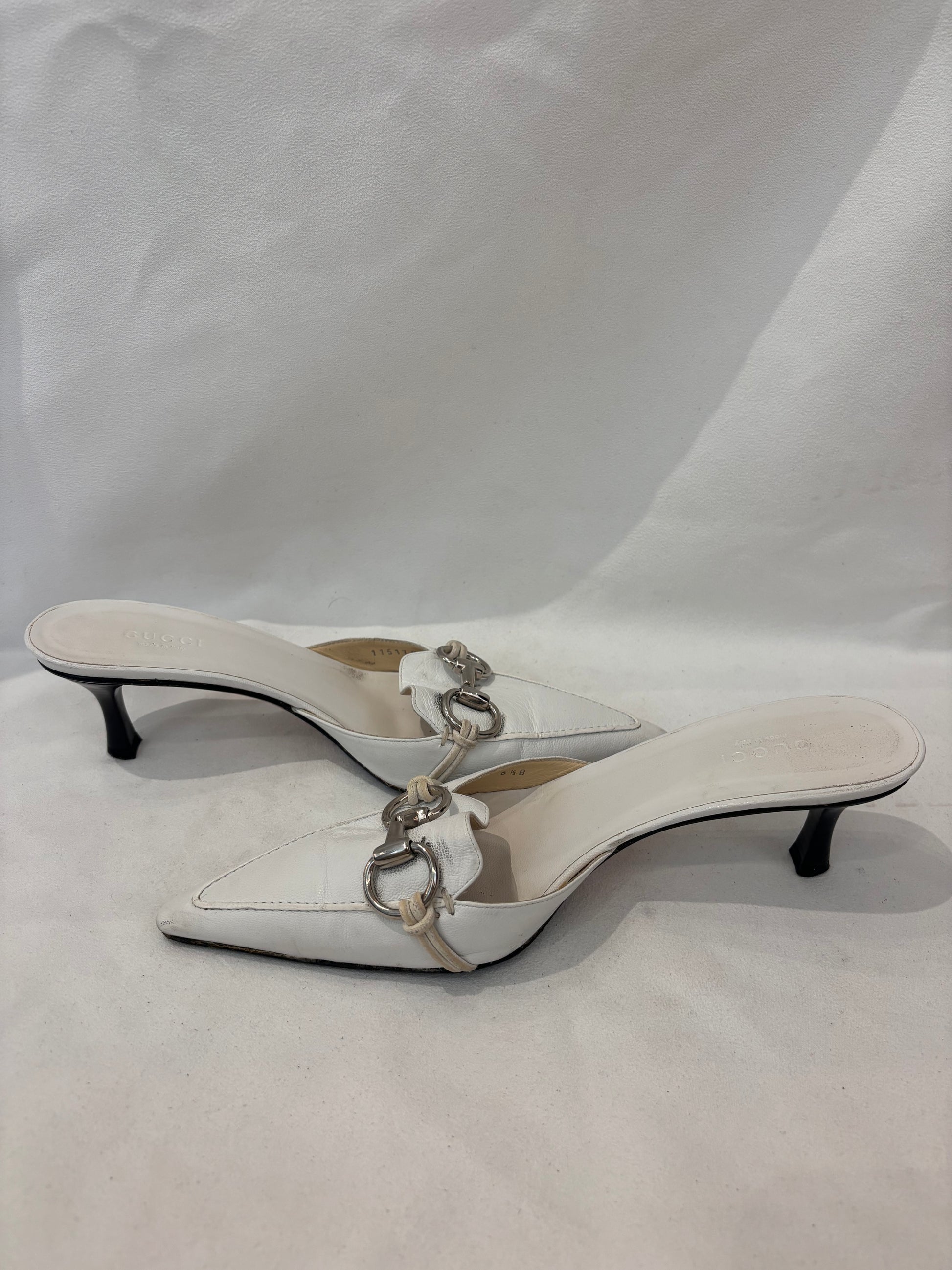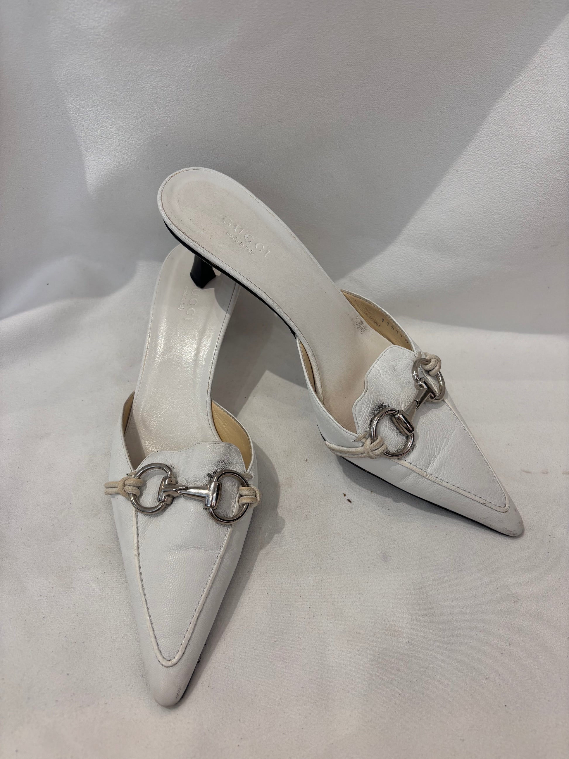 Gucci White Pointy Mules with Silver Horsebit Size 36.5