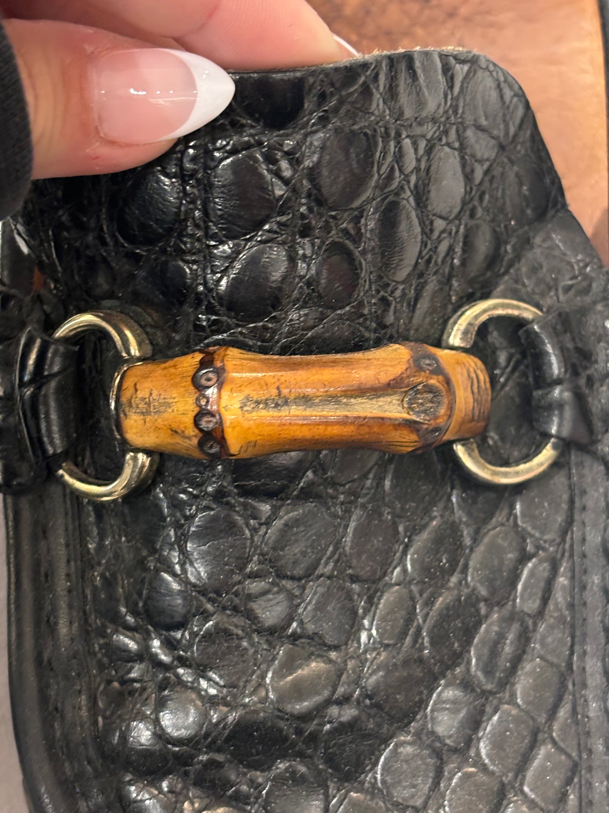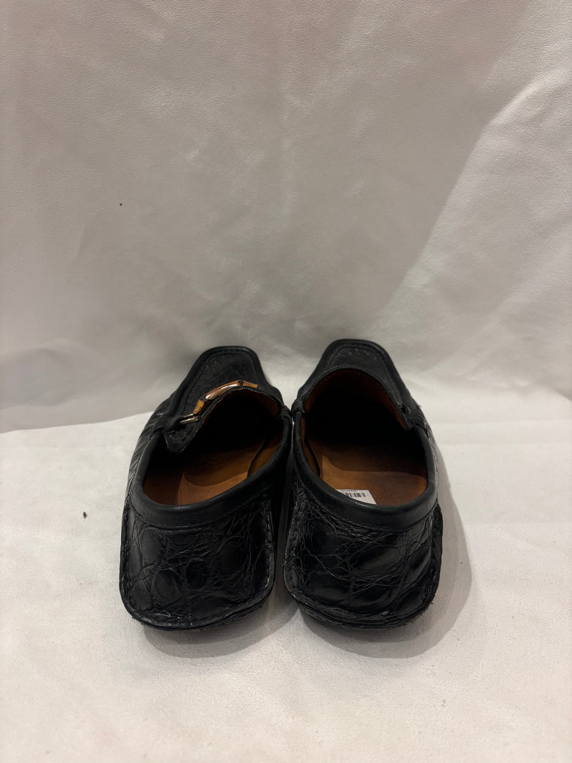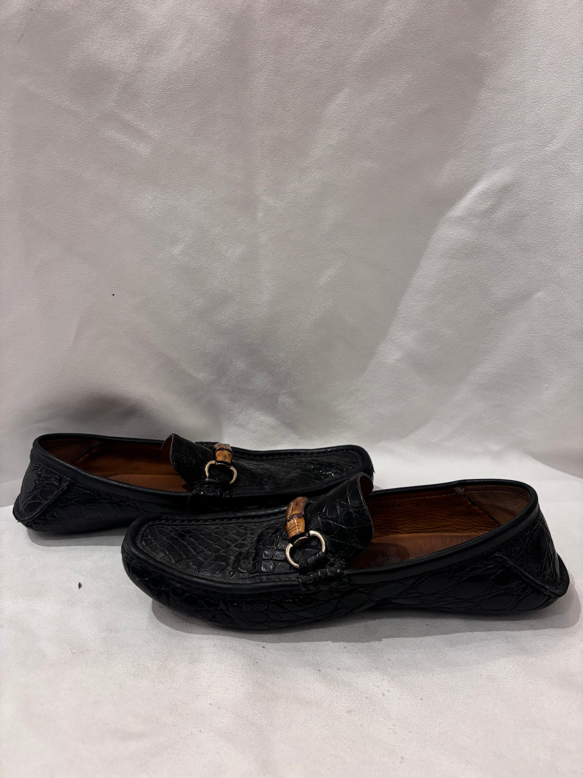 Gucci Black Crocodile Driving Moccasins with Bamboo Size 40