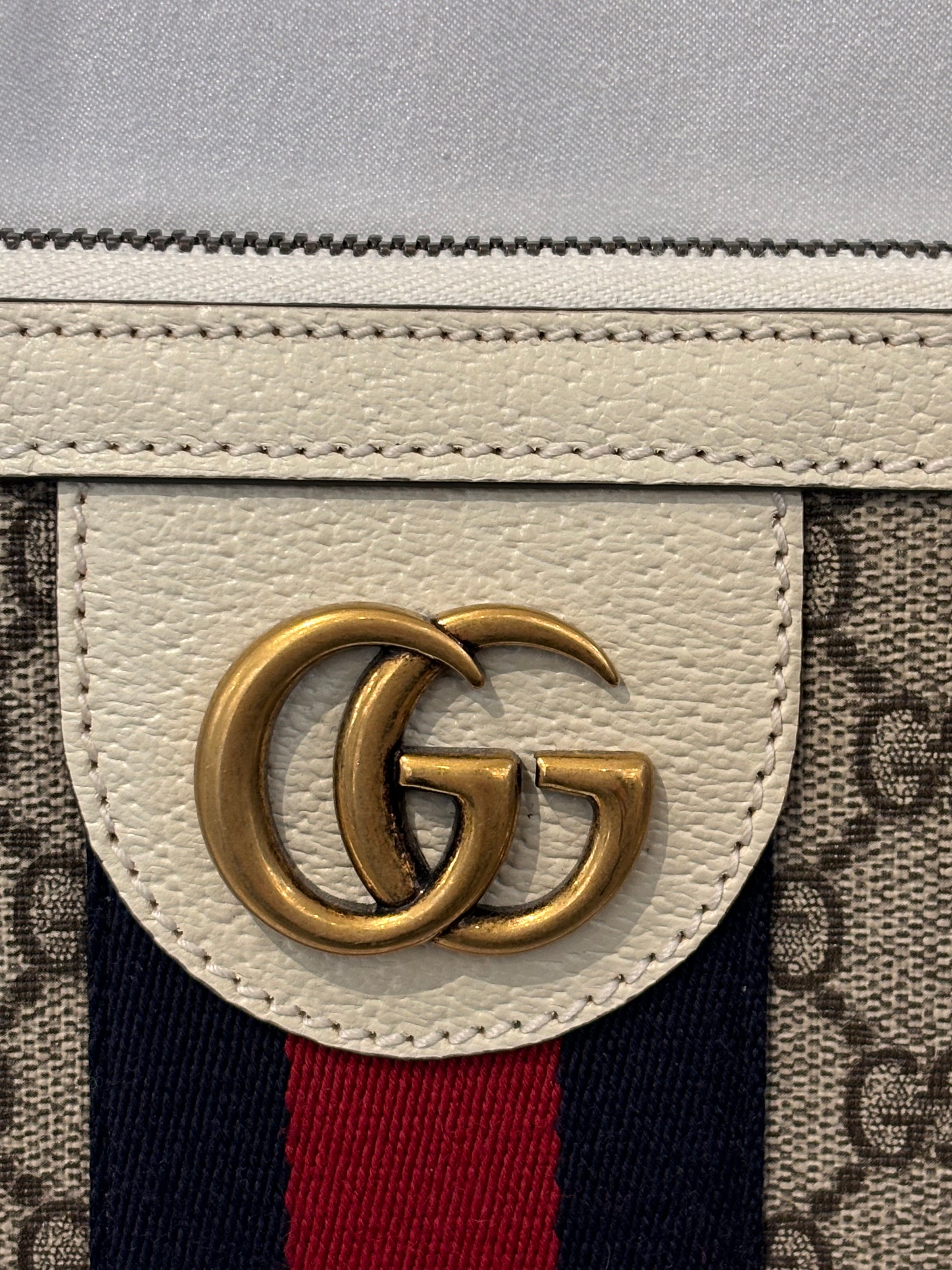 Gucci Brown Monogram/White Ophidia Case with Chain Strap