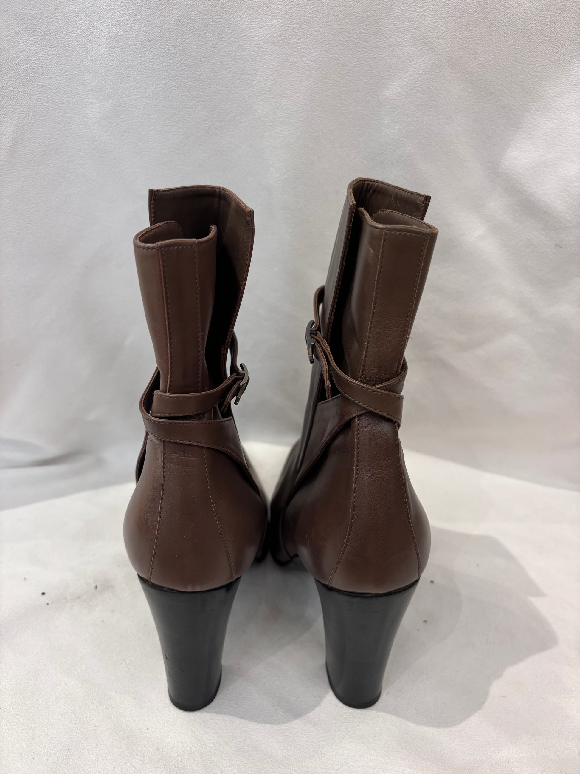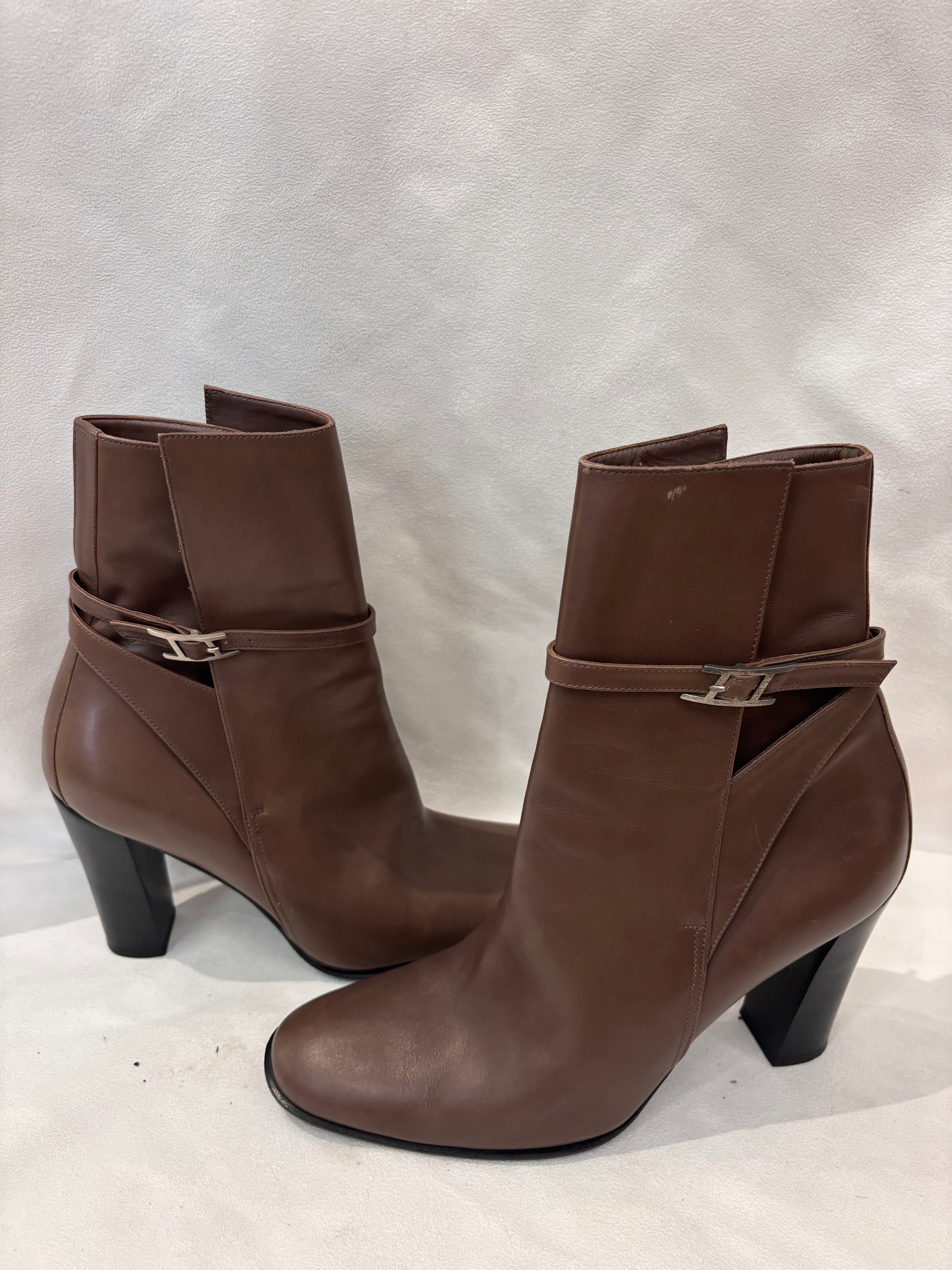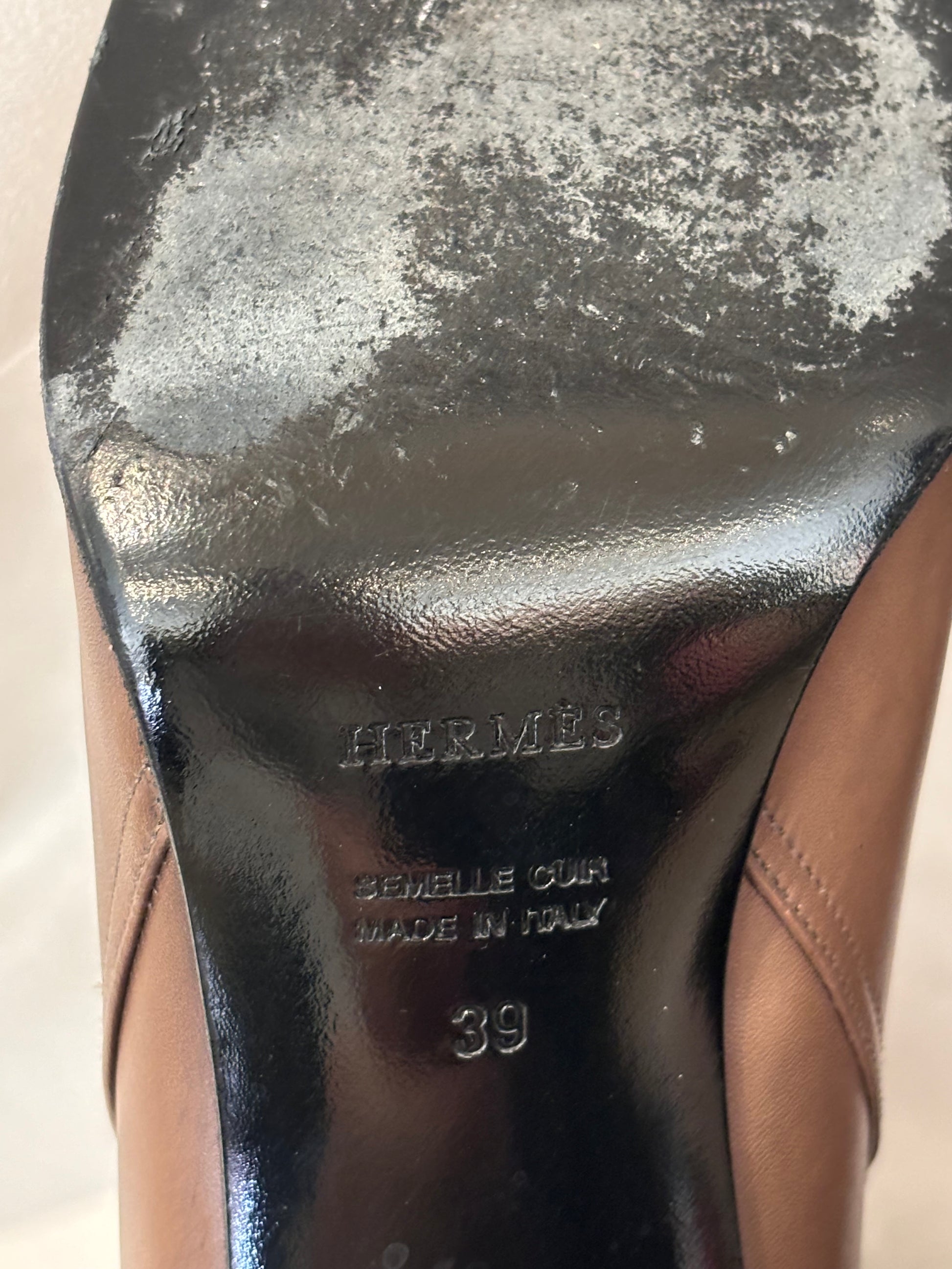 Hermes Brown High Heel Ankle Booties with Ankle Wrap Strap Size 39