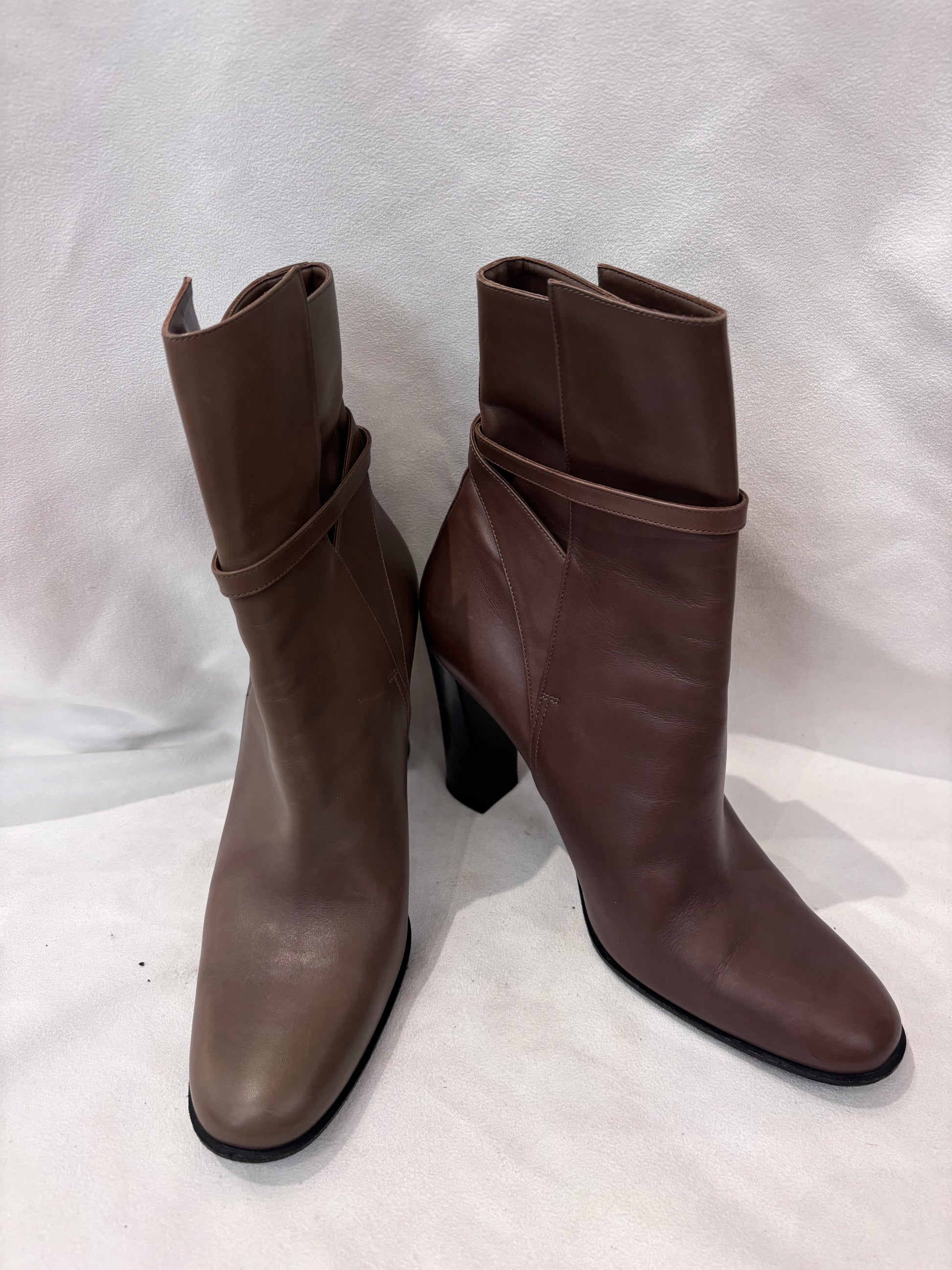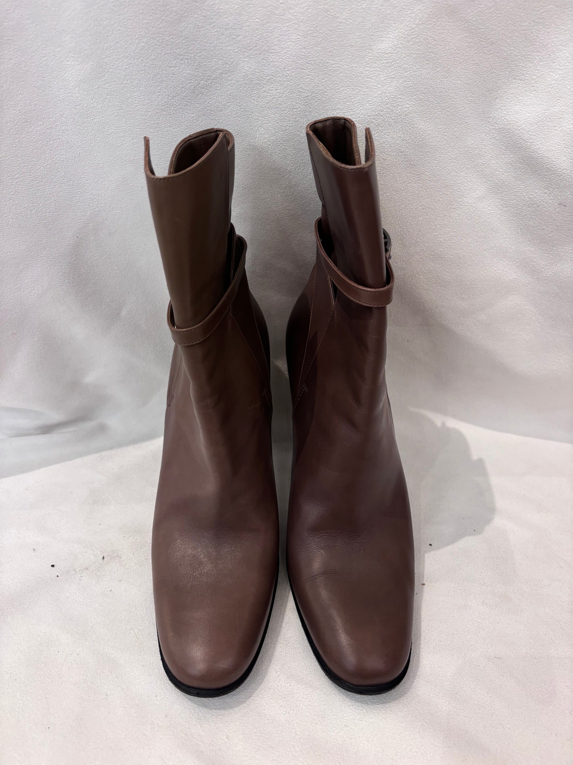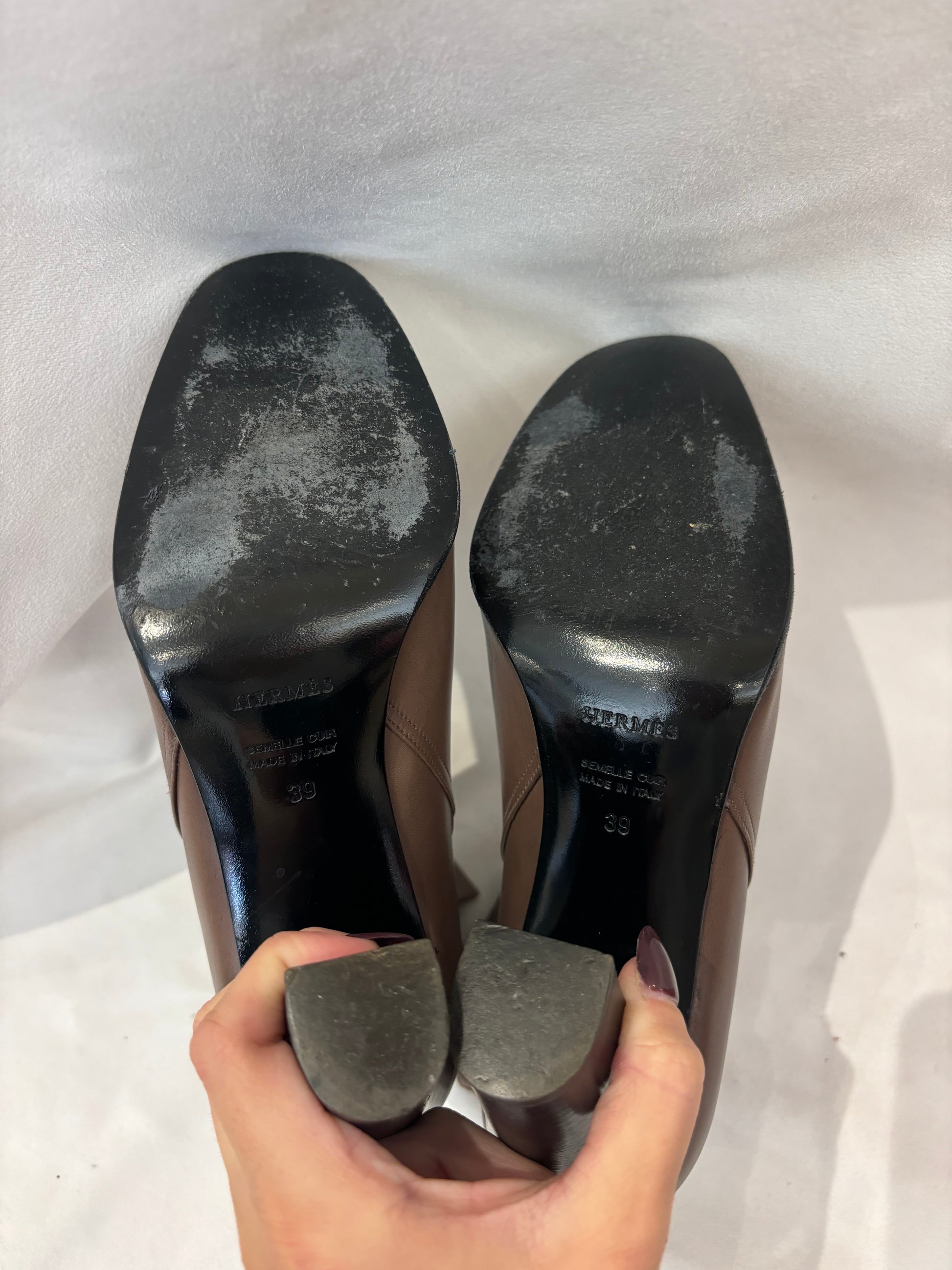 Hermes Brown High Heel Ankle Booties with Ankle Wrap Strap Size 39
