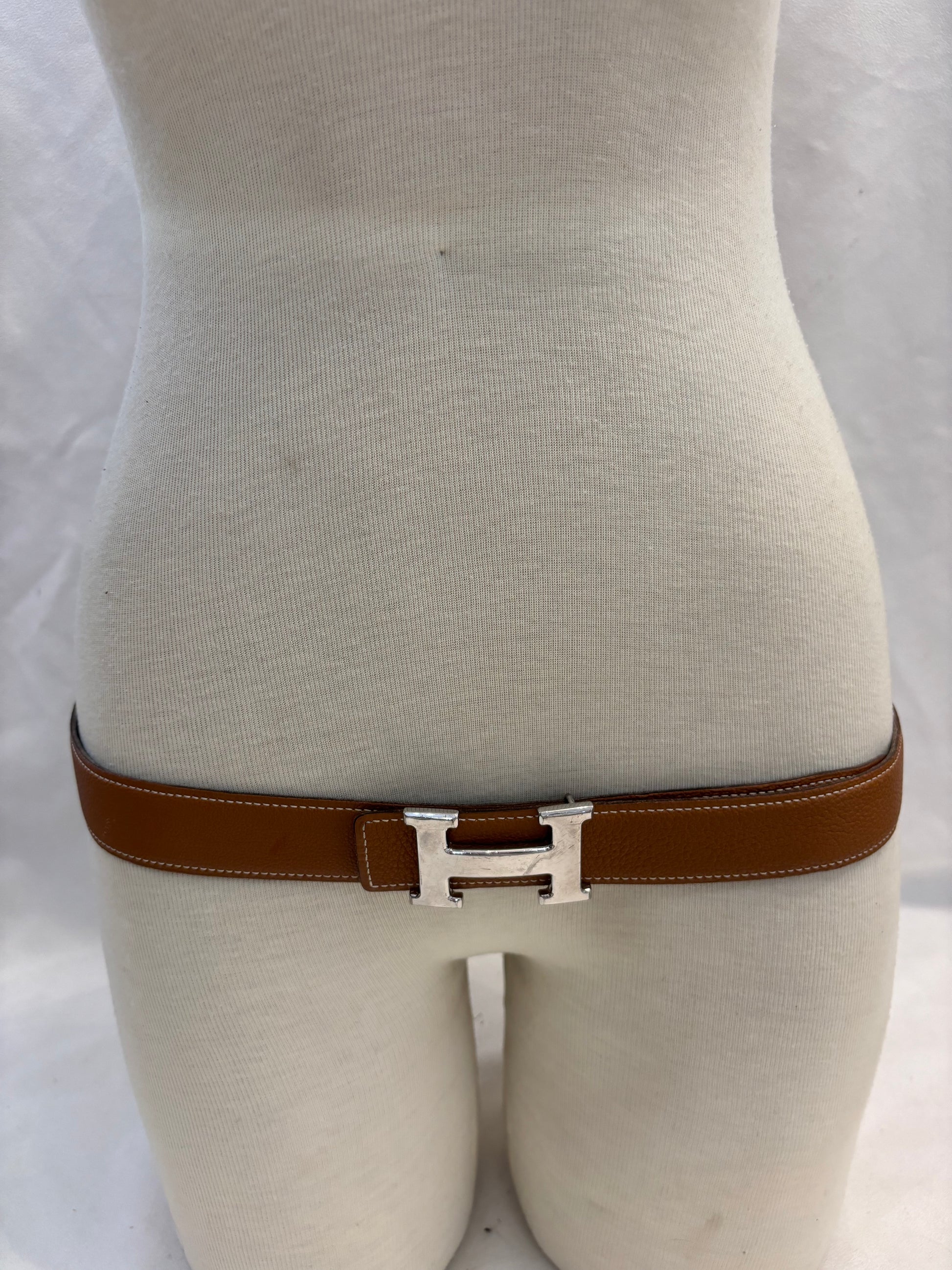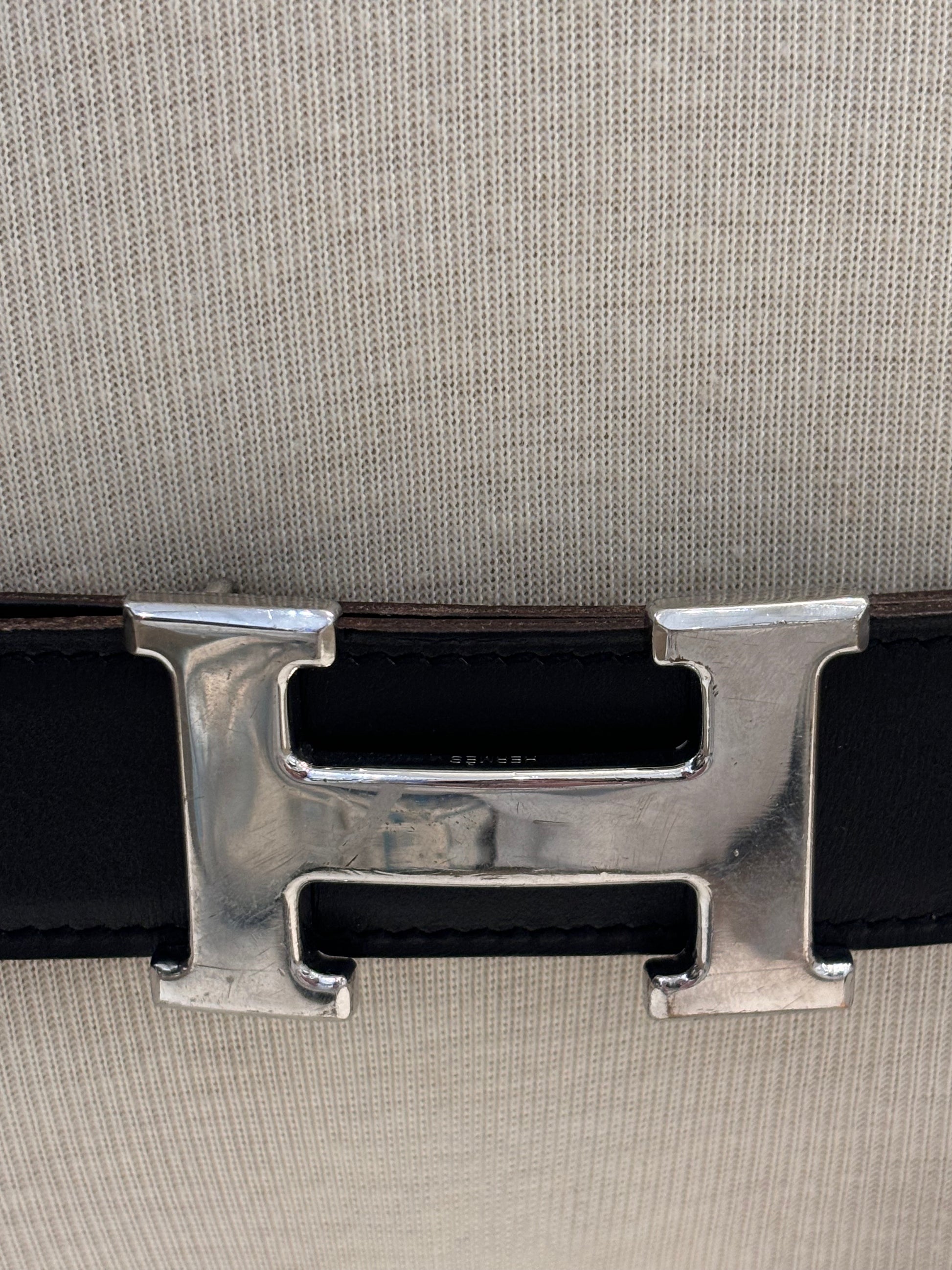 Hermes Black/Gold Reversible Belt with Silver Buckle