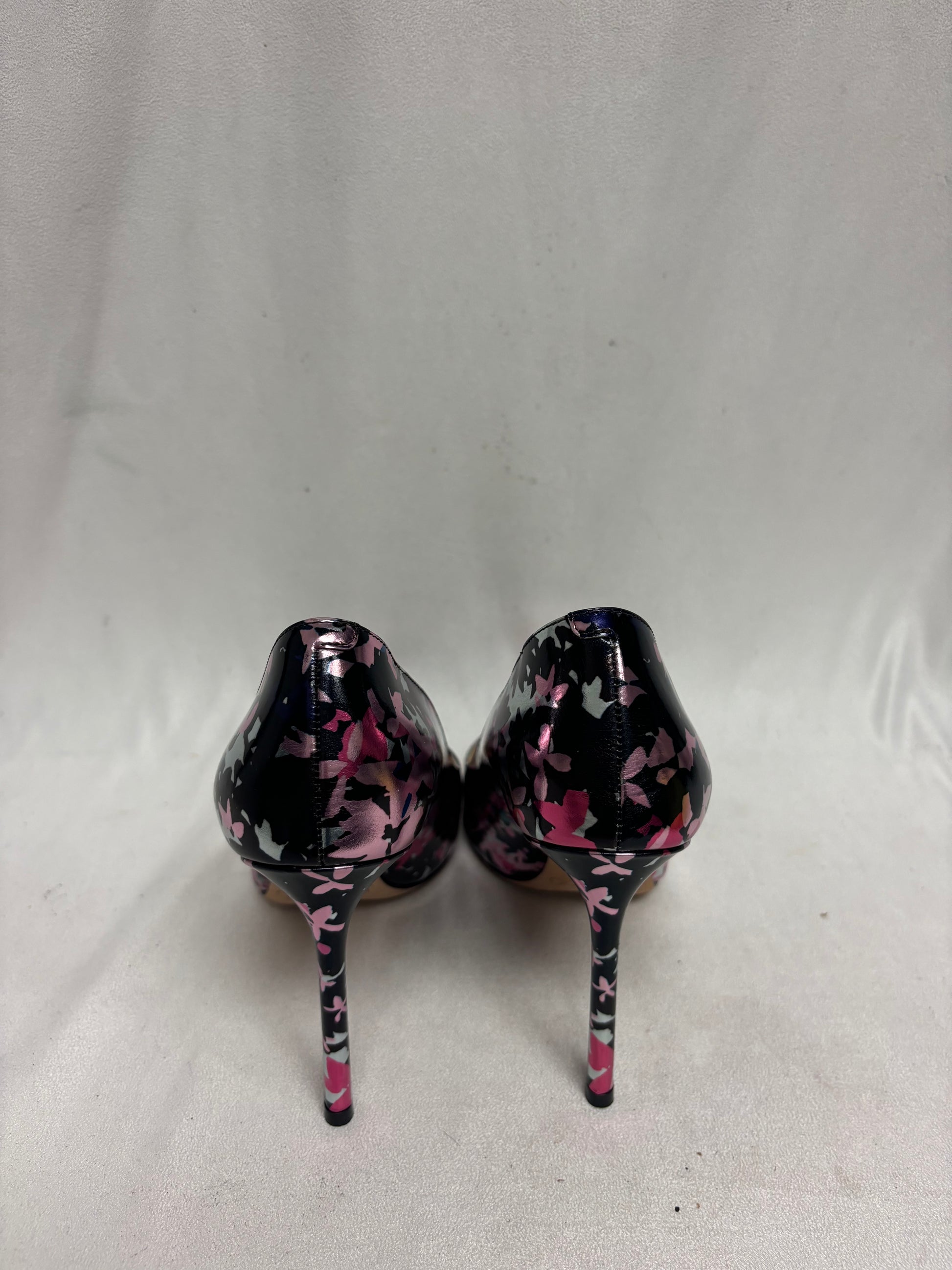Jimmy Choo Black/Silver/Pink Floral Mirror Romy Pump Size 38