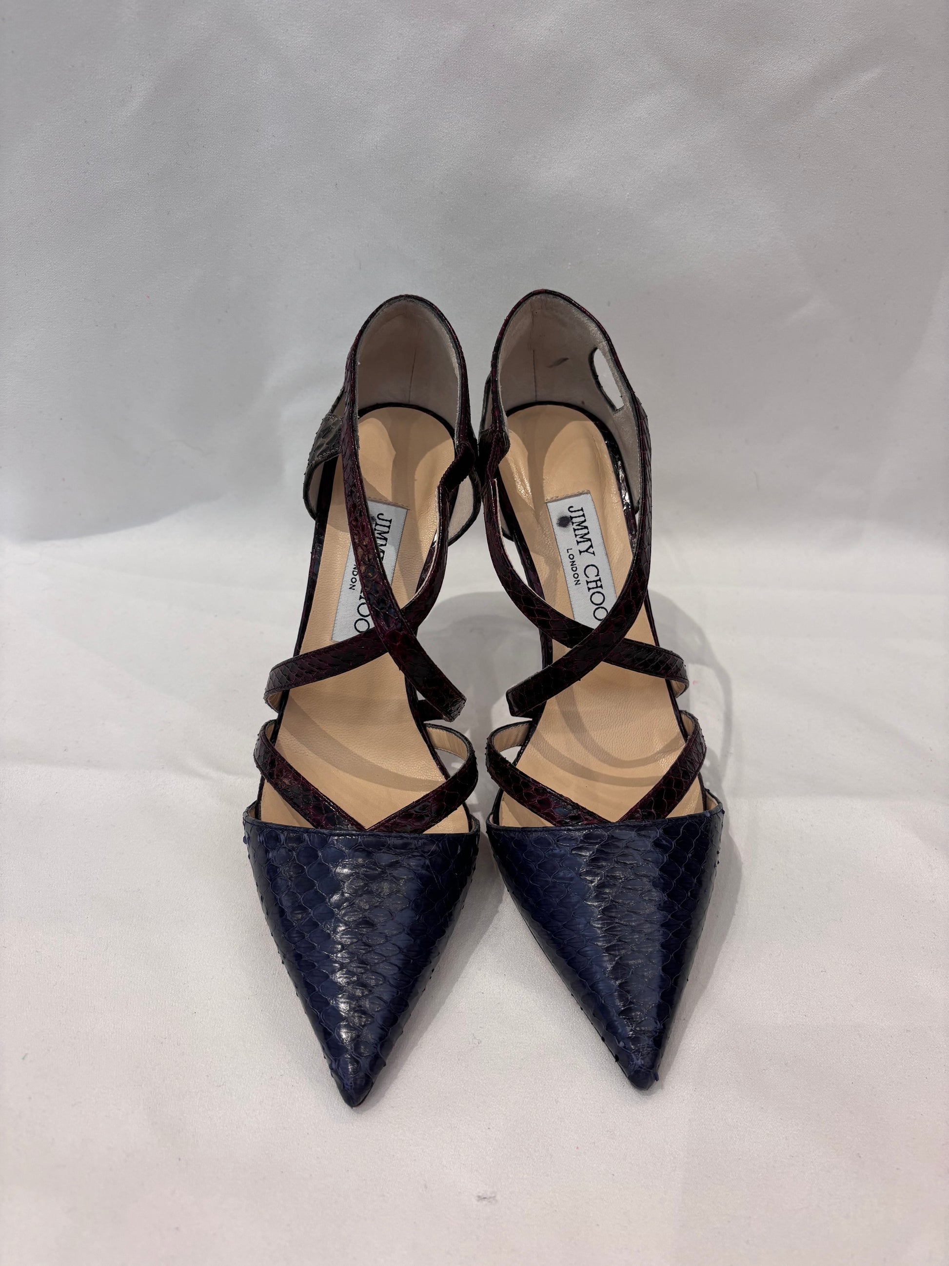 Jimmy Choo Snakeskin Pumps with Blue, Burgundy and Grey Size 37