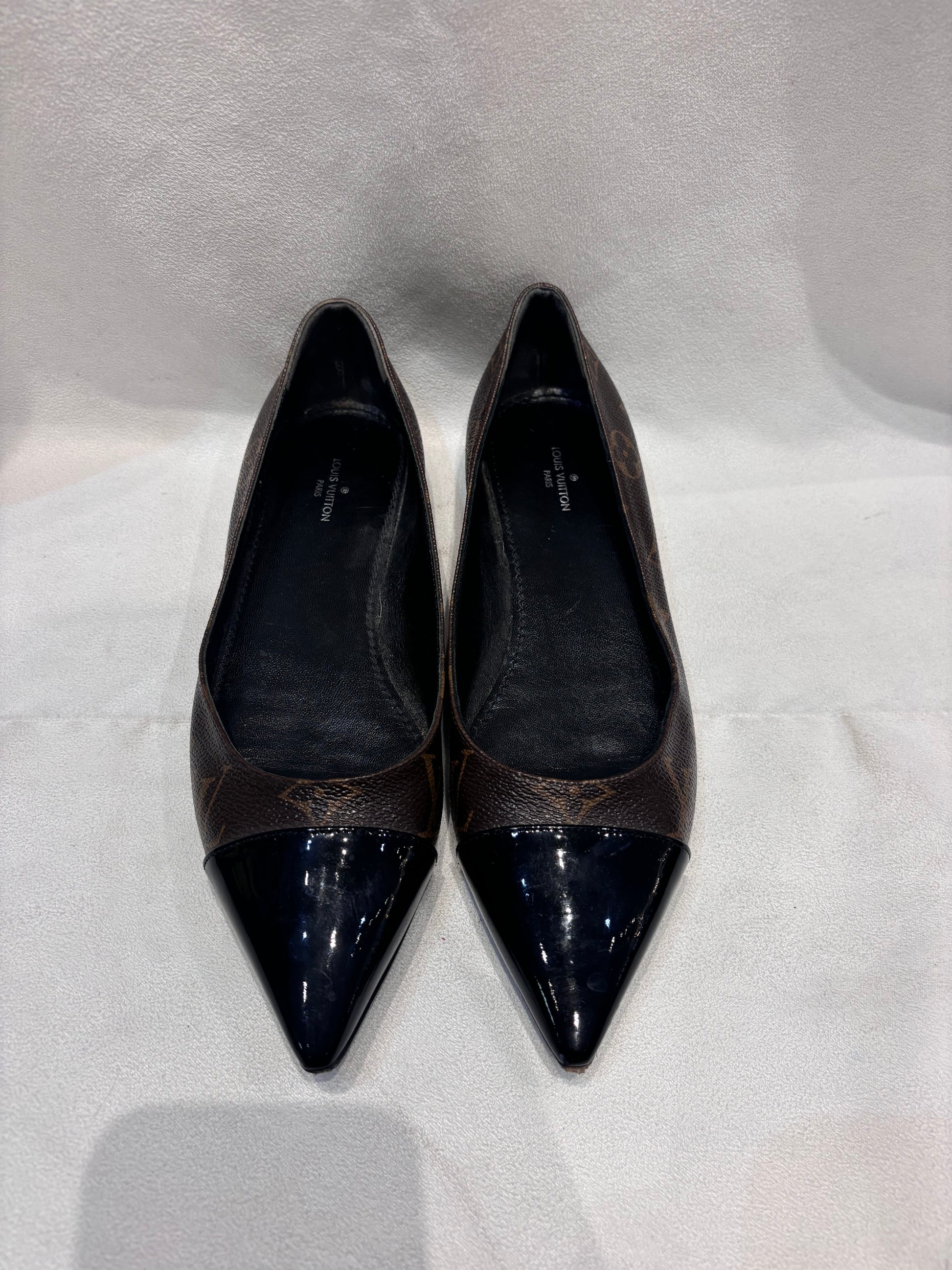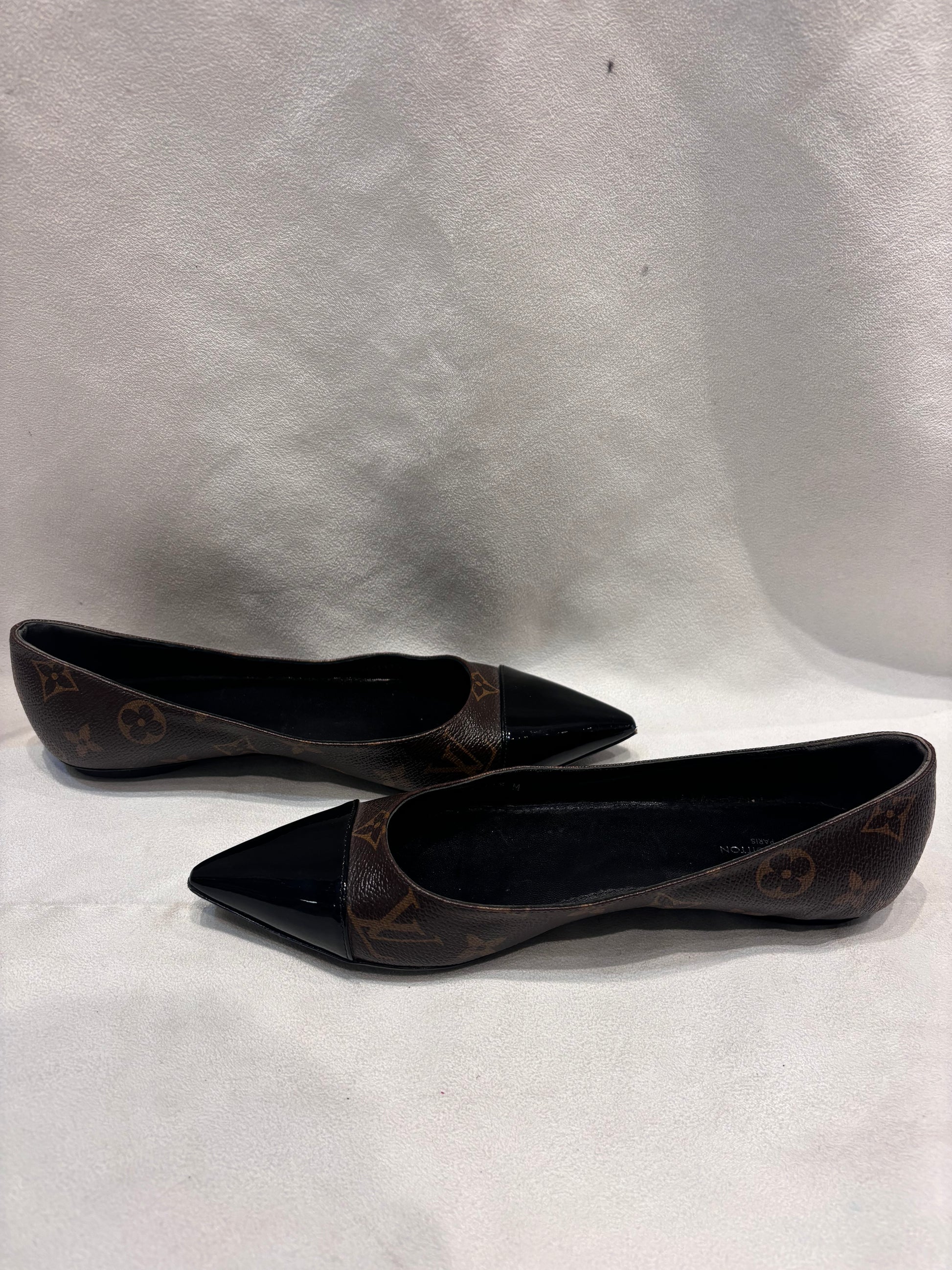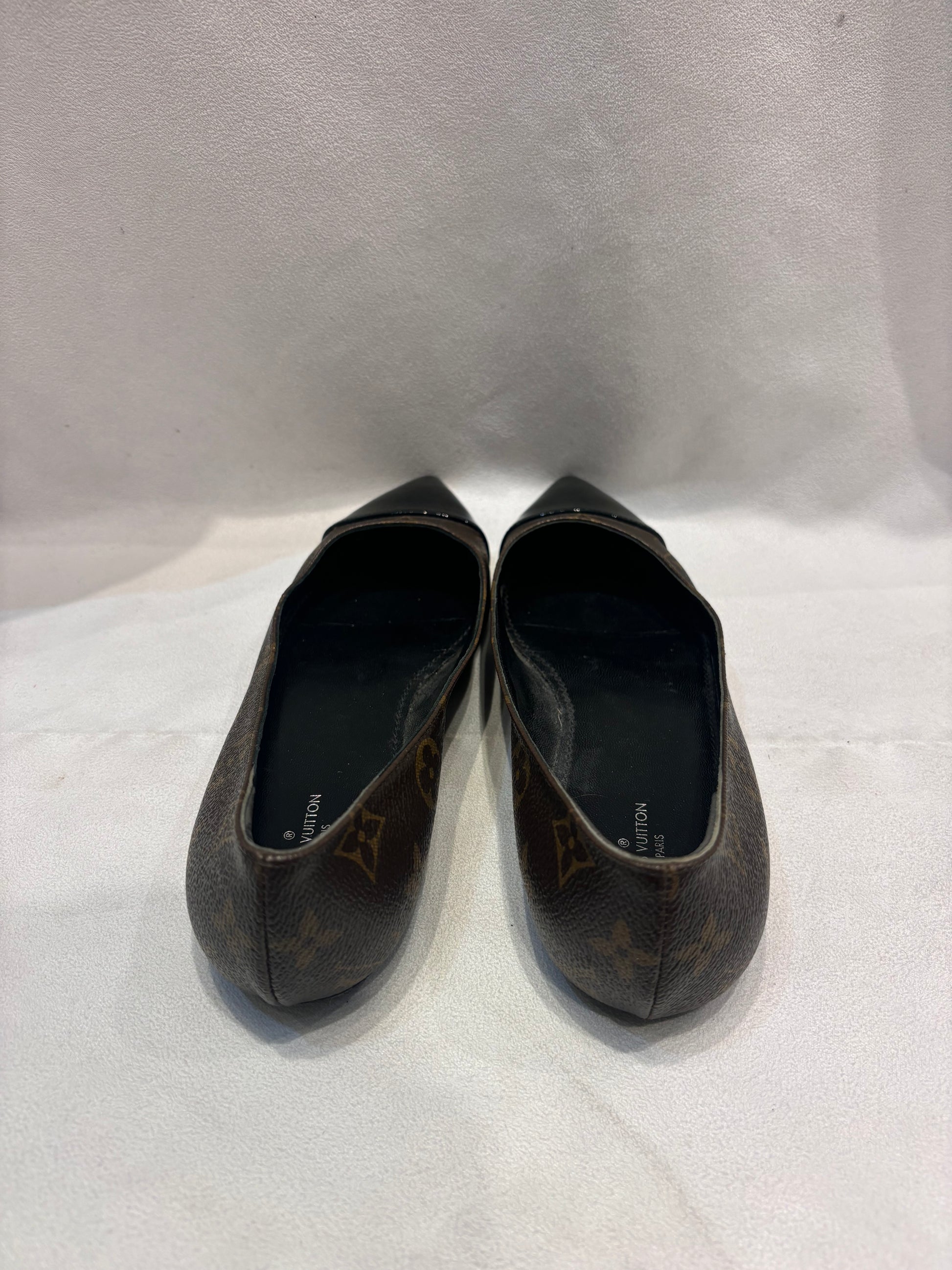 Louis Vuitton Brown Monogram Flats with Black Patent Toe Cap Size 37