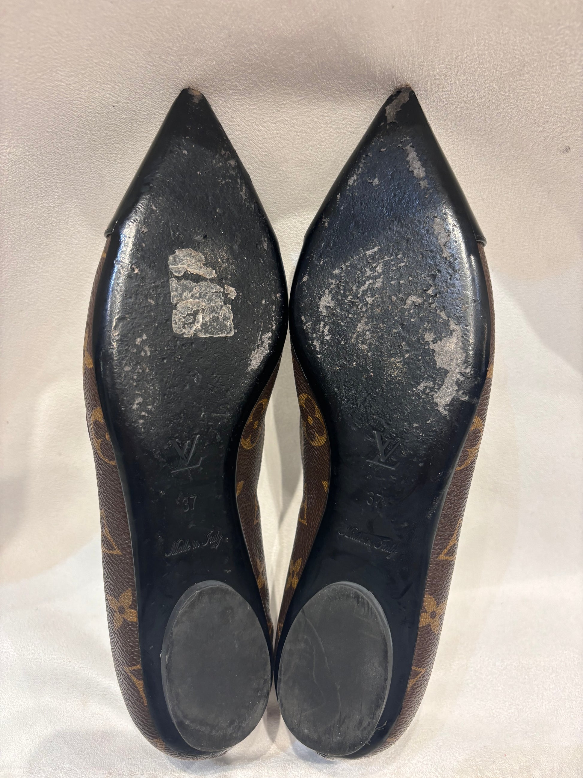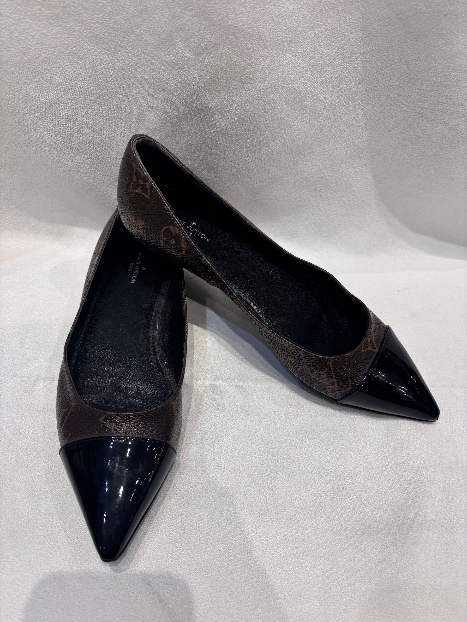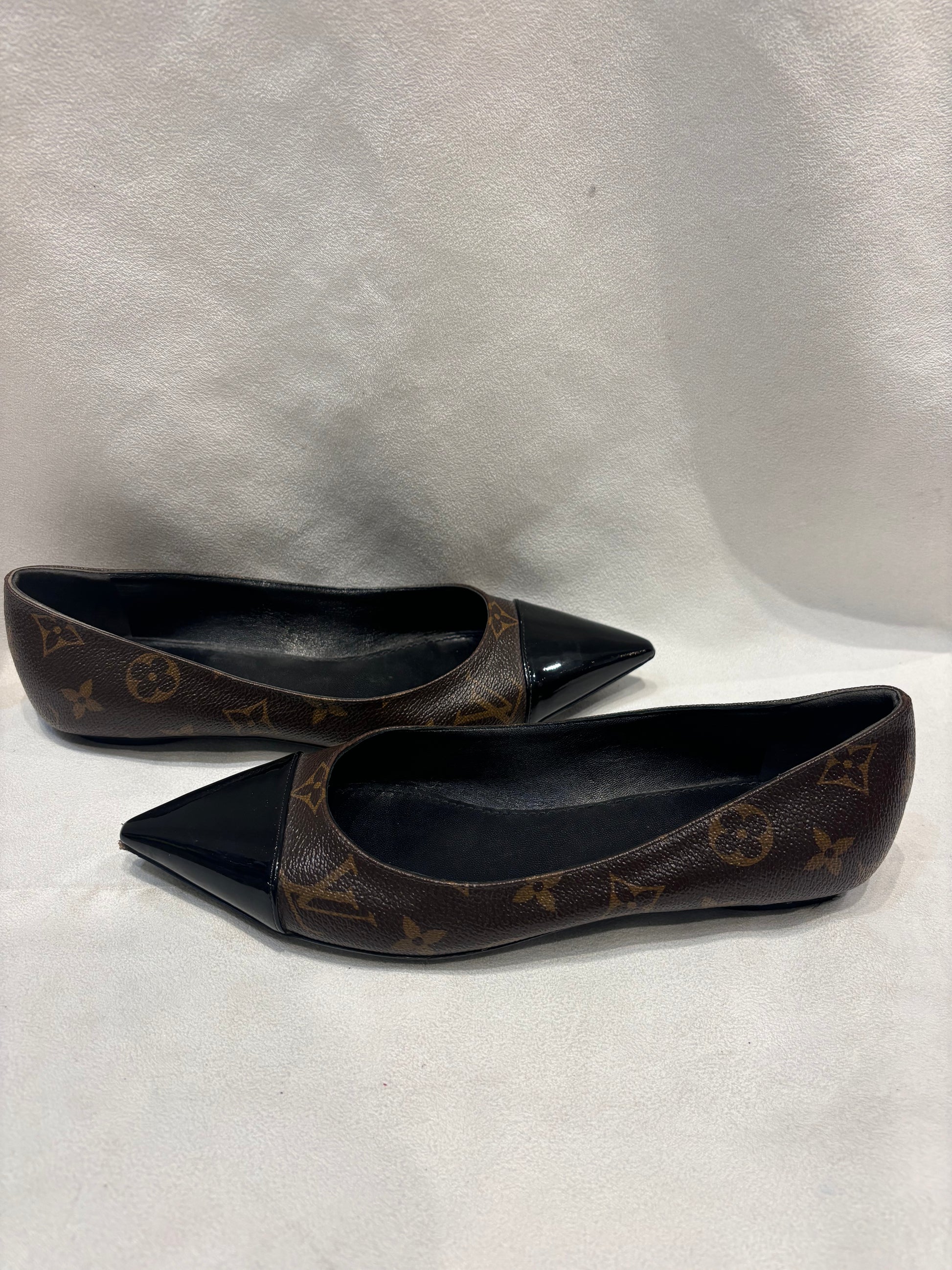 Louis Vuitton Brown Monogram Flats with Black Patent Toe Cap Size 37