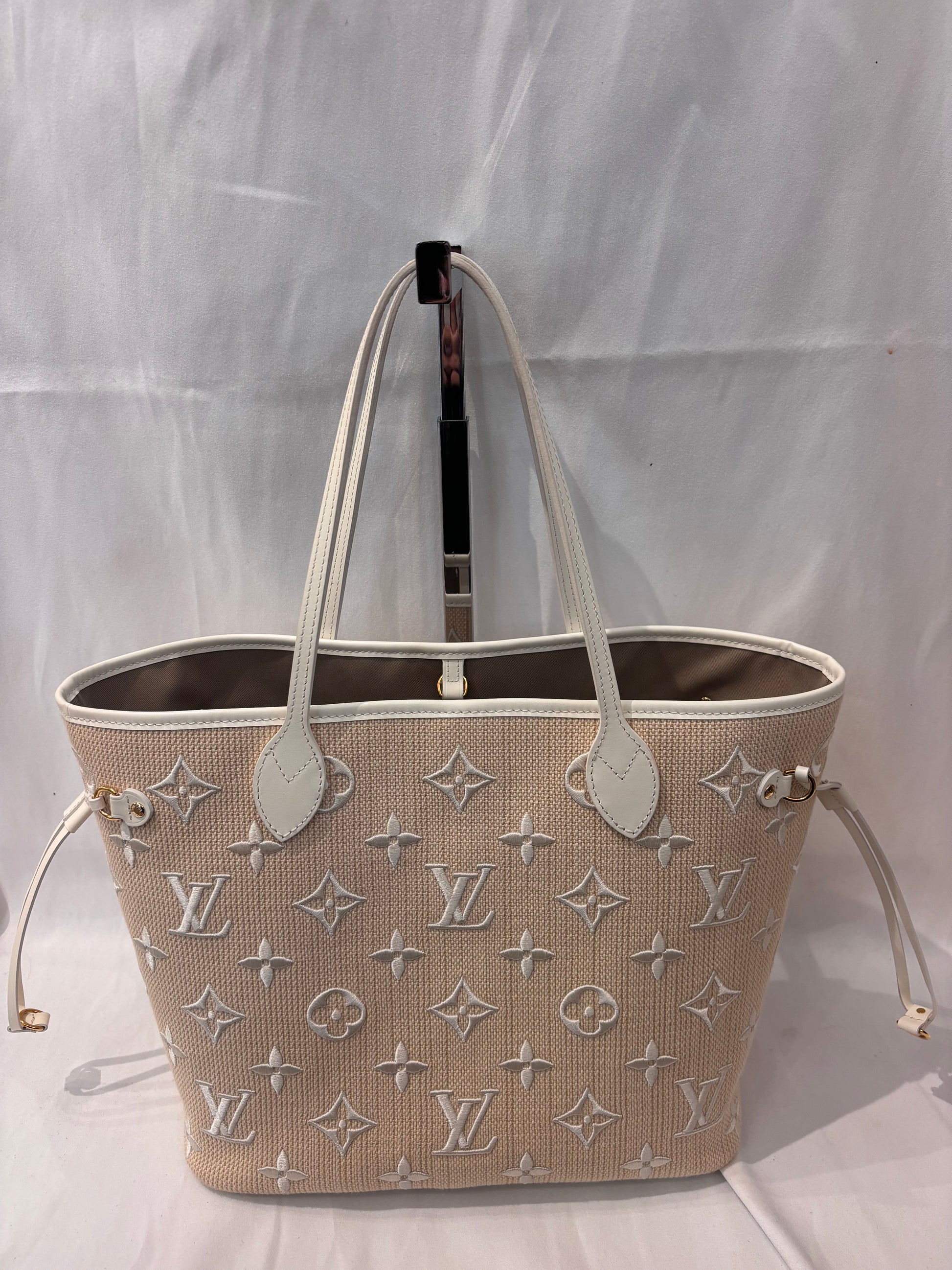 Louis Vuitton Natural Raffia Tote with White Embroidered Logo