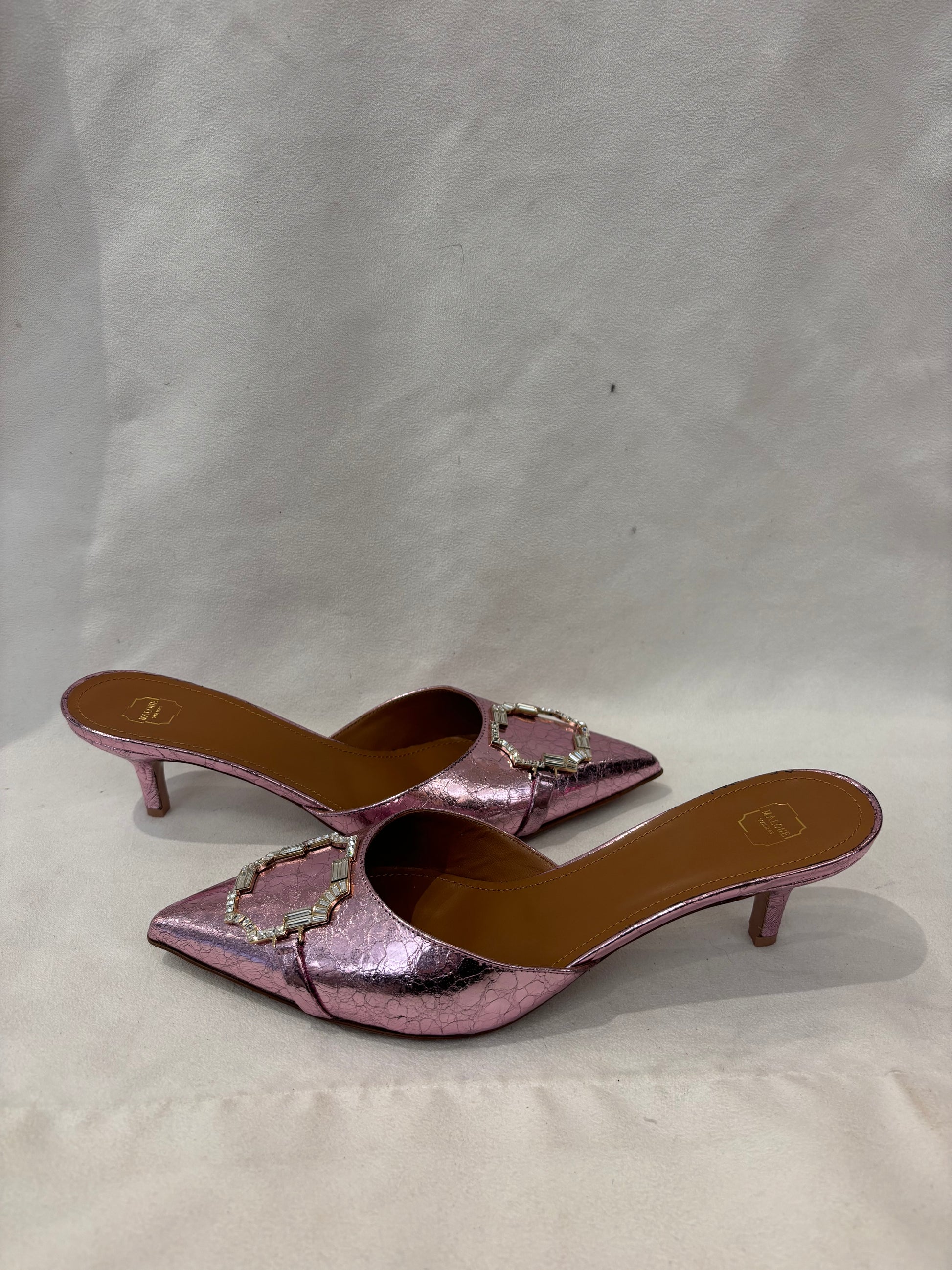 Malone Souliers Metallic Pink Mules with Crystal Buckle Size 40