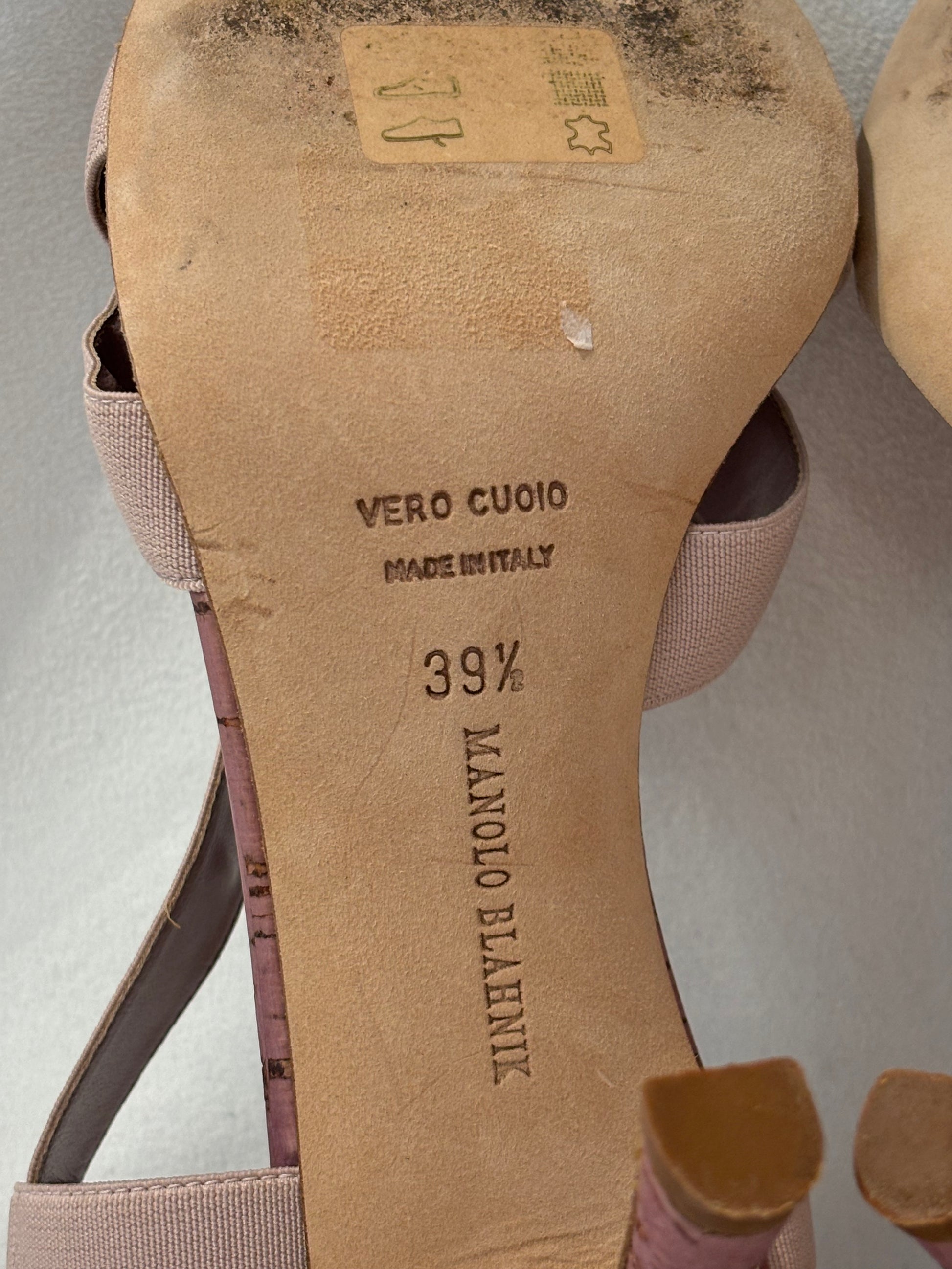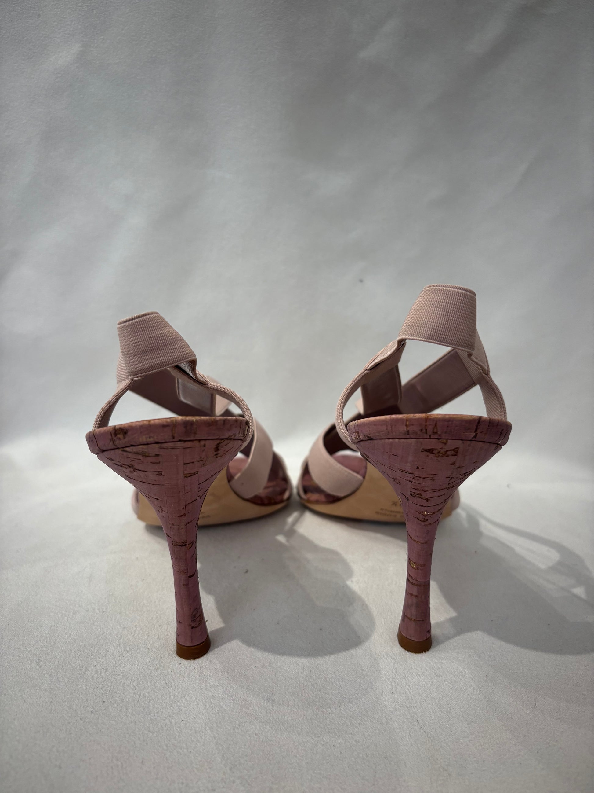 Manolo Blahnik Pink Elastic/Cork Strappy Heels Size 39.5