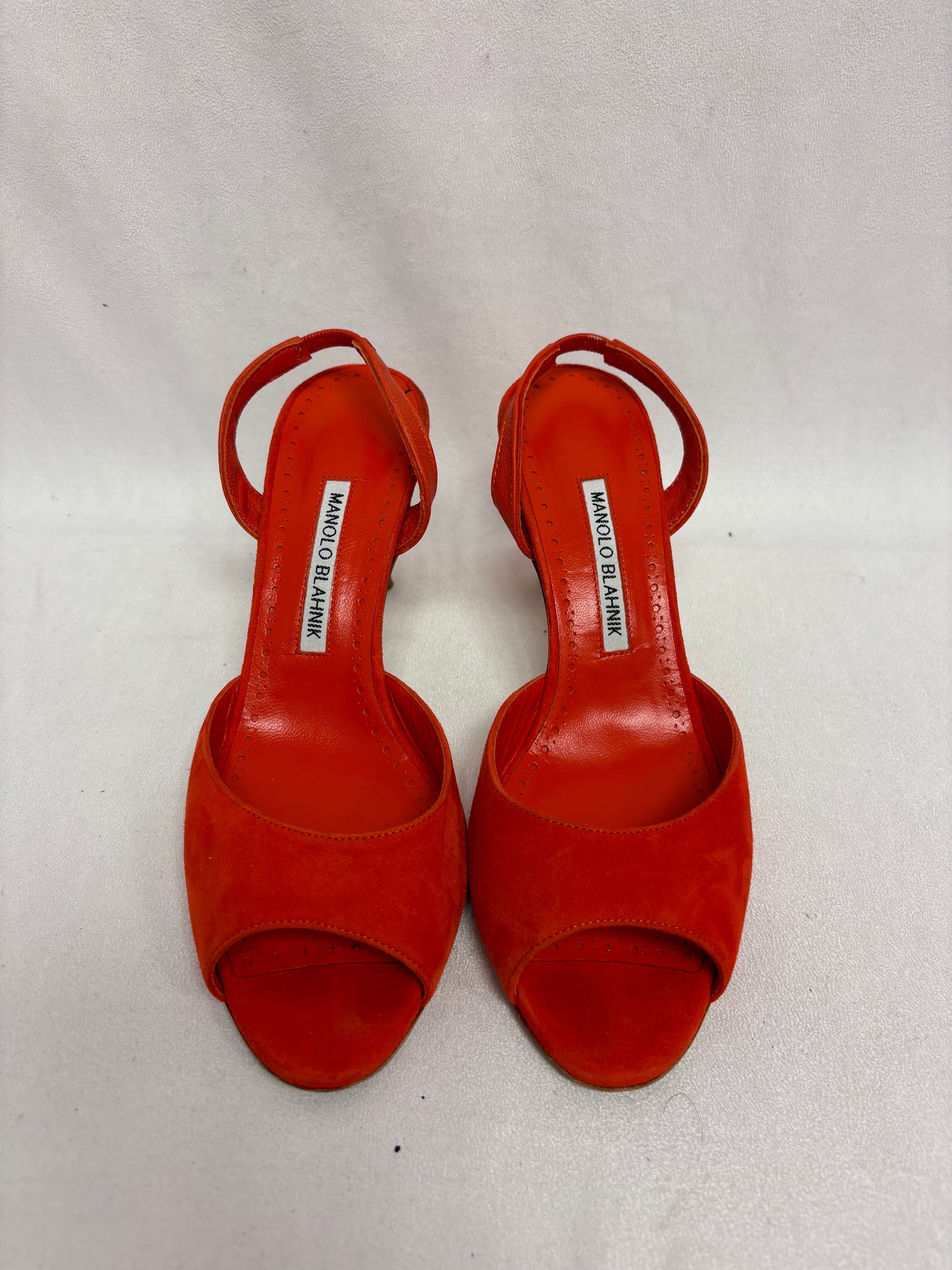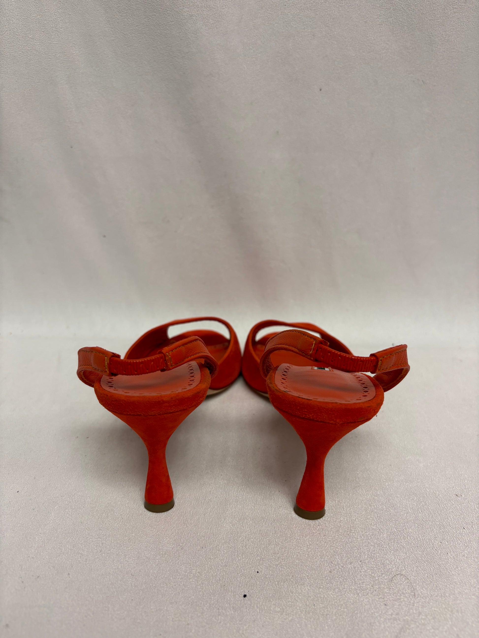 Manolo Blahnik Orange Suede Slingback Sandals Size 38.5