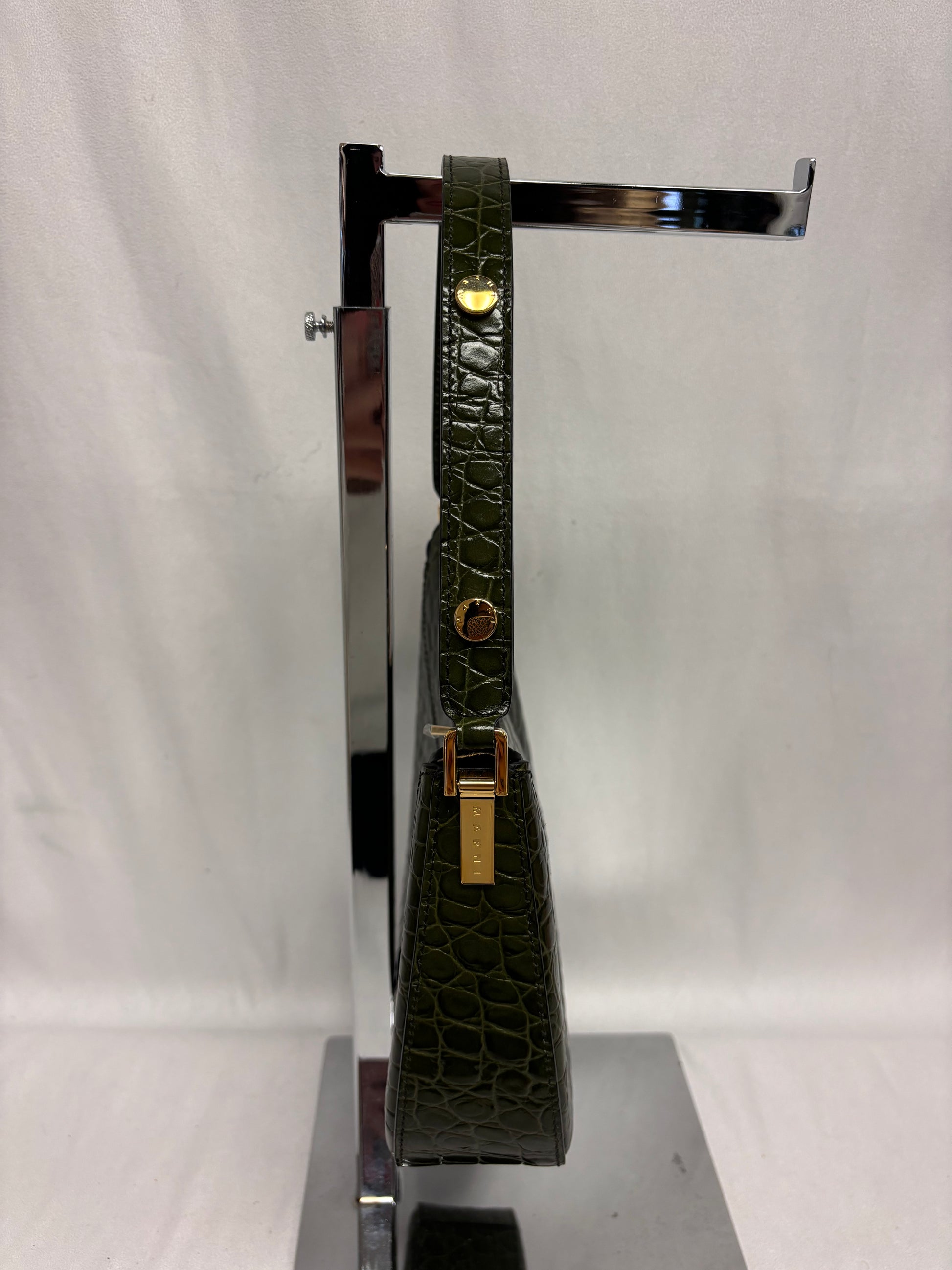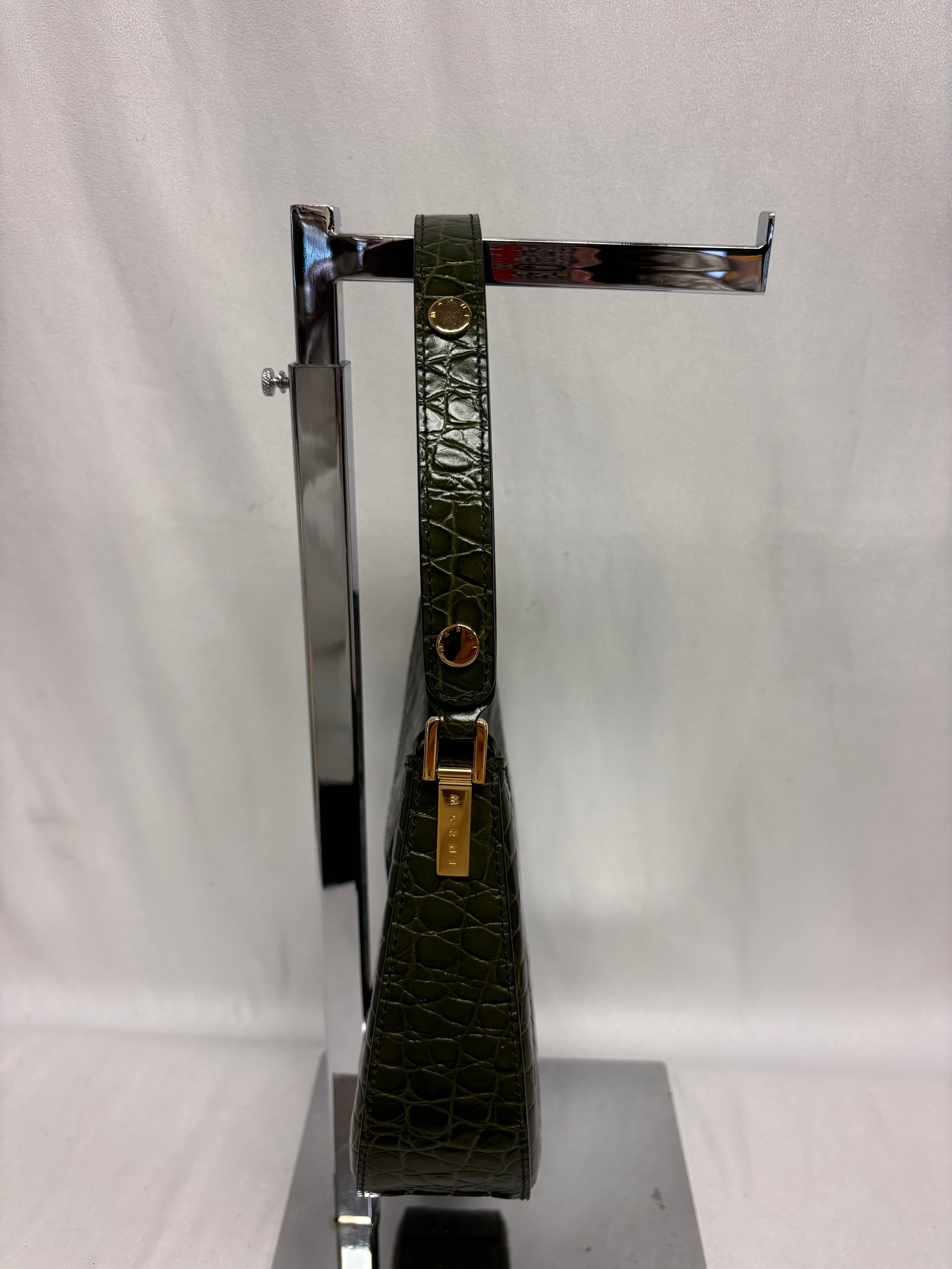 Marni Green Croc Embossed Shoulder Bag