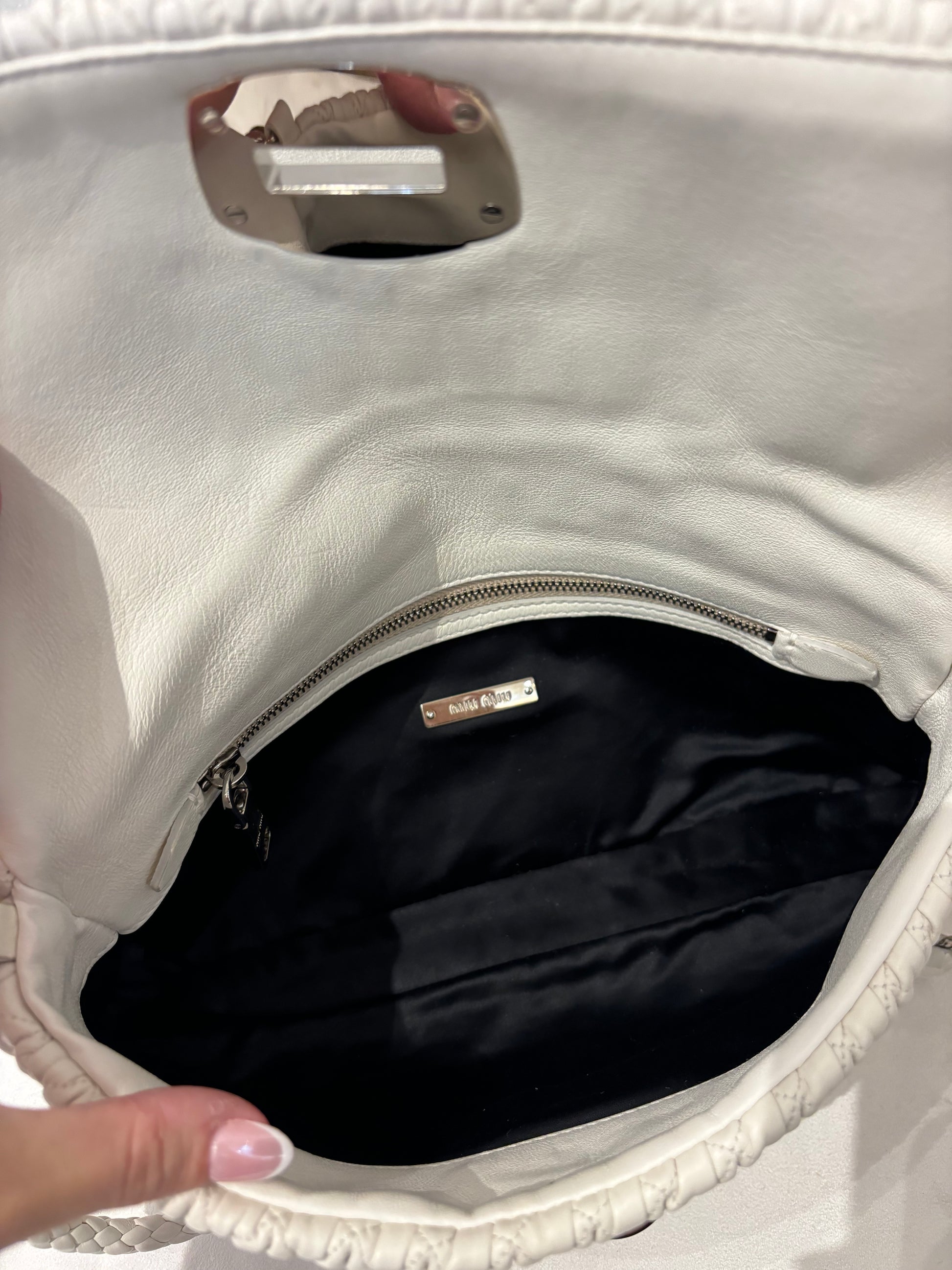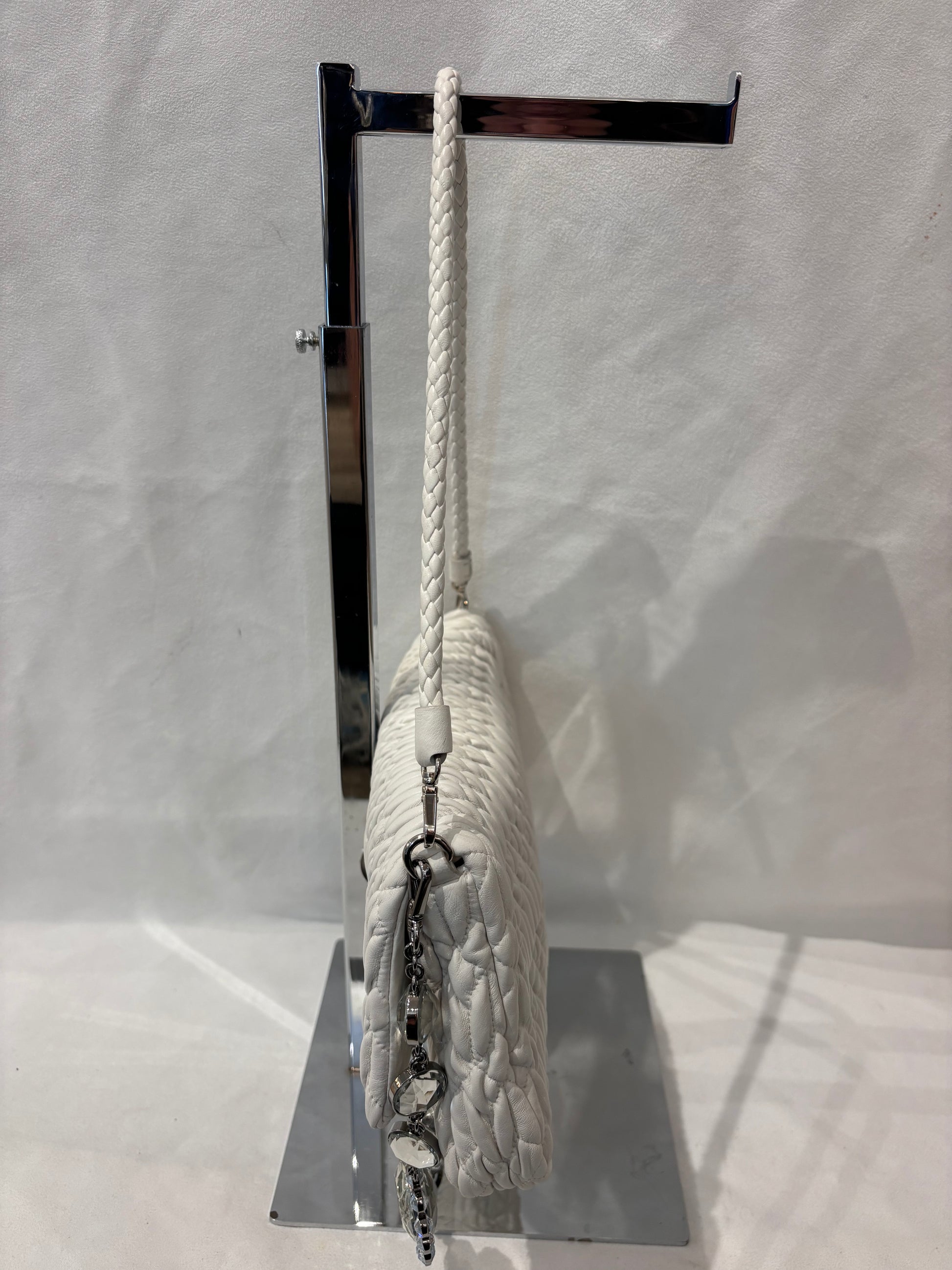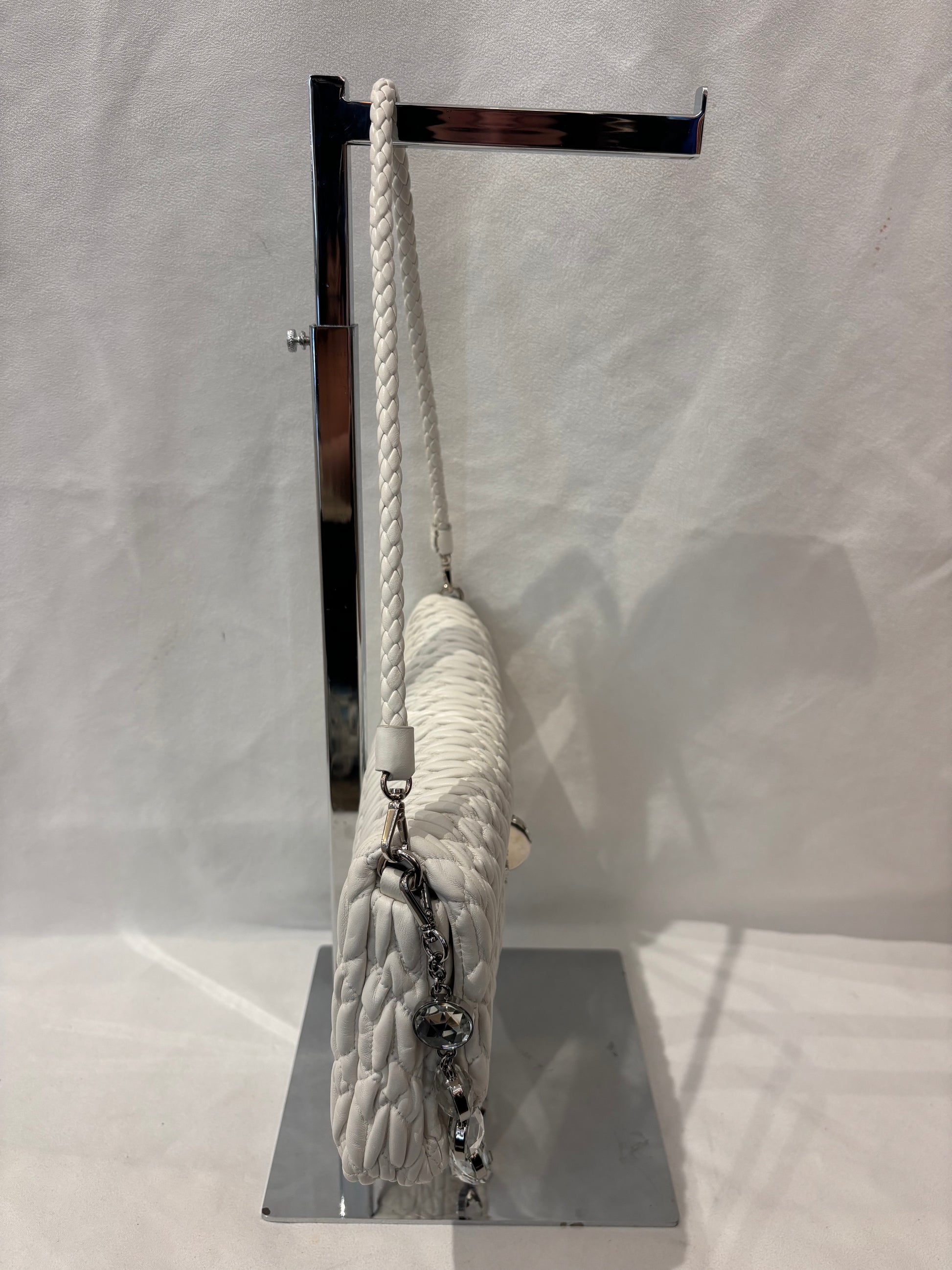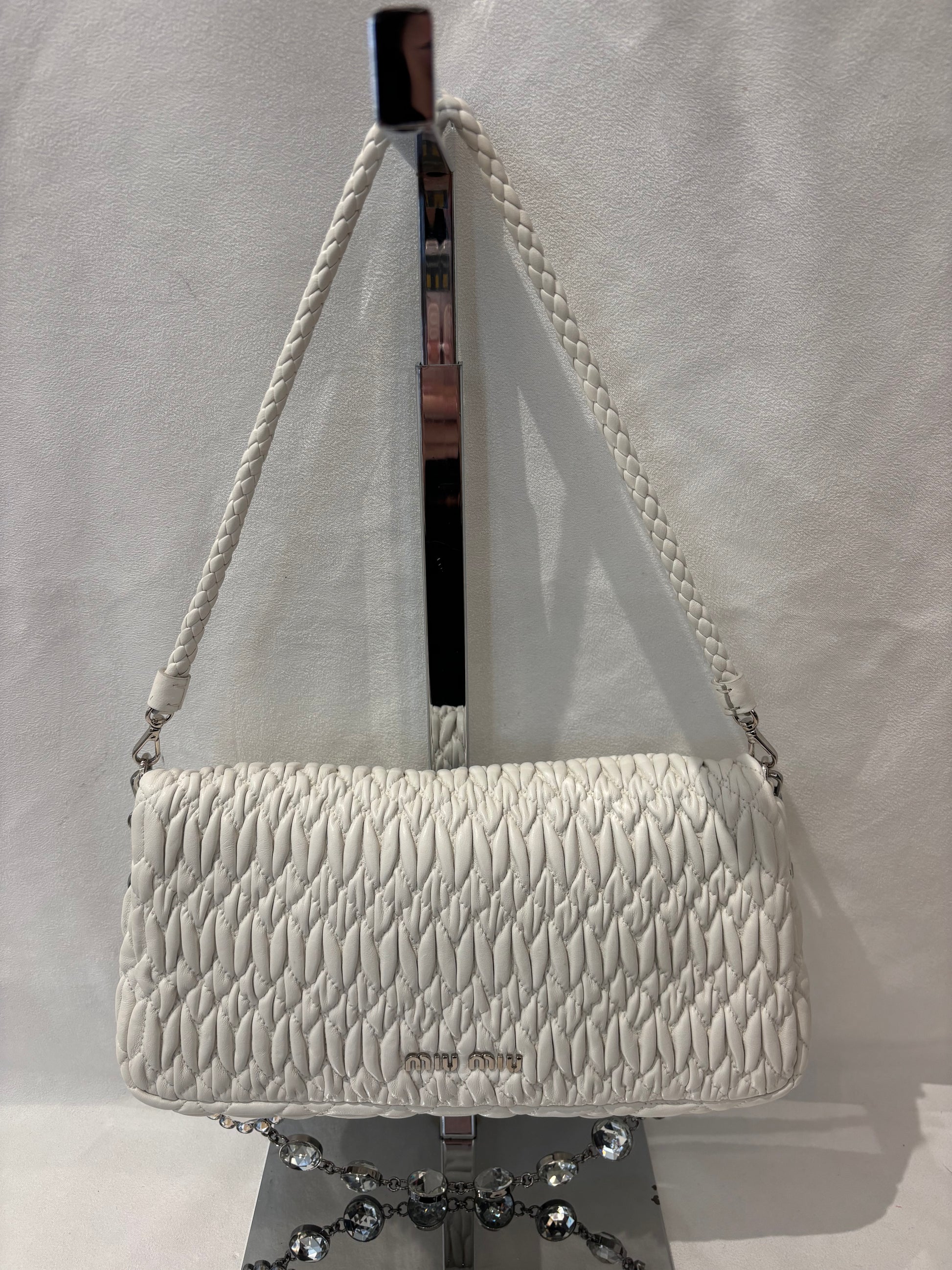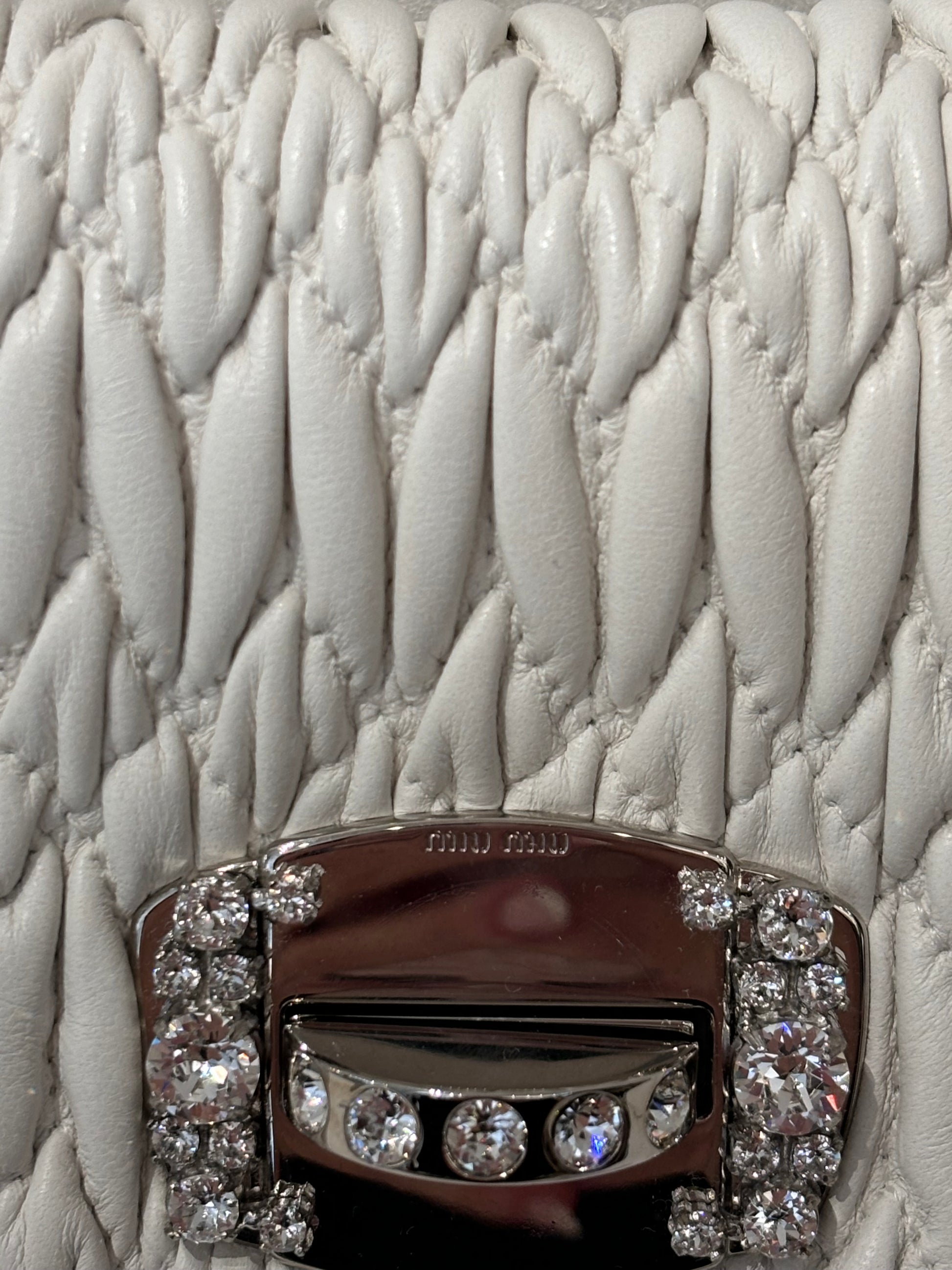 Miu Miu White Medium Iconic Shoulder Bag with Crystal Strap