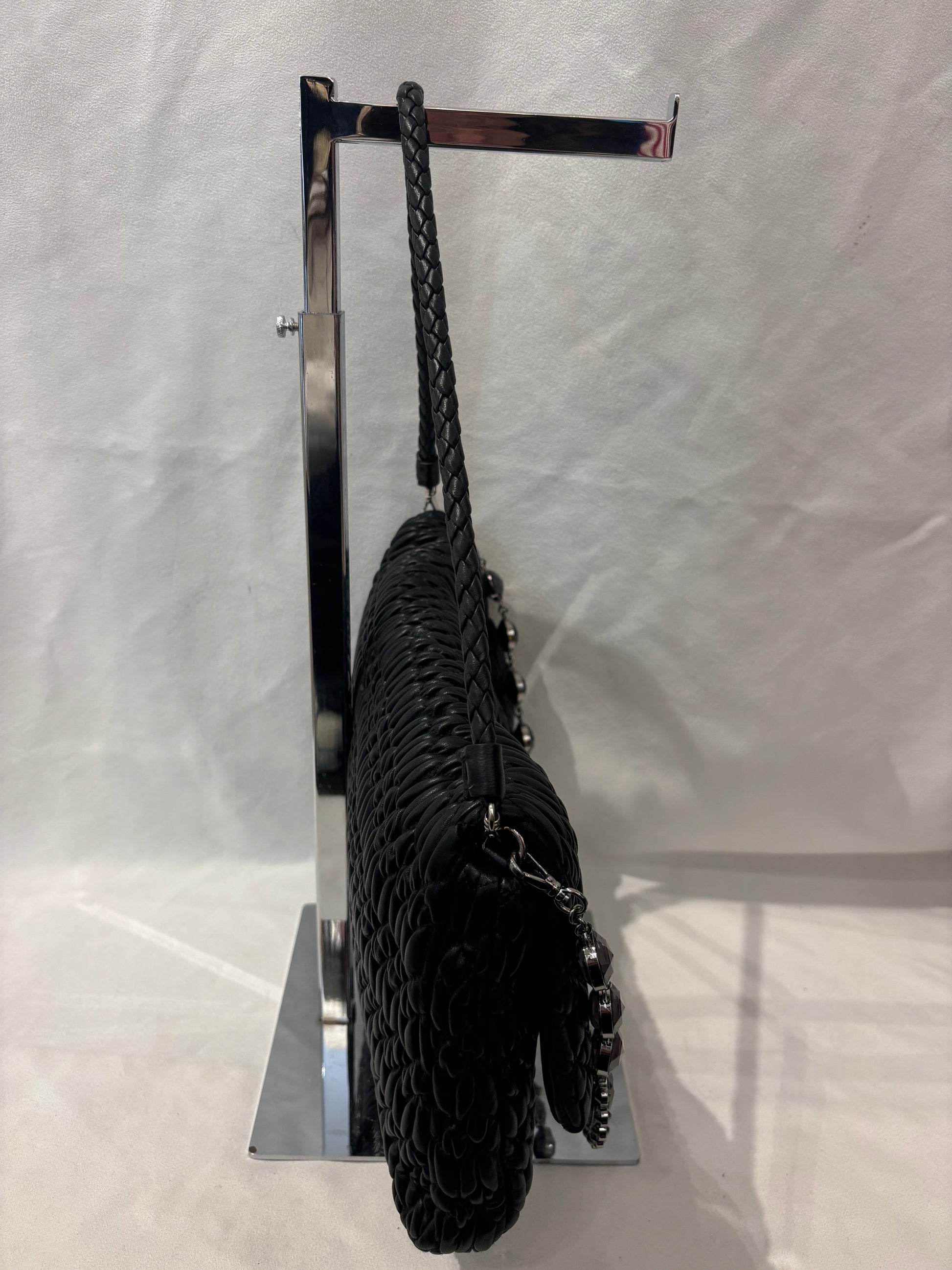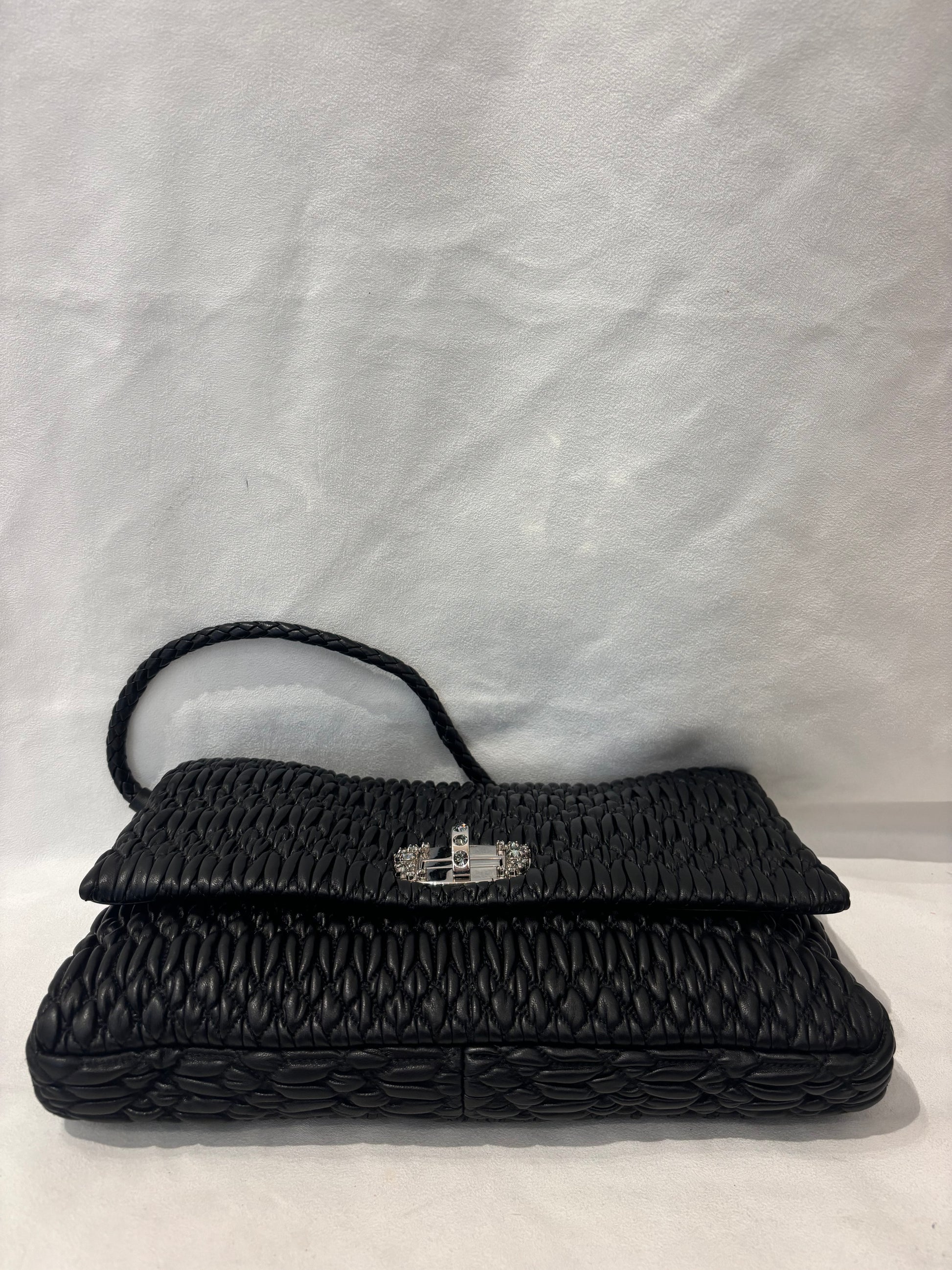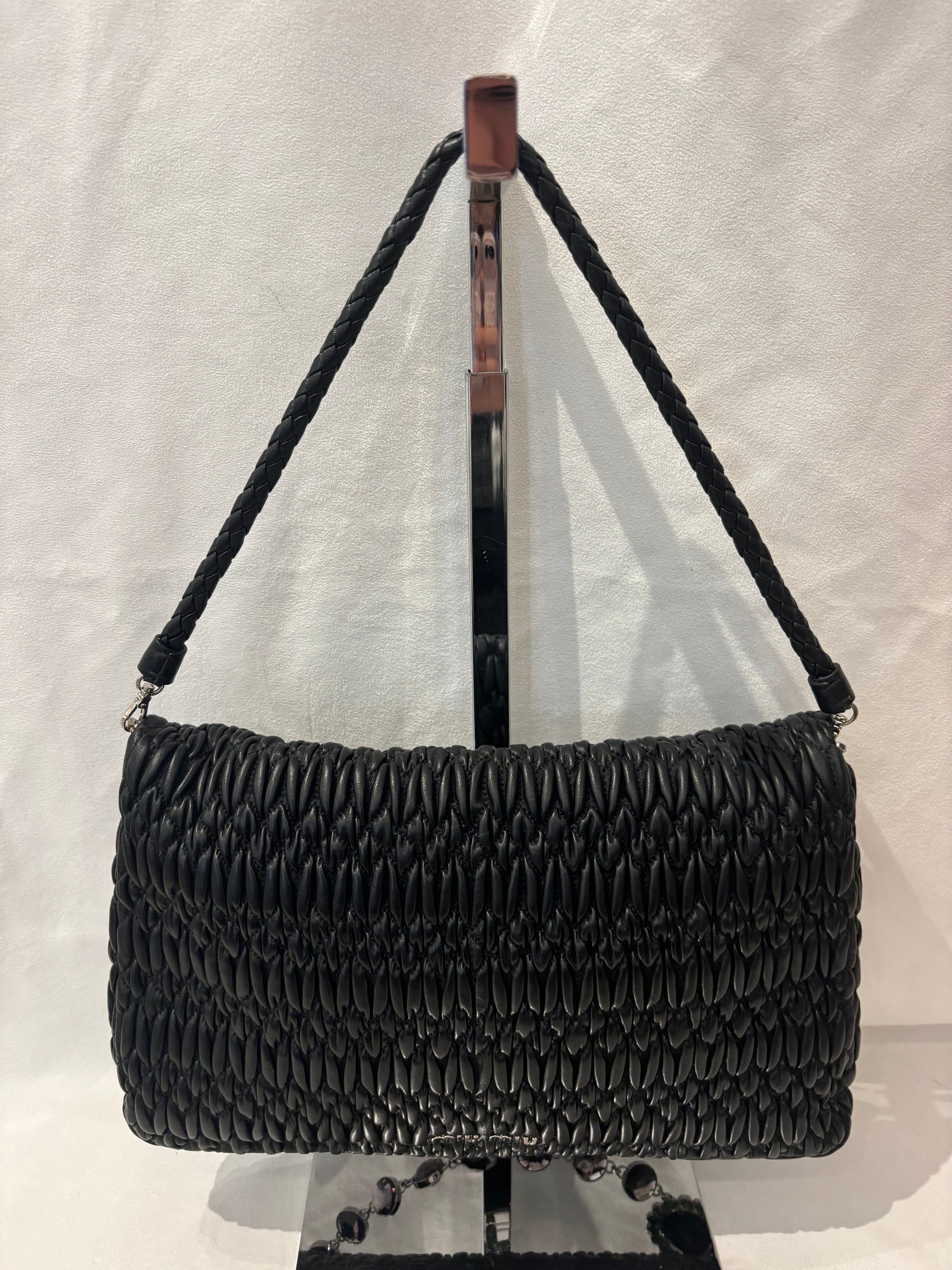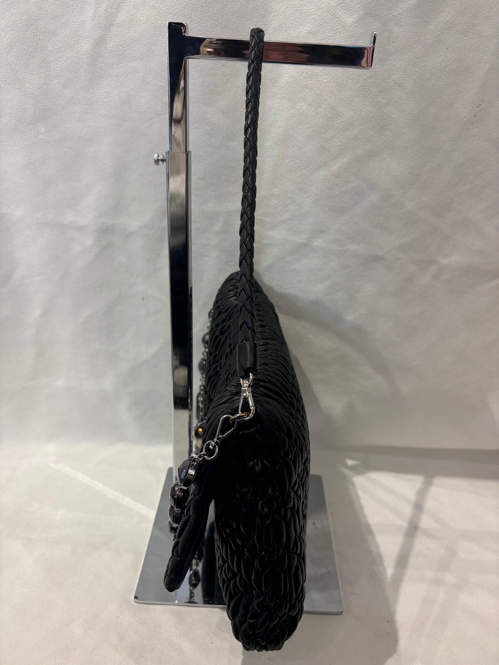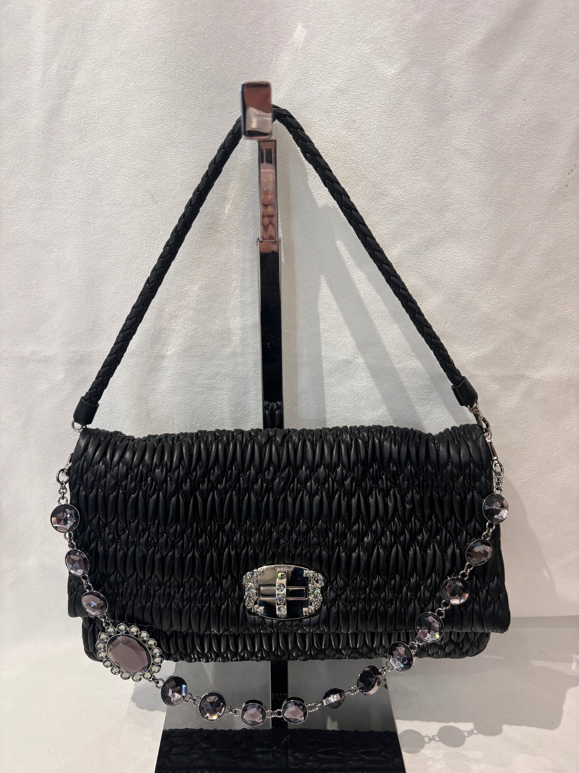 Miu Miu Black Large Iconic Shoulder Bag with Crystal Strap