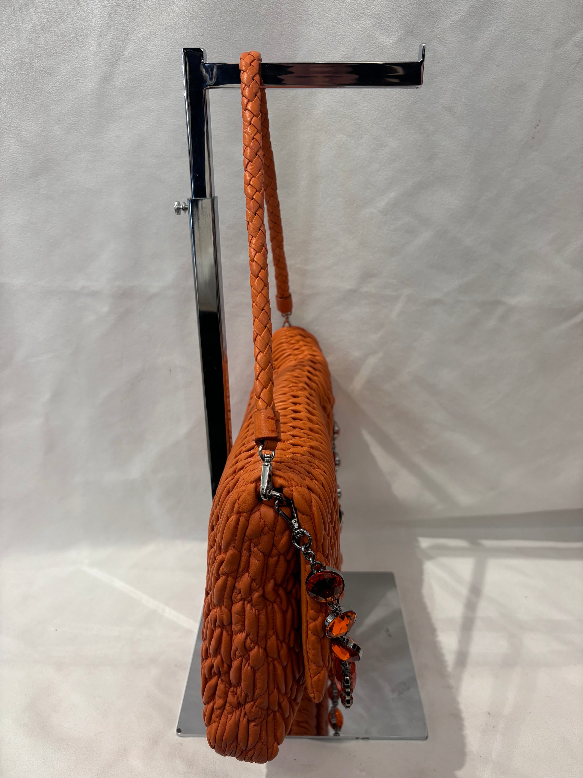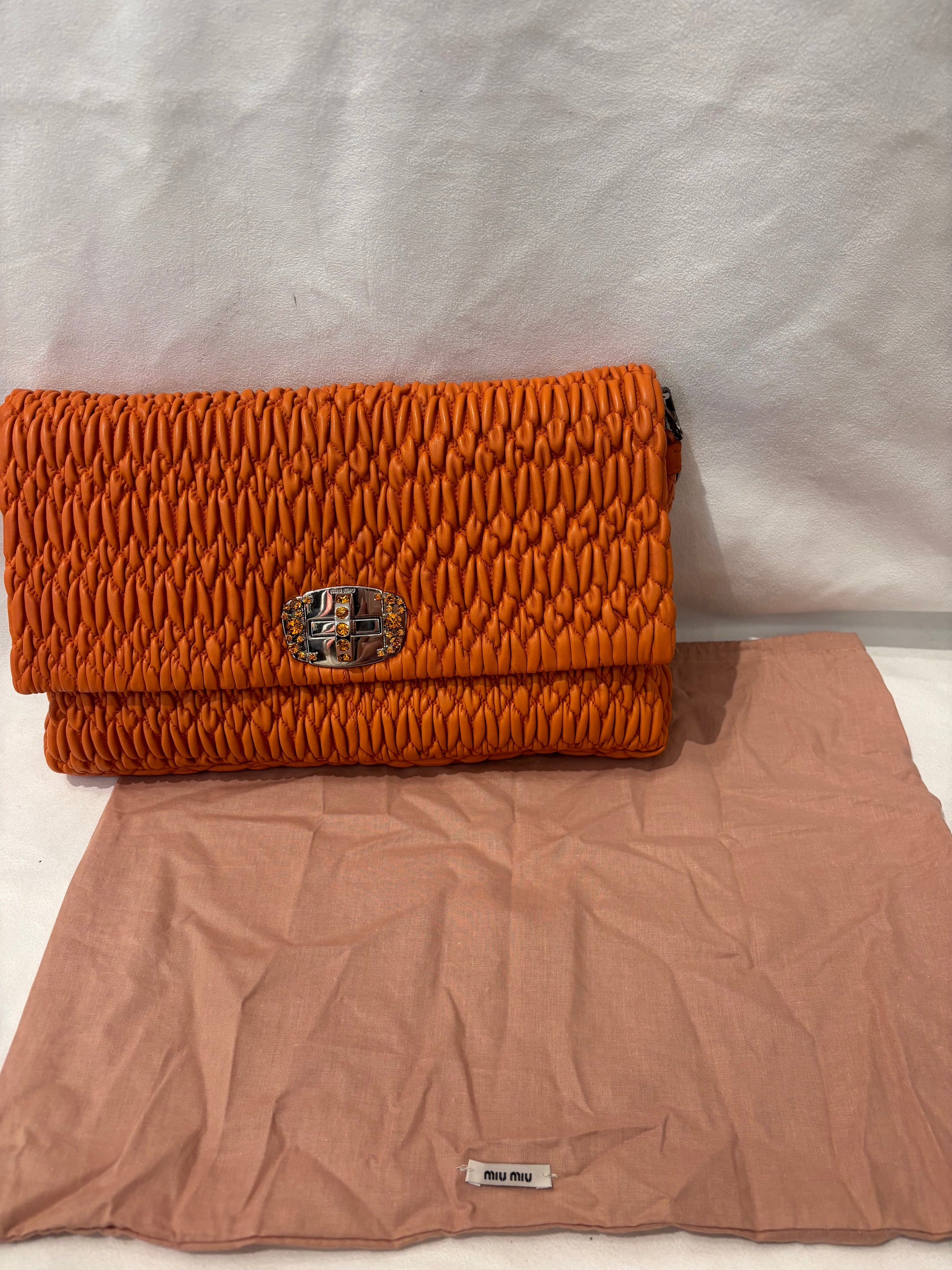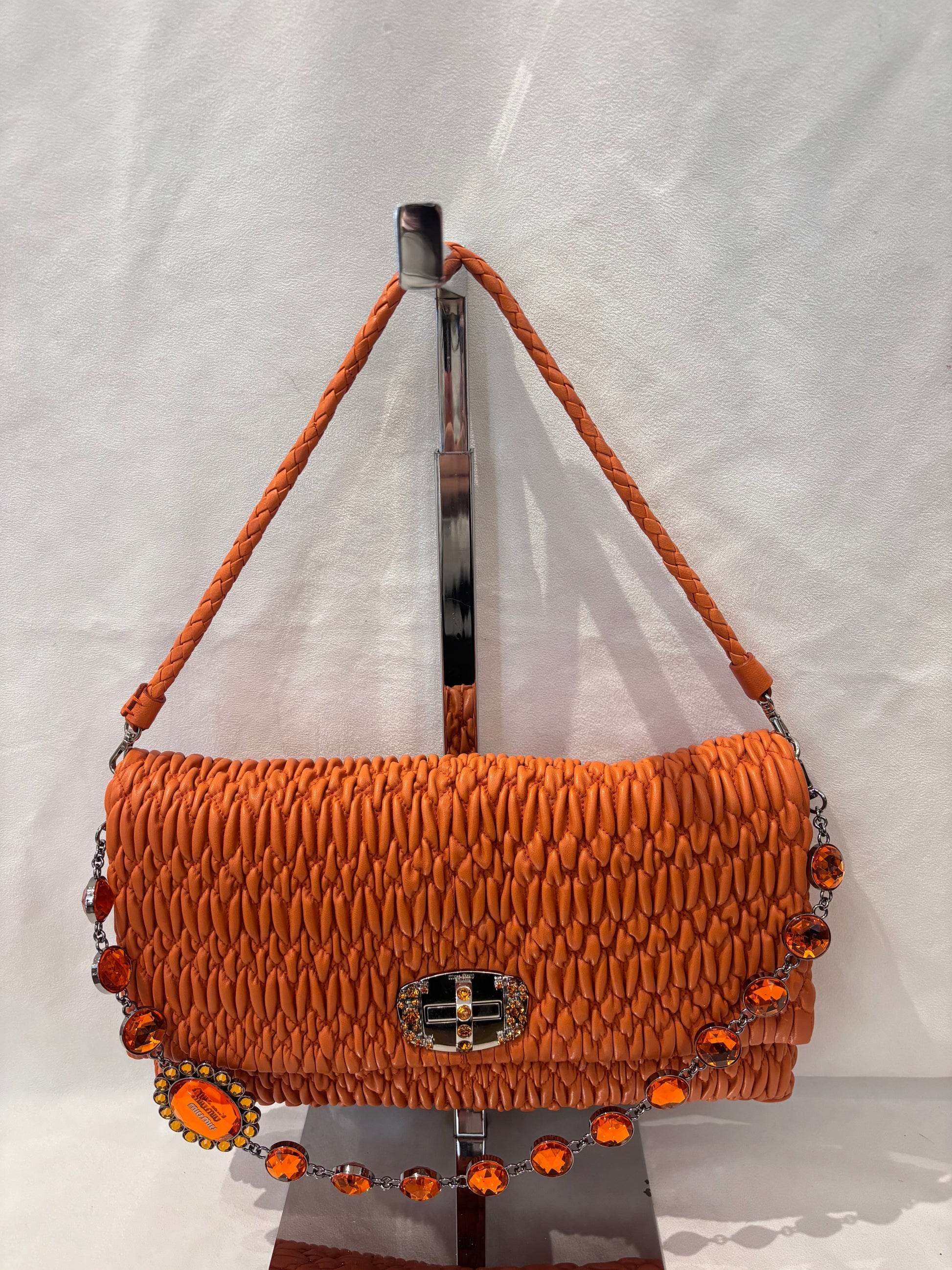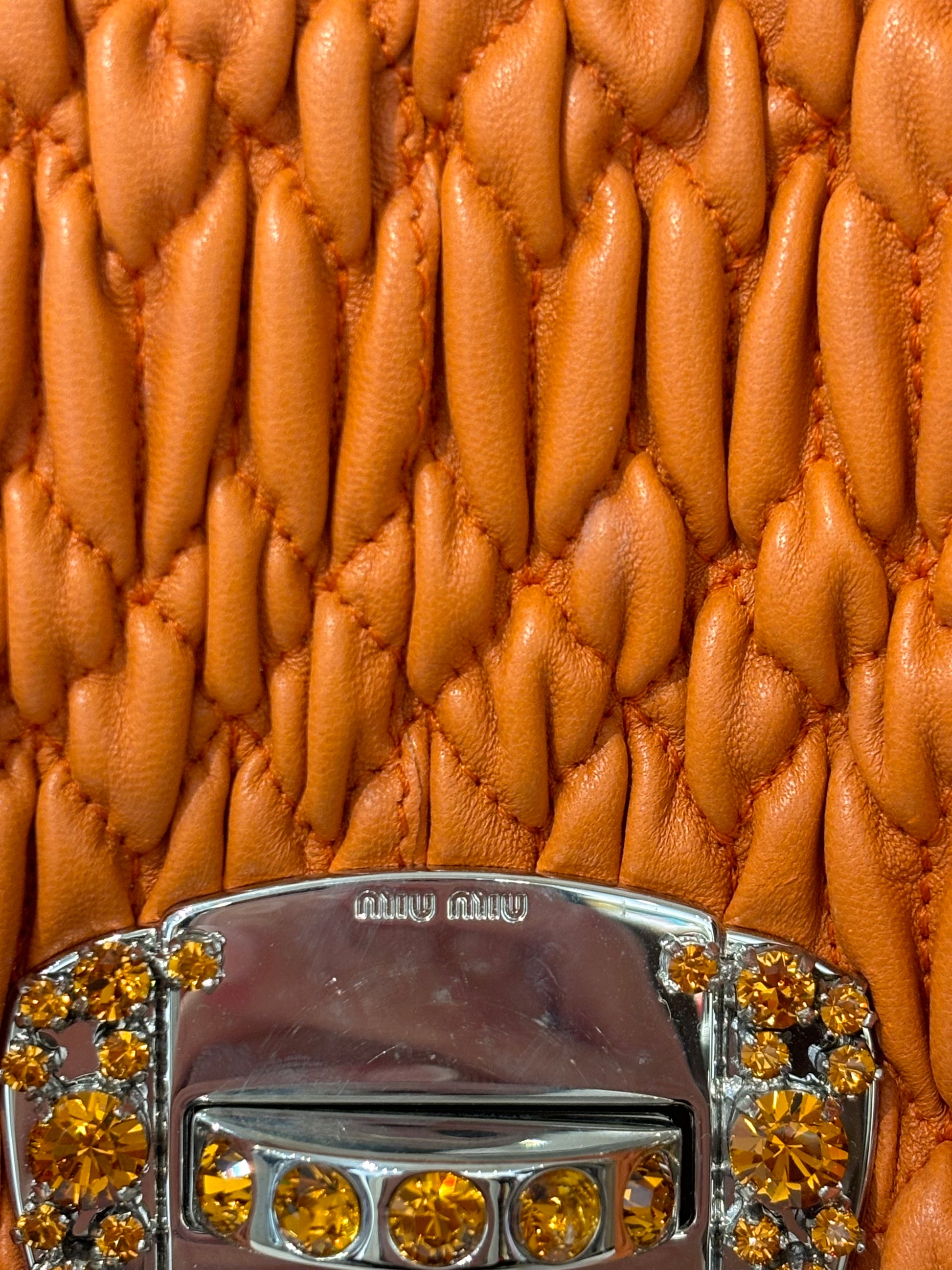 Miu Miu Orange Large Iconic Shoulder Bag with Crystal Strap
