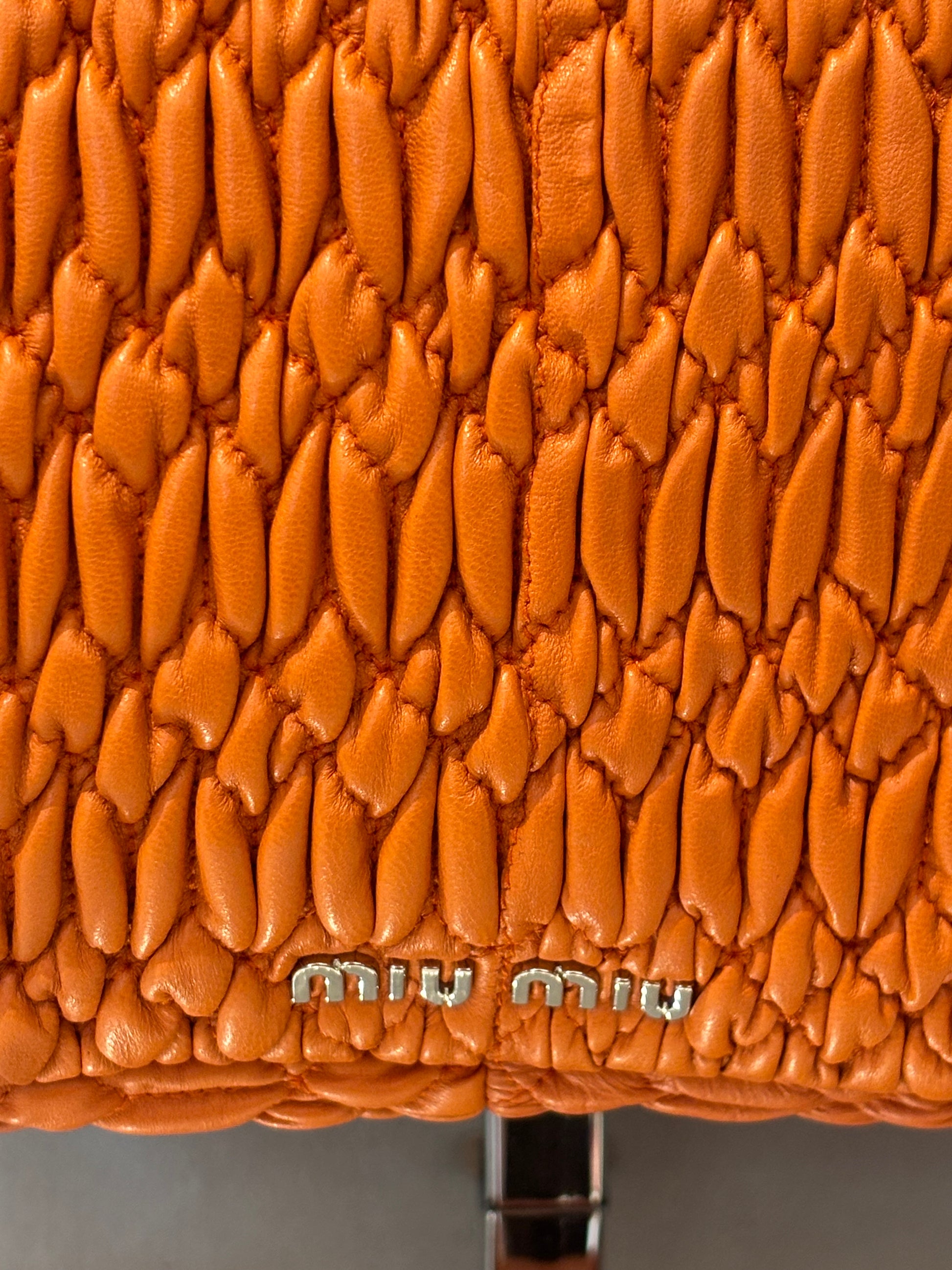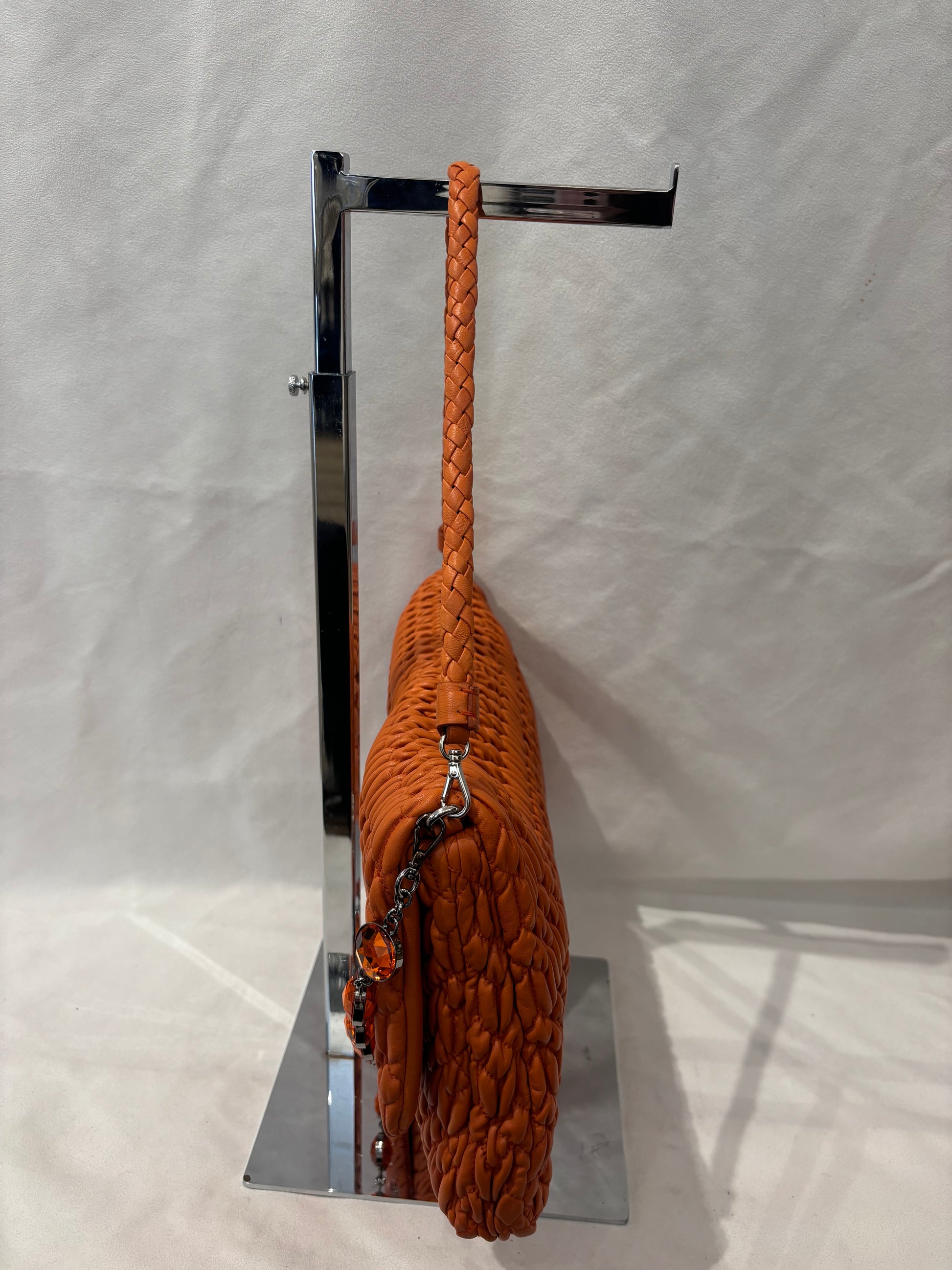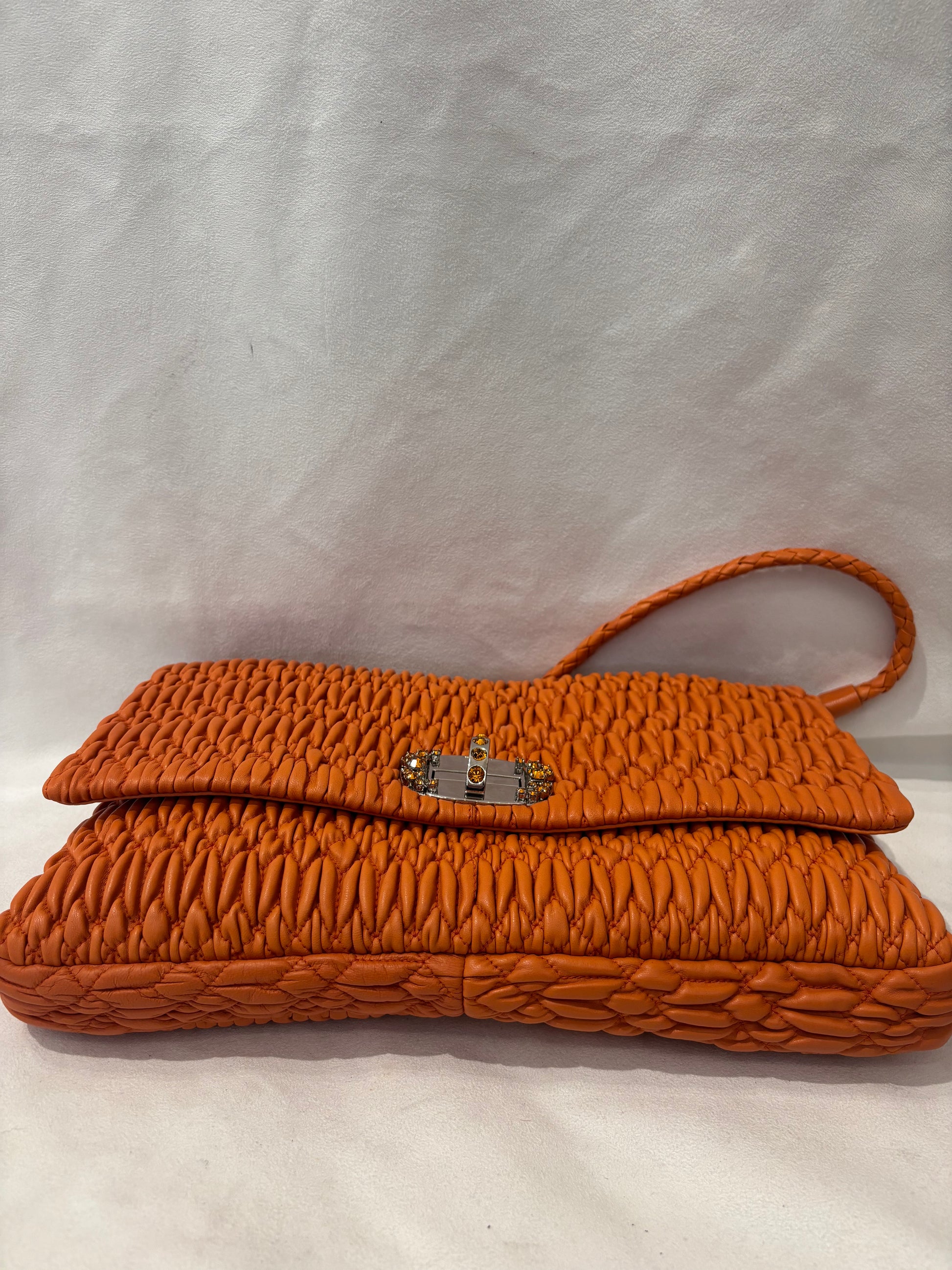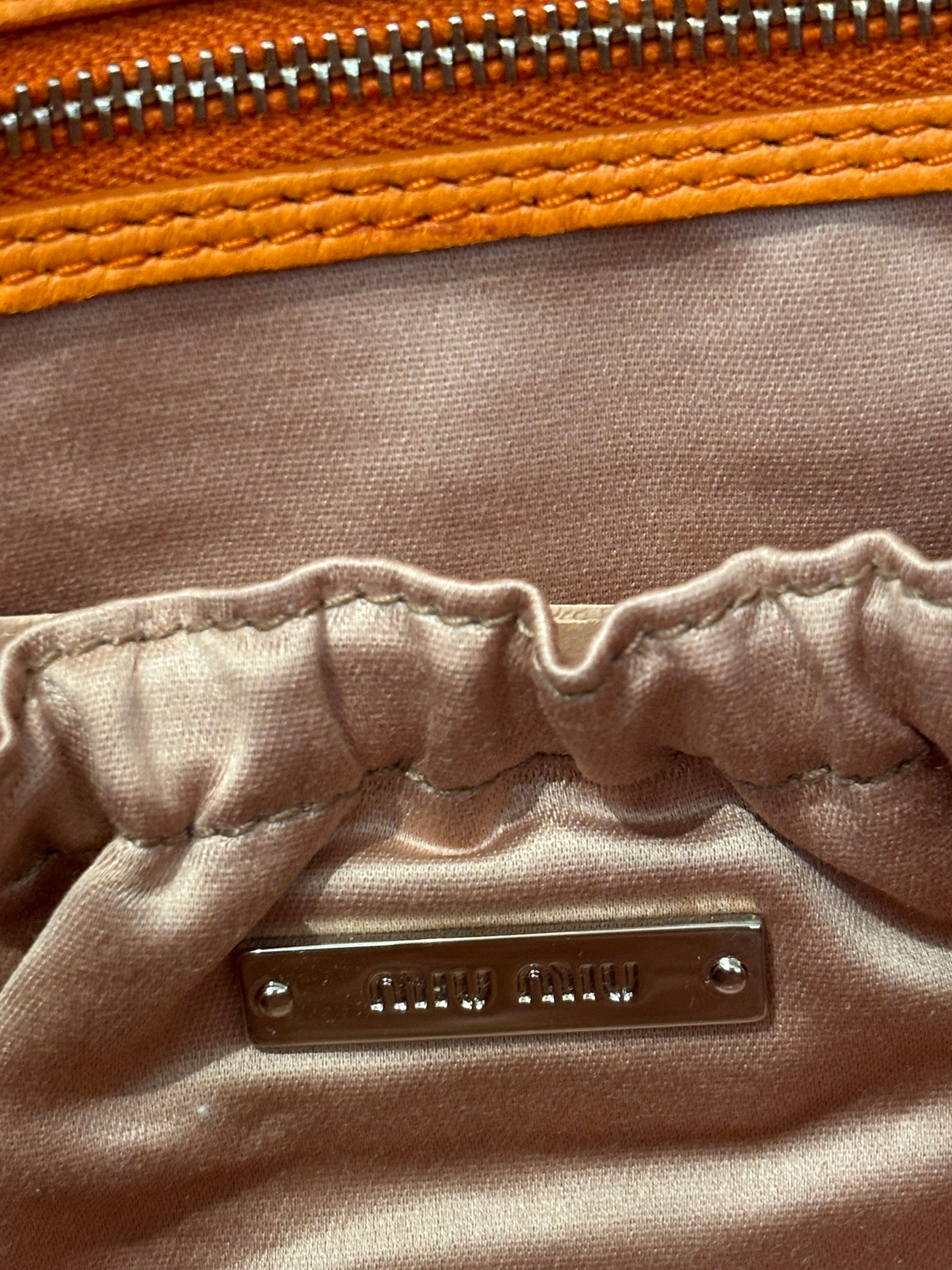 Miu Miu Orange Large Iconic Shoulder Bag with Crystal Strap