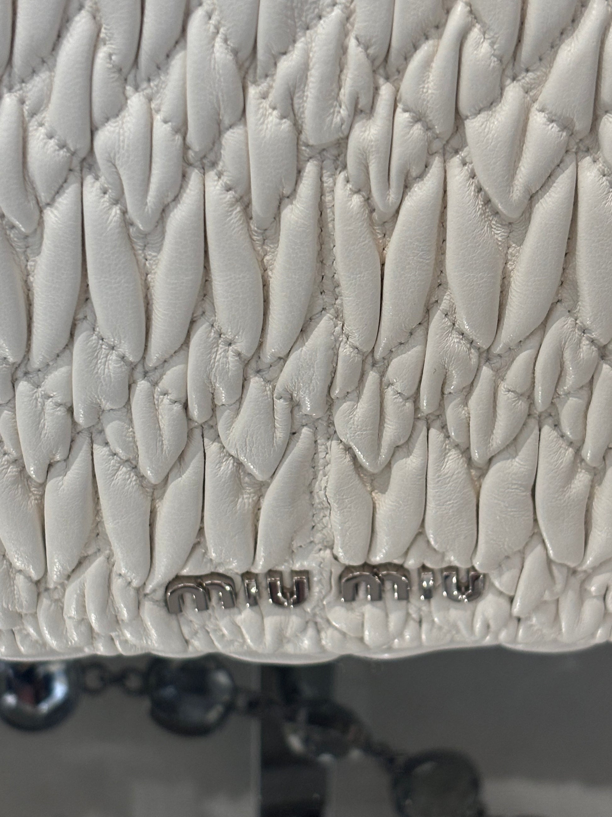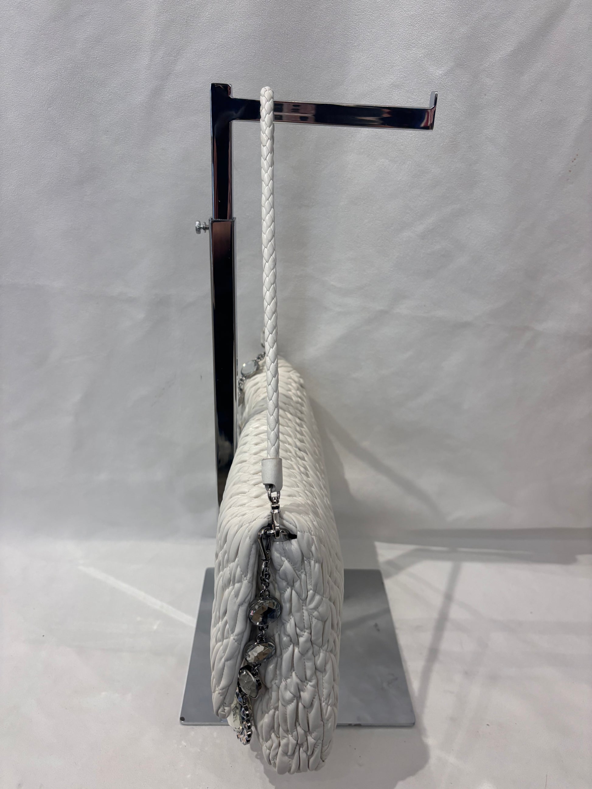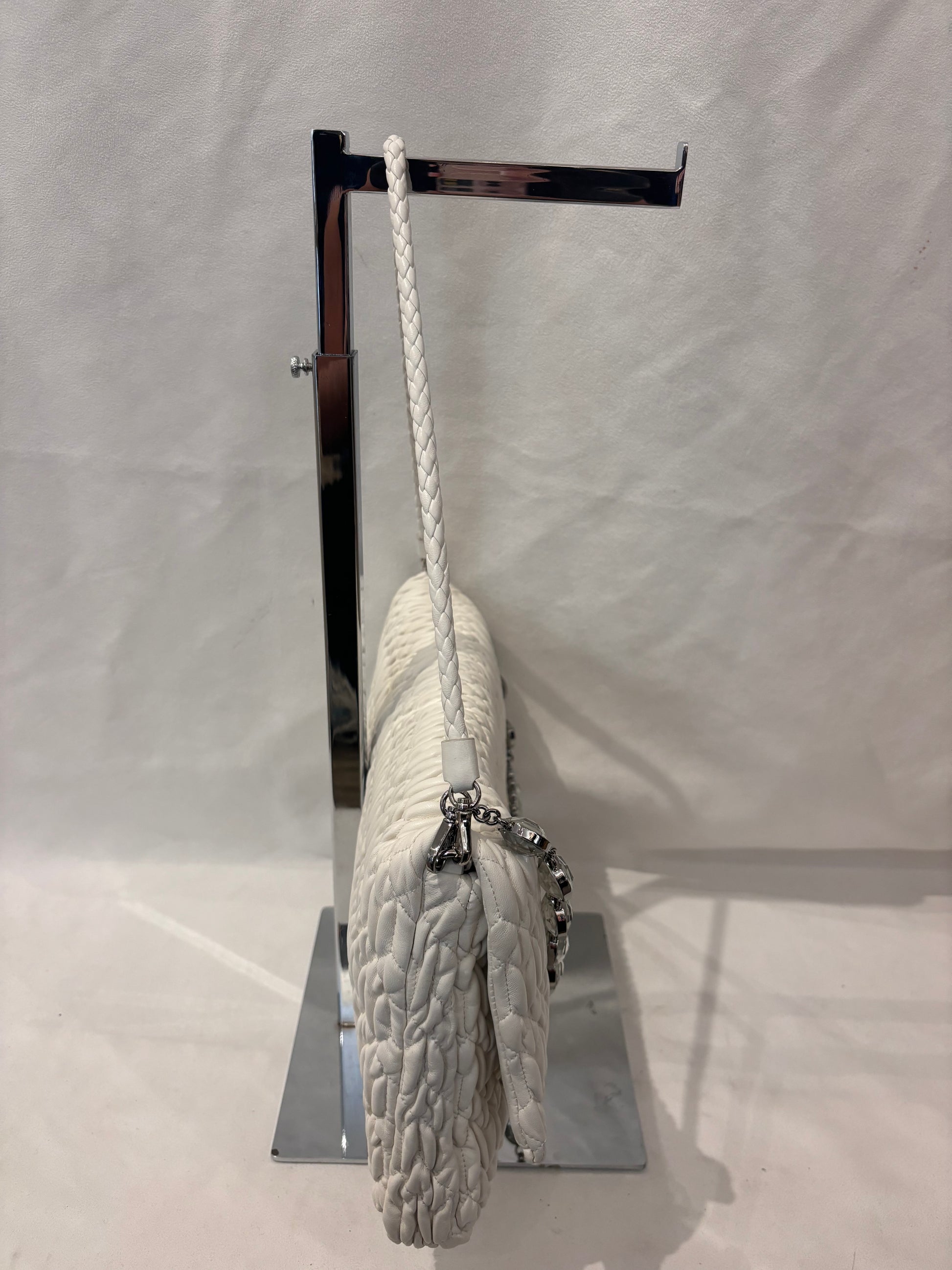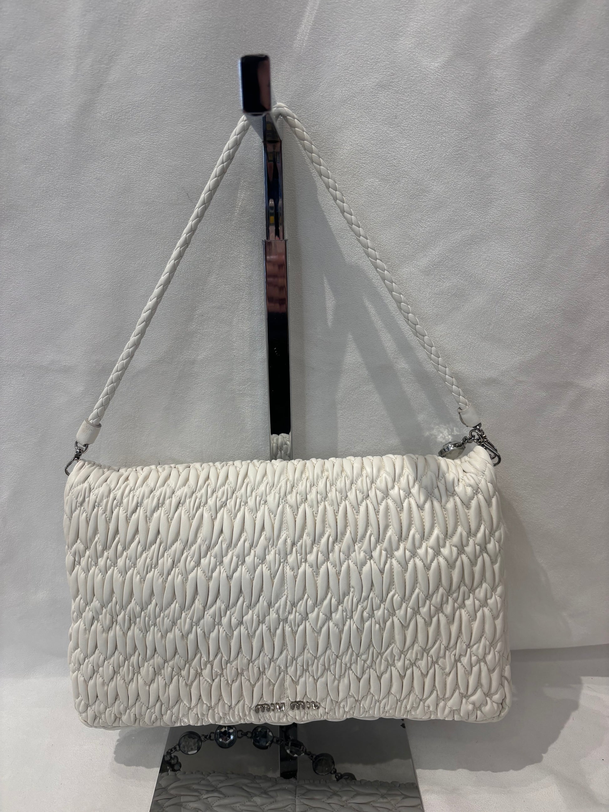 Miu Miu Large White Iconic Shoulder Bag with Crystal Strap