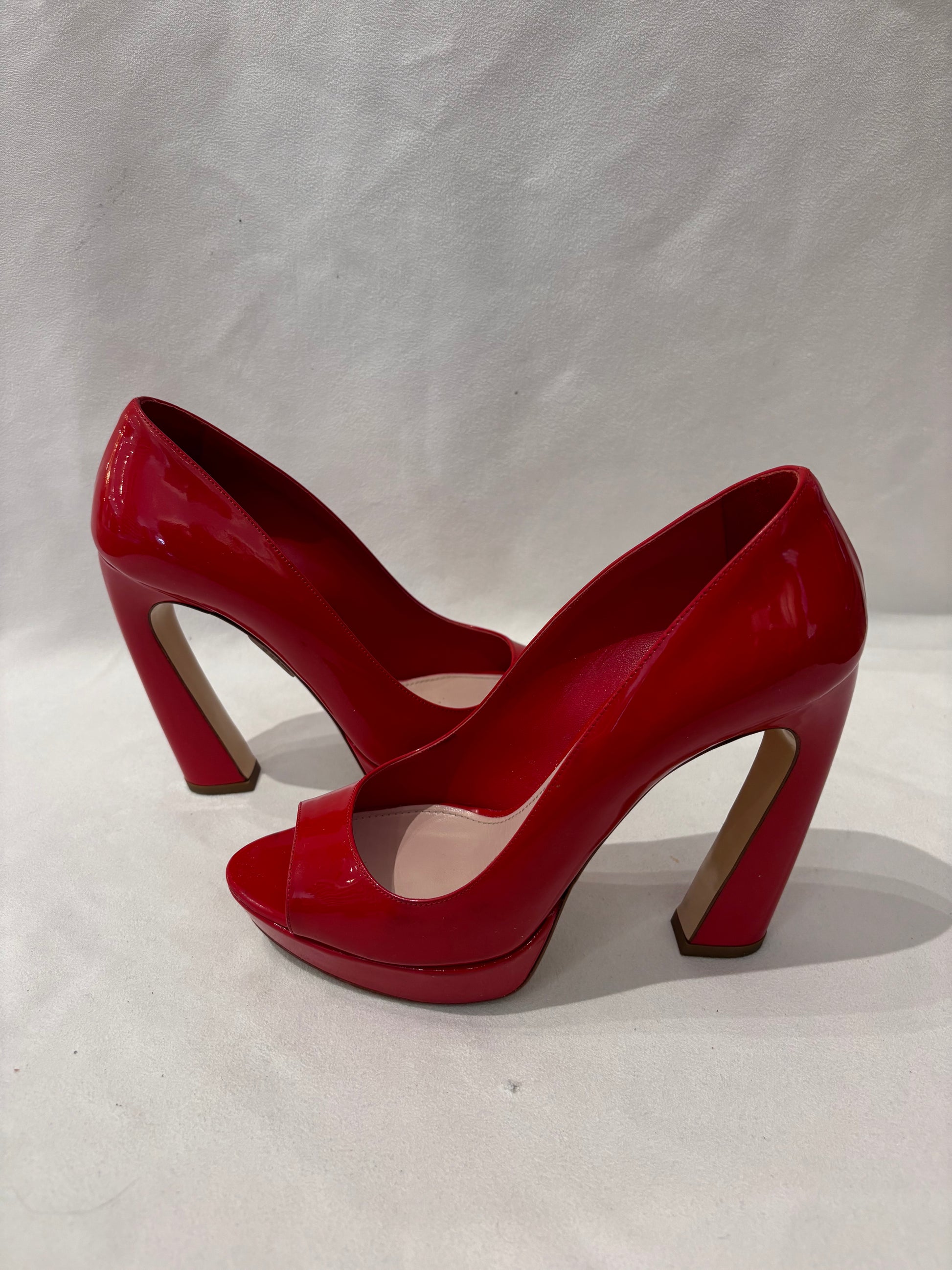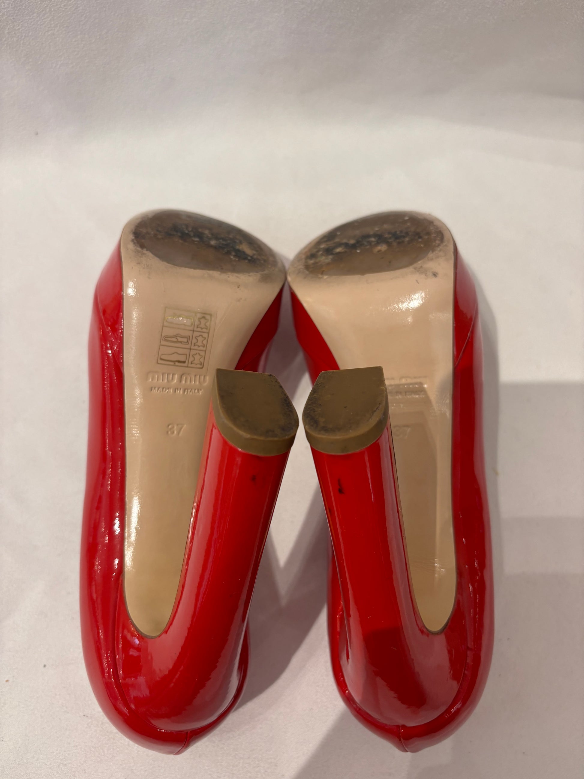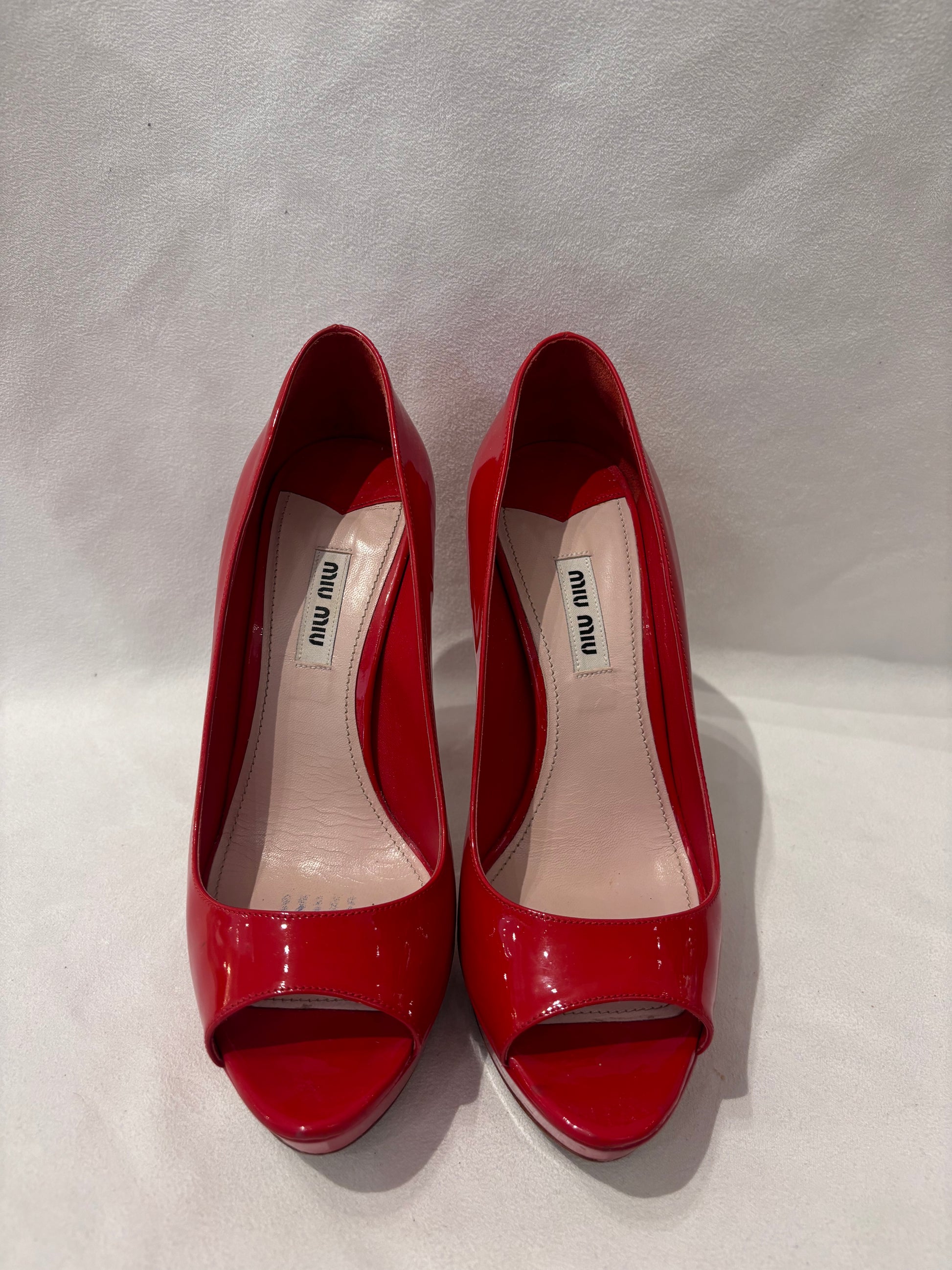 Miu Miu Red Patent Leather Peep Toe Pump Size 37