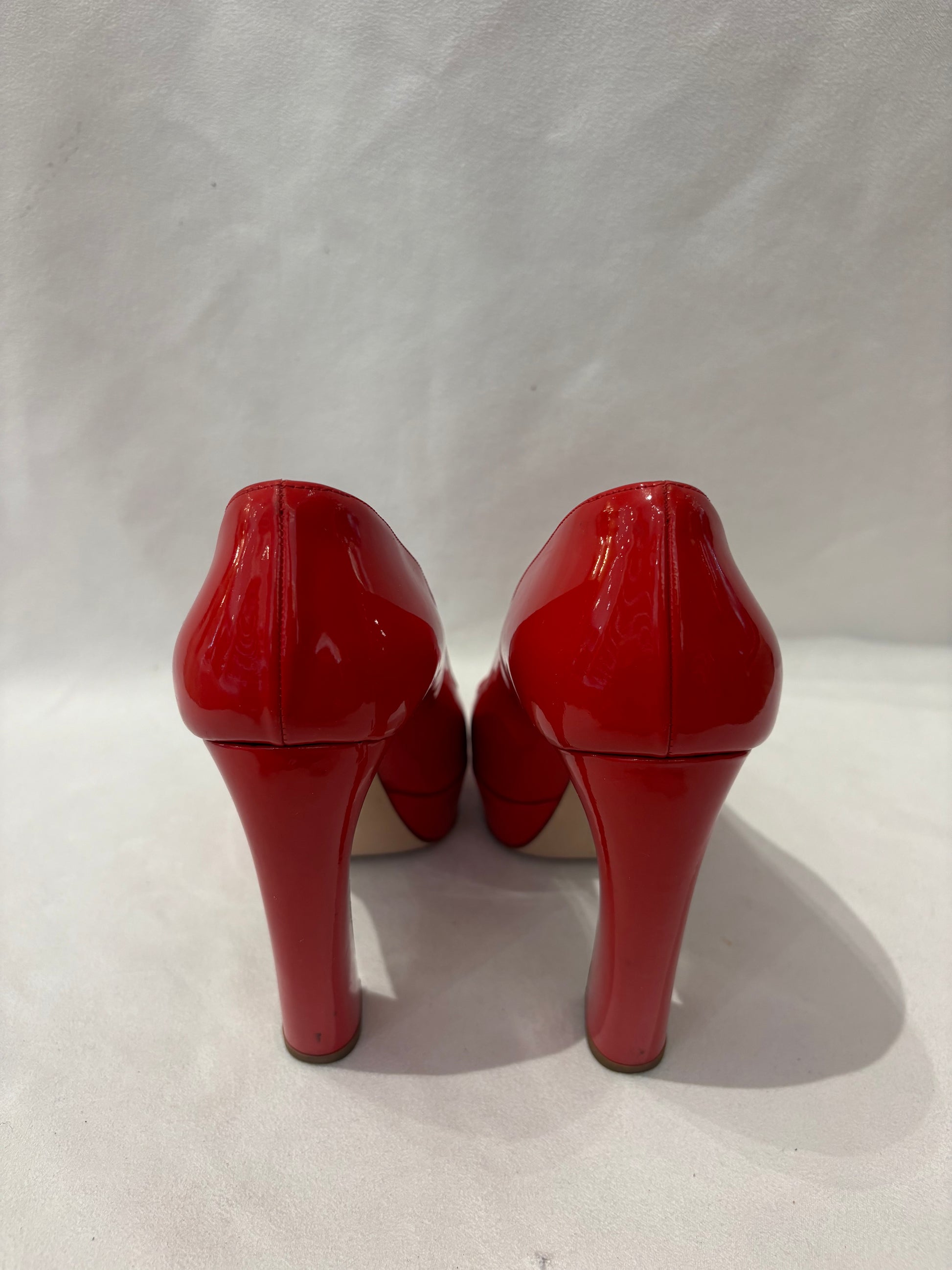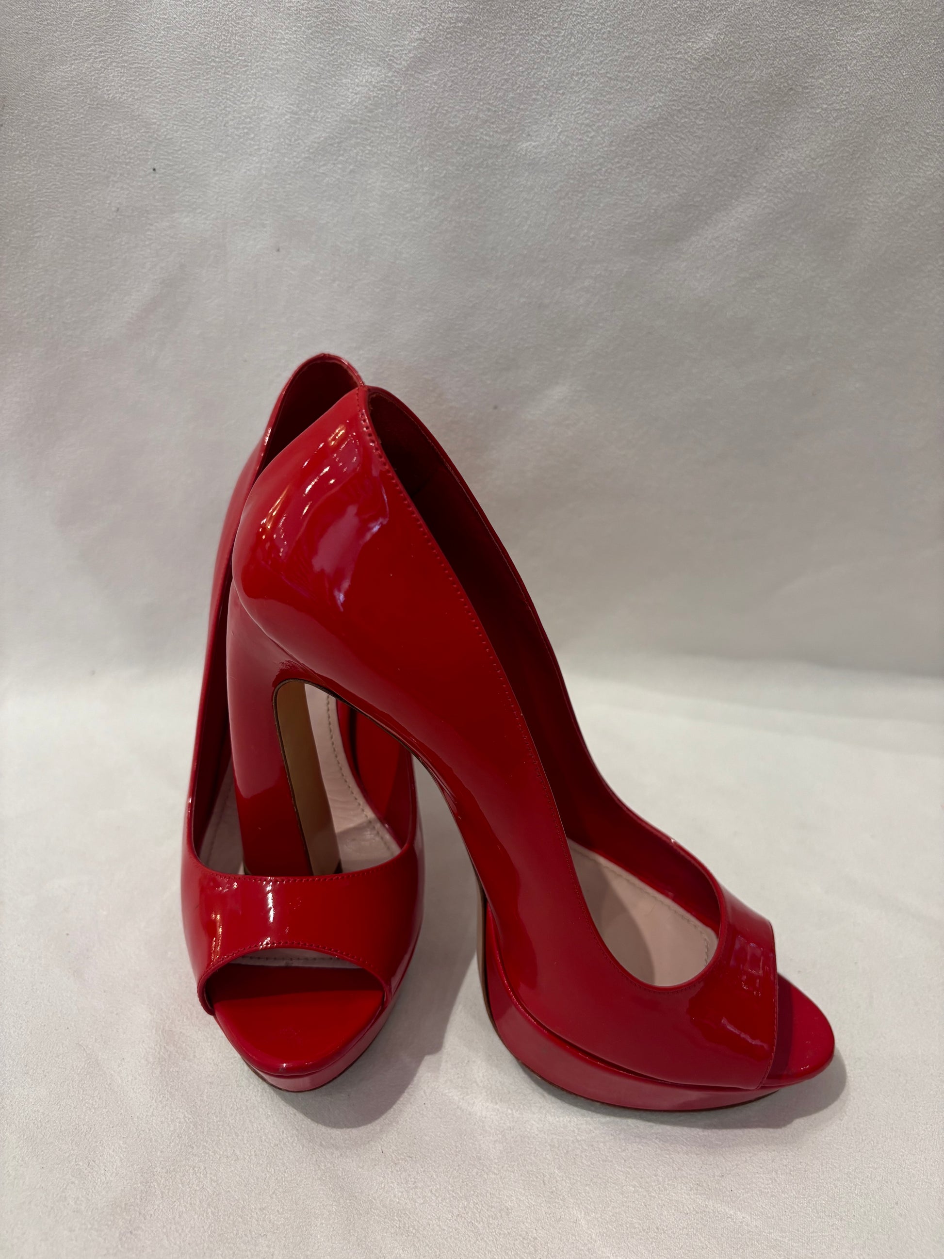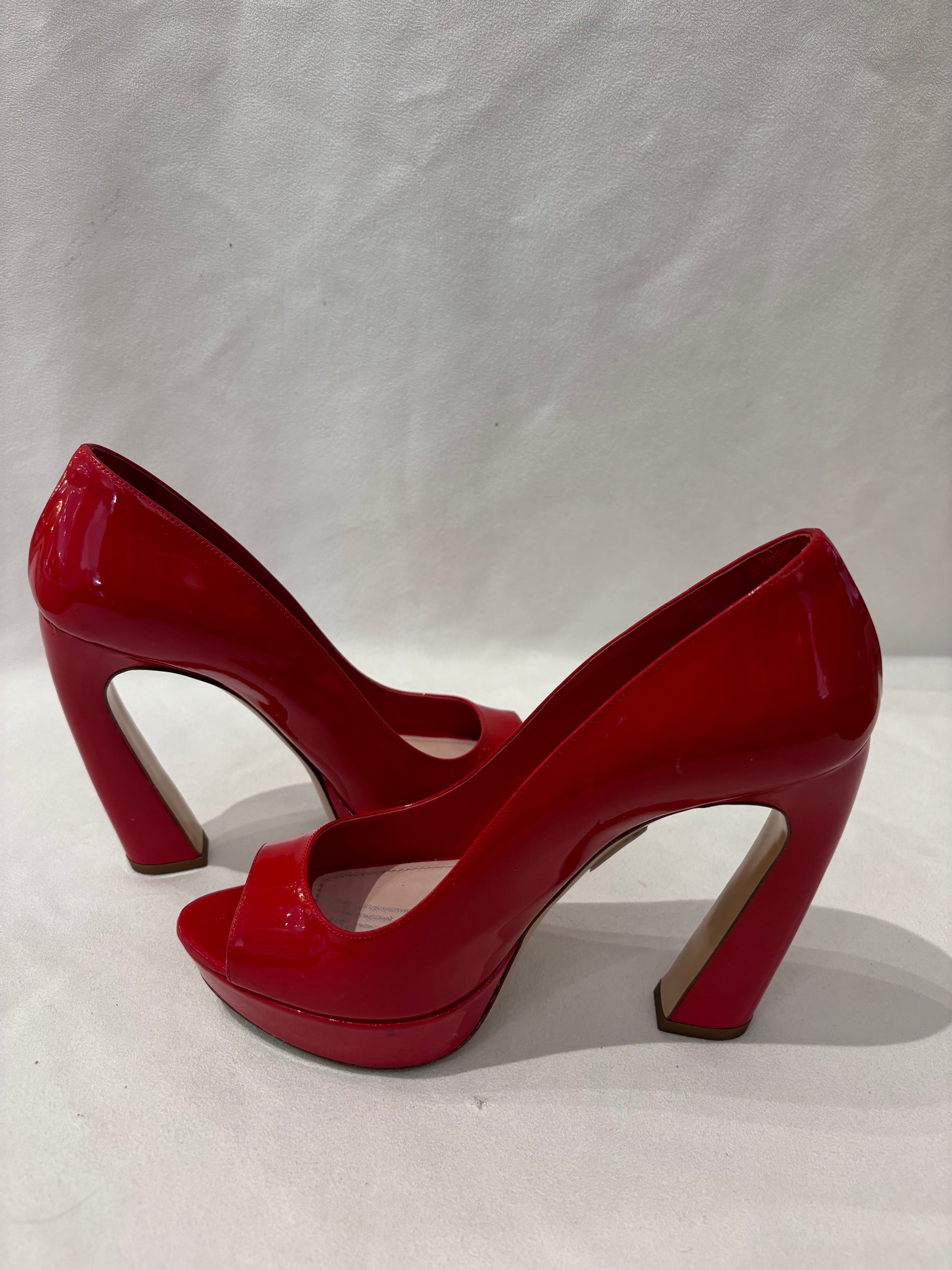 Miu Miu Red Patent Leather Peep Toe Pump Size 37