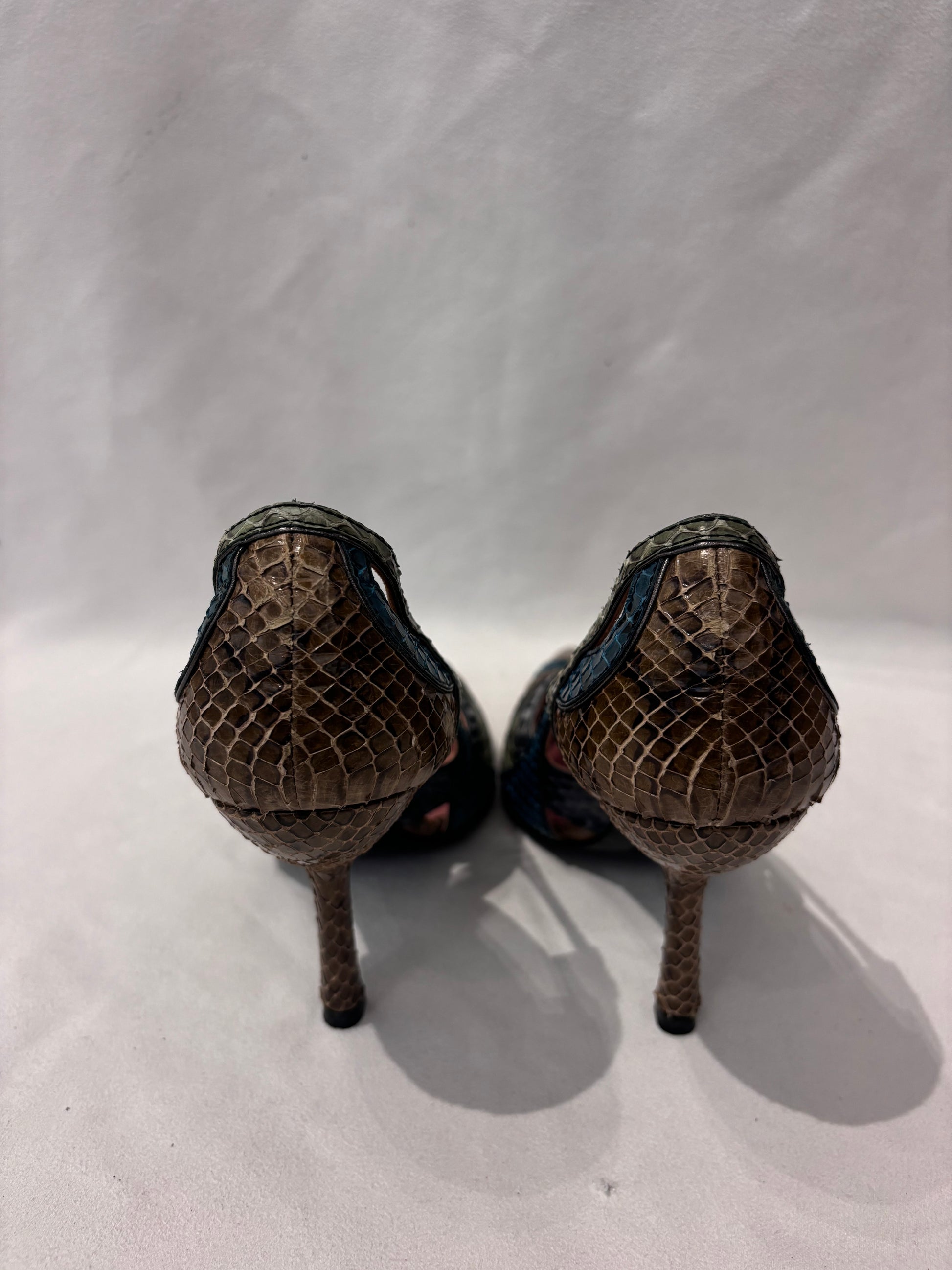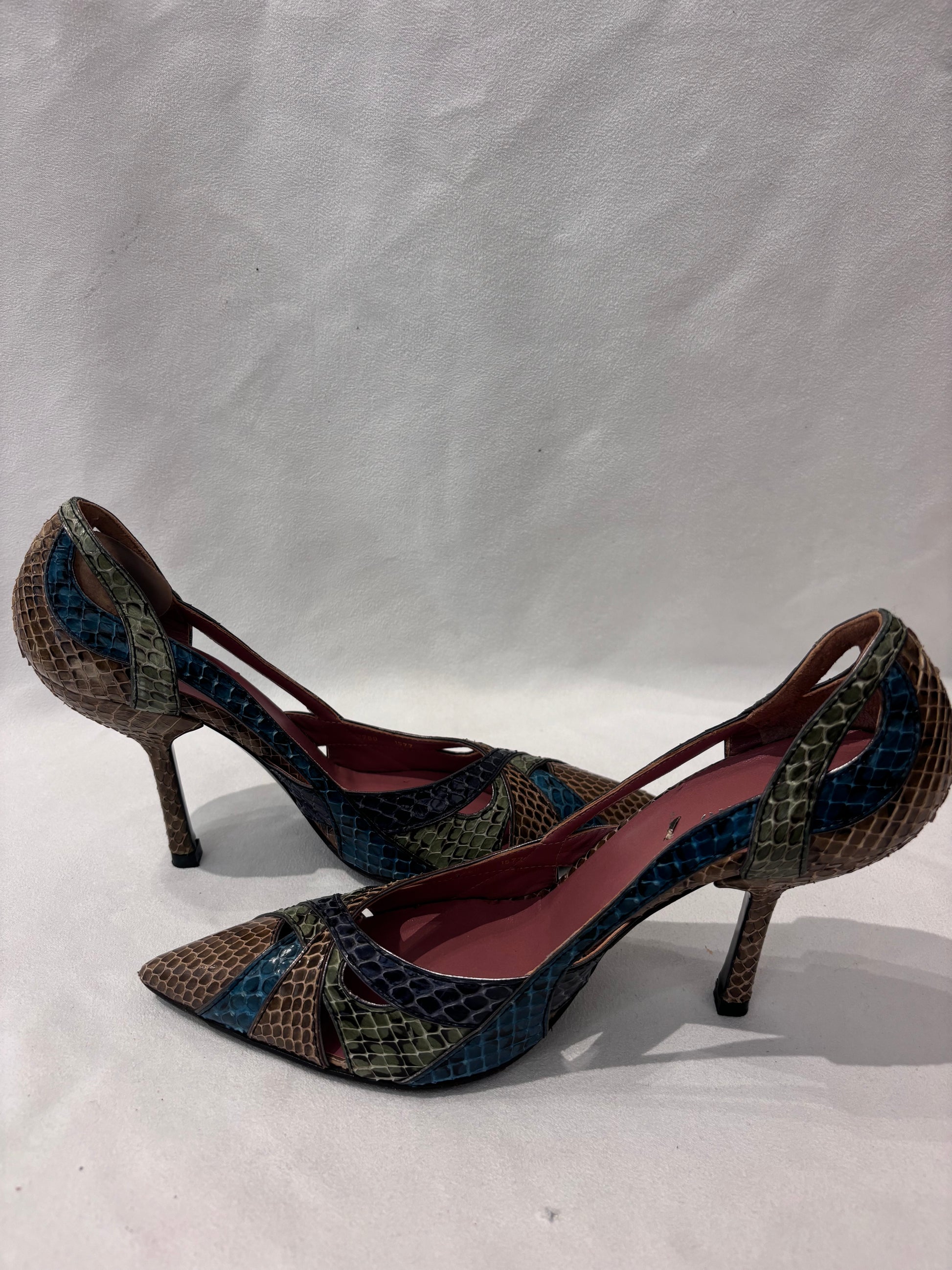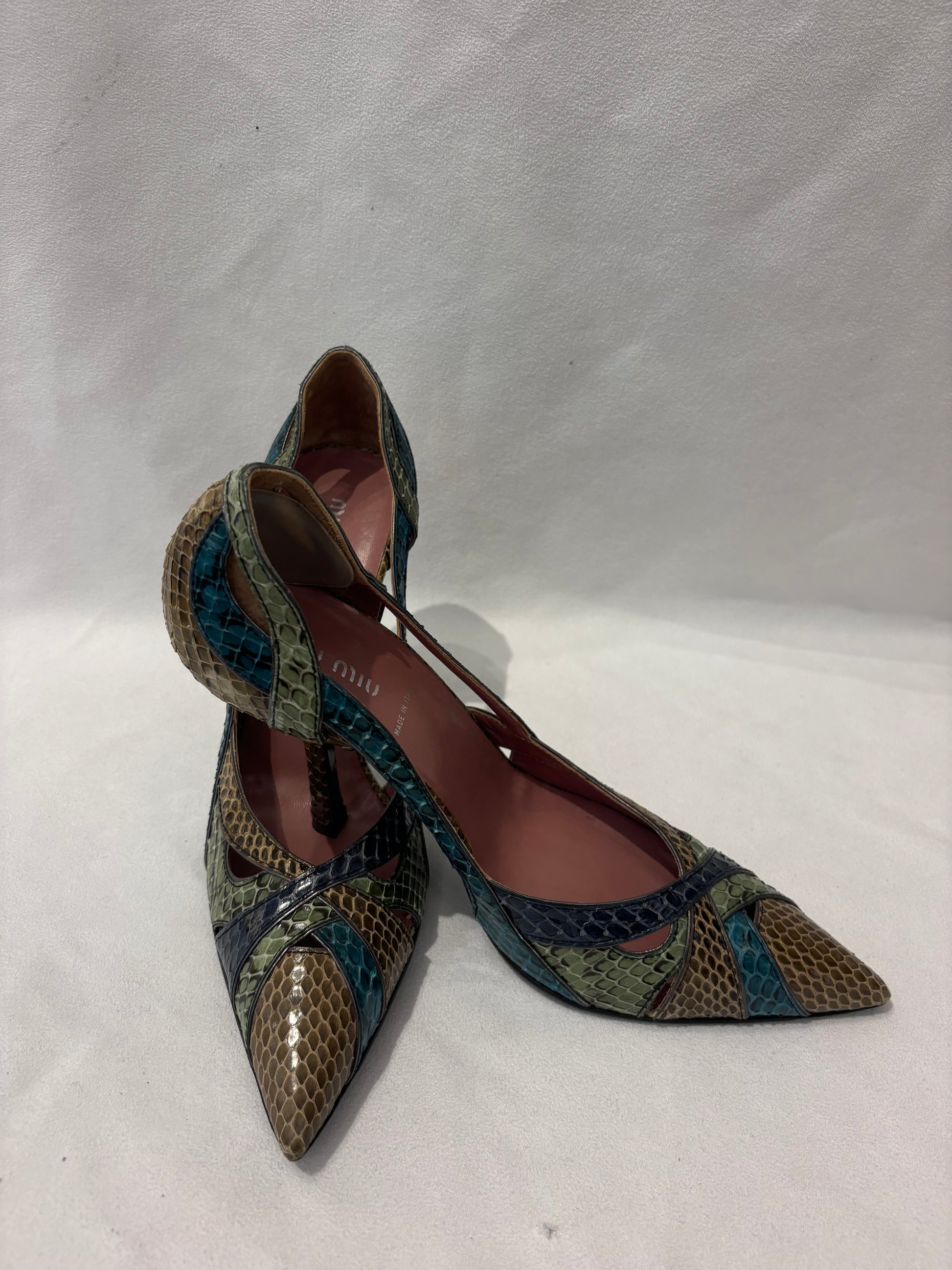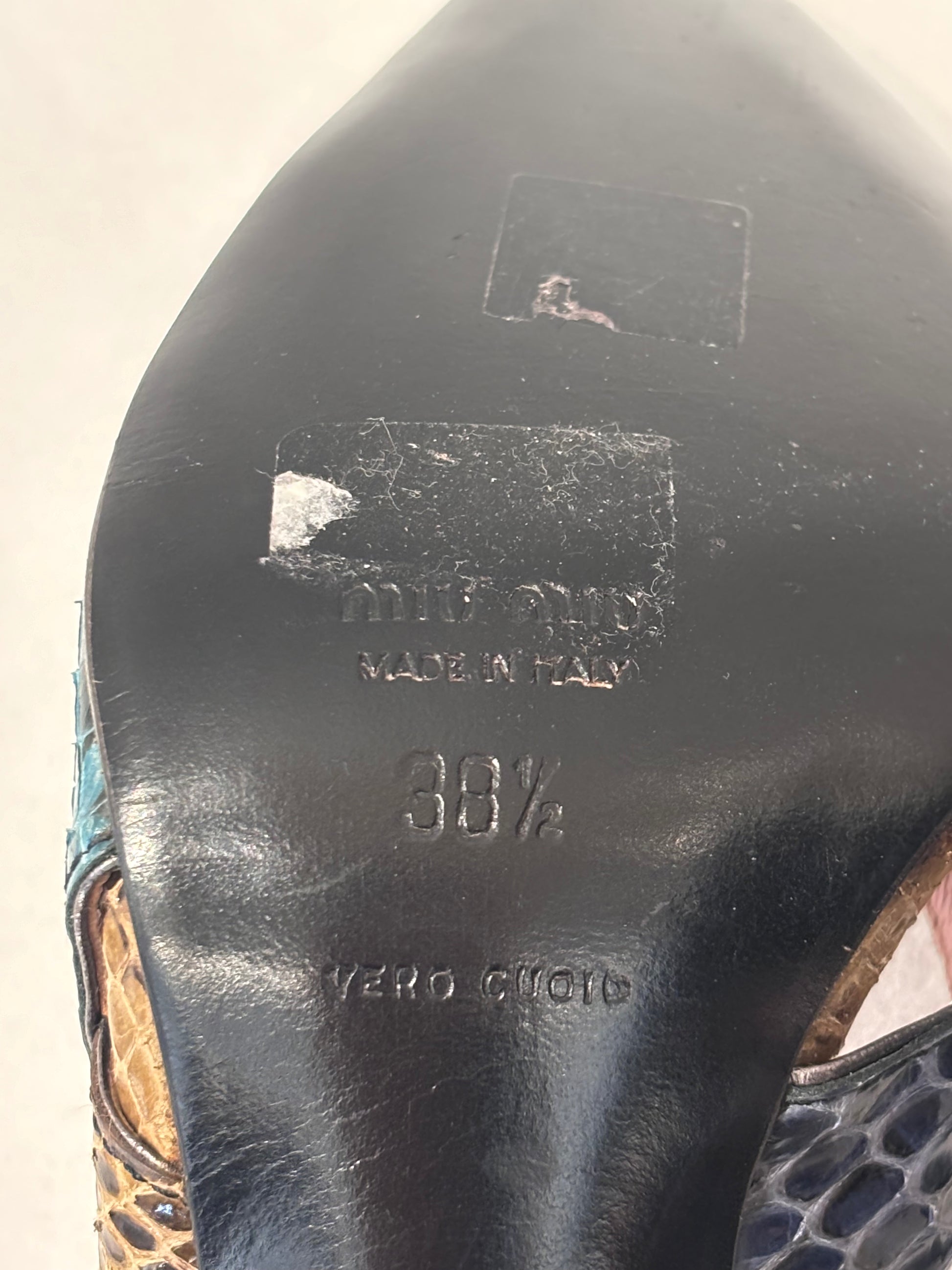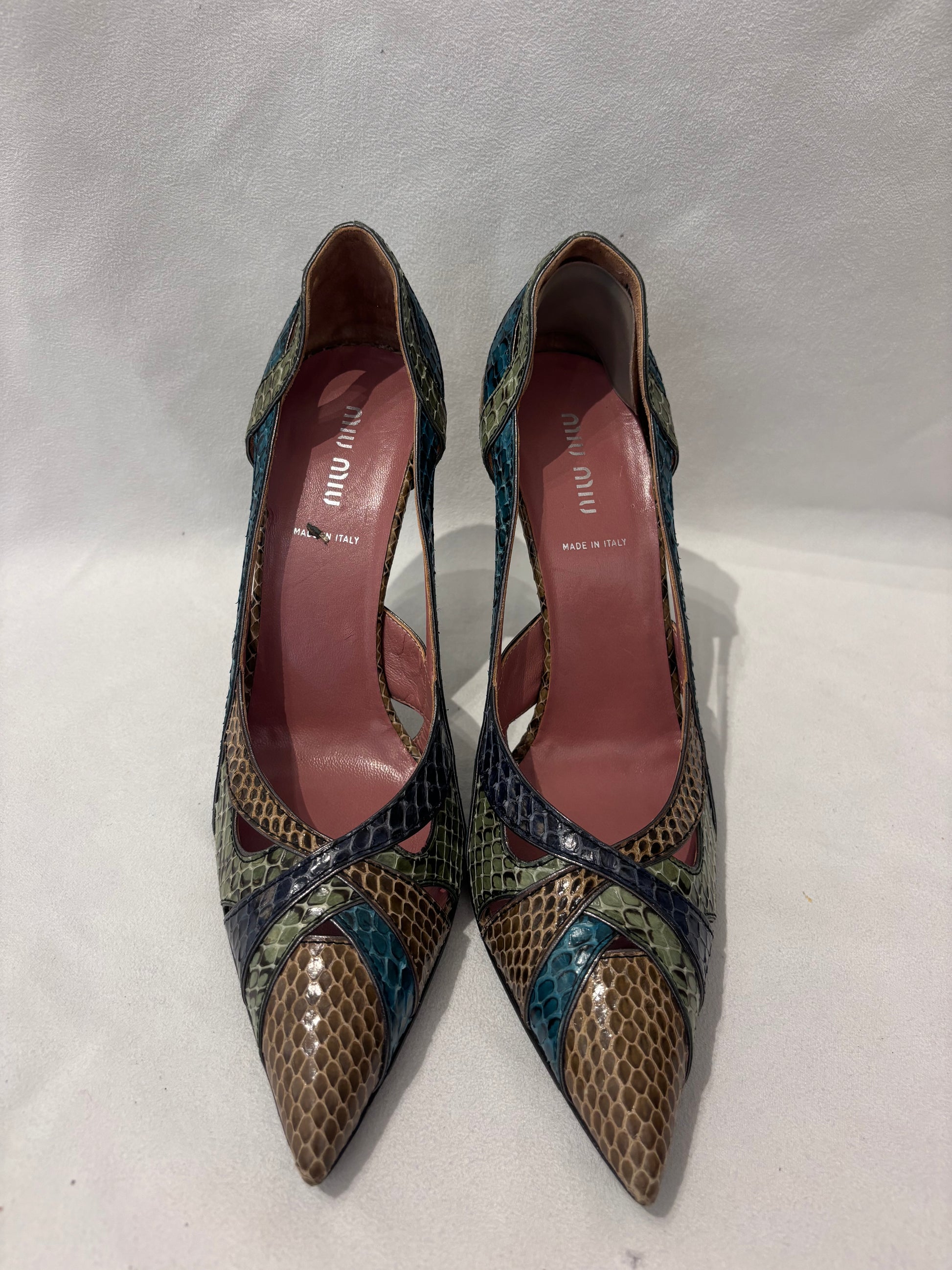 Miu Miu Brown/Green/Blue Snakeskin Pointy Pump Size 38.5