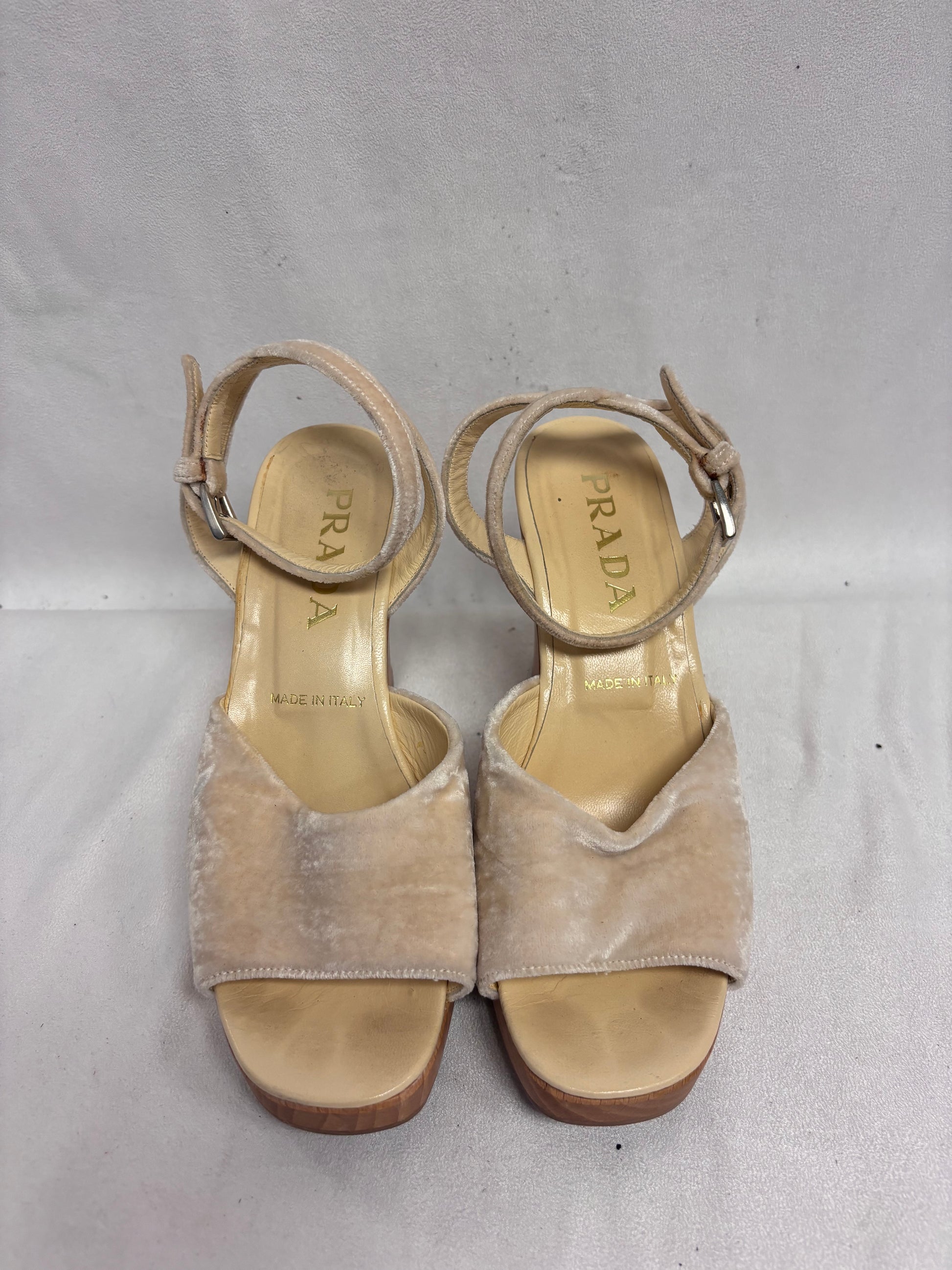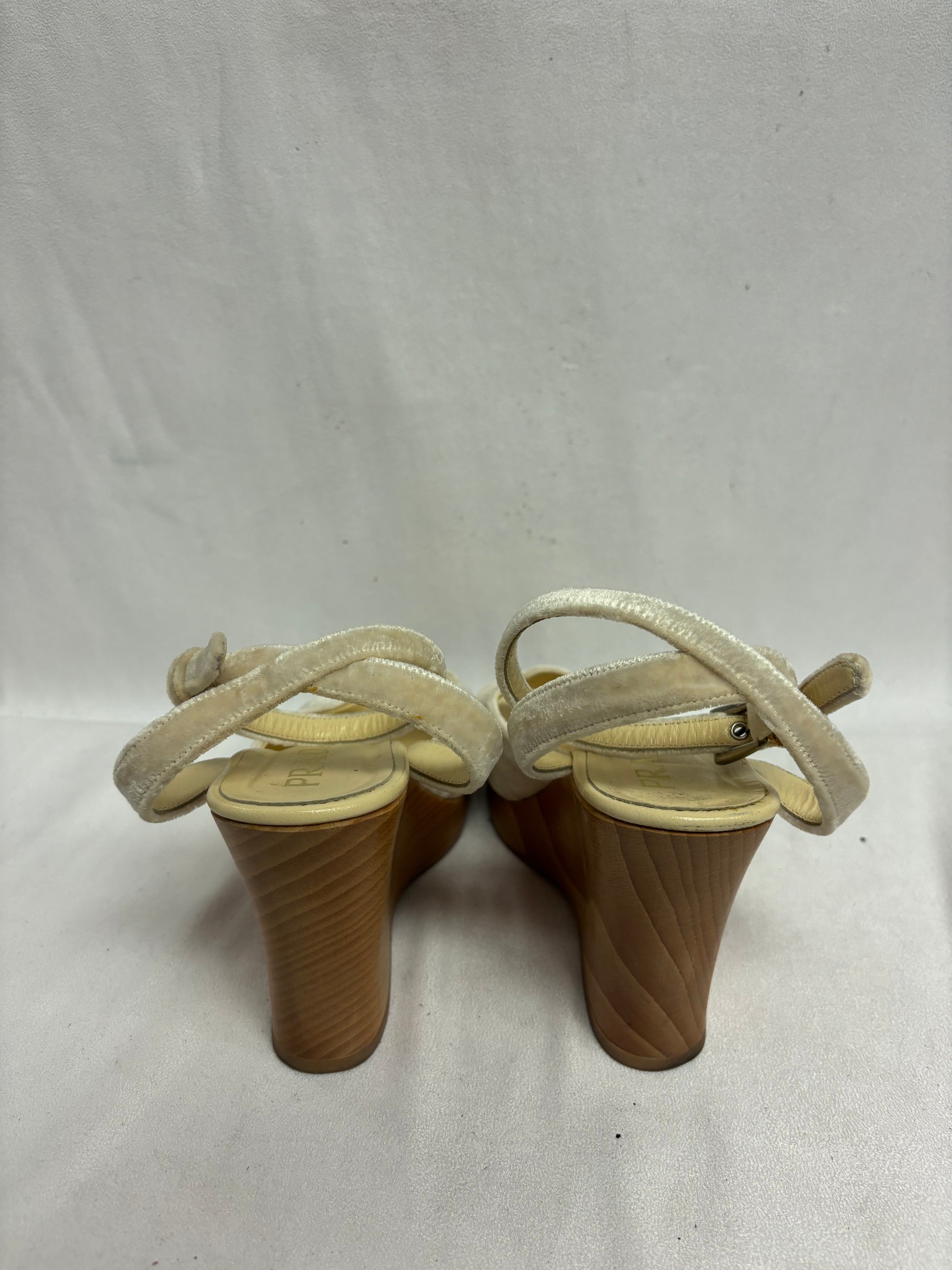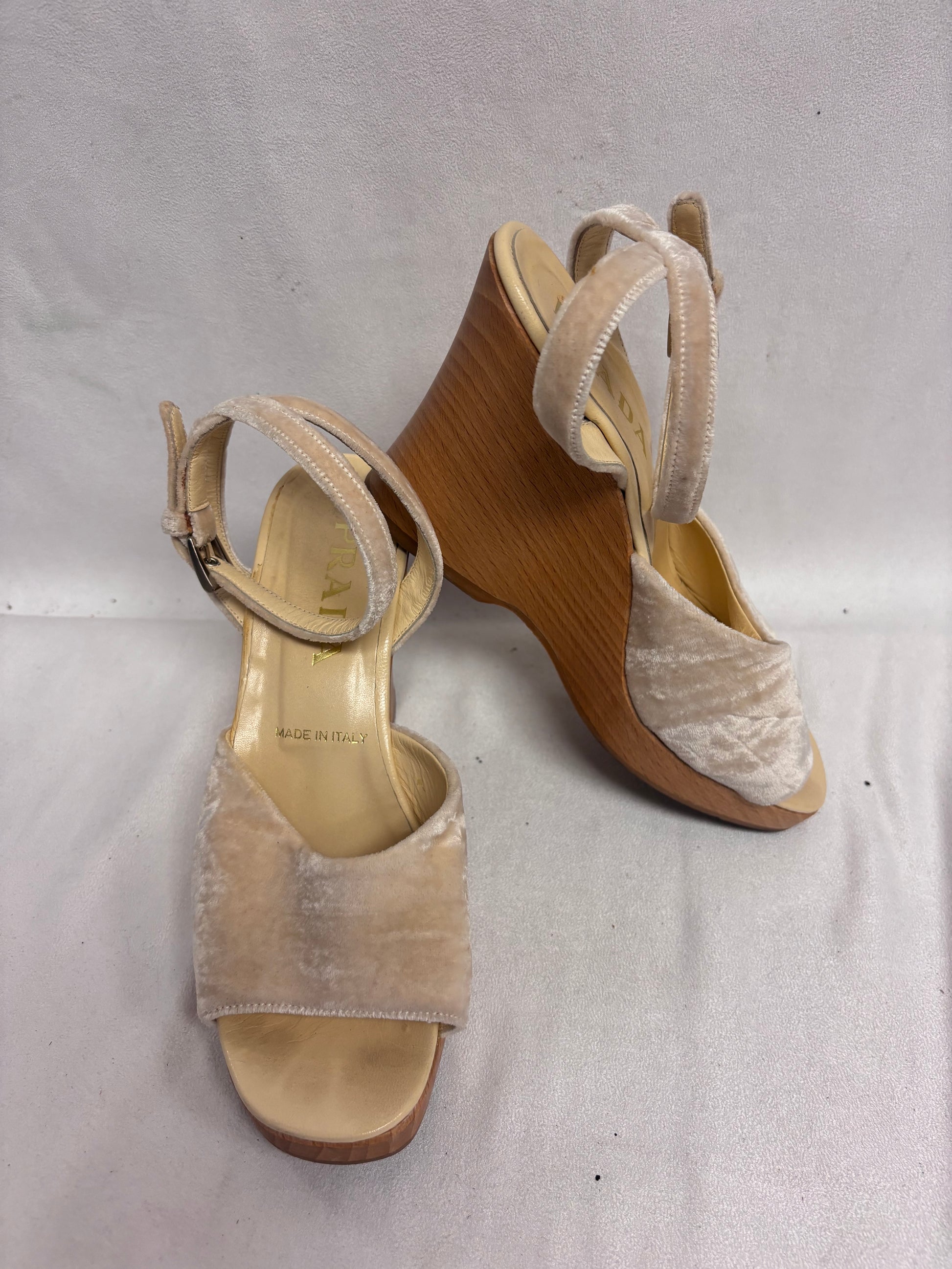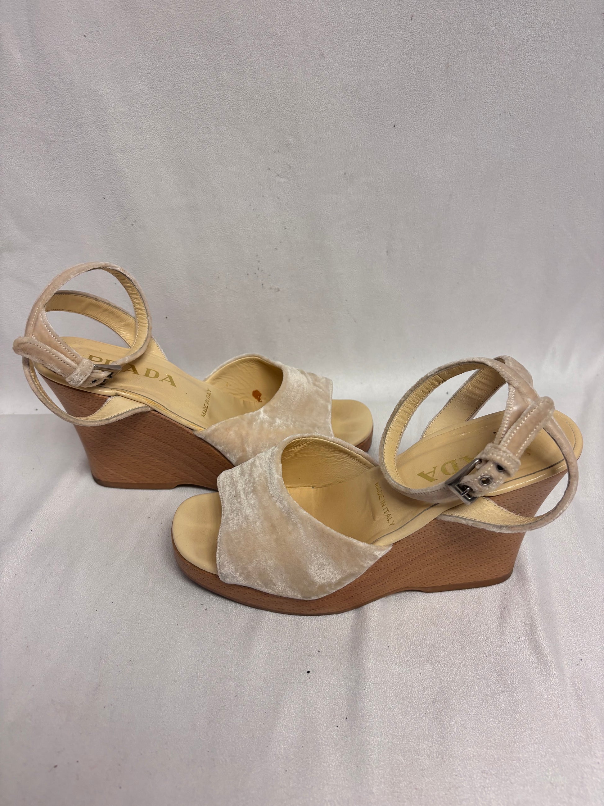 Prada Cream Velvet Wedges with Wooden Platforms Size 38.5
