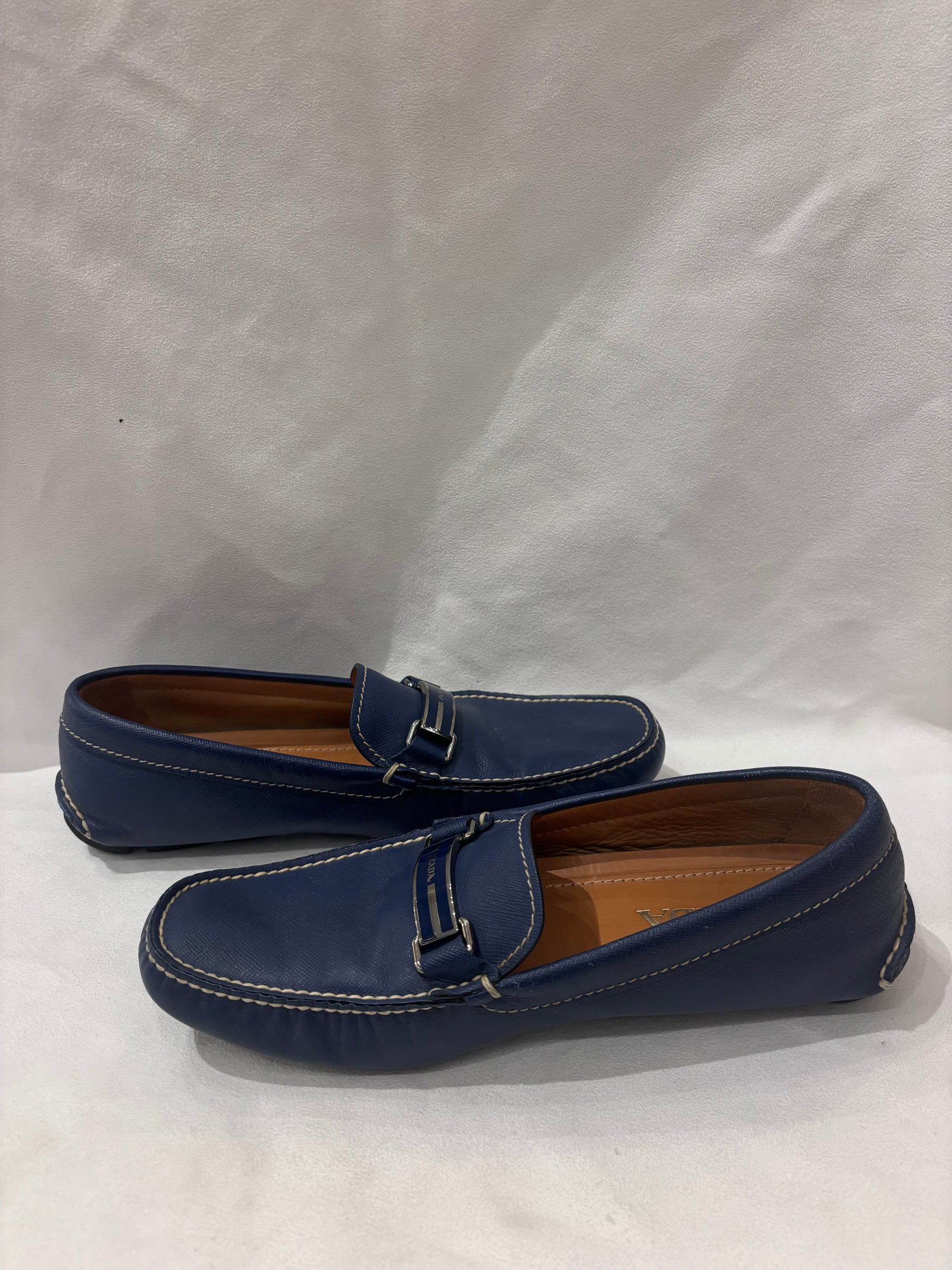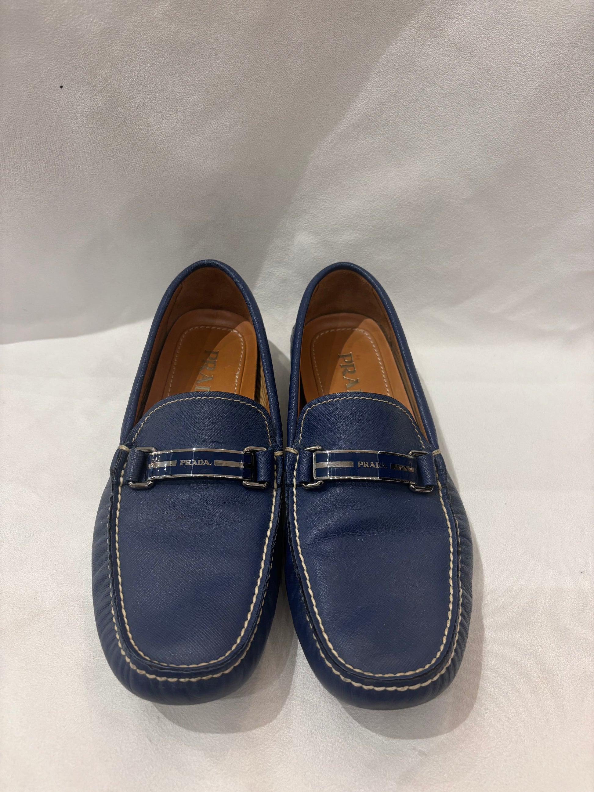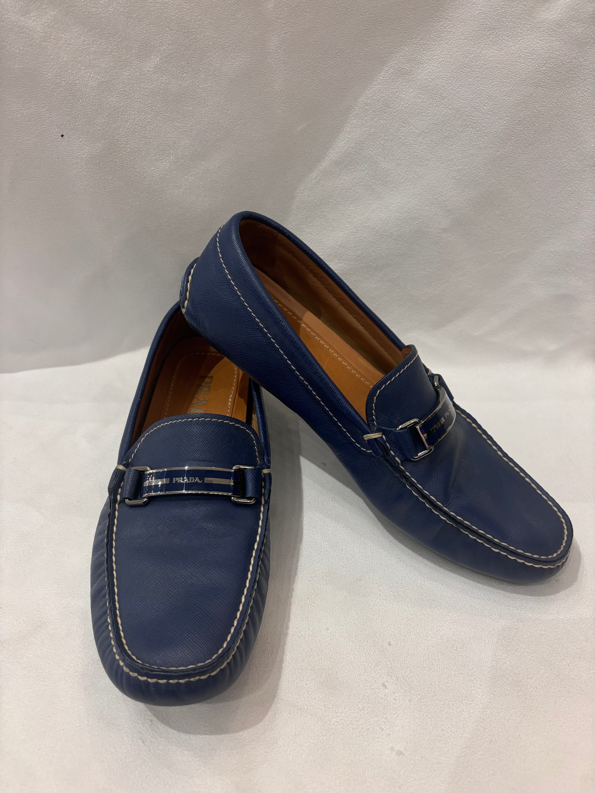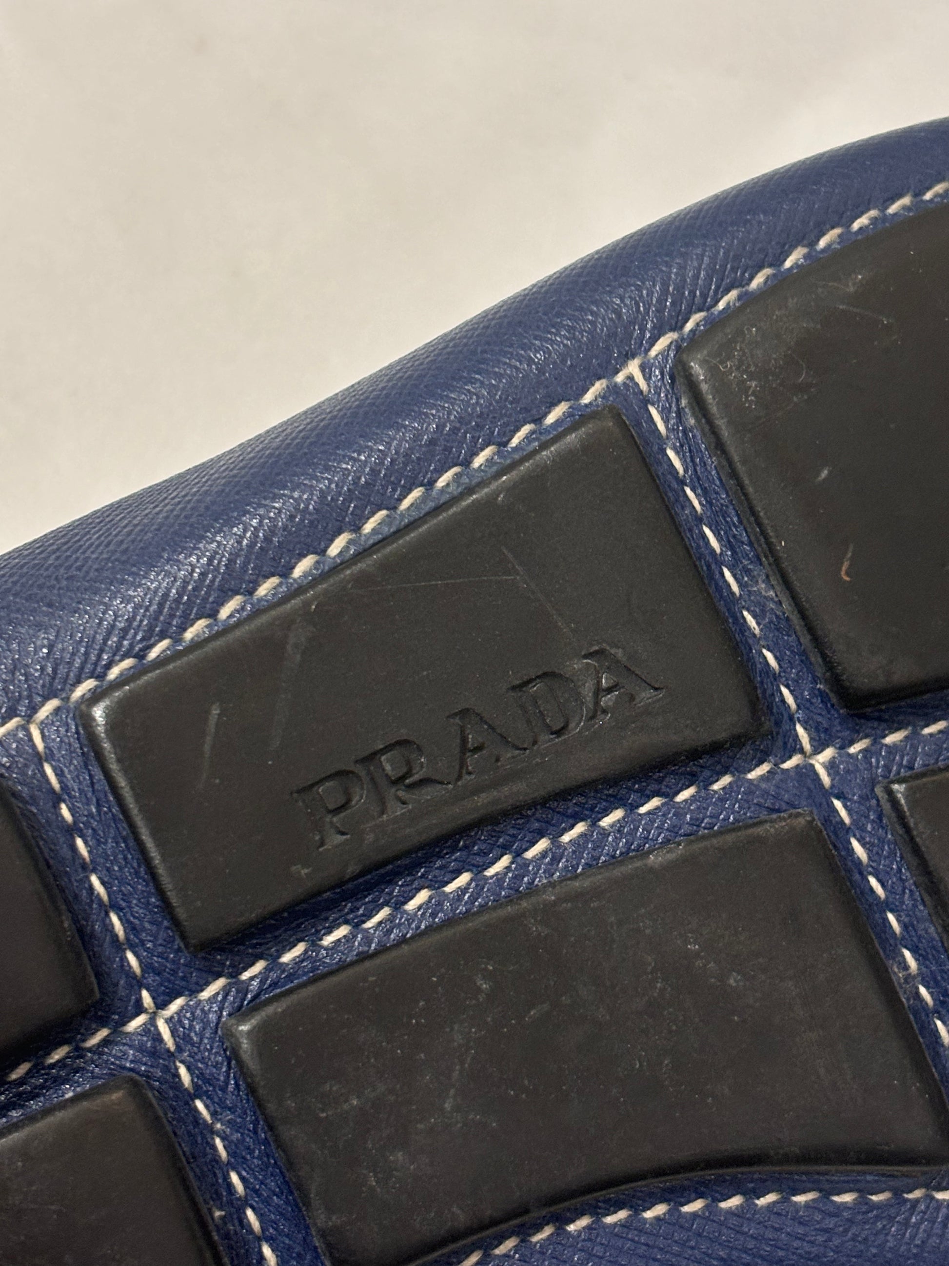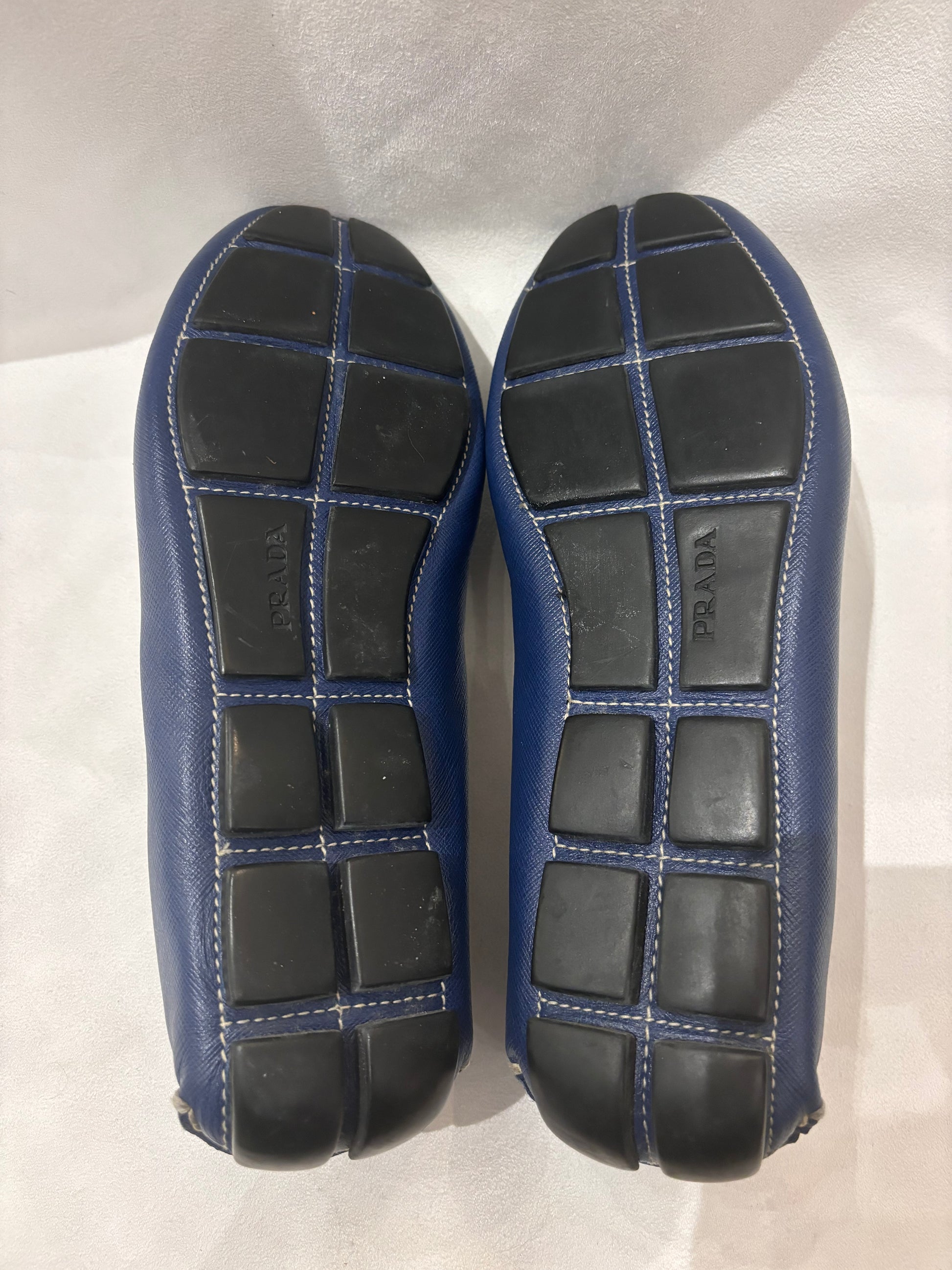 Prada Blue Saffiano Leather Driving Moccasins Size 37