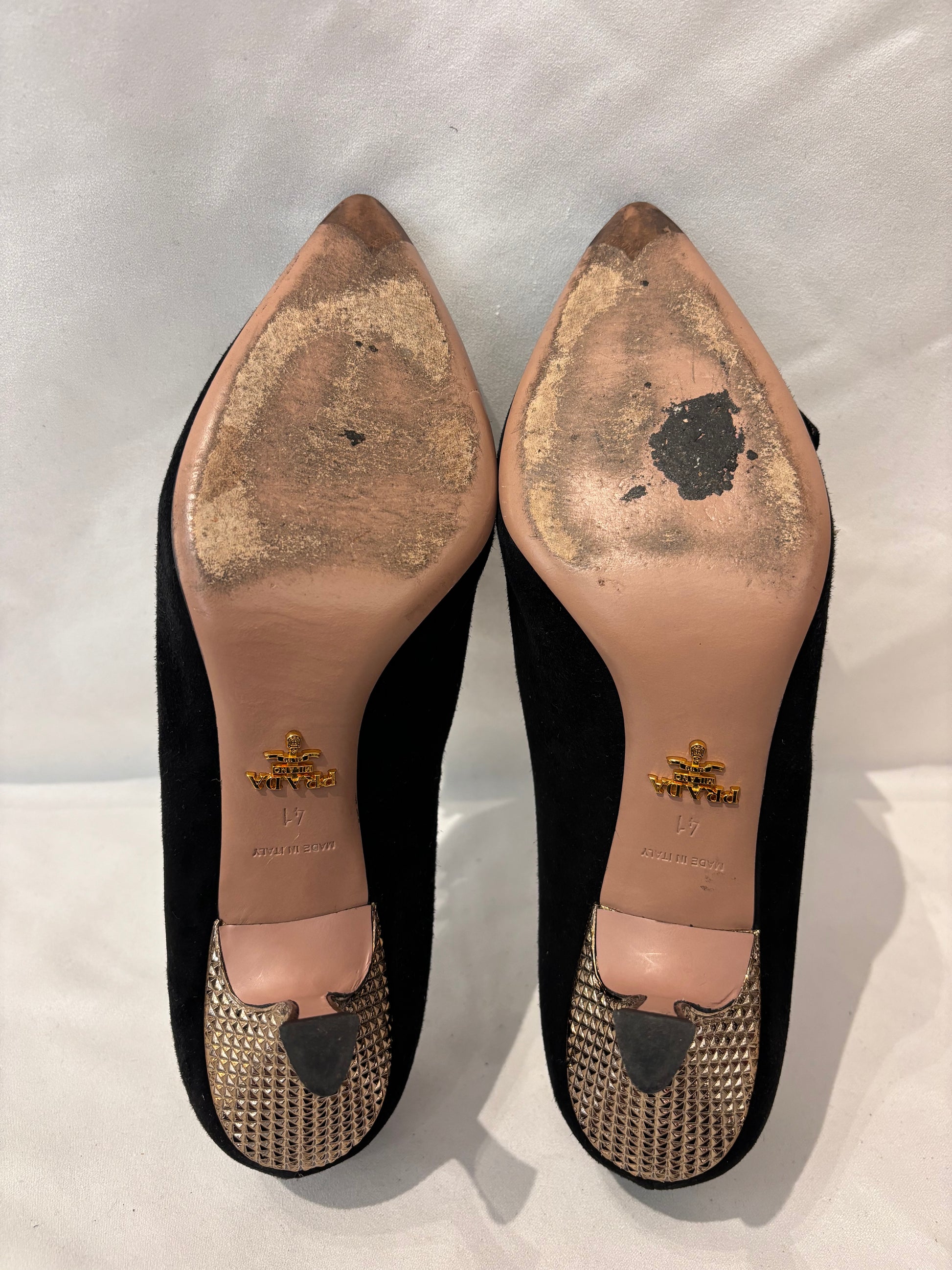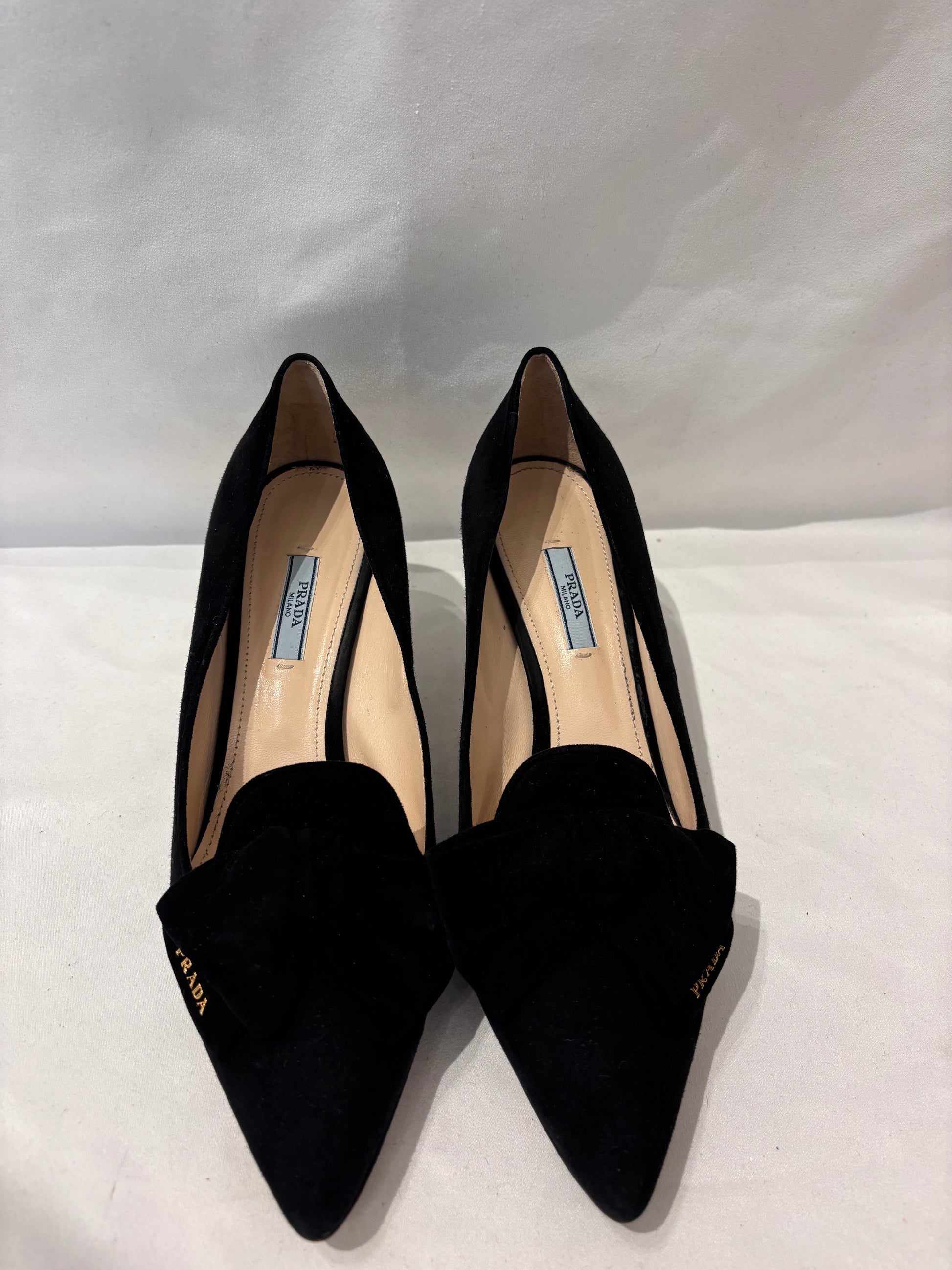 Prada Black Suede Pointy Pump with Bows Size 41