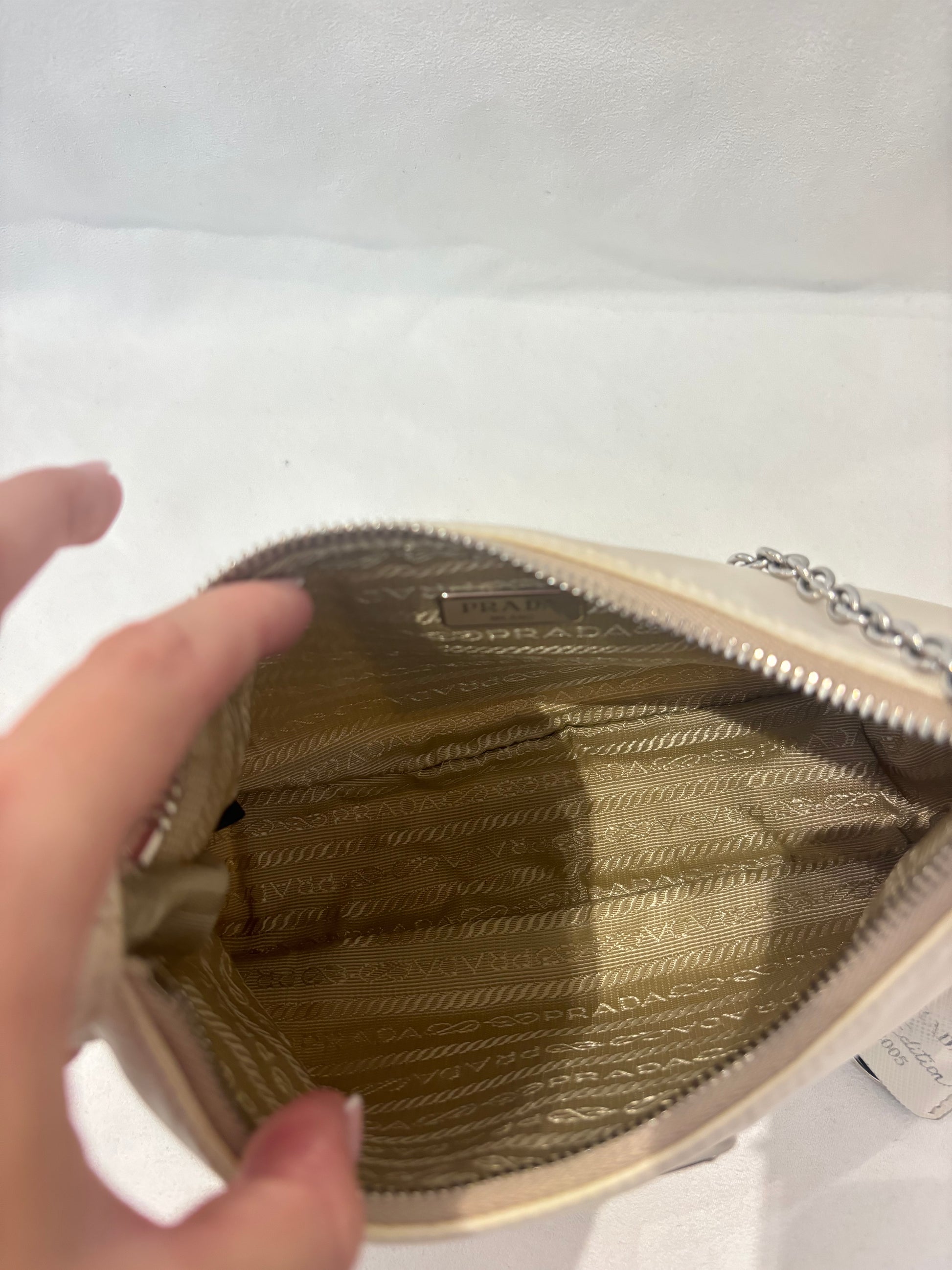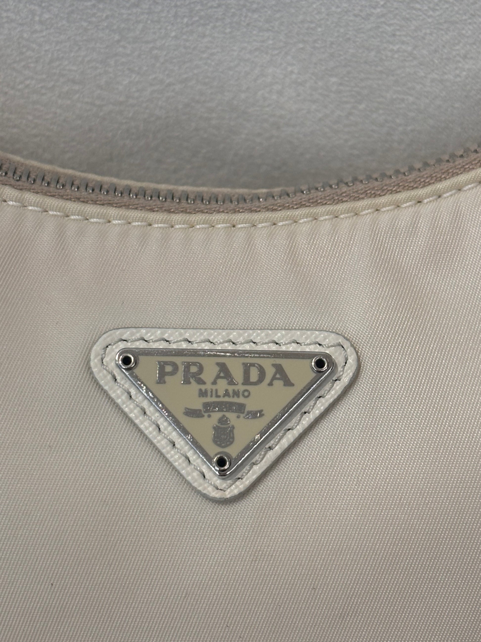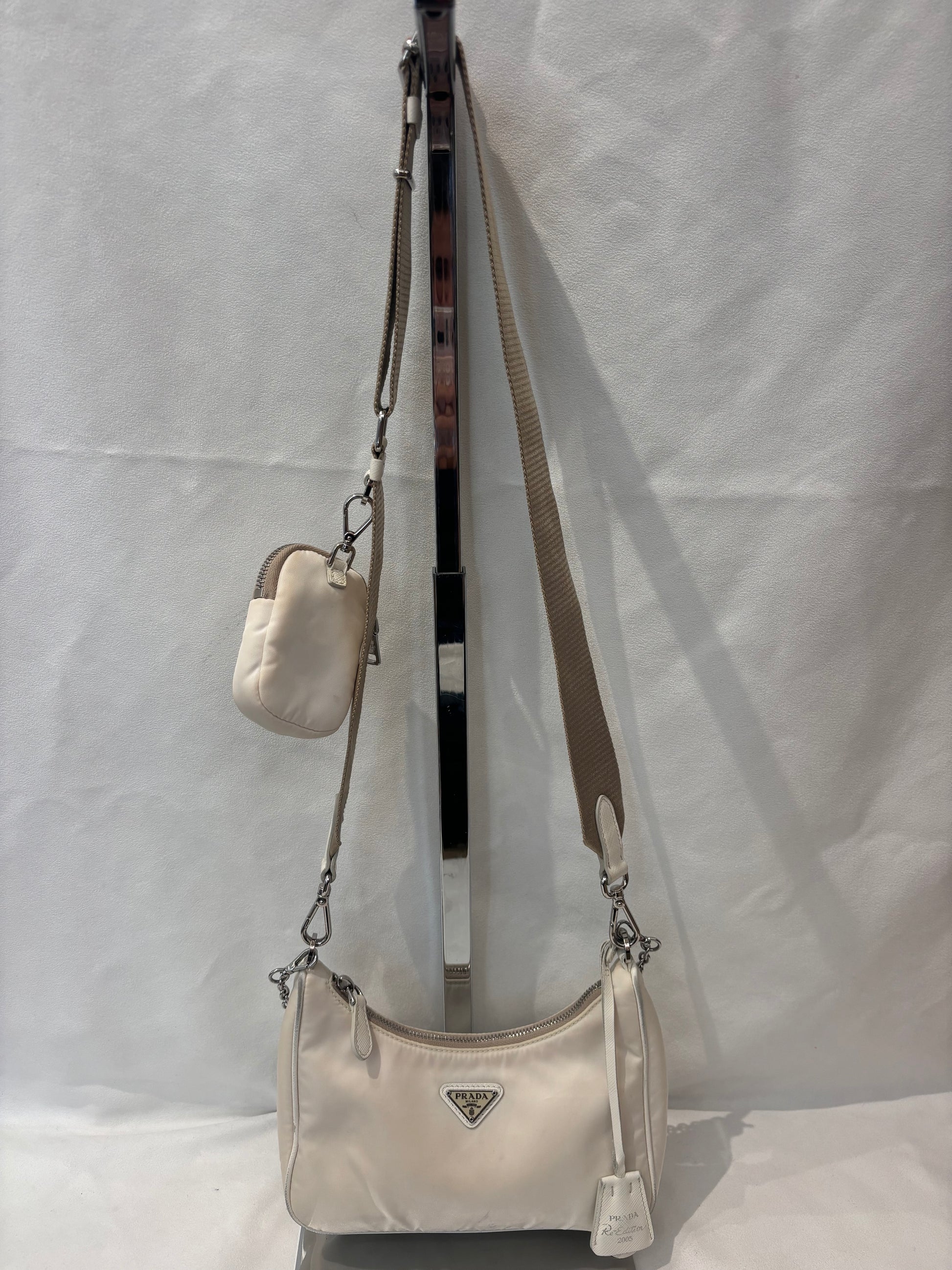Prada Chalk Renylon Shoulder Bag with Extra Strap