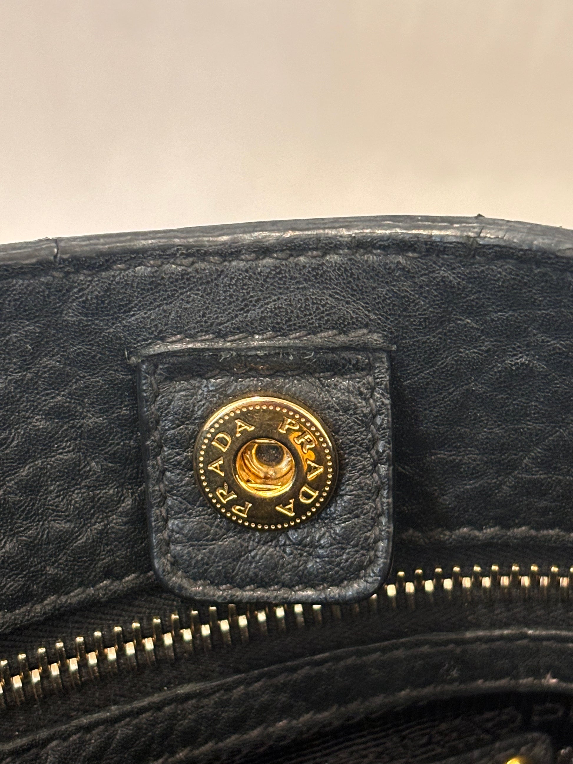 Prada Black Tote with Gold Logo