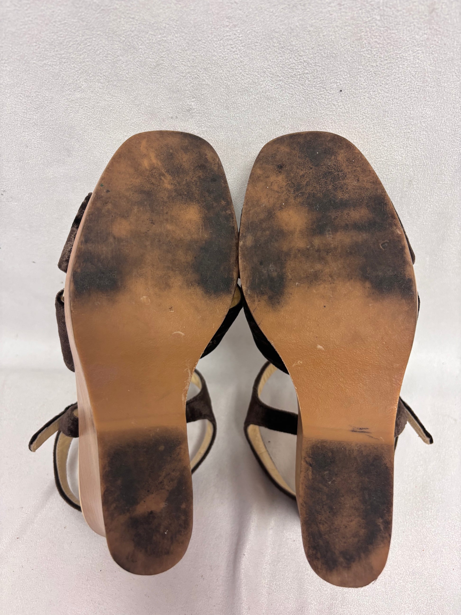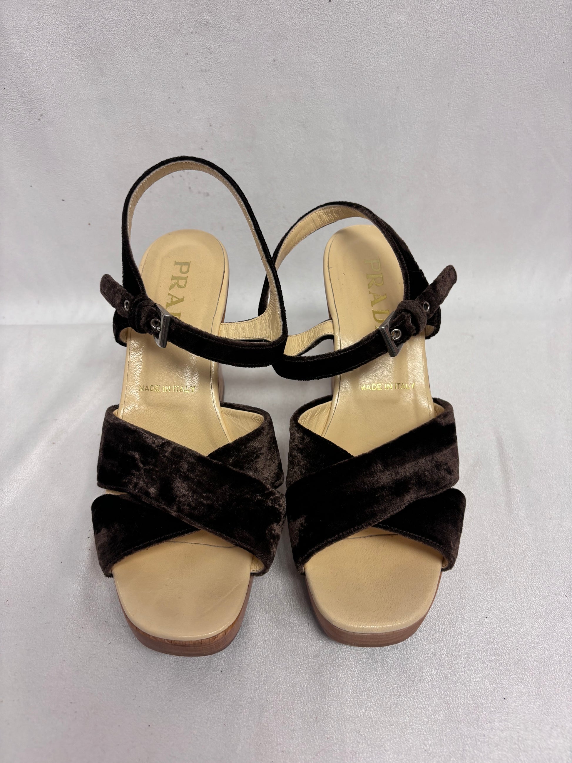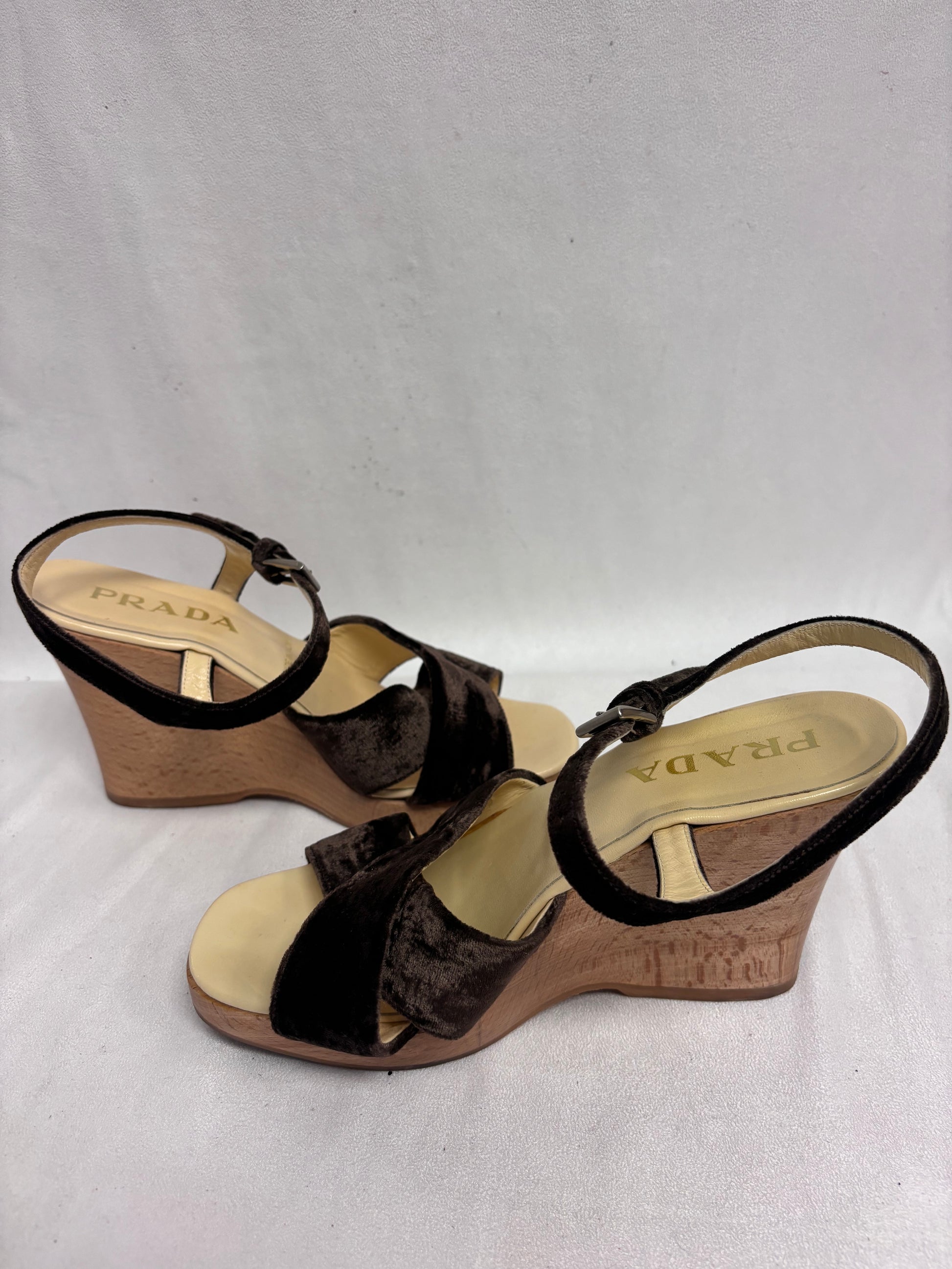 Prada Brown Velvet Wedges with Wooden Platform Size 38.5