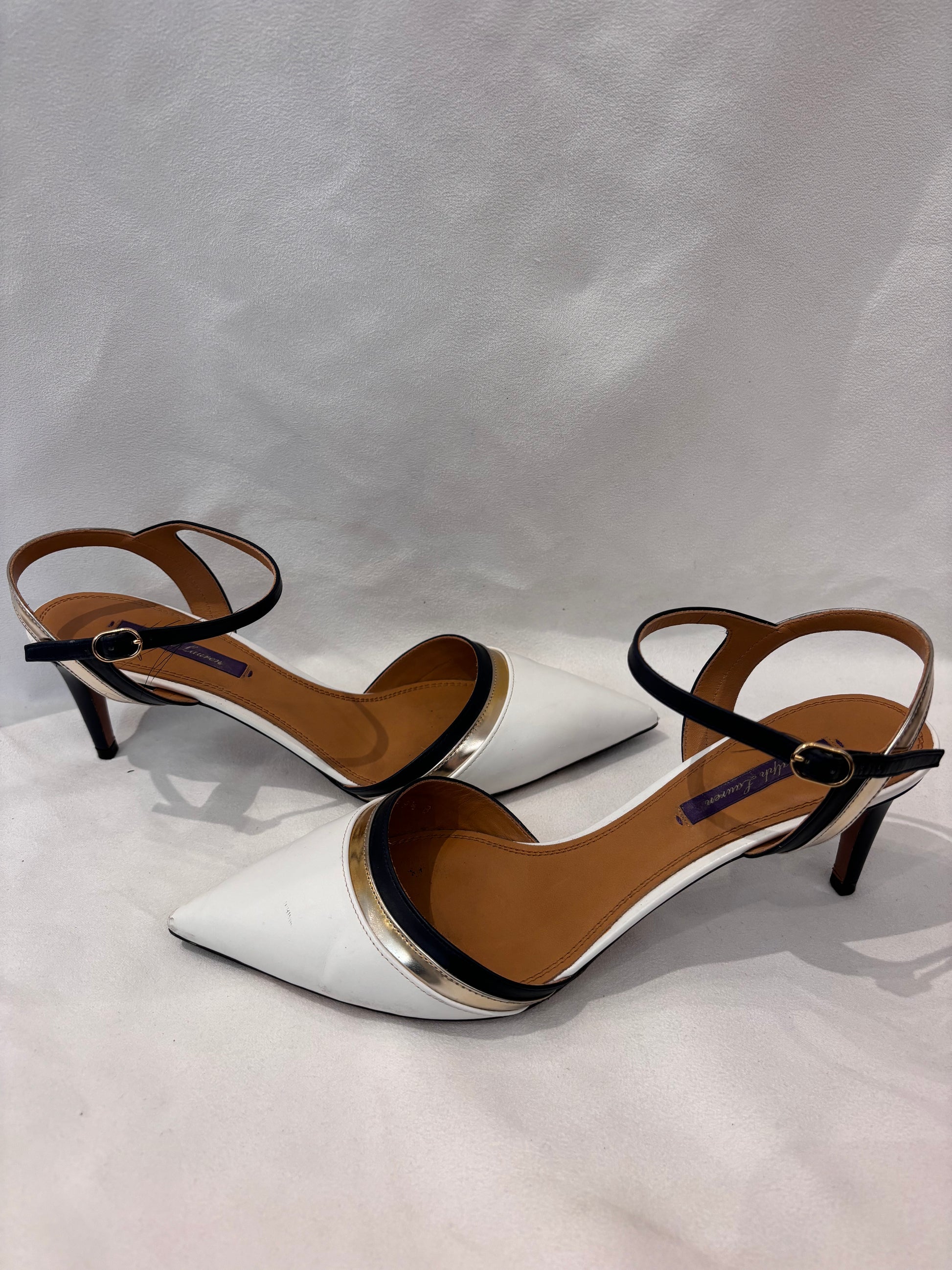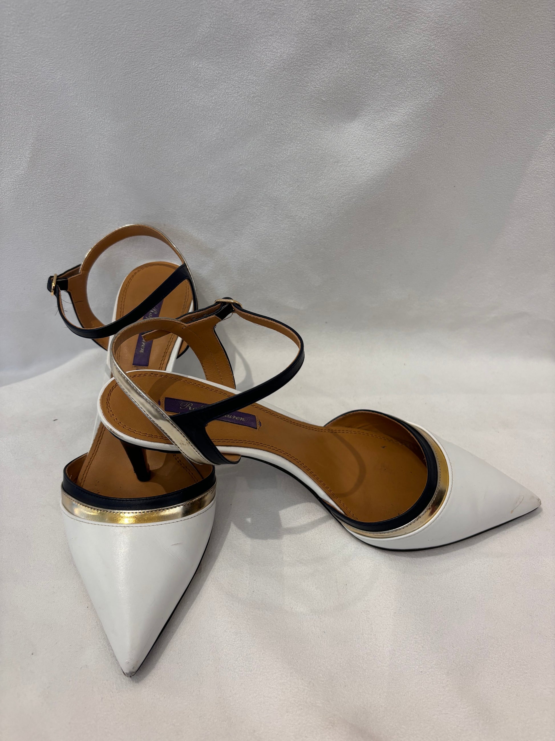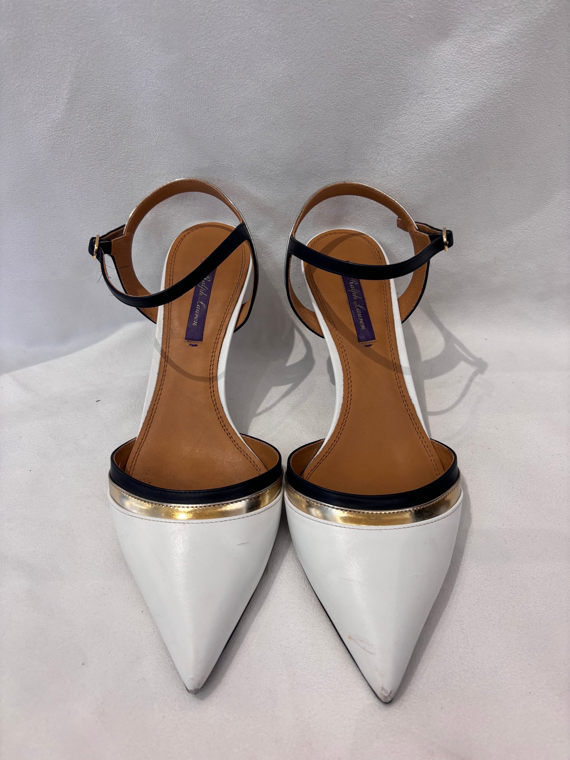 Ralph Lauren White Pointy Pump with Black/Gold Trim Size 39.5