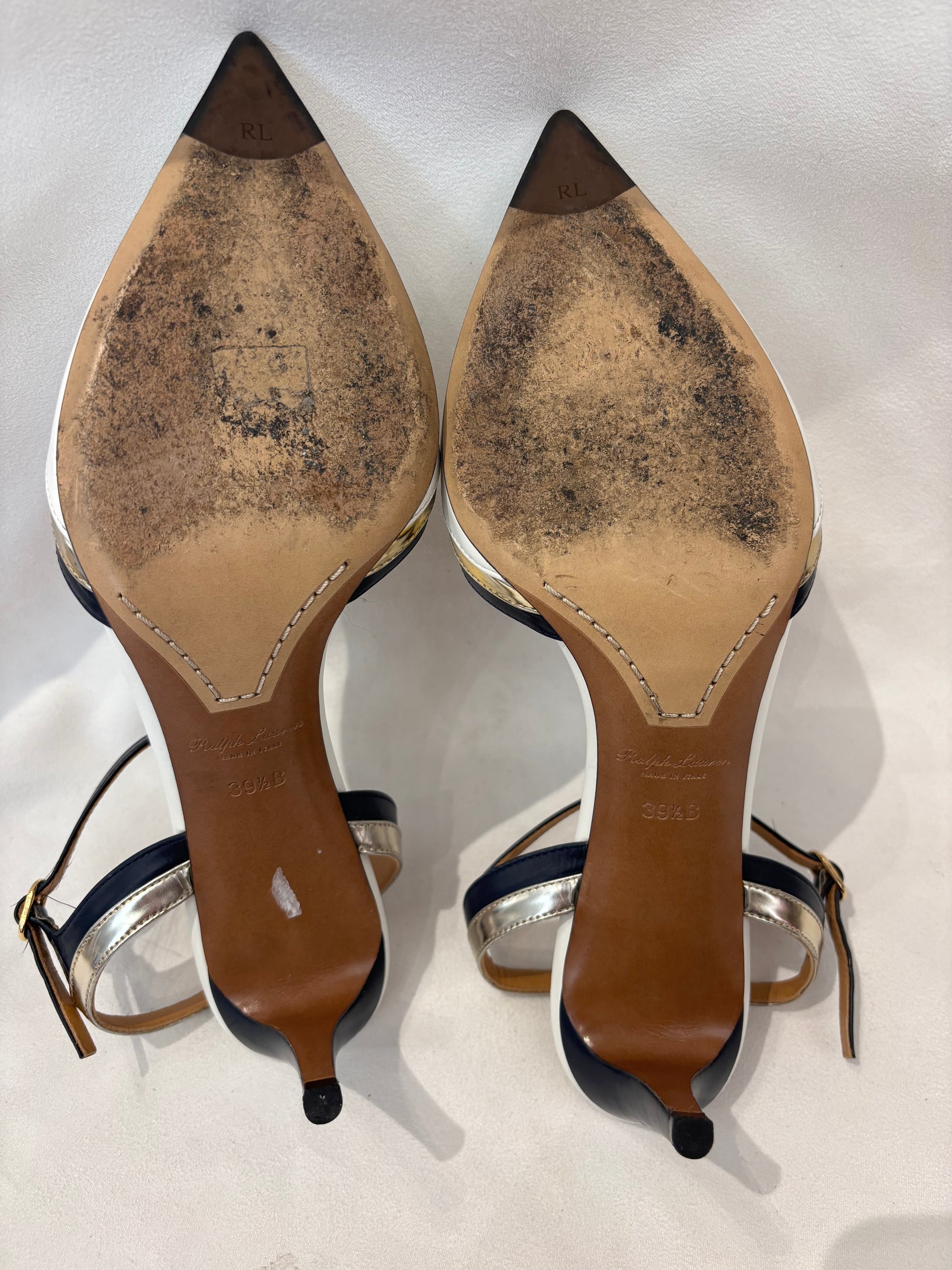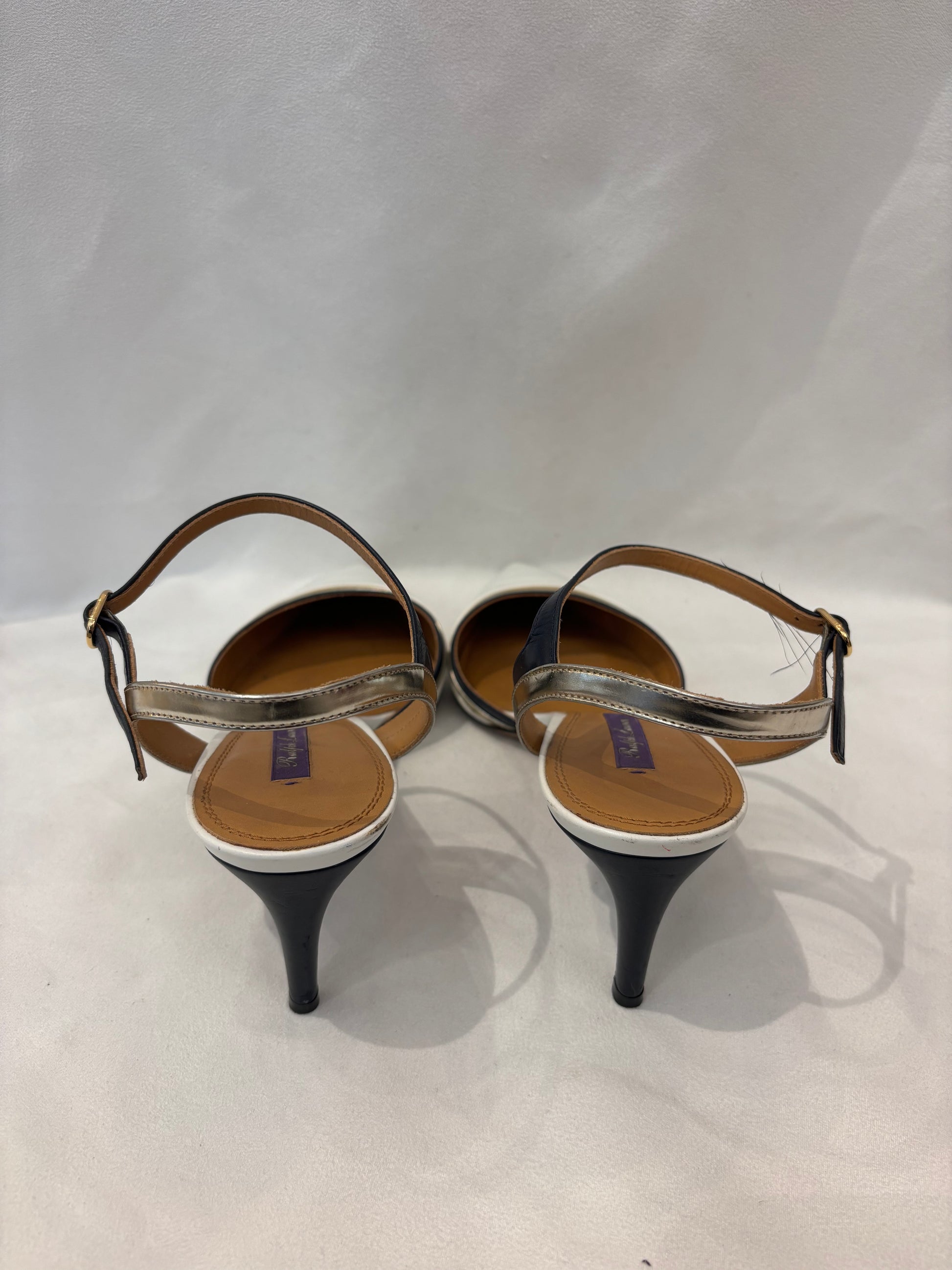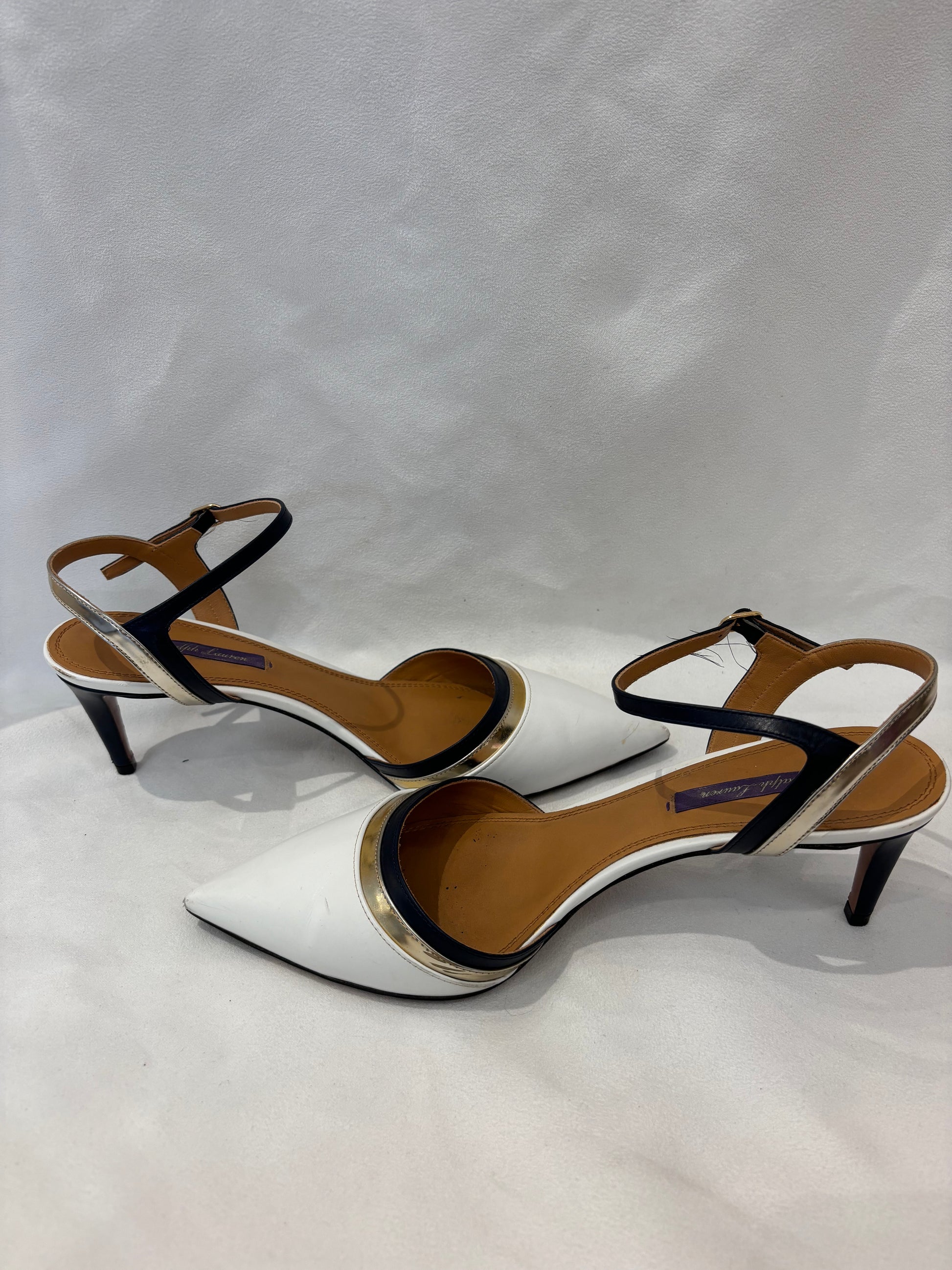Ralph Lauren White Pointy Pump with Black/Gold Trim Size 39.5