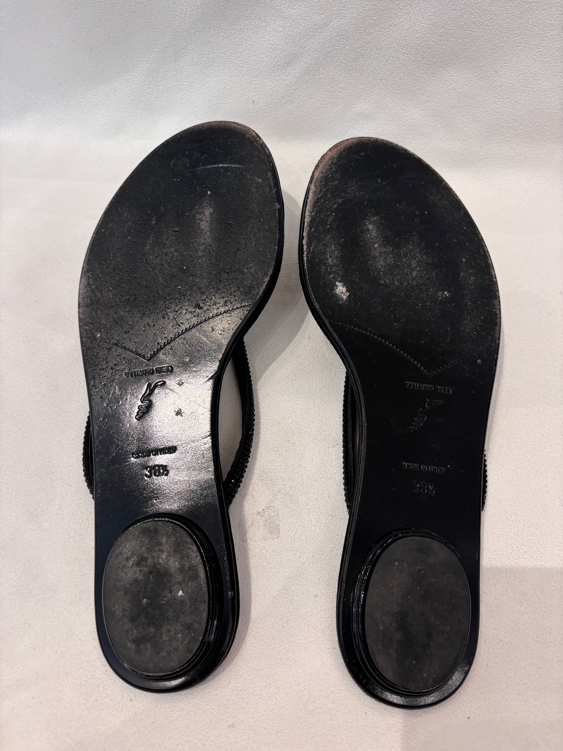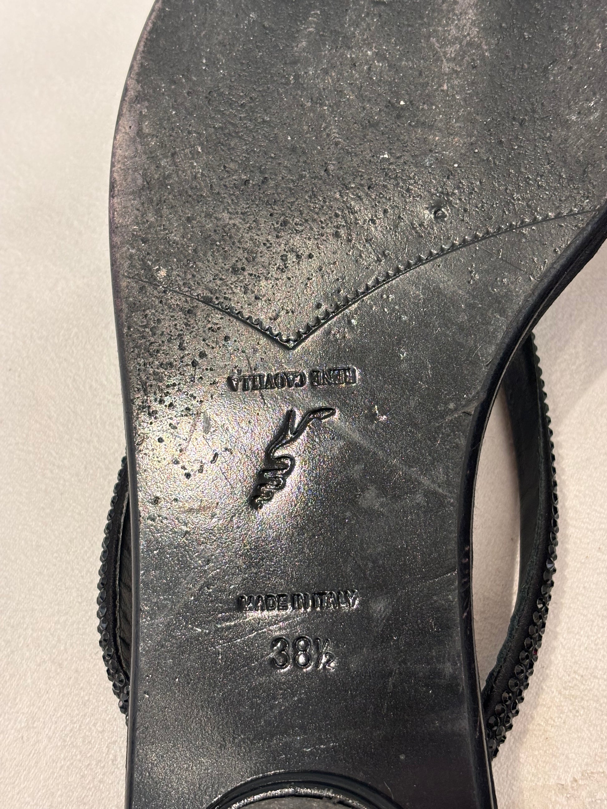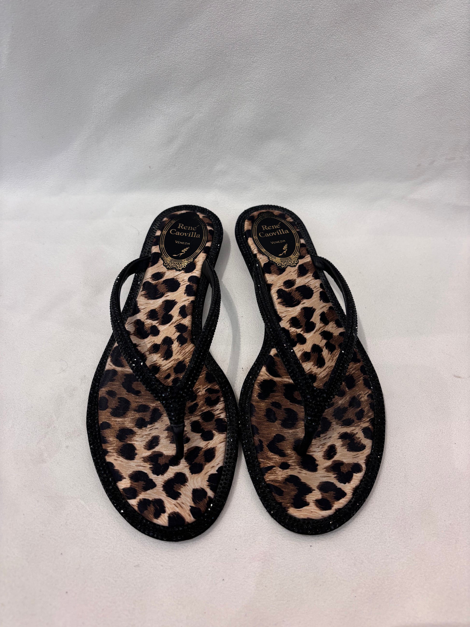 René Caovilla Black Glitter Flat Thong Sandals with Leopard Insoles Size 38.5