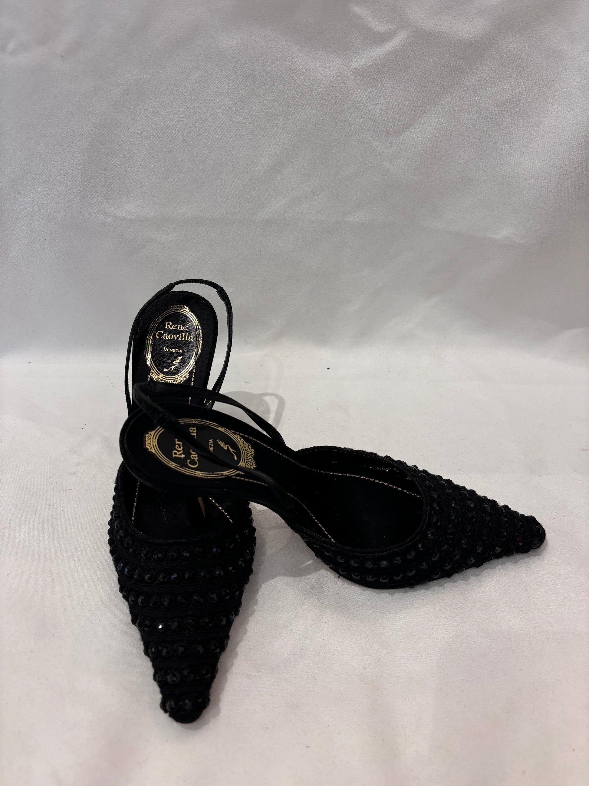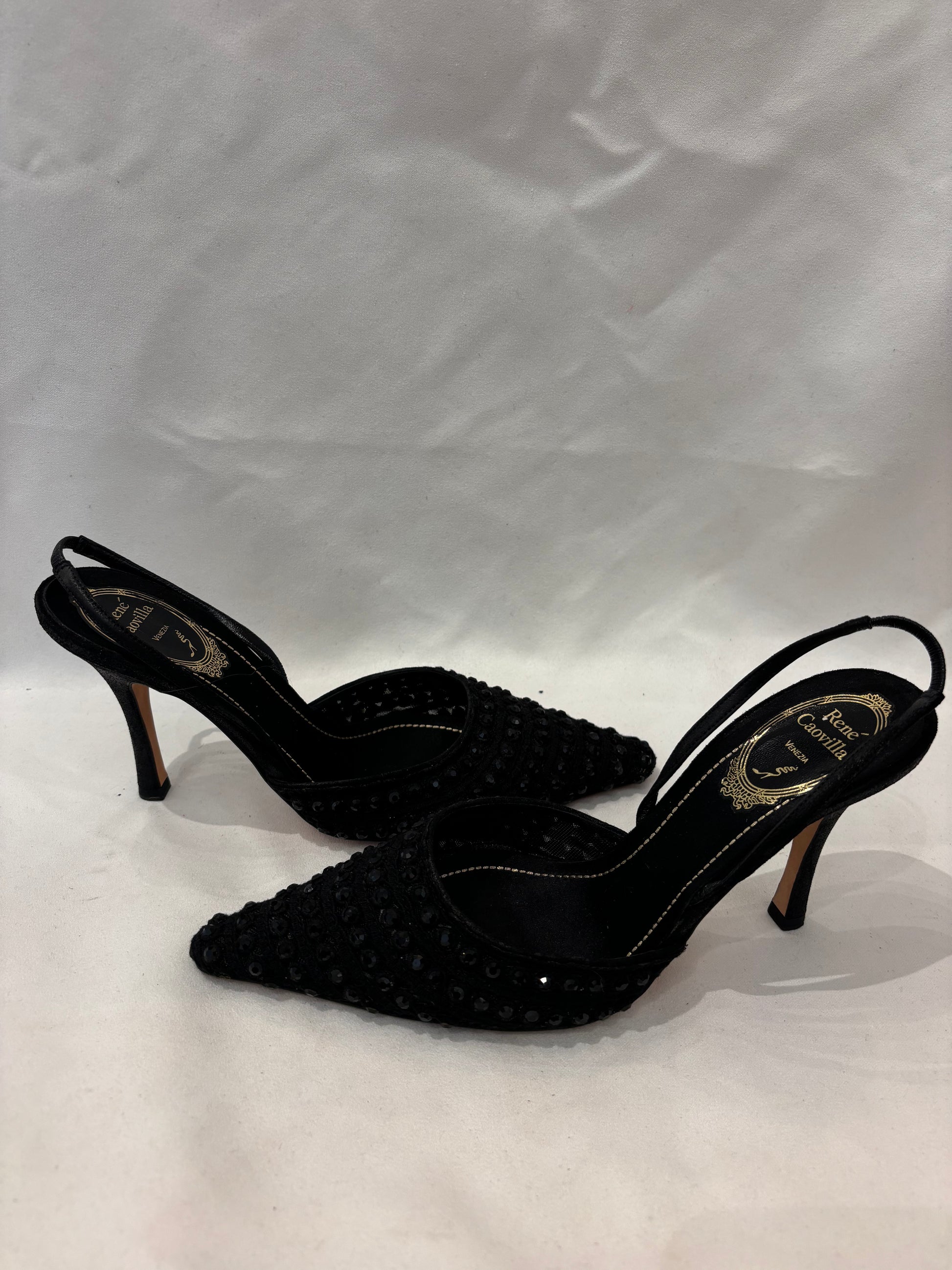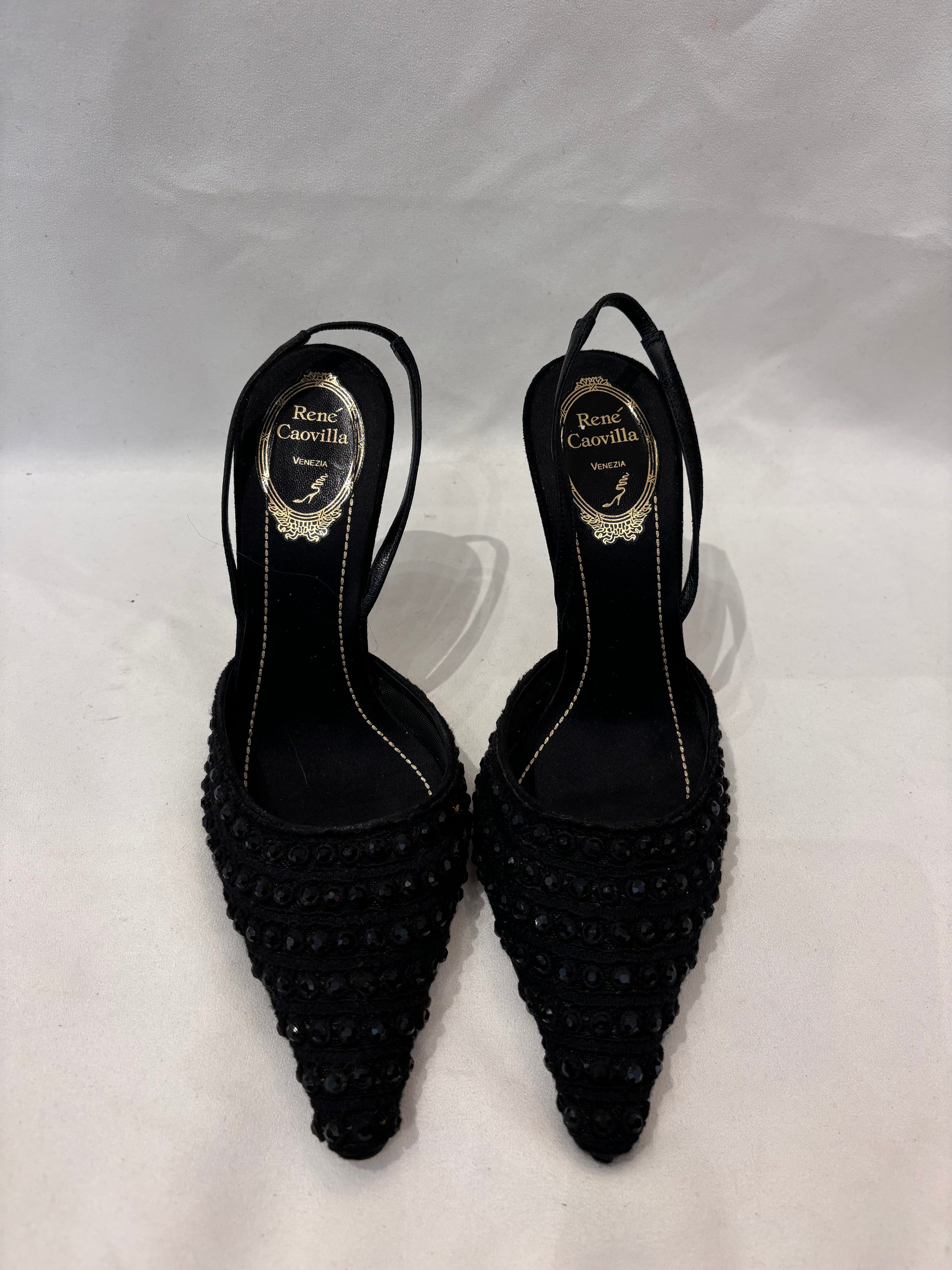 Rene Caovilla Black Slingback Pump with Black Crystals Size 37