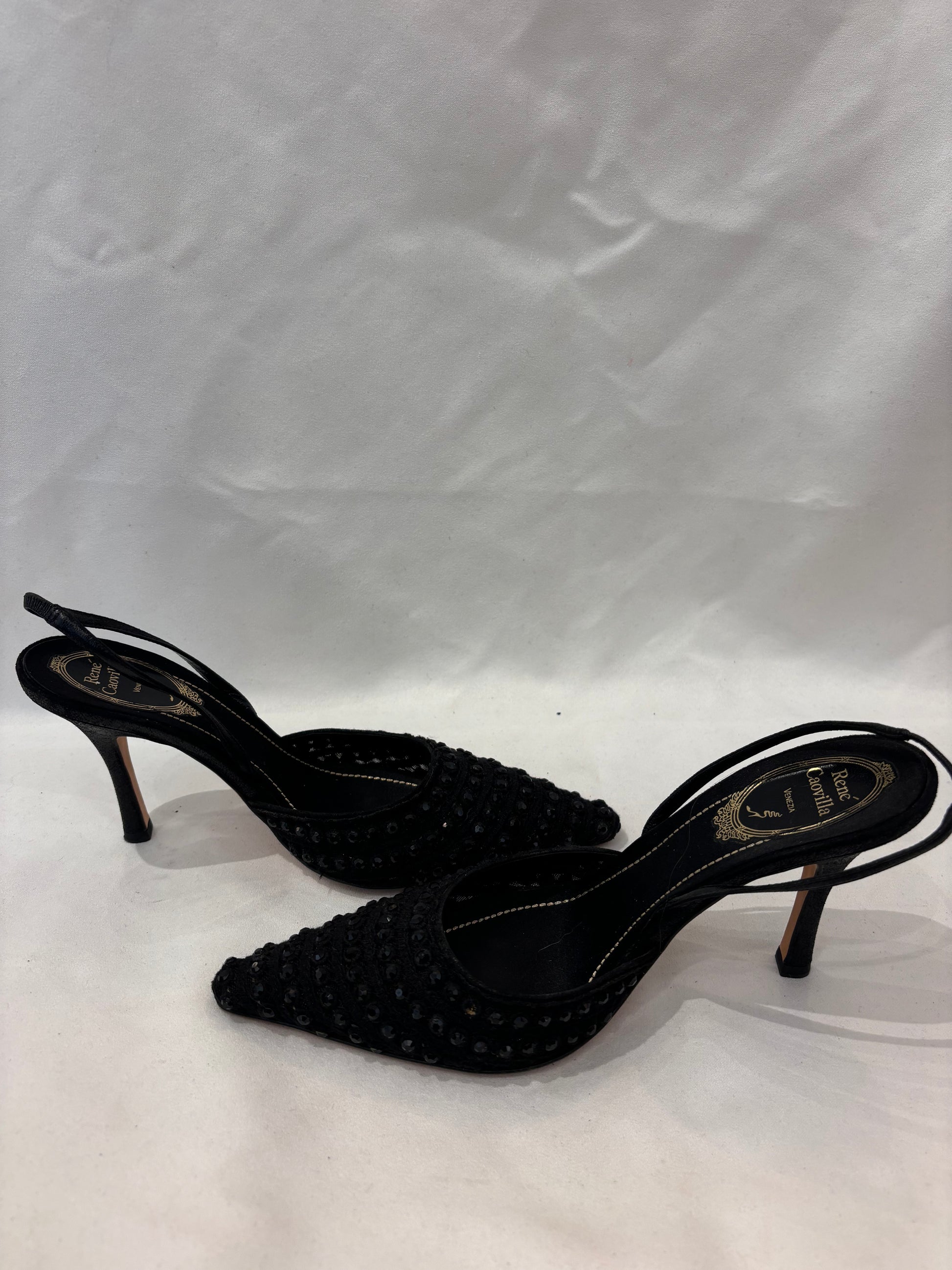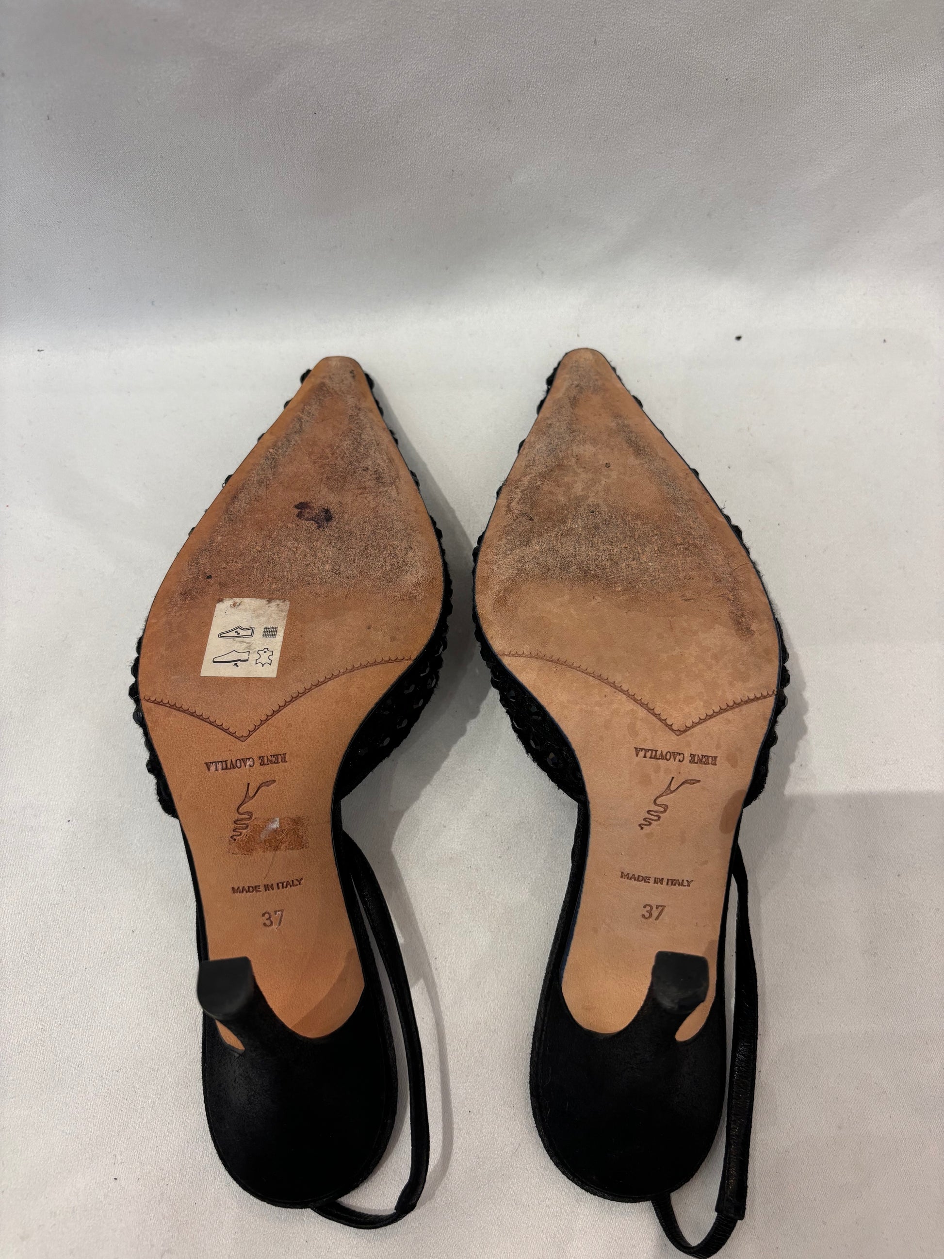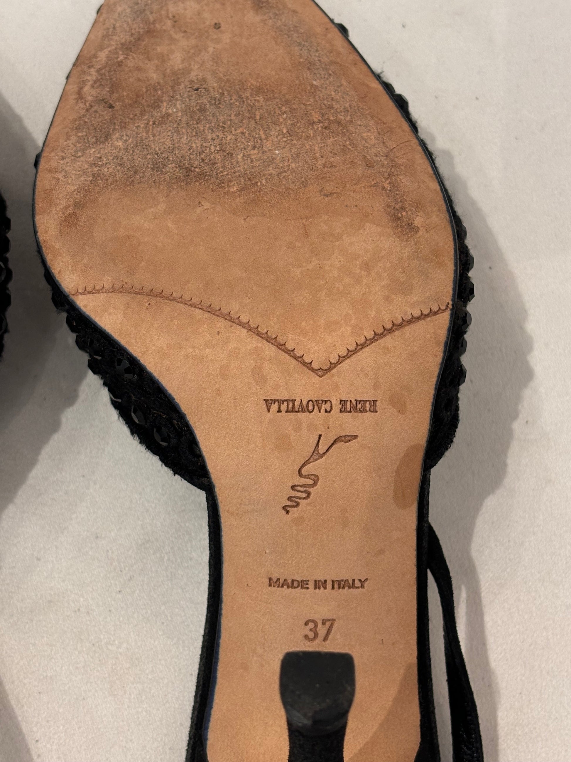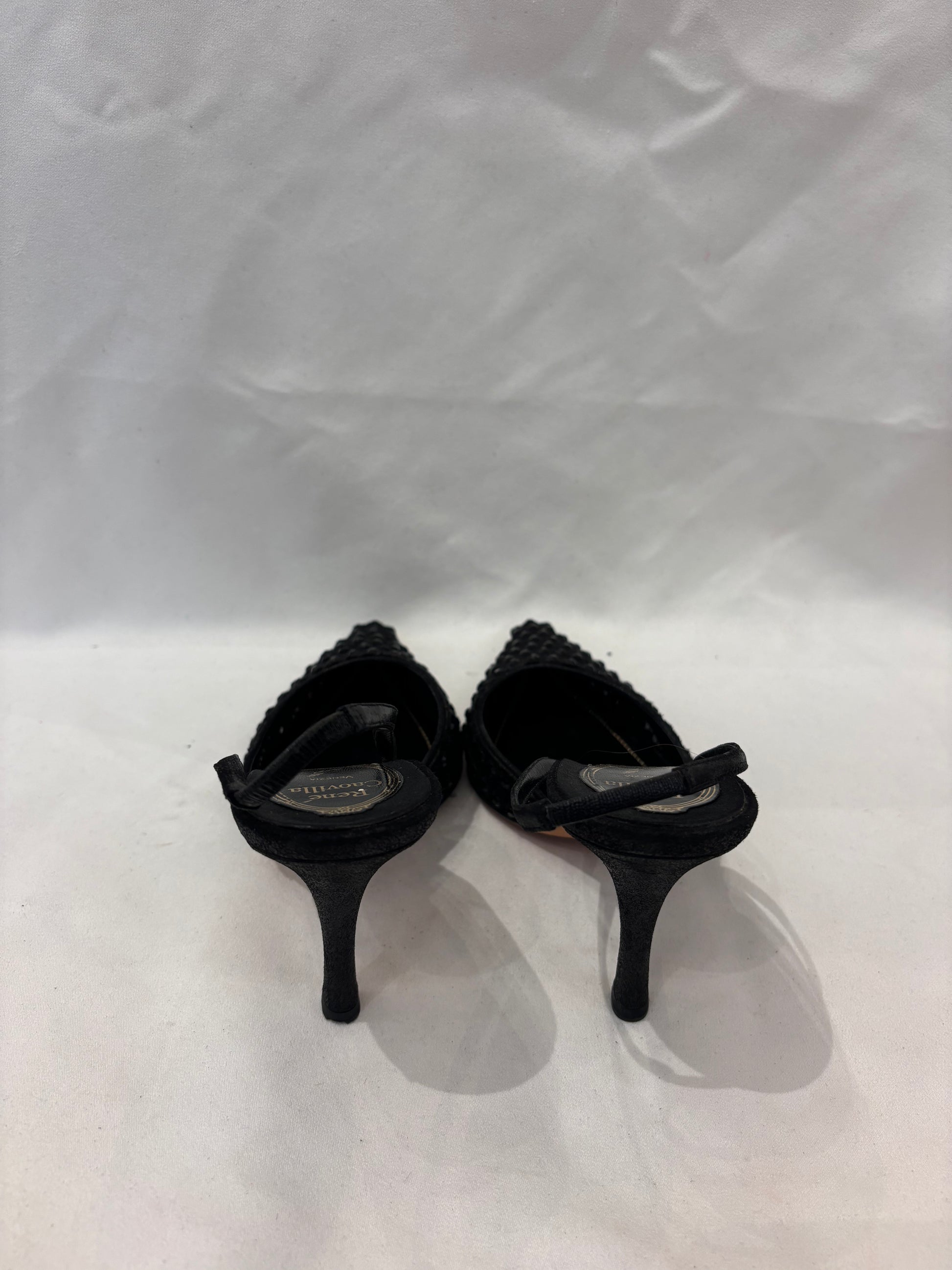Rene Caovilla Black Slingback Pump with Black Crystals Size 37