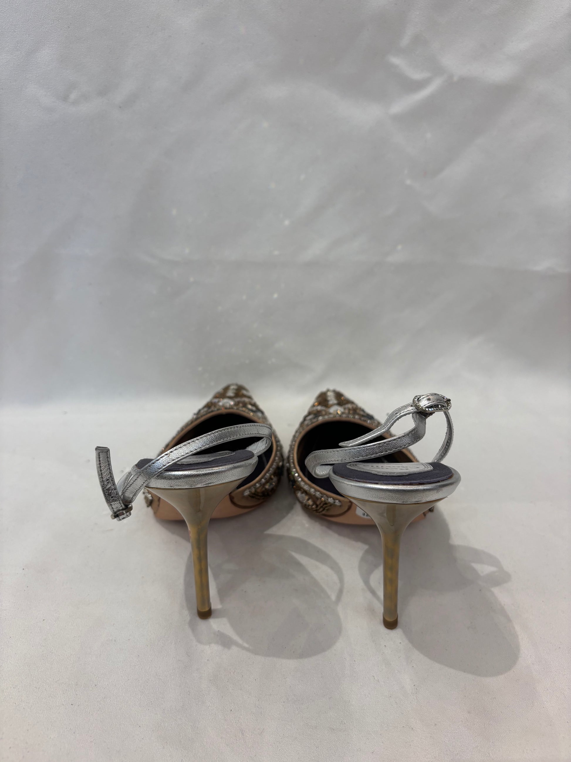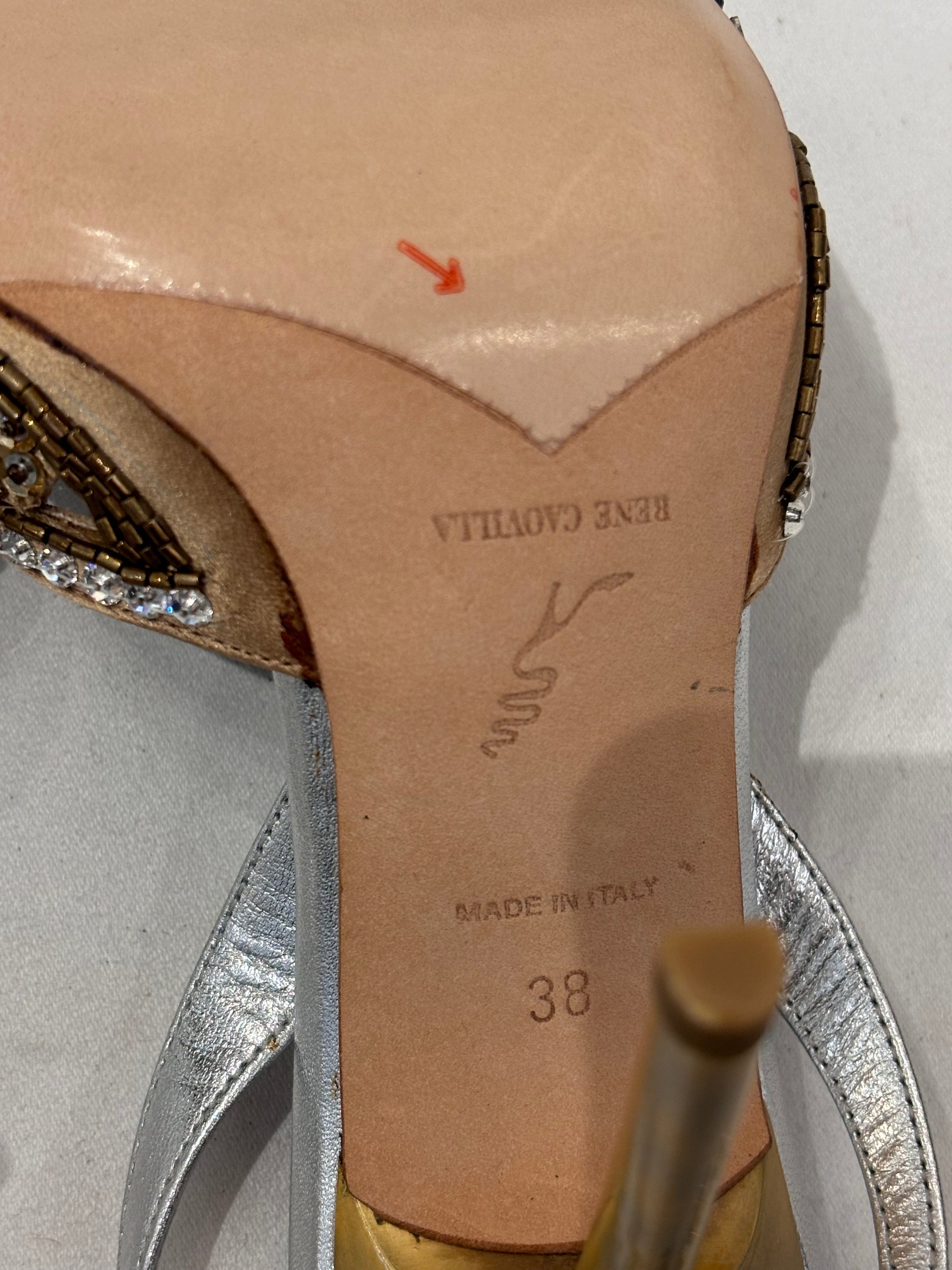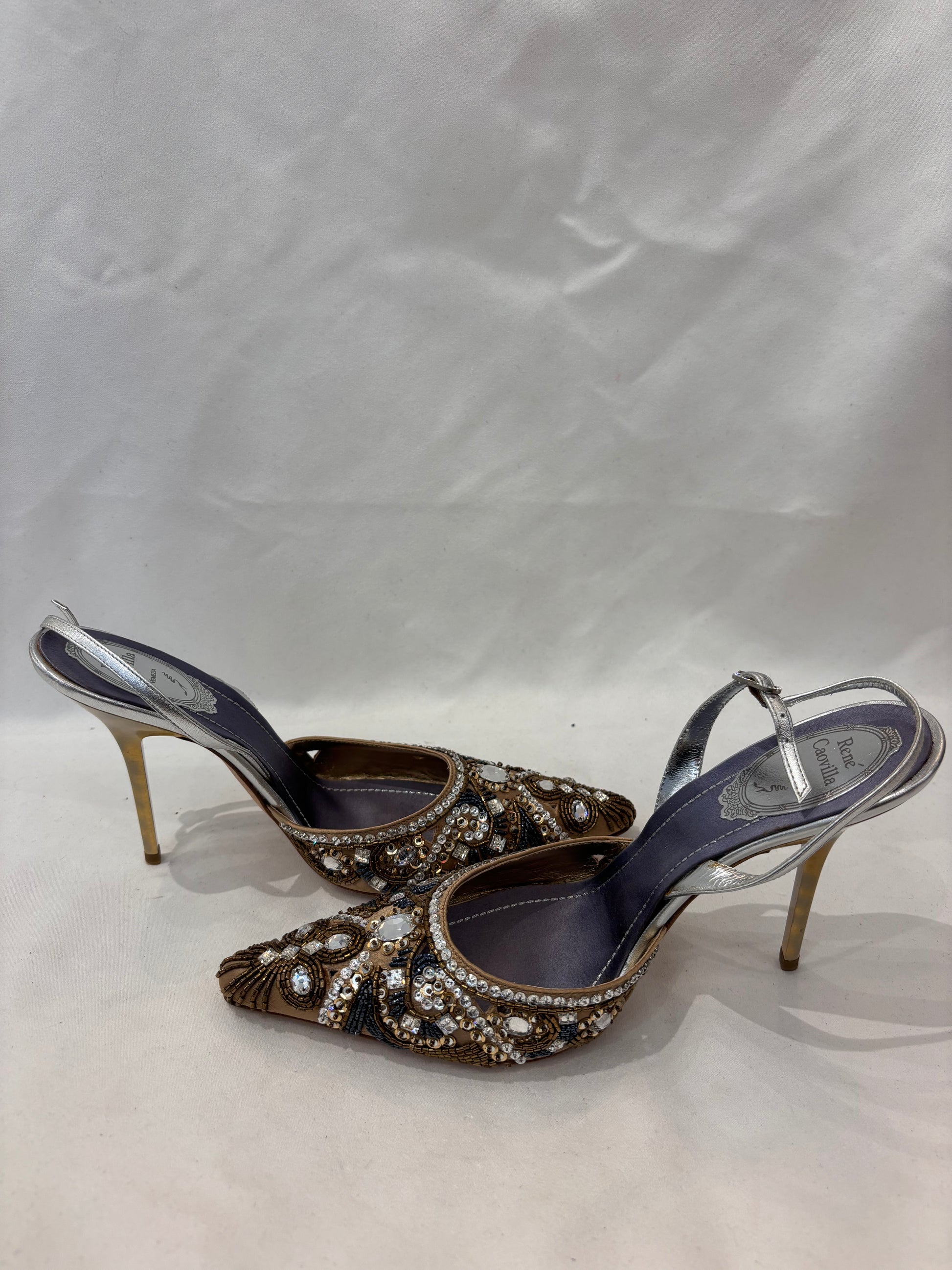 Rene Caovilla Crystal Embroidered Gold Silk Slingback Pump Size 38