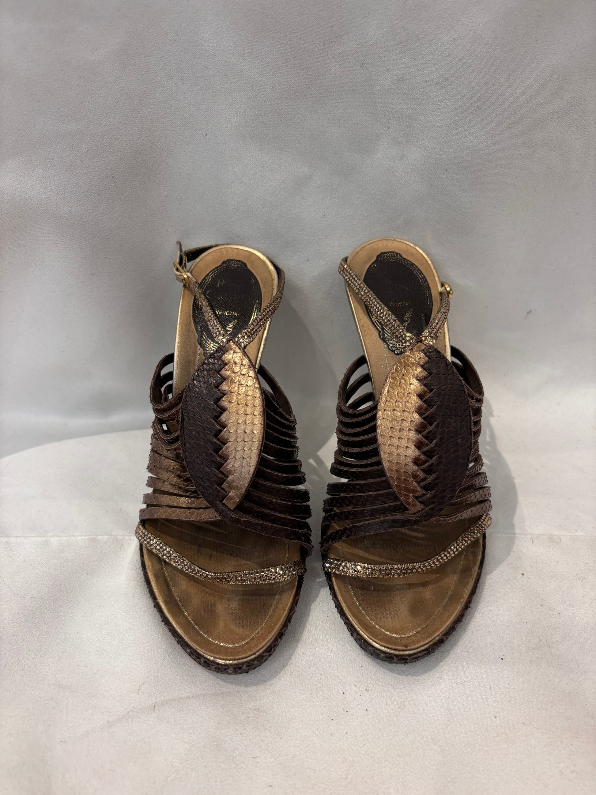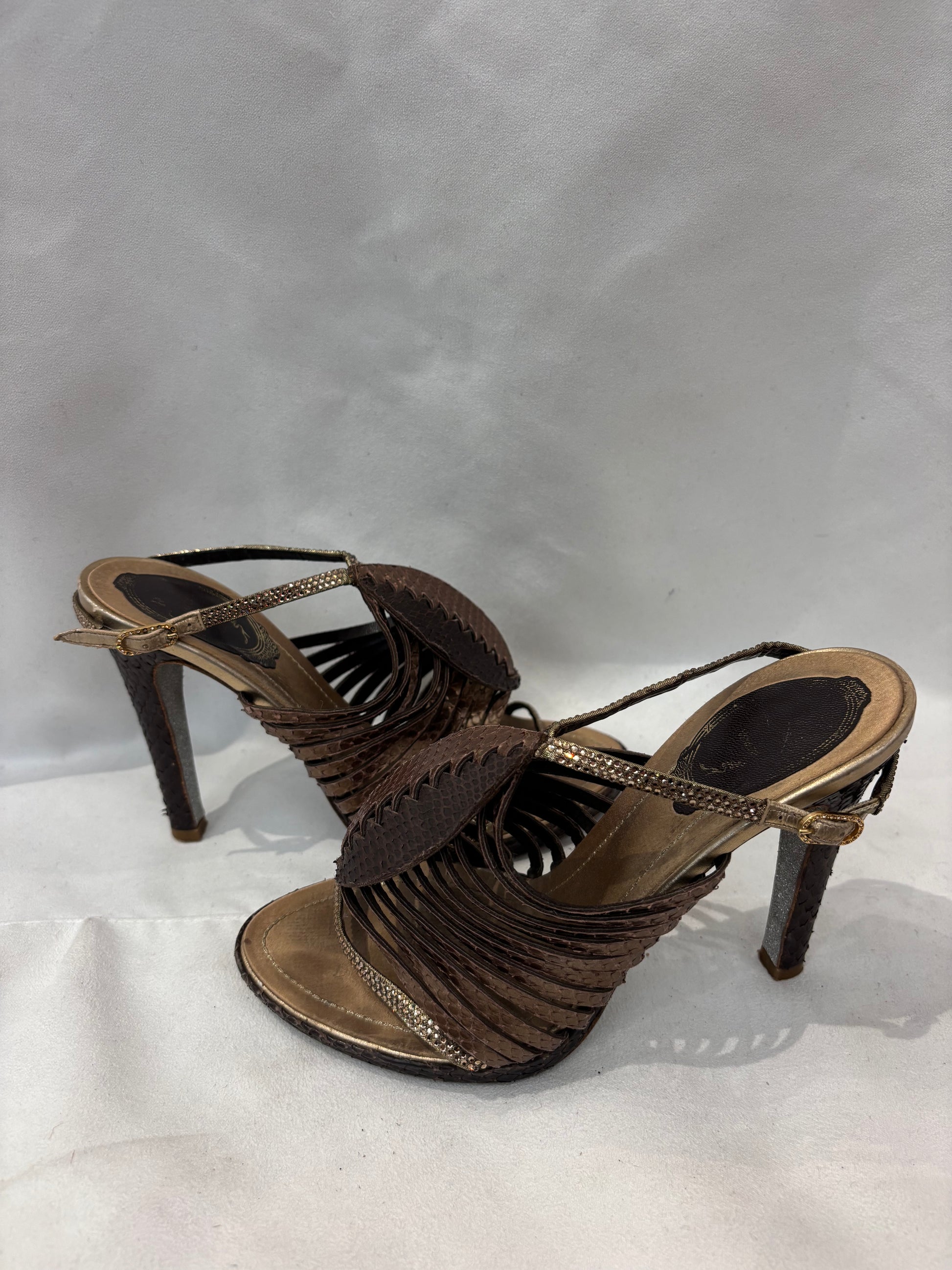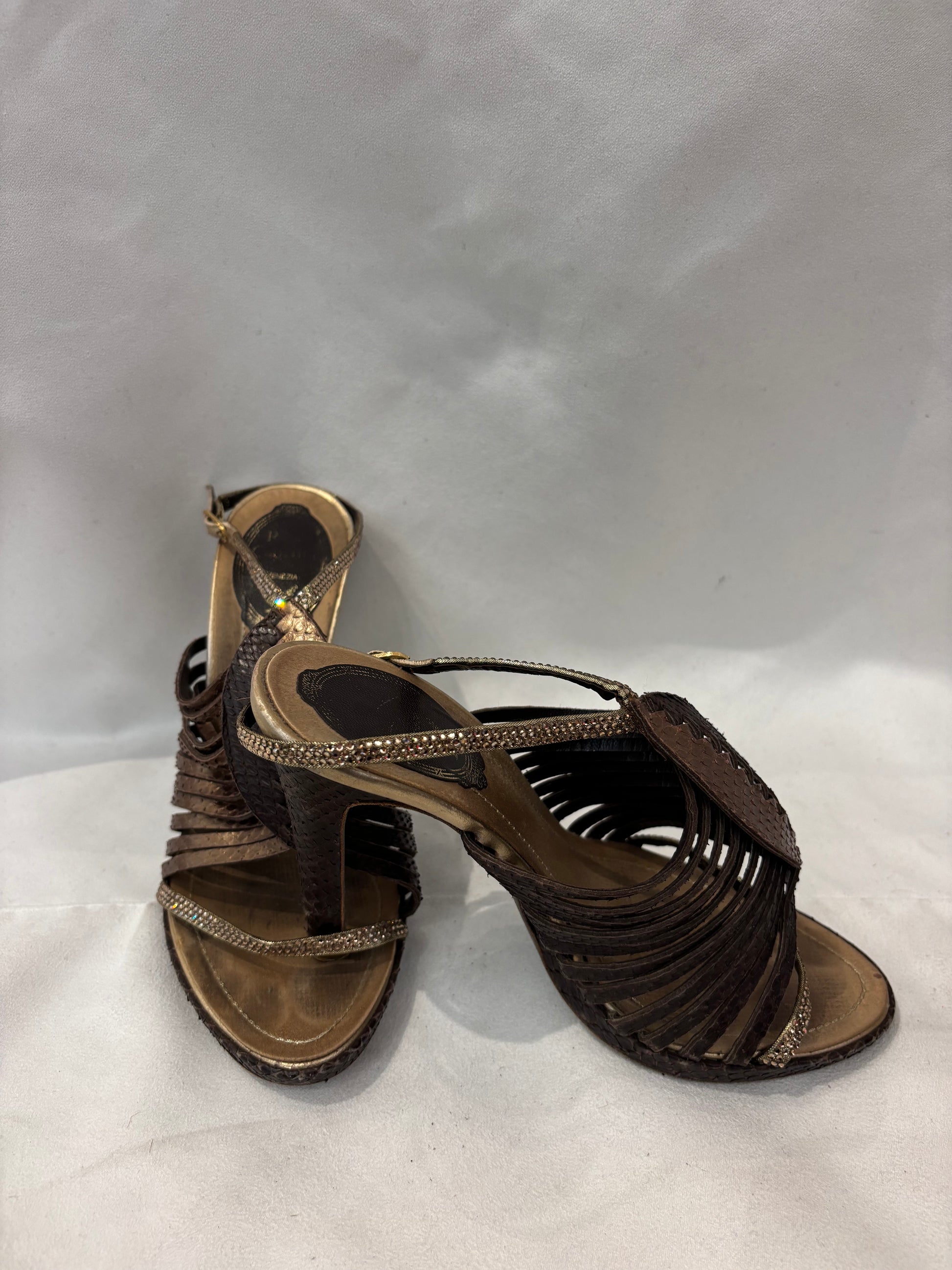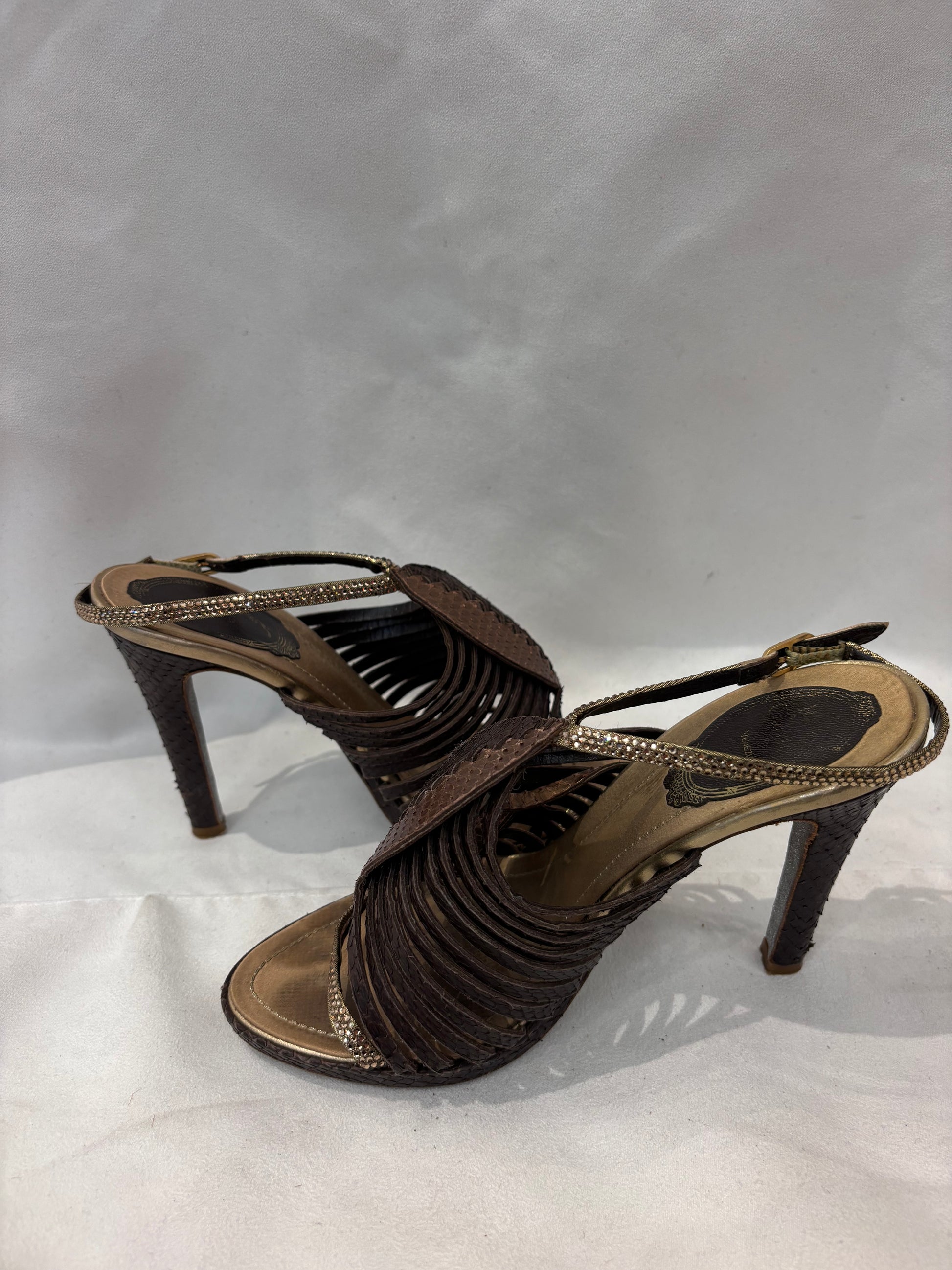 Rene Caovilla Brown Snakeskin Strappy Sandals Size 36