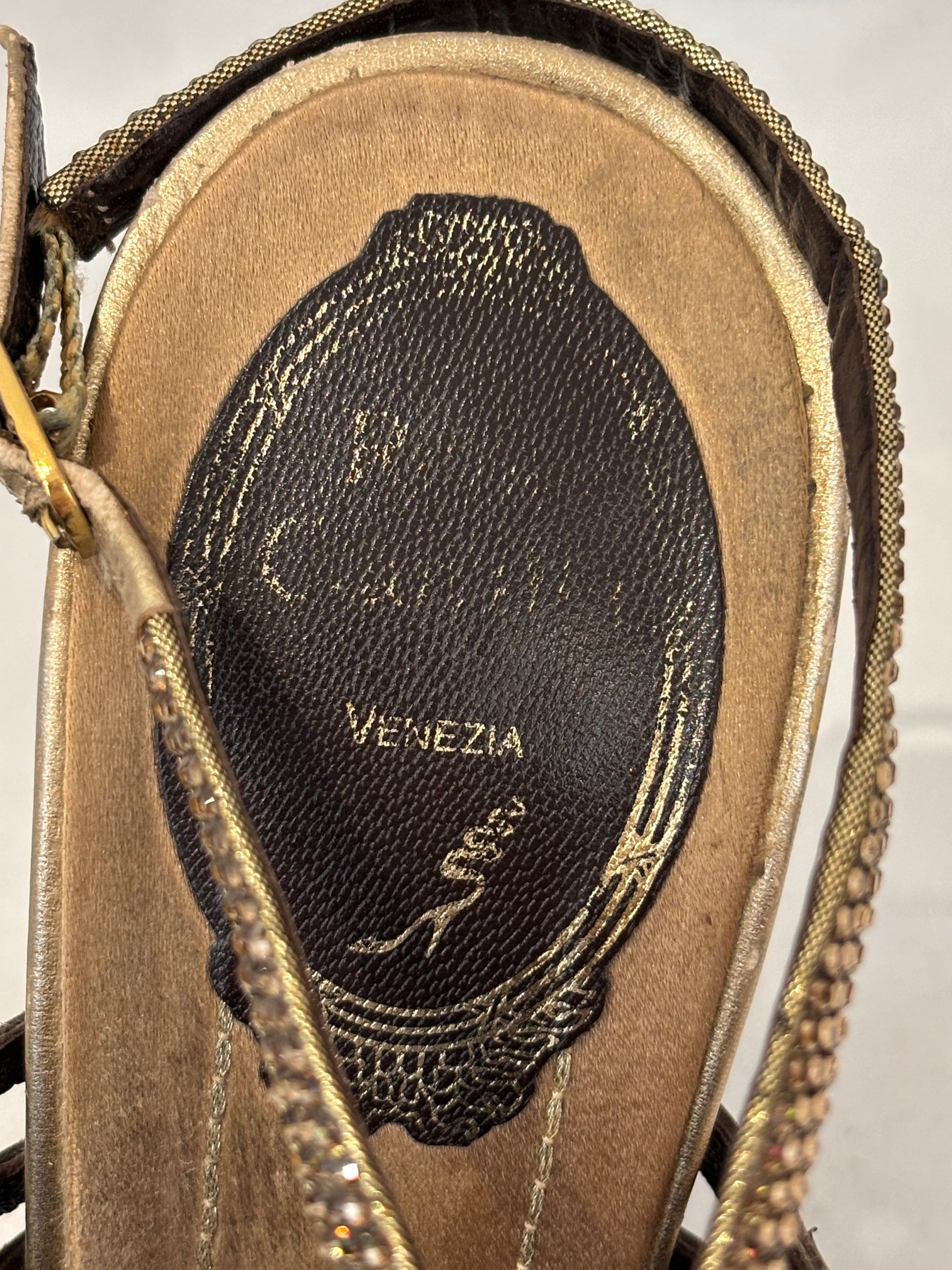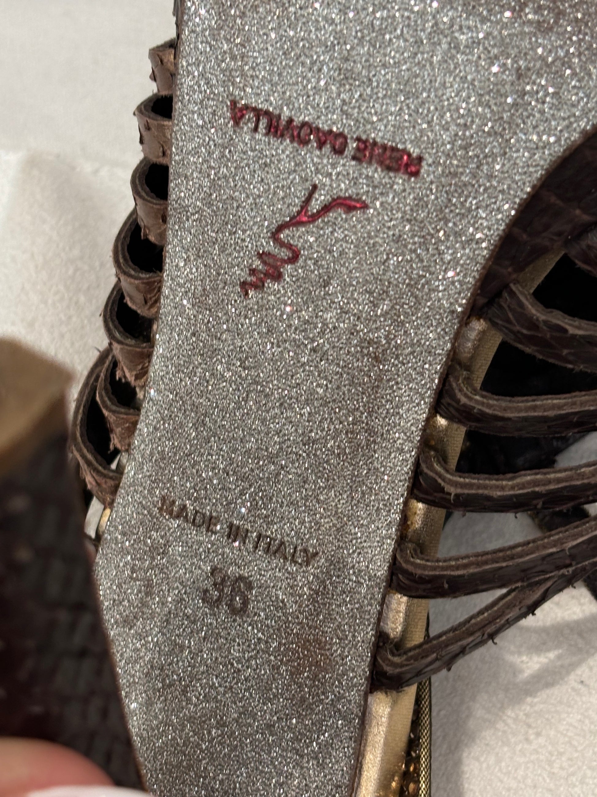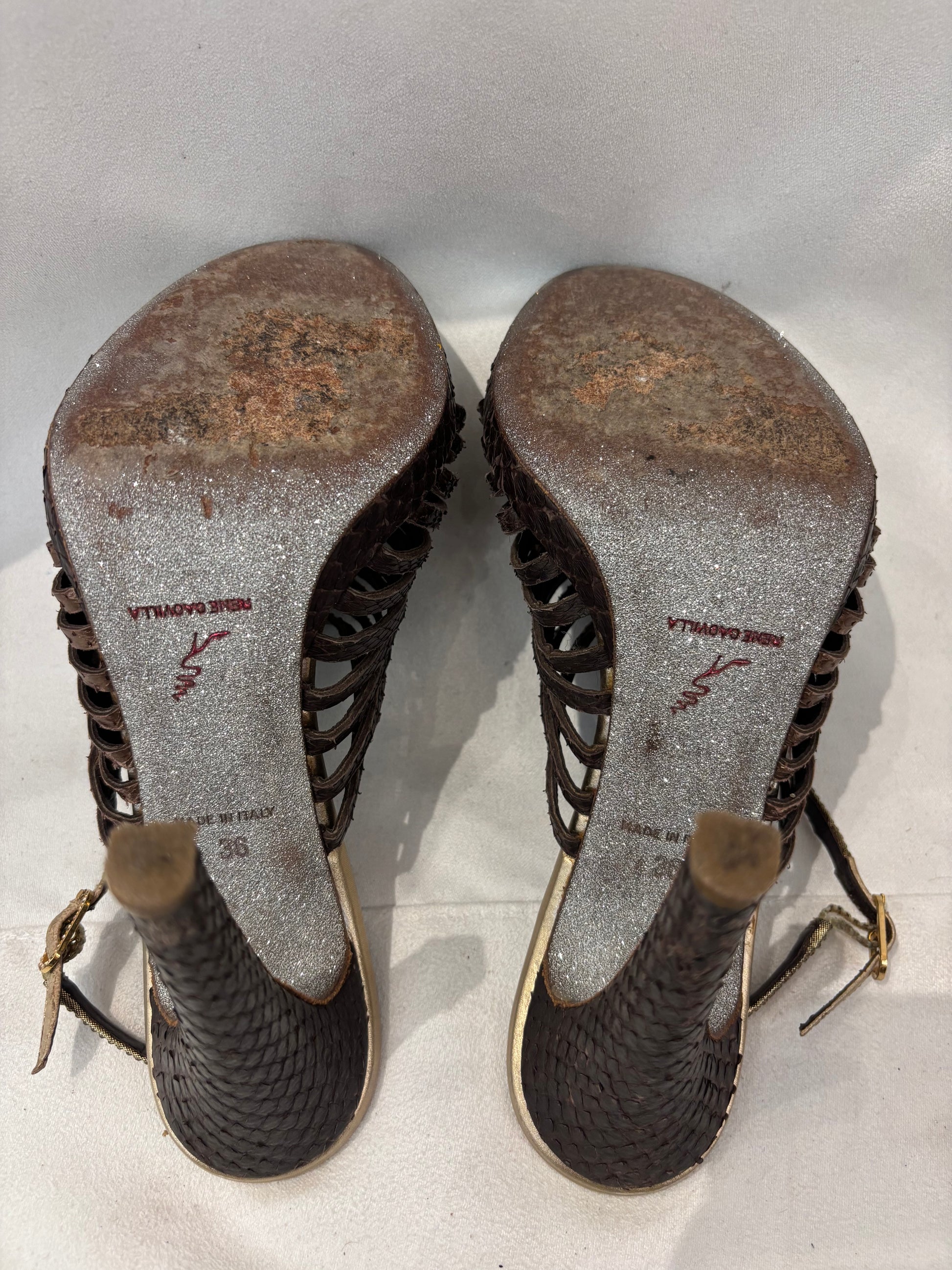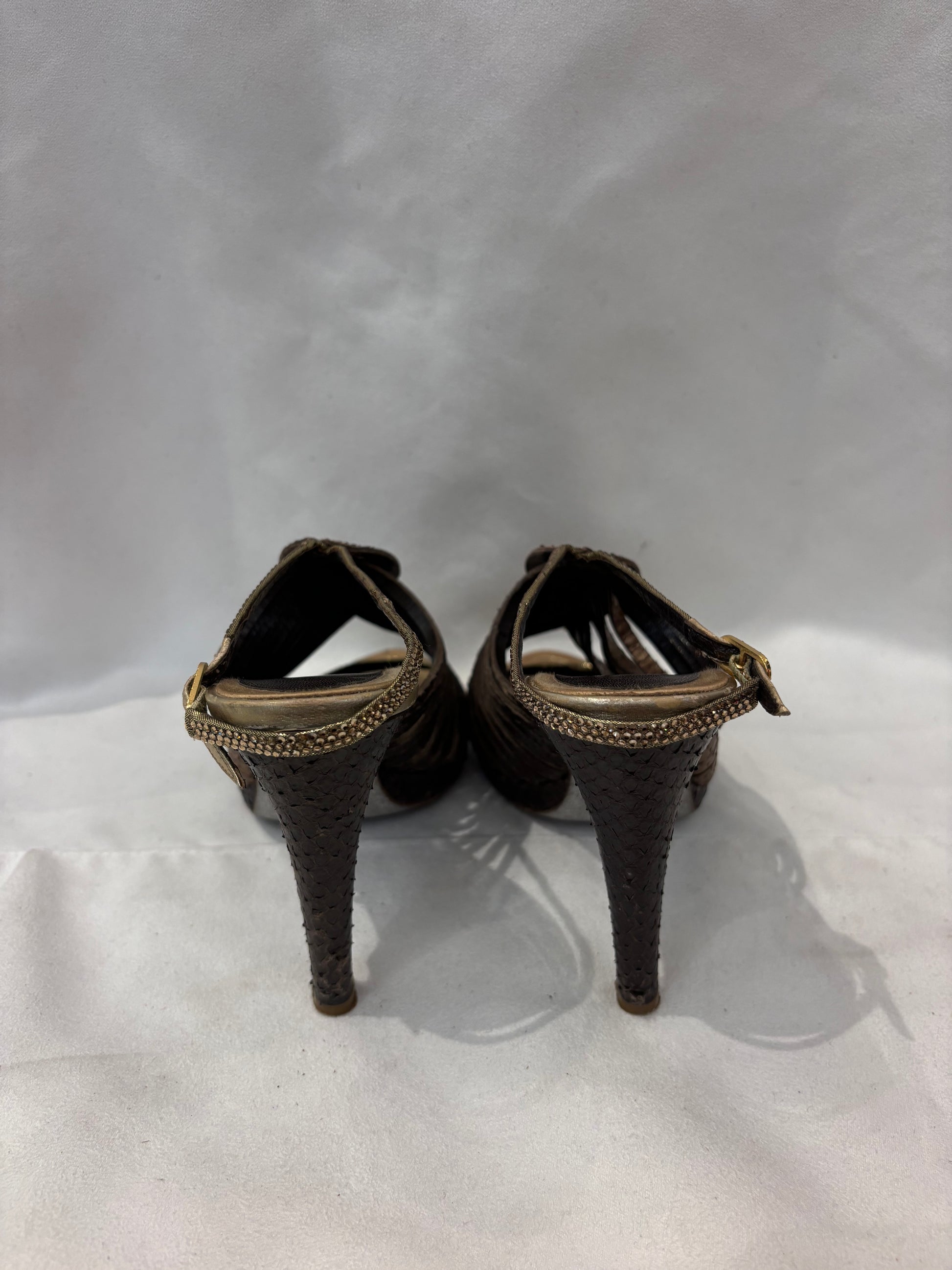 Rene Caovilla Brown Snakeskin Strappy Sandals Size 36