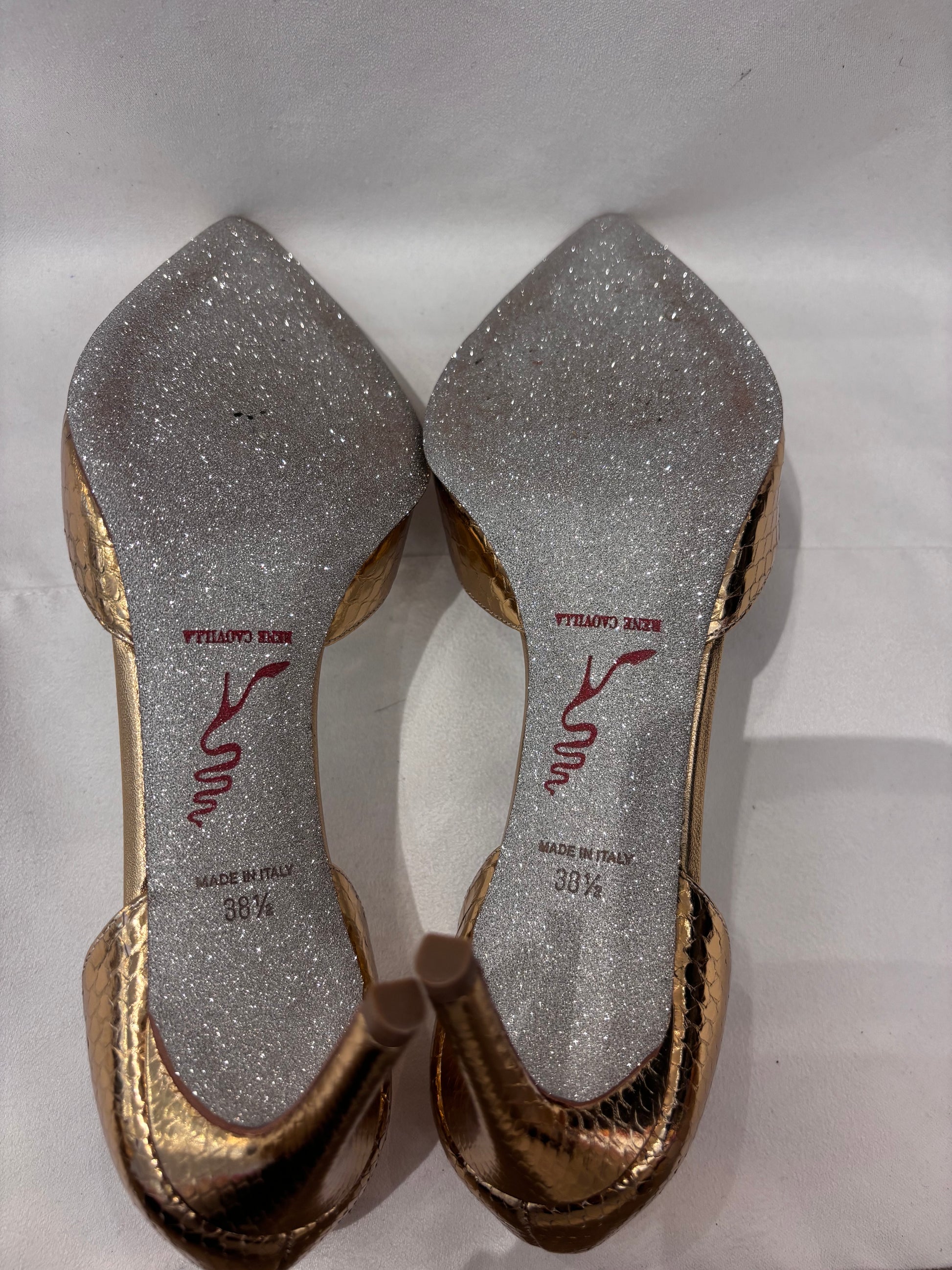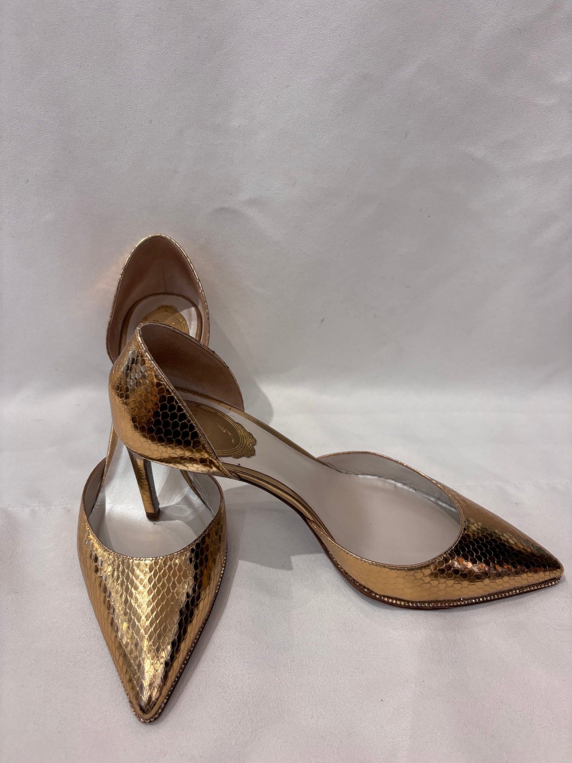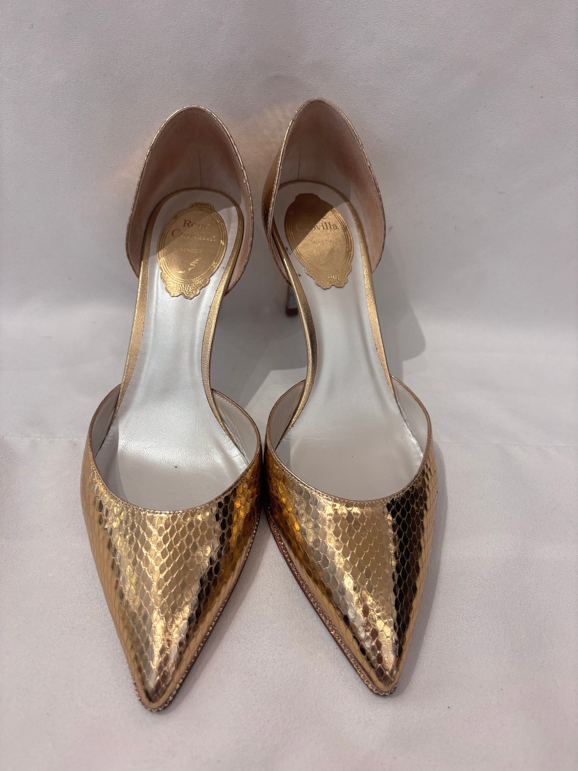 Rene Caovilla Gold Snakeskin Embossed D’Orsay Pump Size 38.5