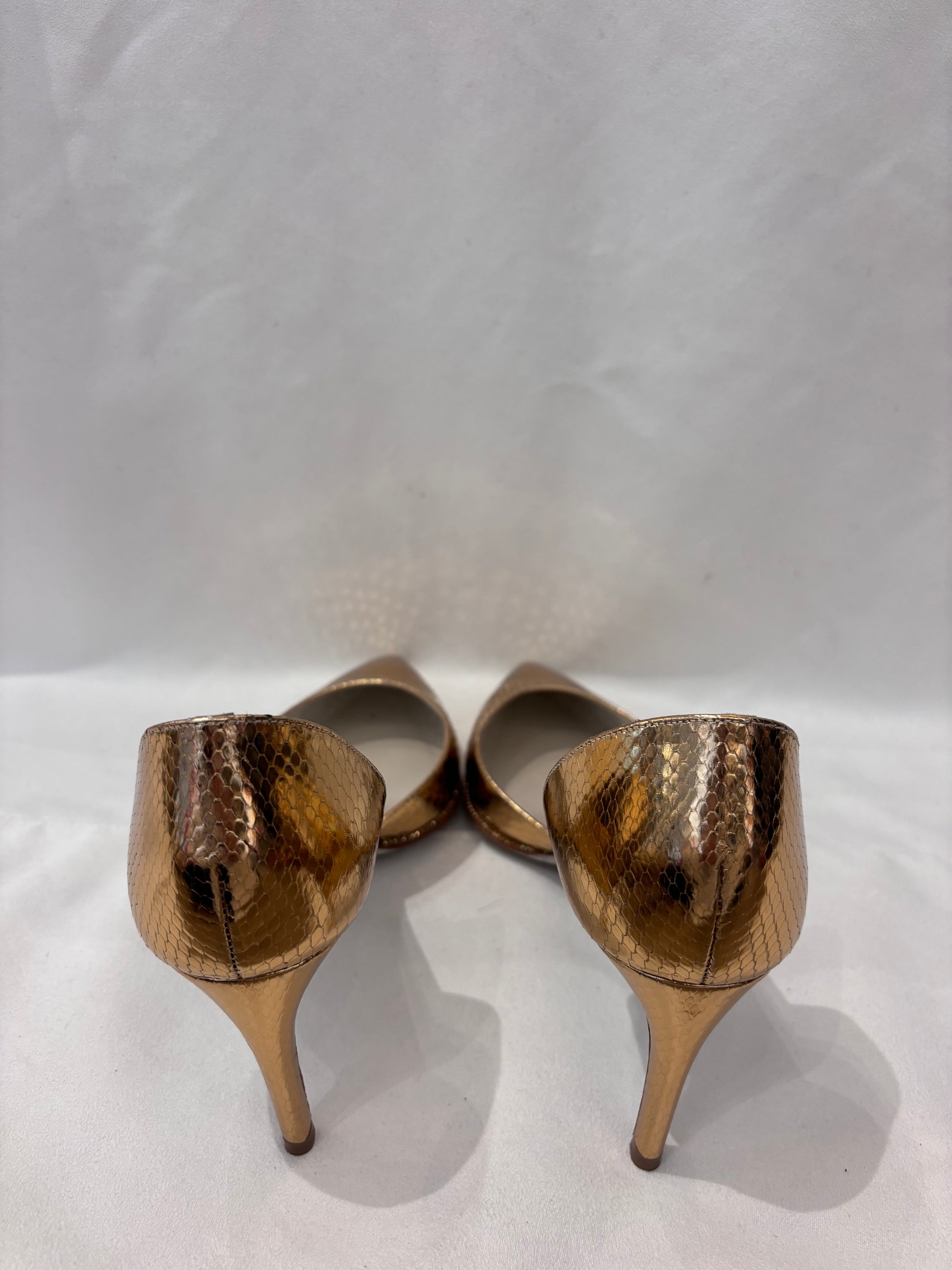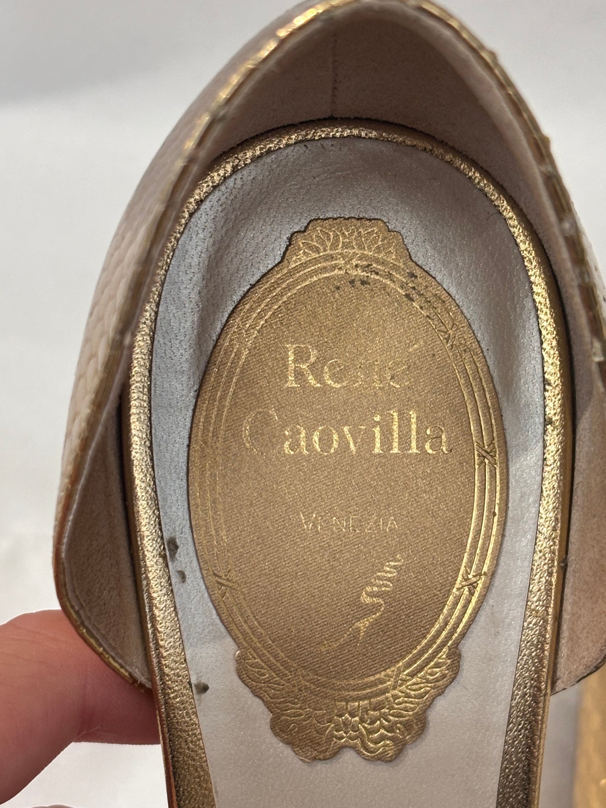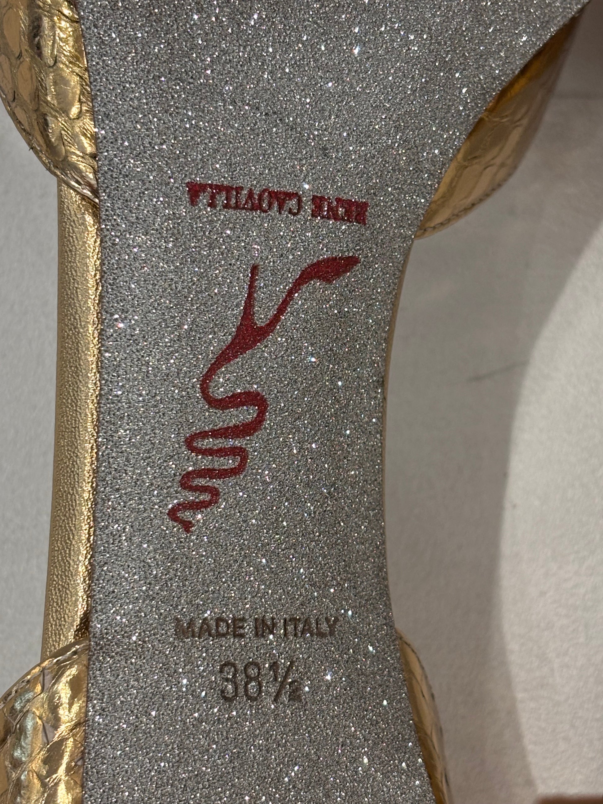 Rene Caovilla Gold Snakeskin Embossed D’Orsay Pump Size 38.5