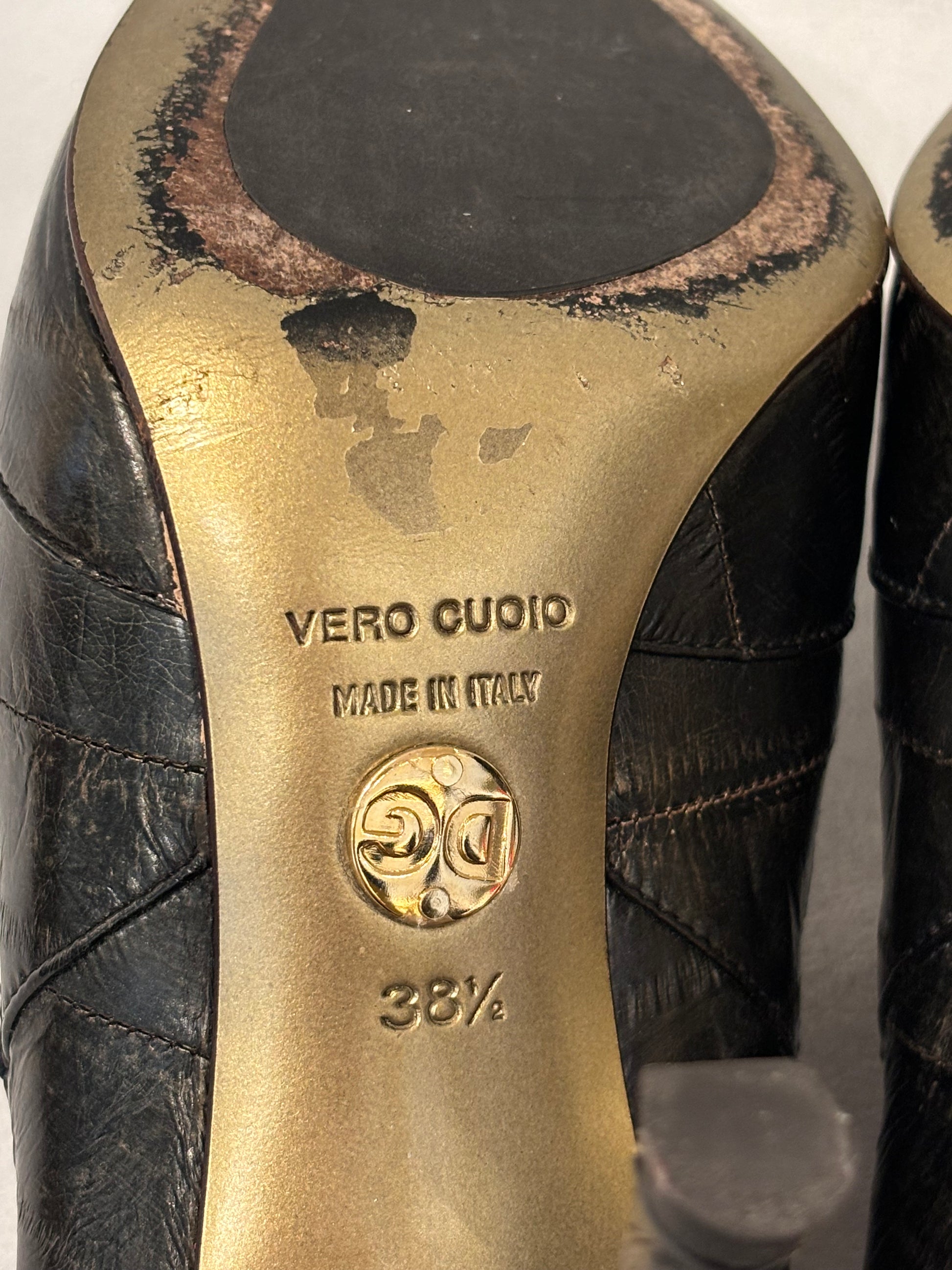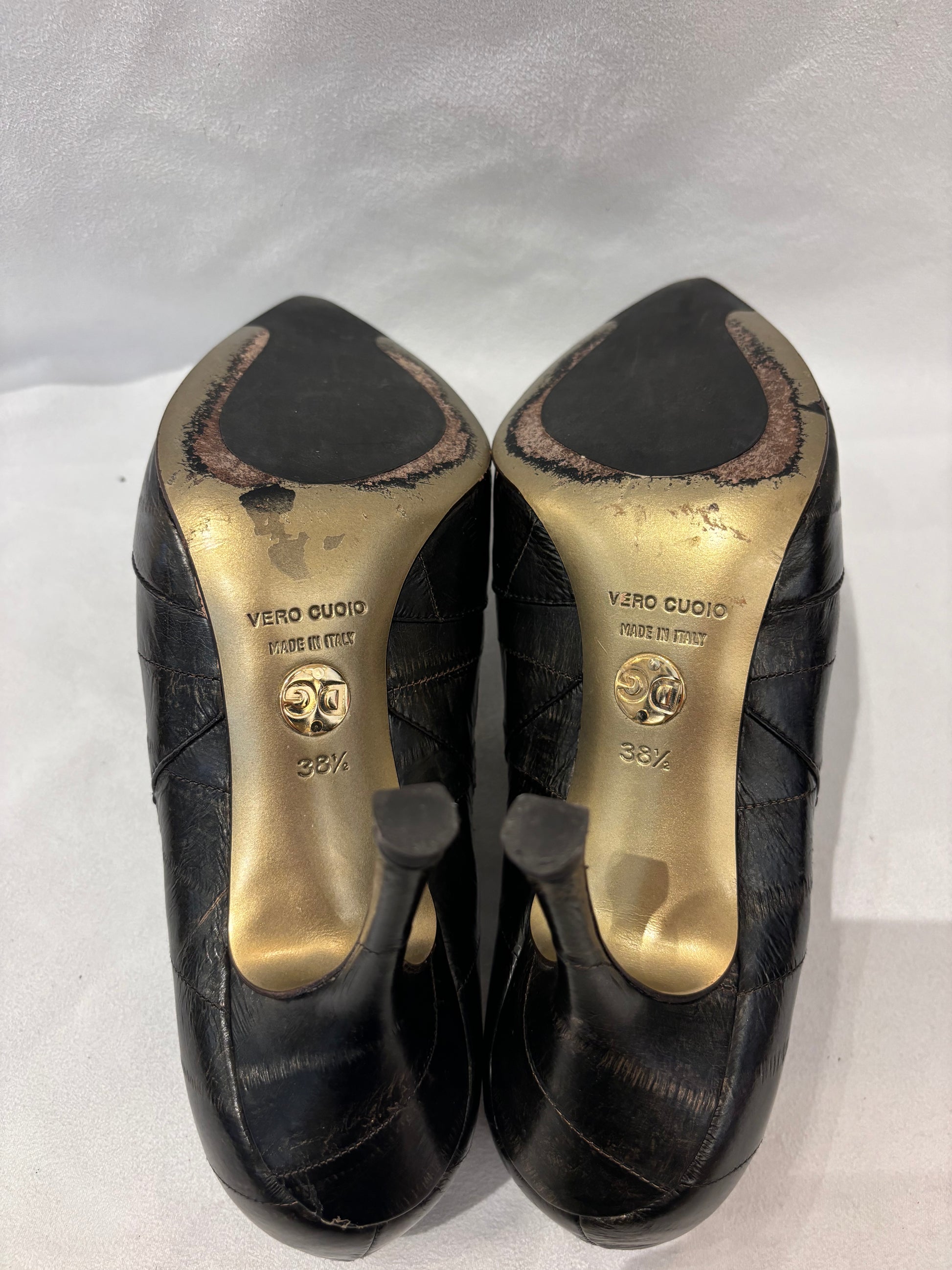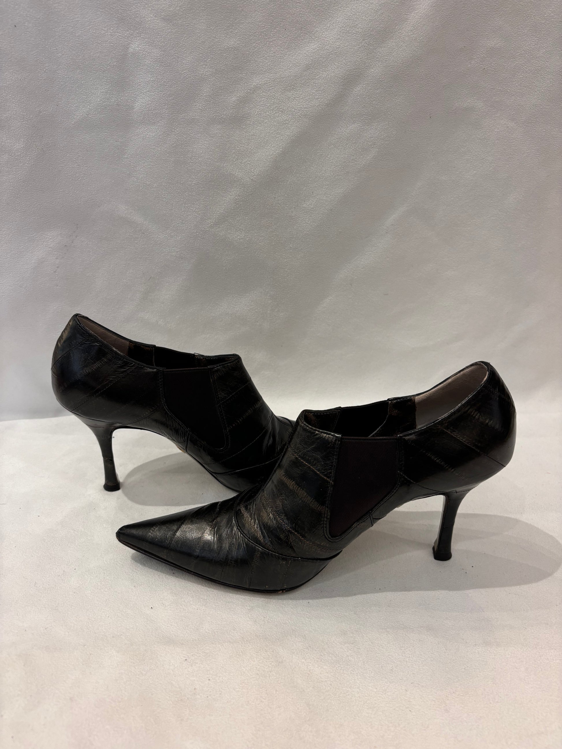 Robert Cavalli Brown Eel Ankle High Heel Boots Size 38.5